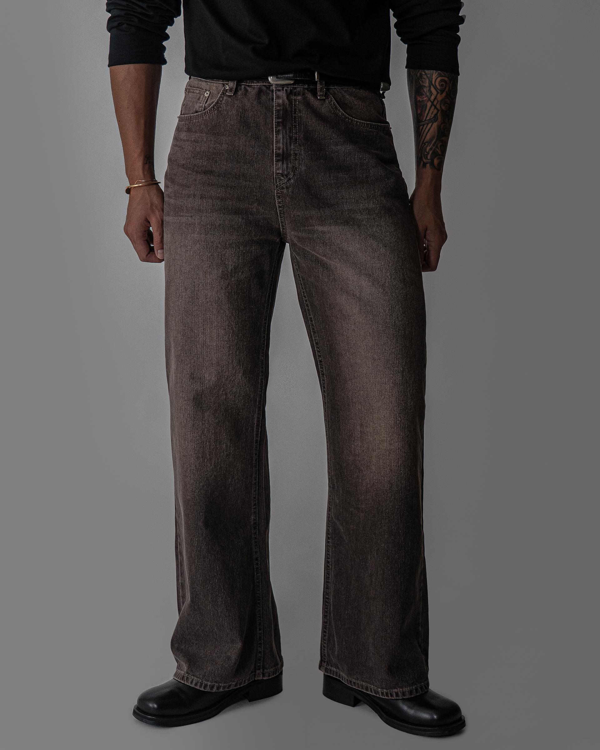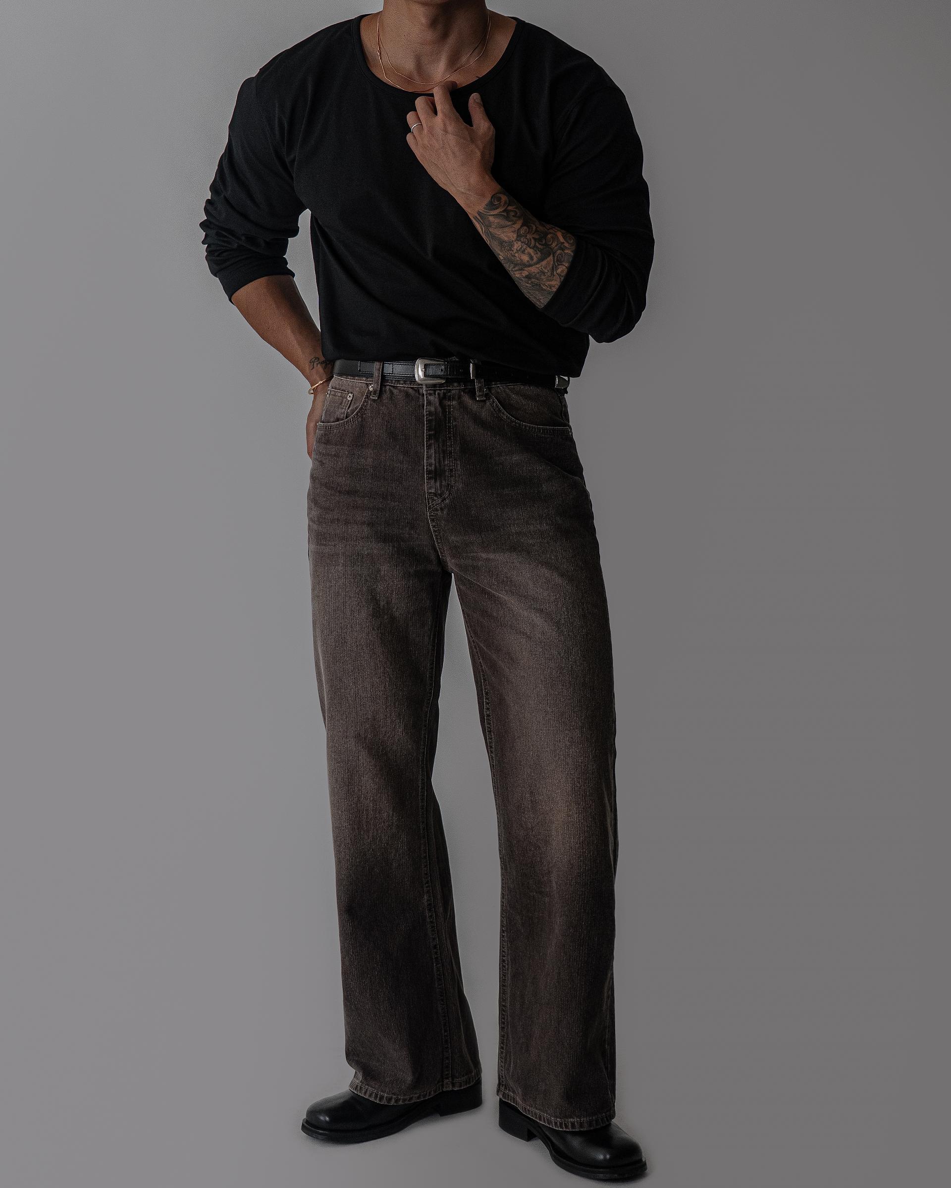 톤 브라운 세미 플레어 데님 팬츠 (one color)