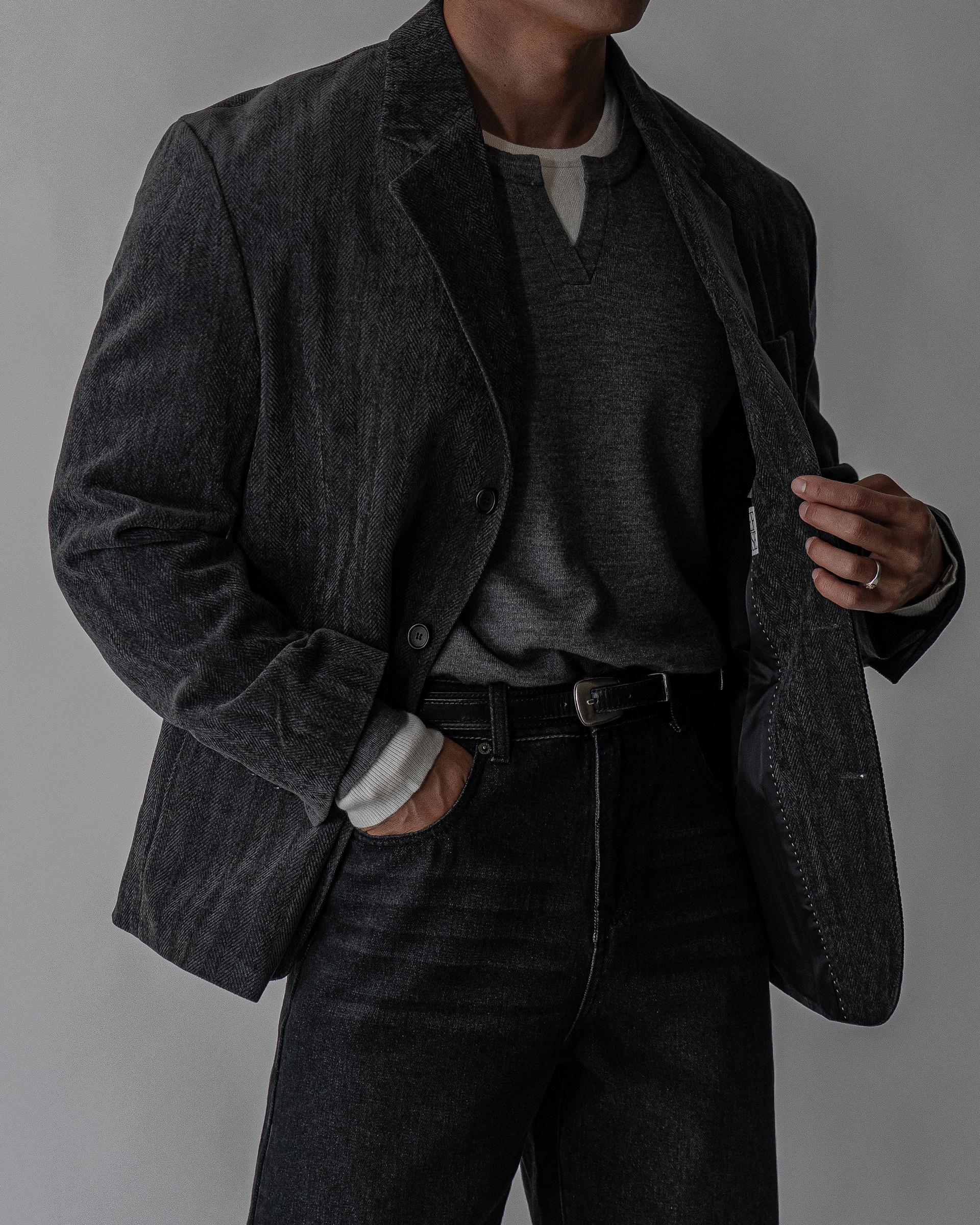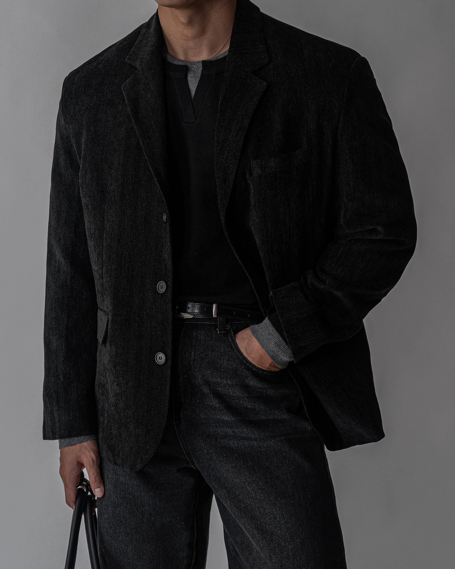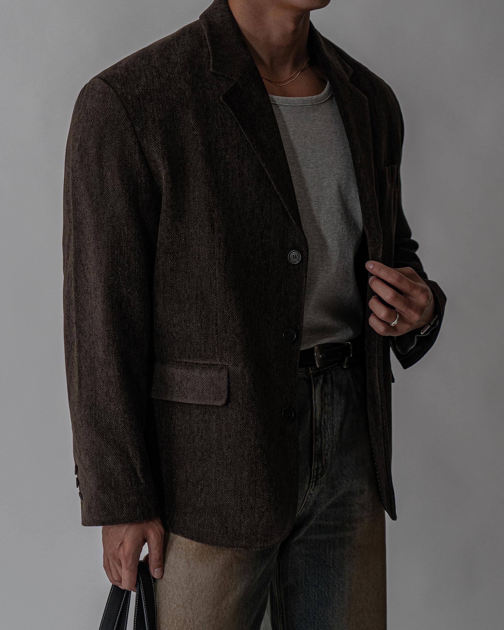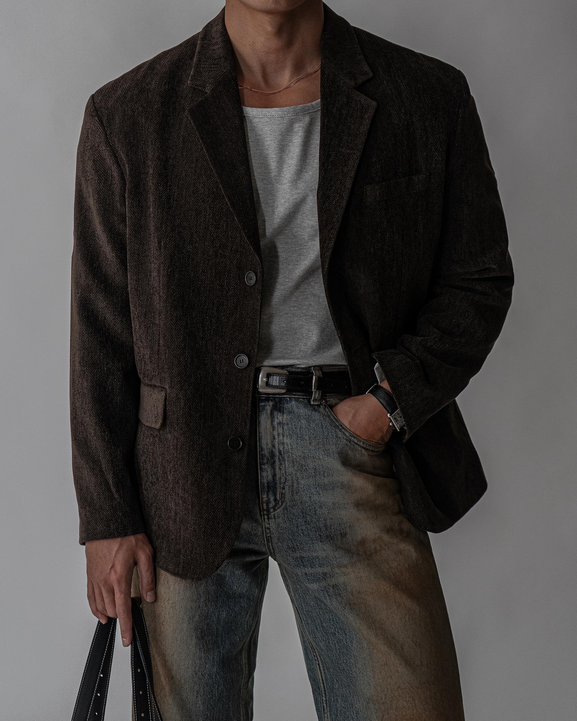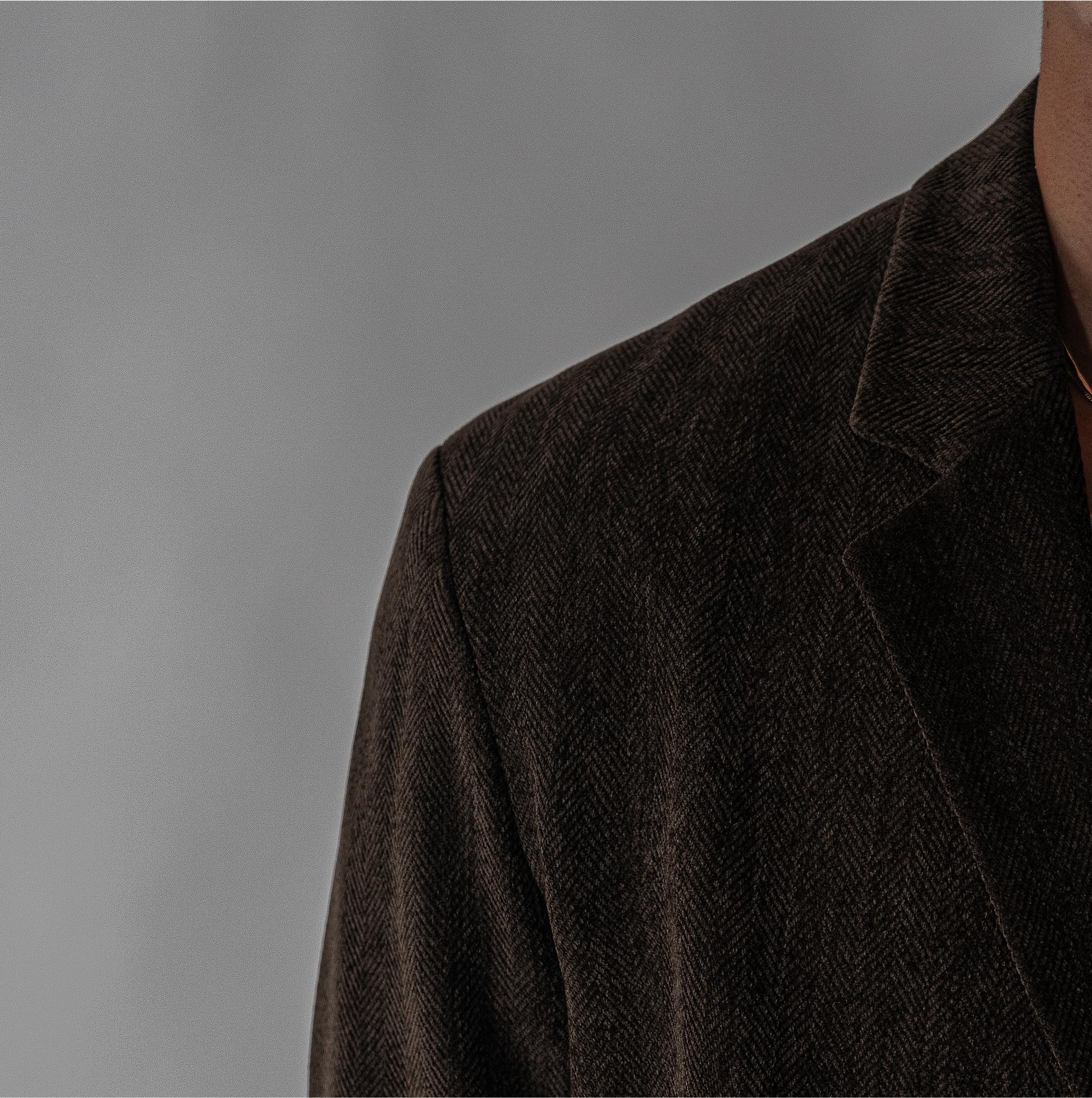 - 부드러운 터치감과 세련된 텍스처의 헤링본 블레이저