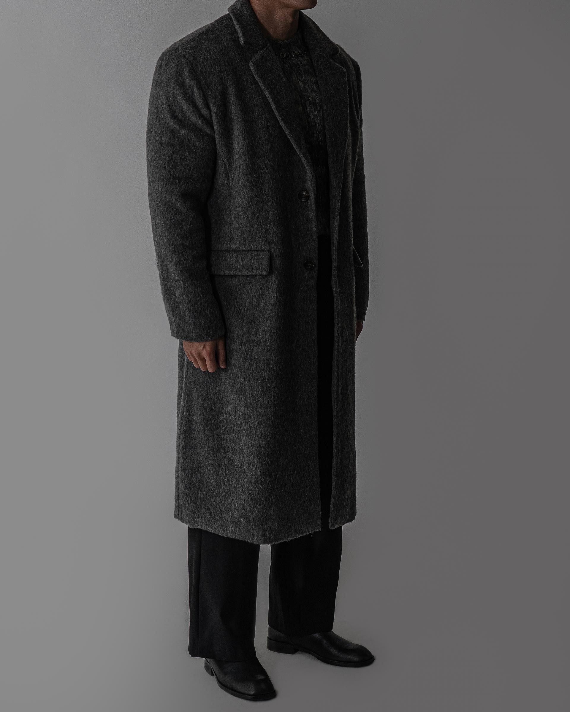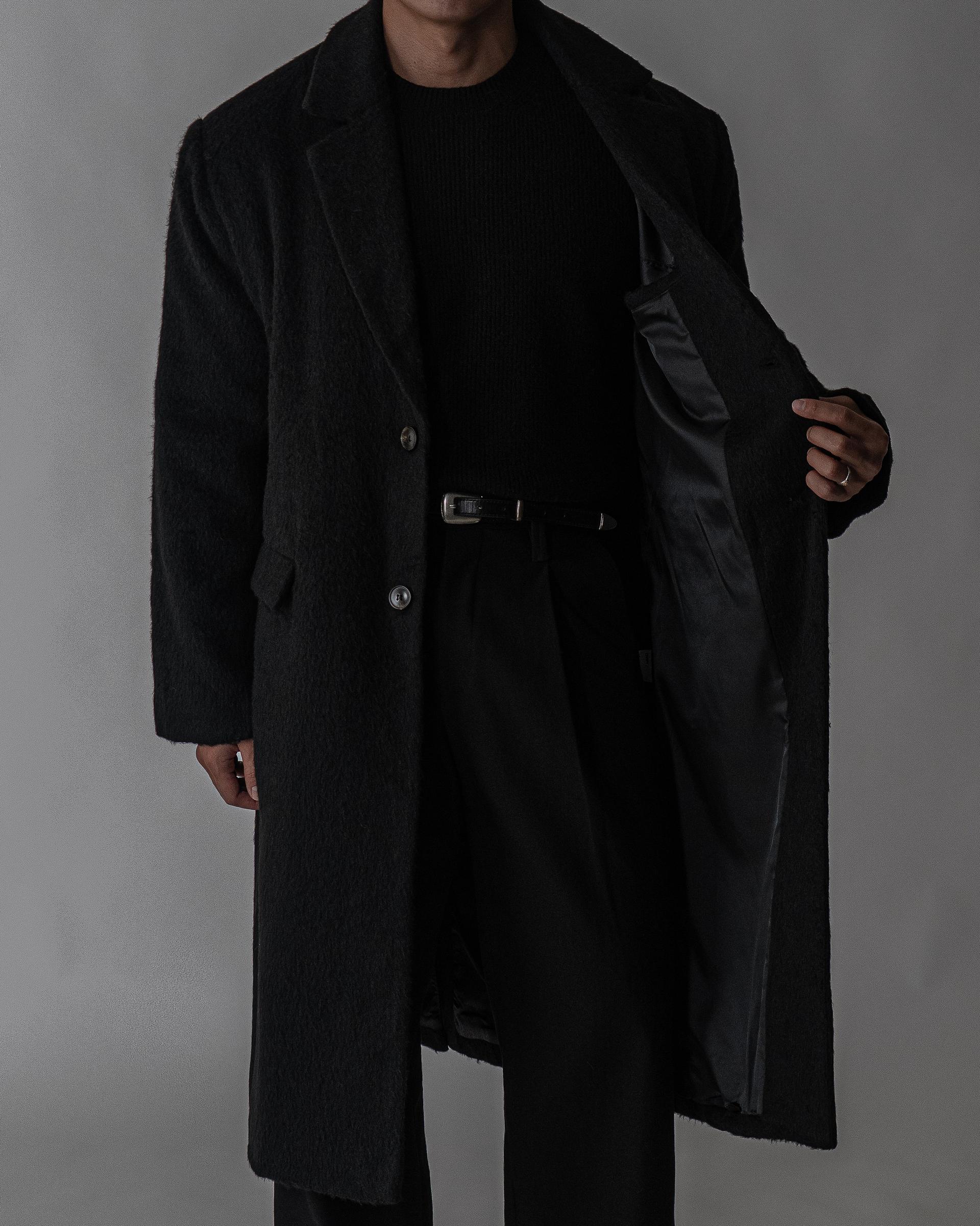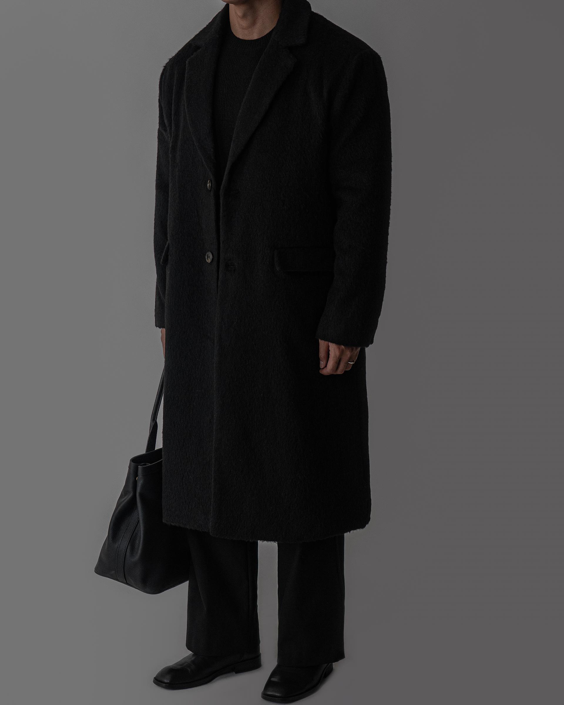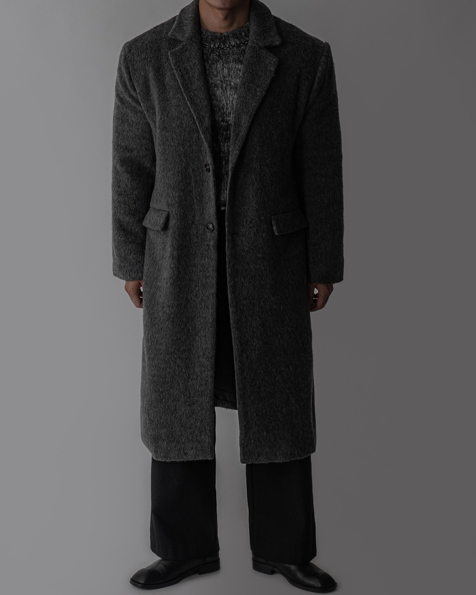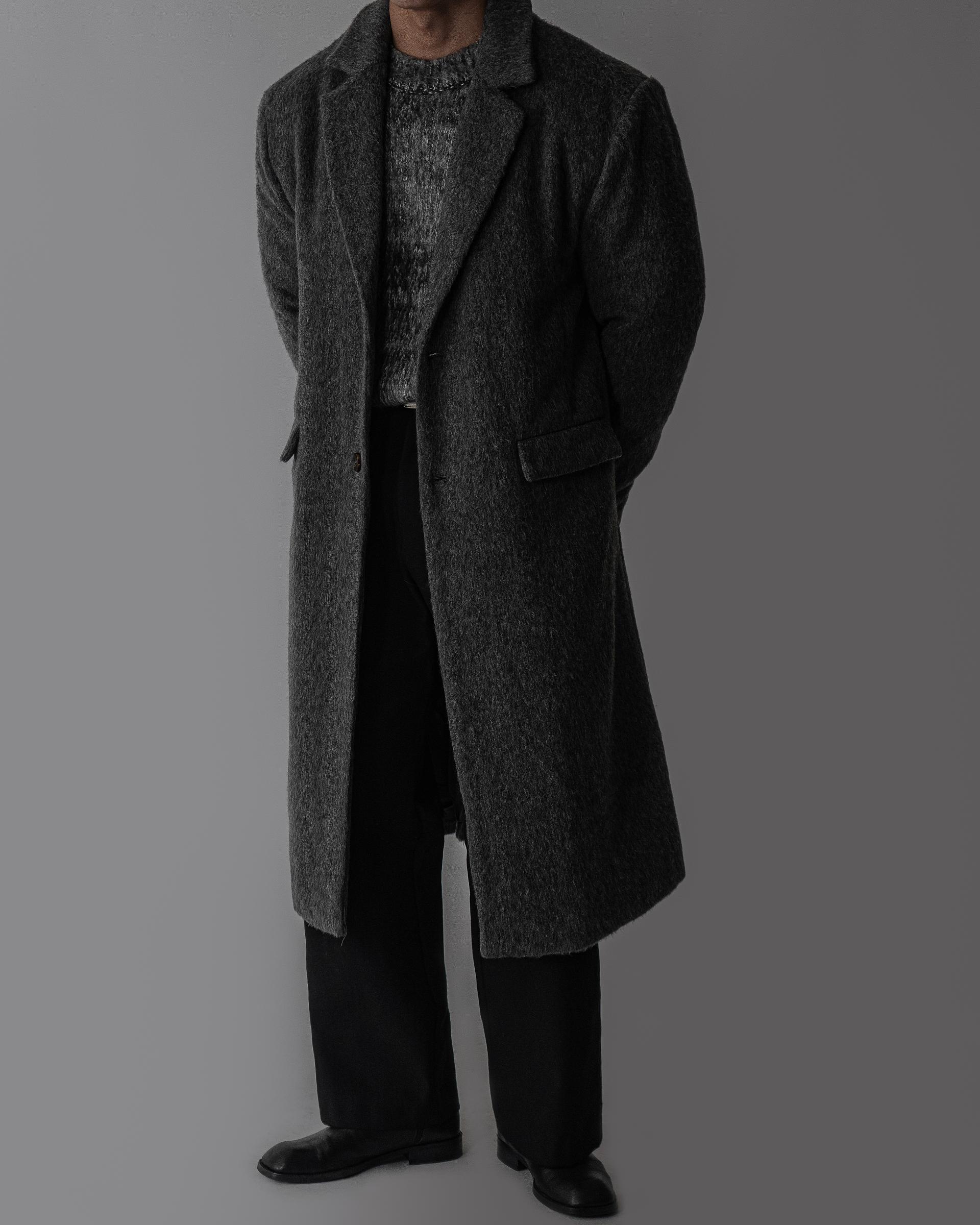 - 헤어리 텍스처가 돋보이는 클래식 싱글 롱 코트