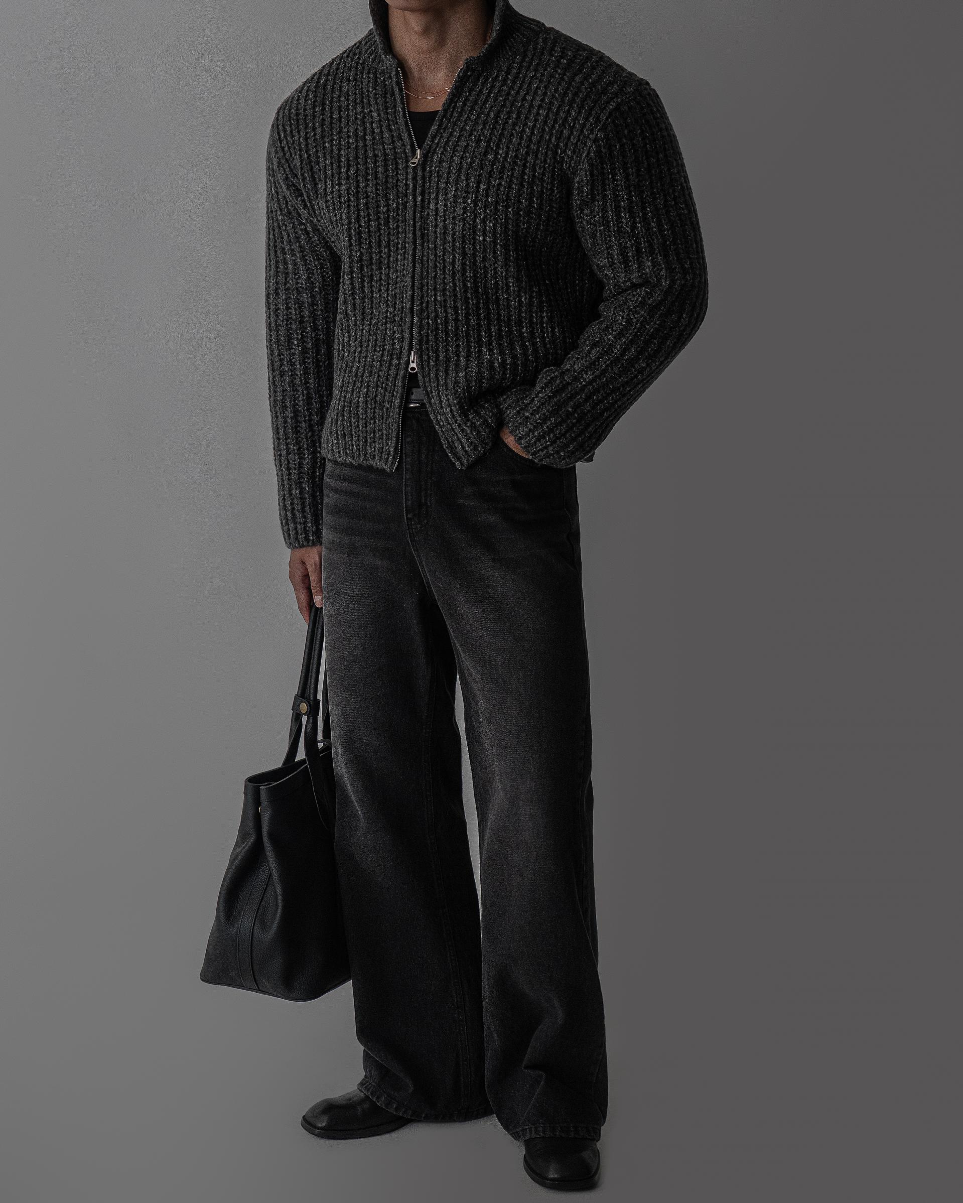하의 - 블랙 세미 플레어 데님 팬츠
