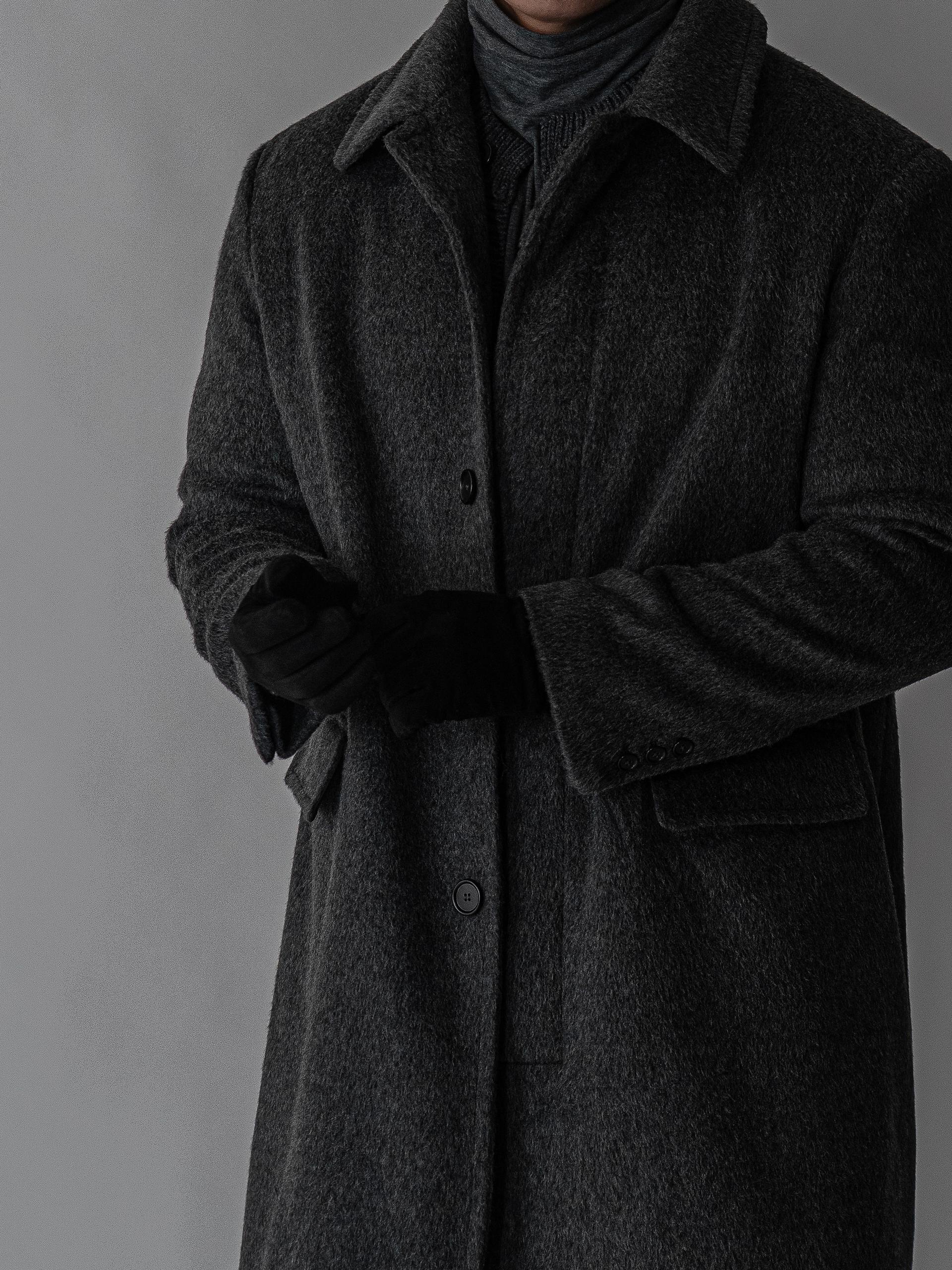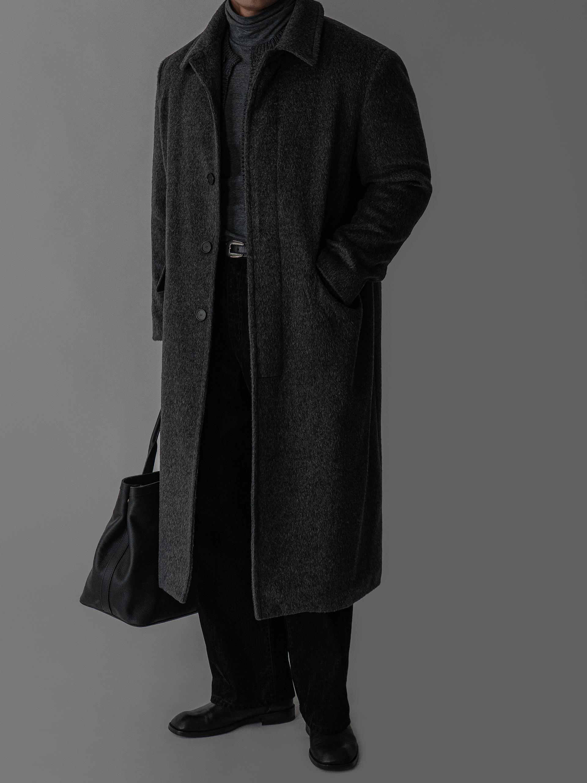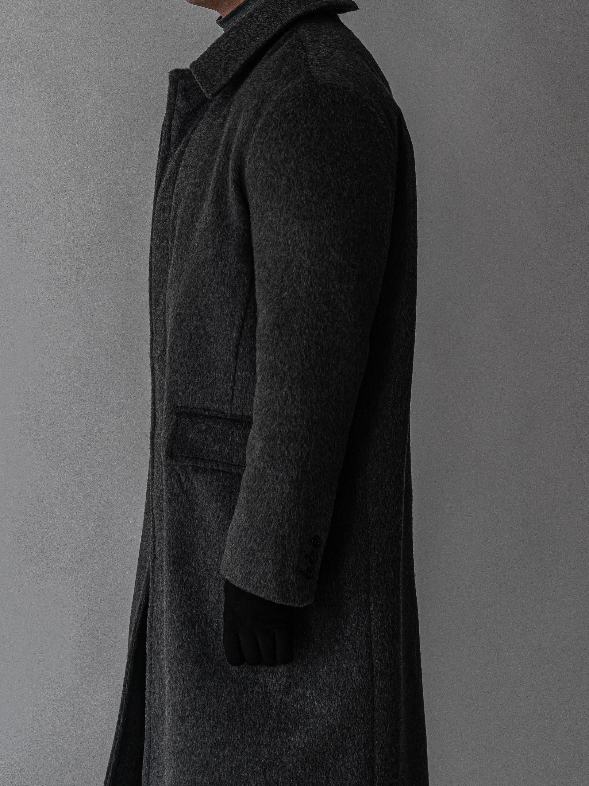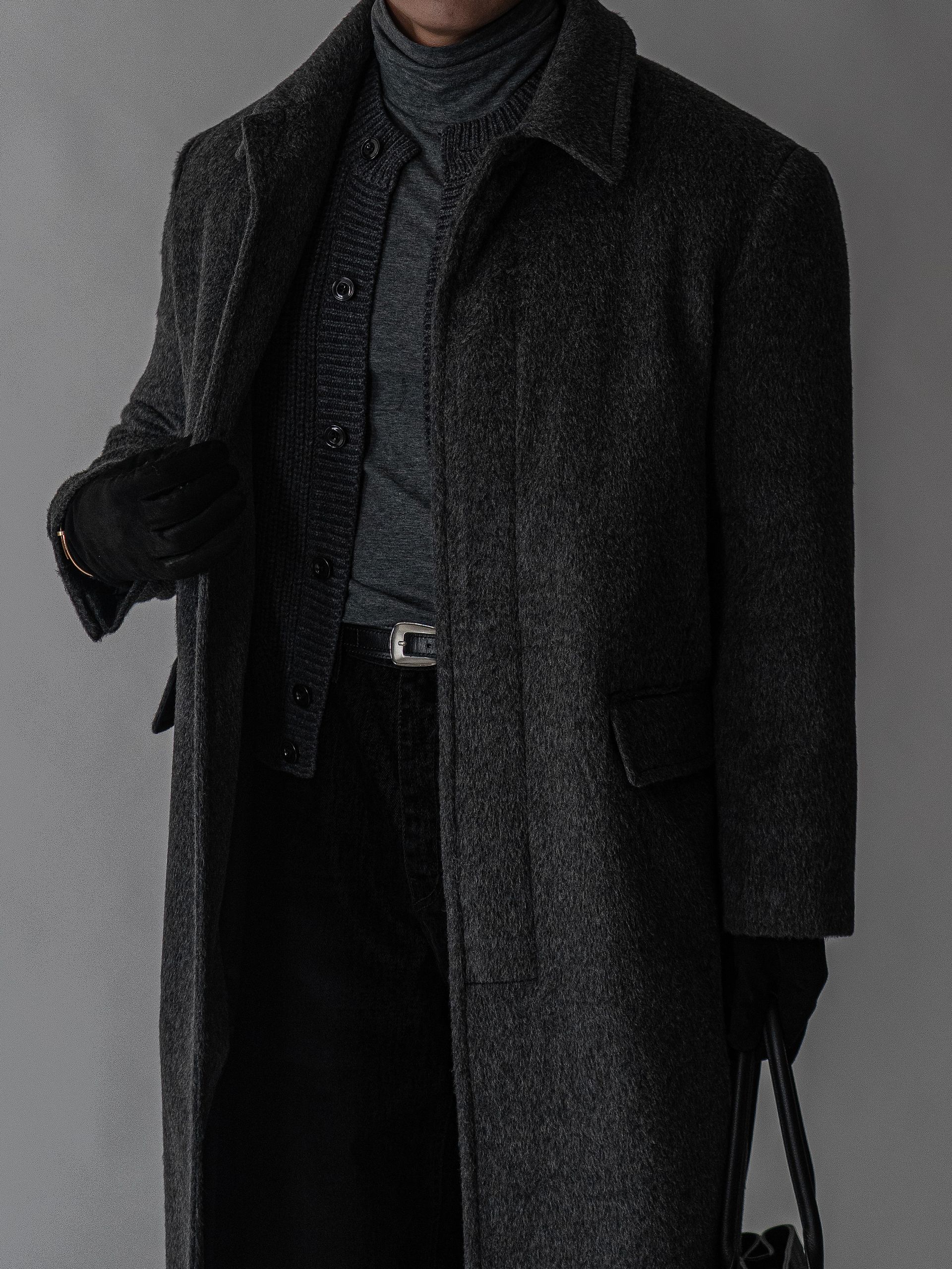 - 헤어리 텍스처가 특징인 폴리 80%, 울 20% 혼방의 롱 싱글 코트