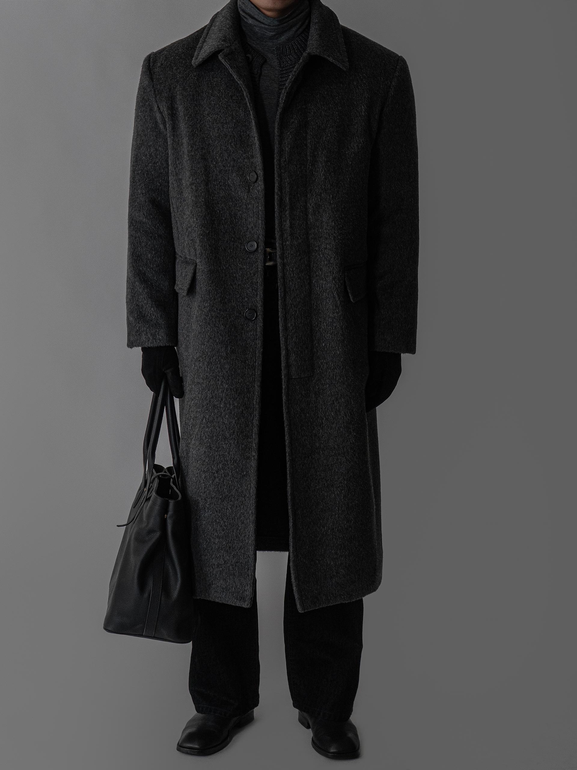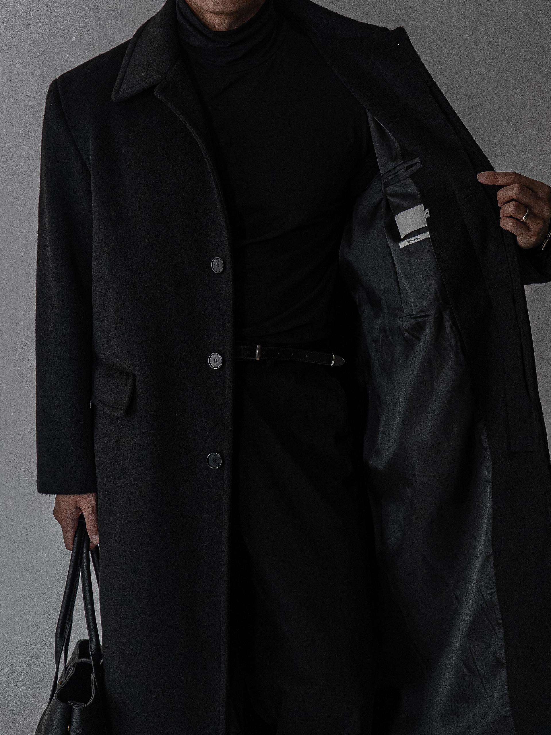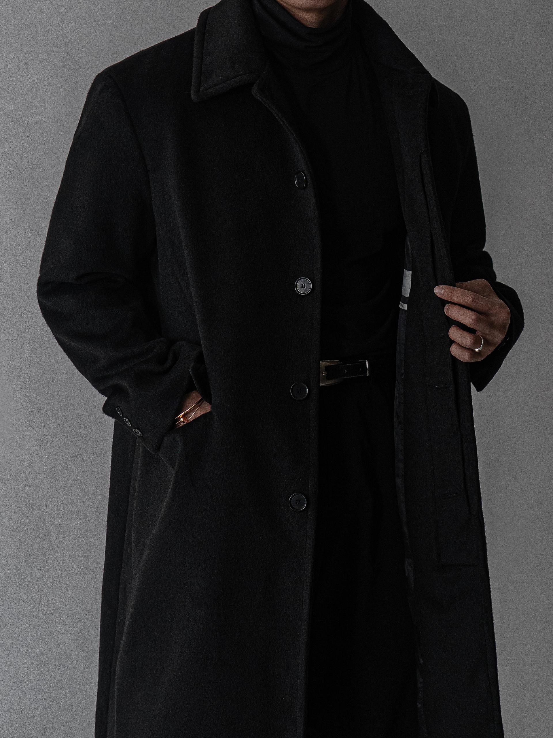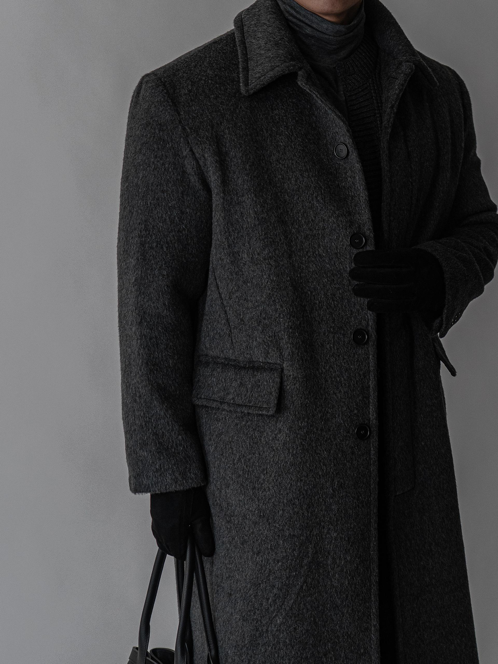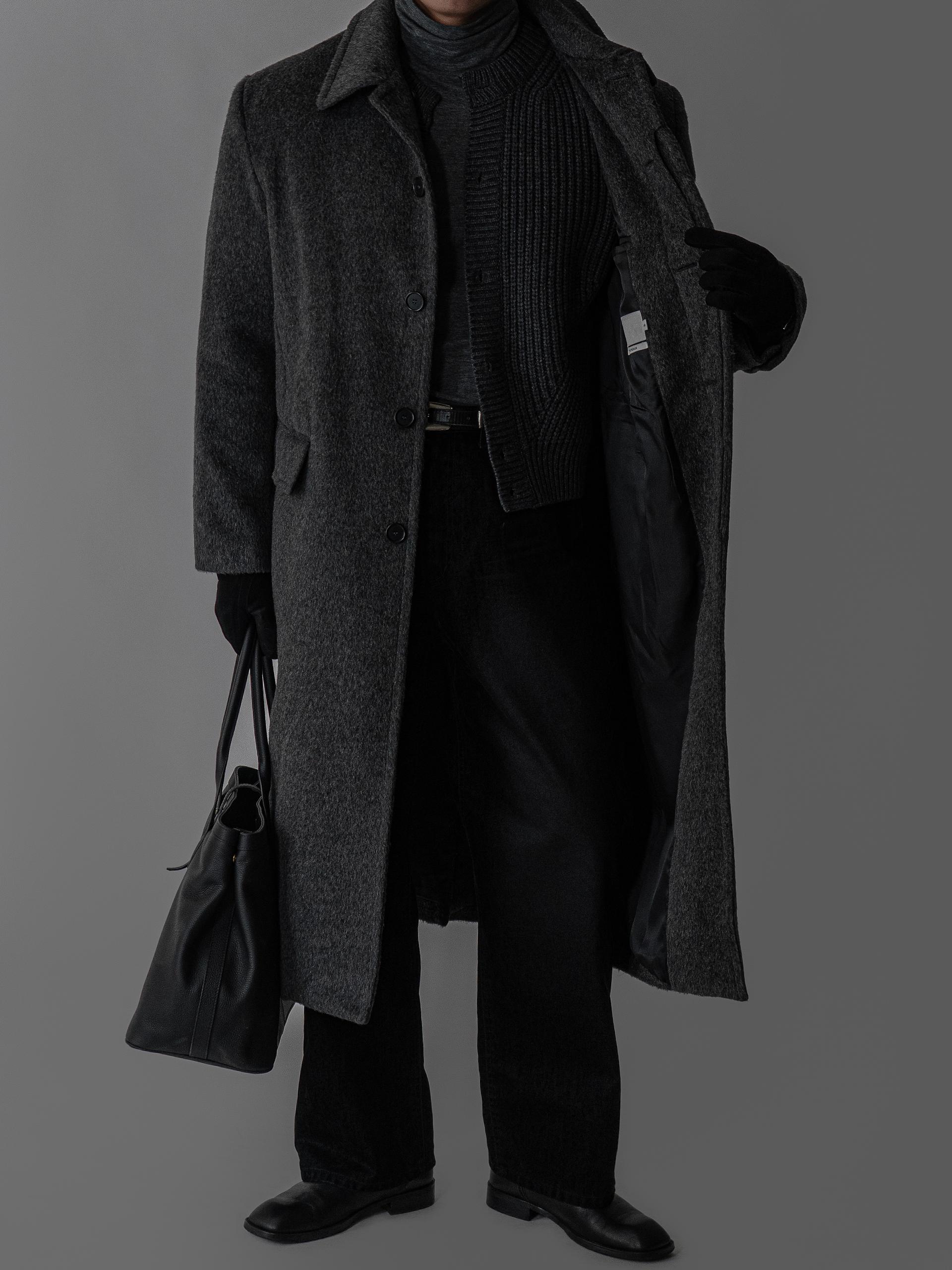 - 헤어리 텍스처가 특징인 폴리 80%, 울 20% 혼방의 롱 싱글 코트