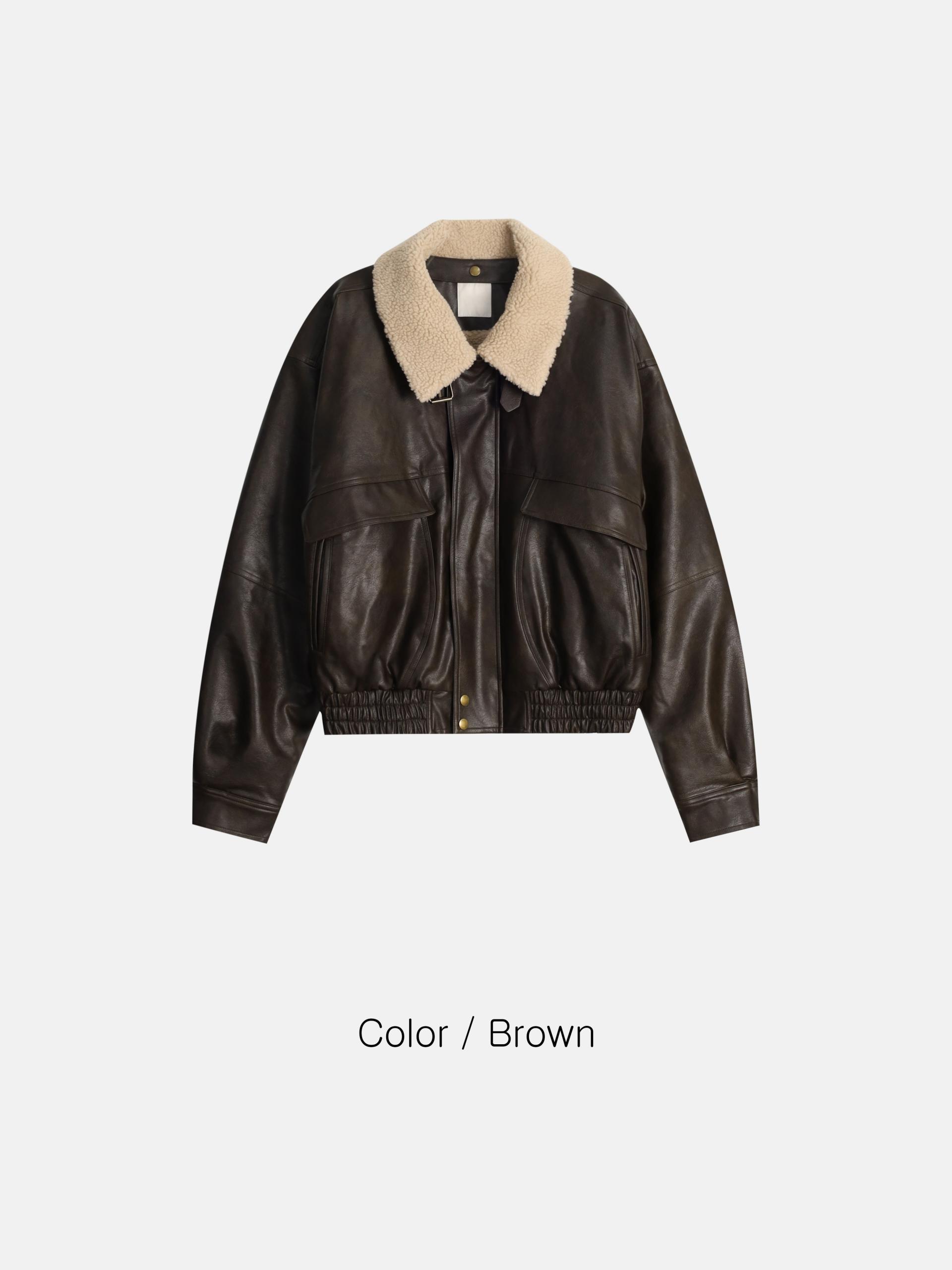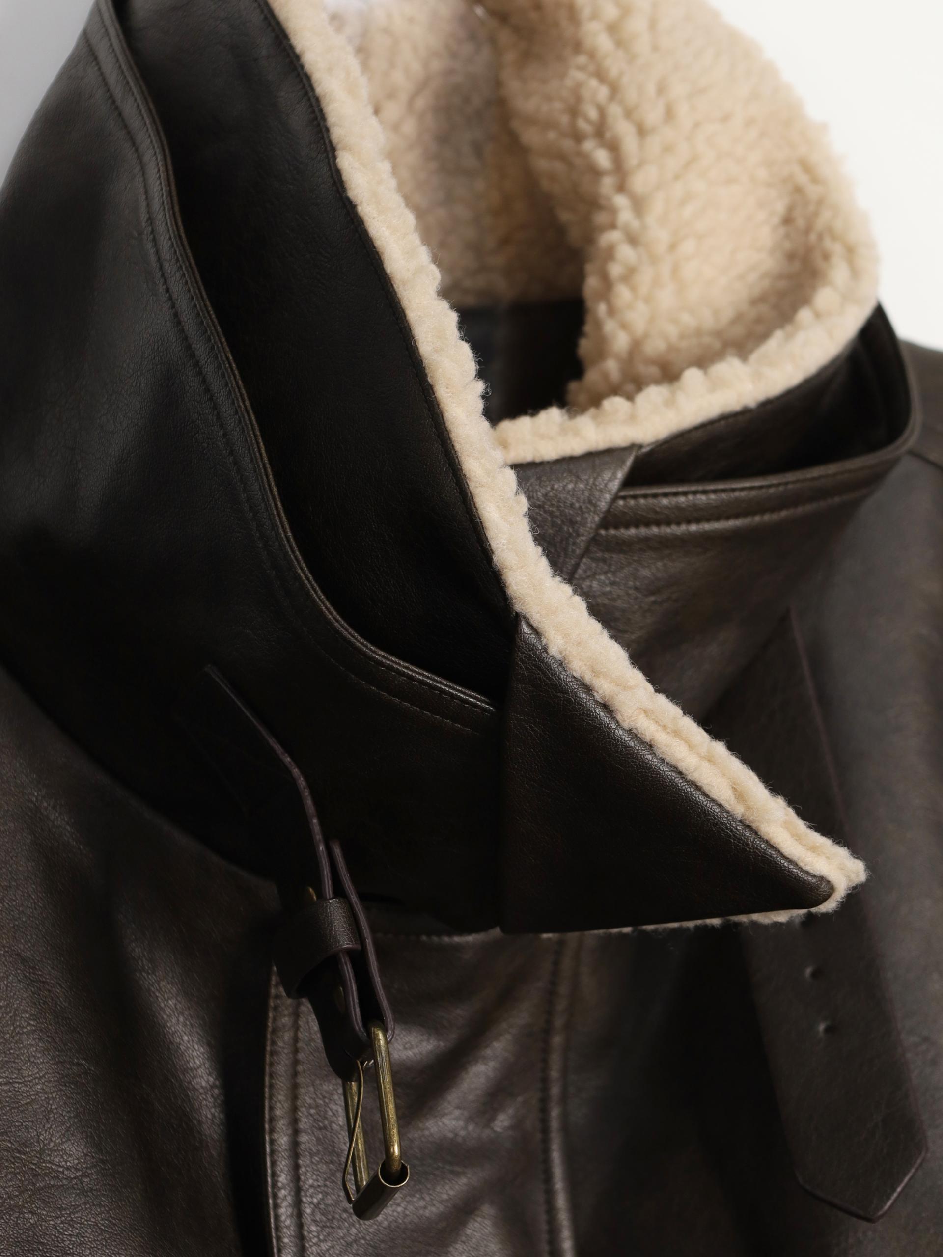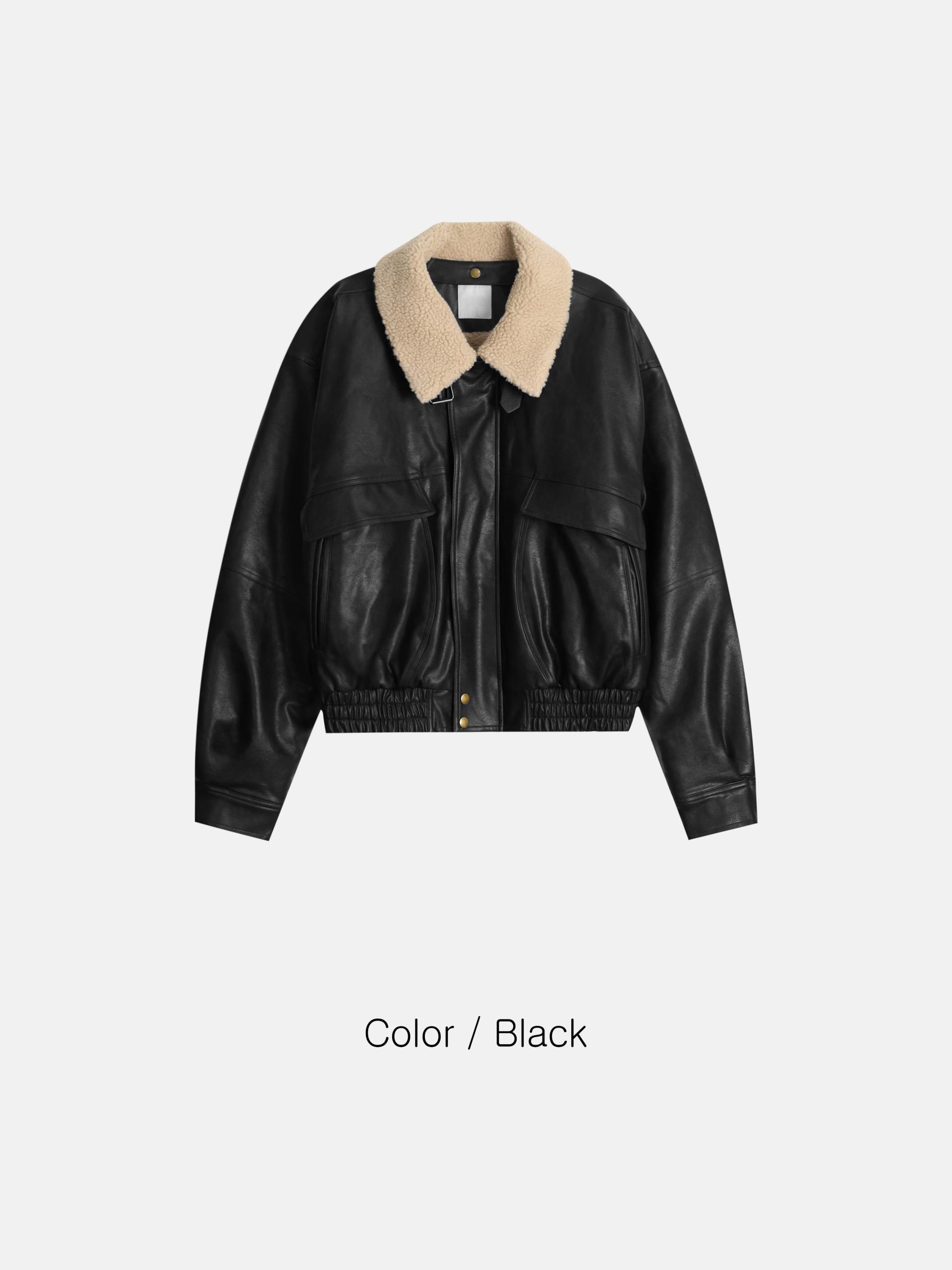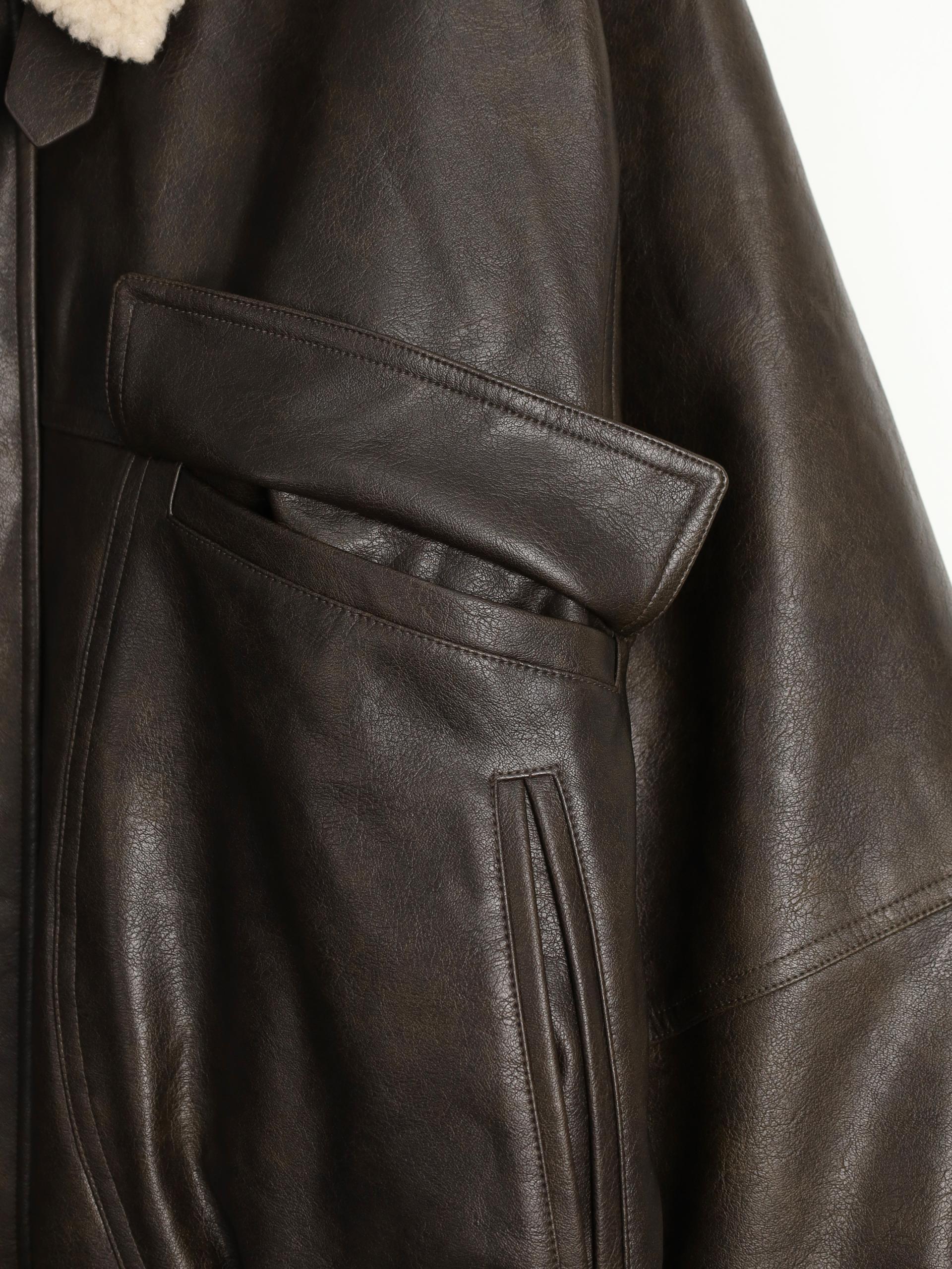 - 크롭 오버핏 에코 레더 무스탕으로 뛰어난 체형 보정 효과