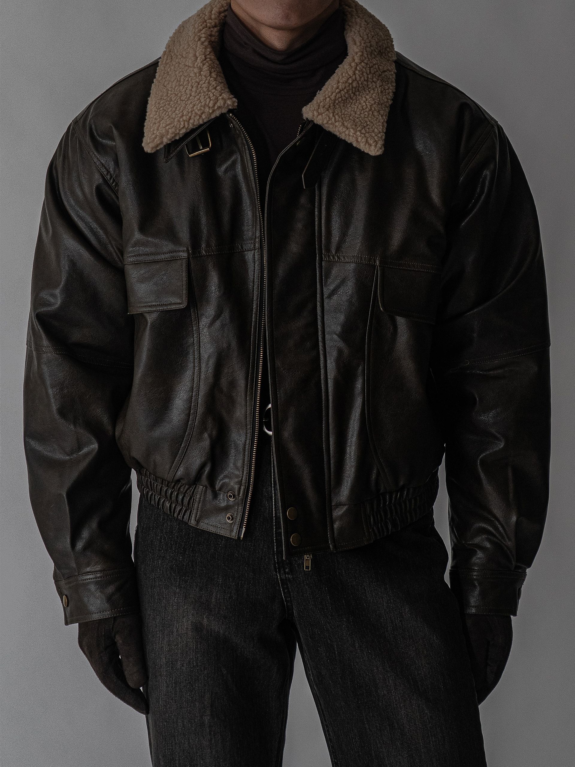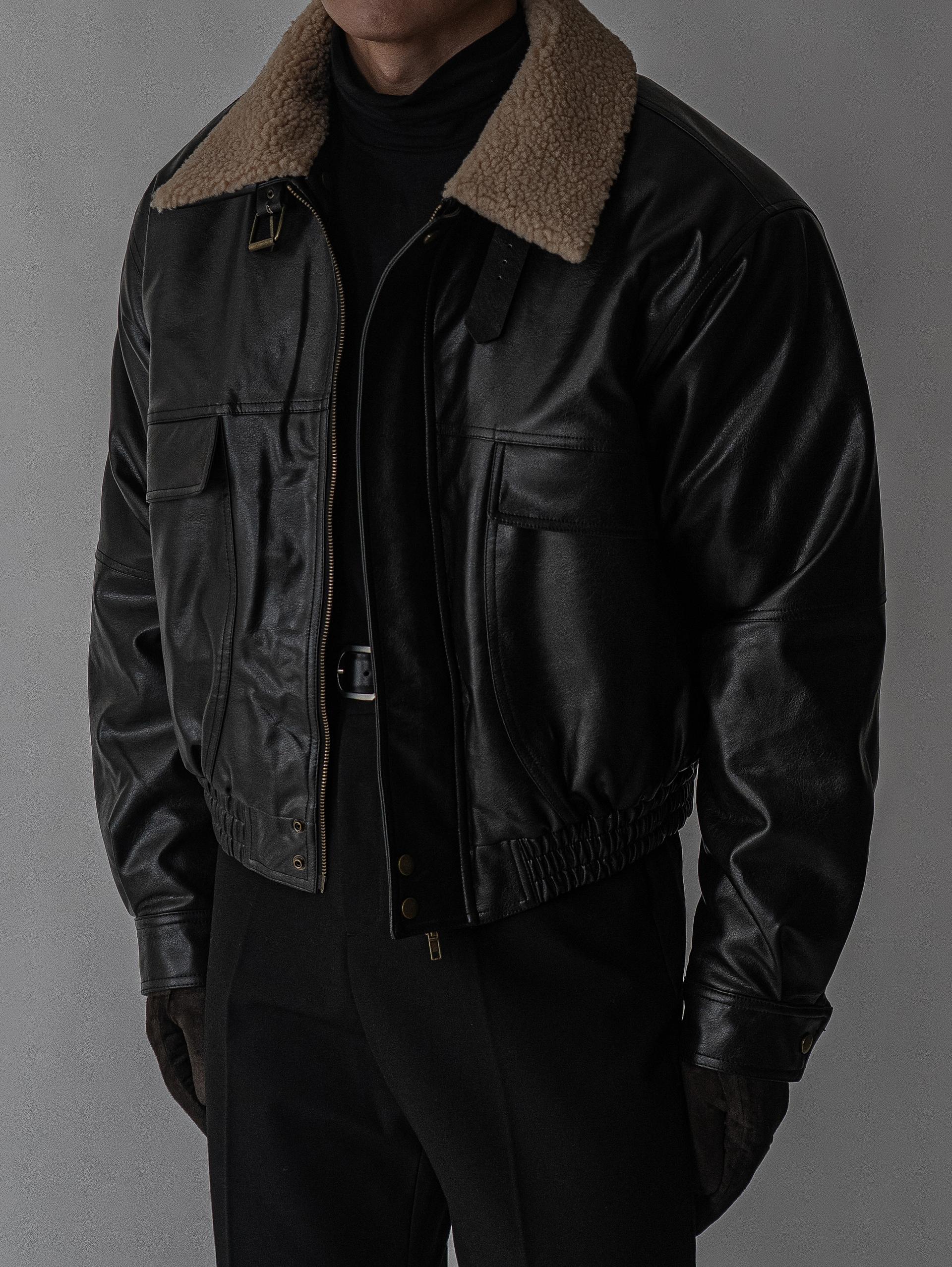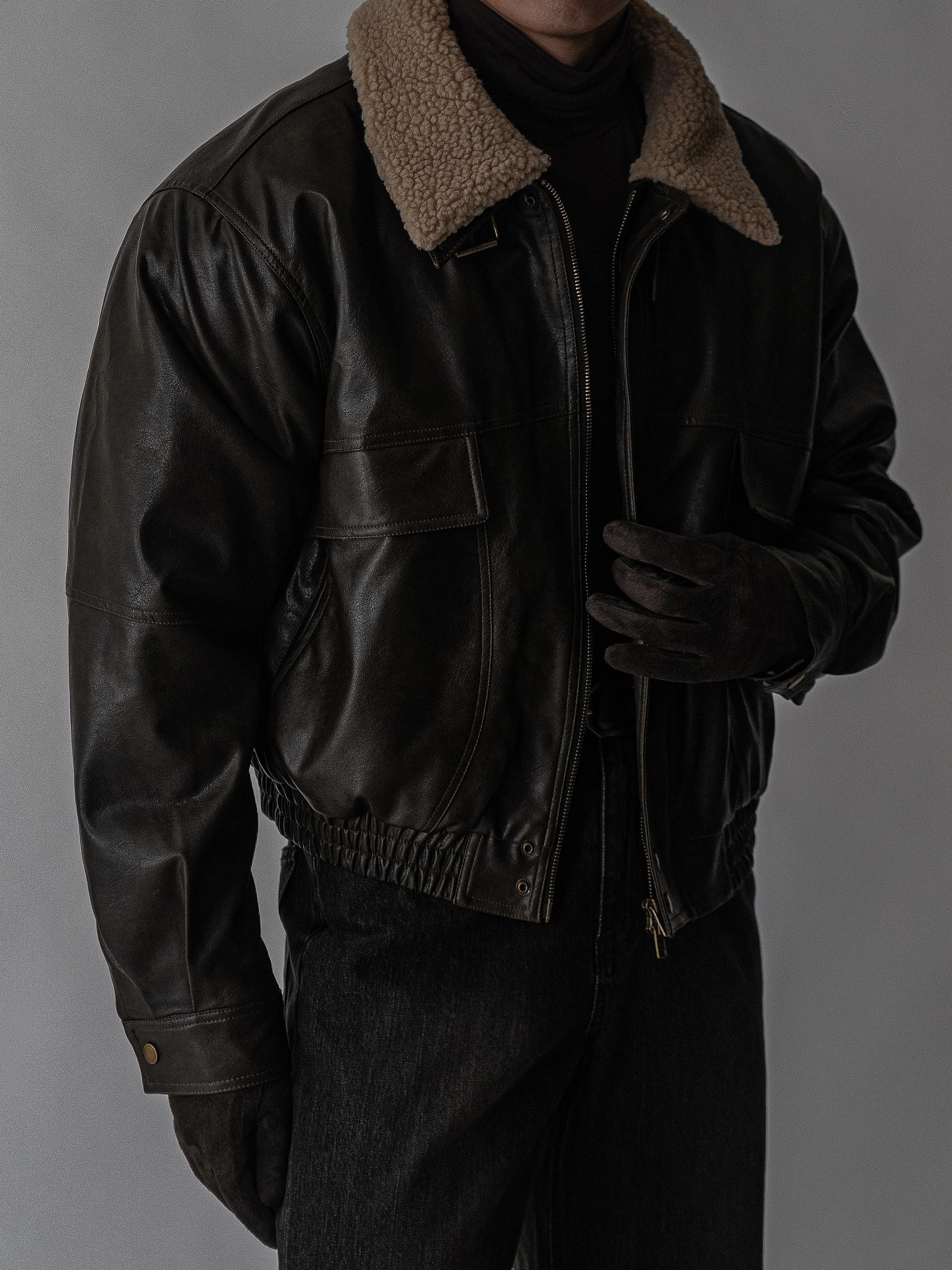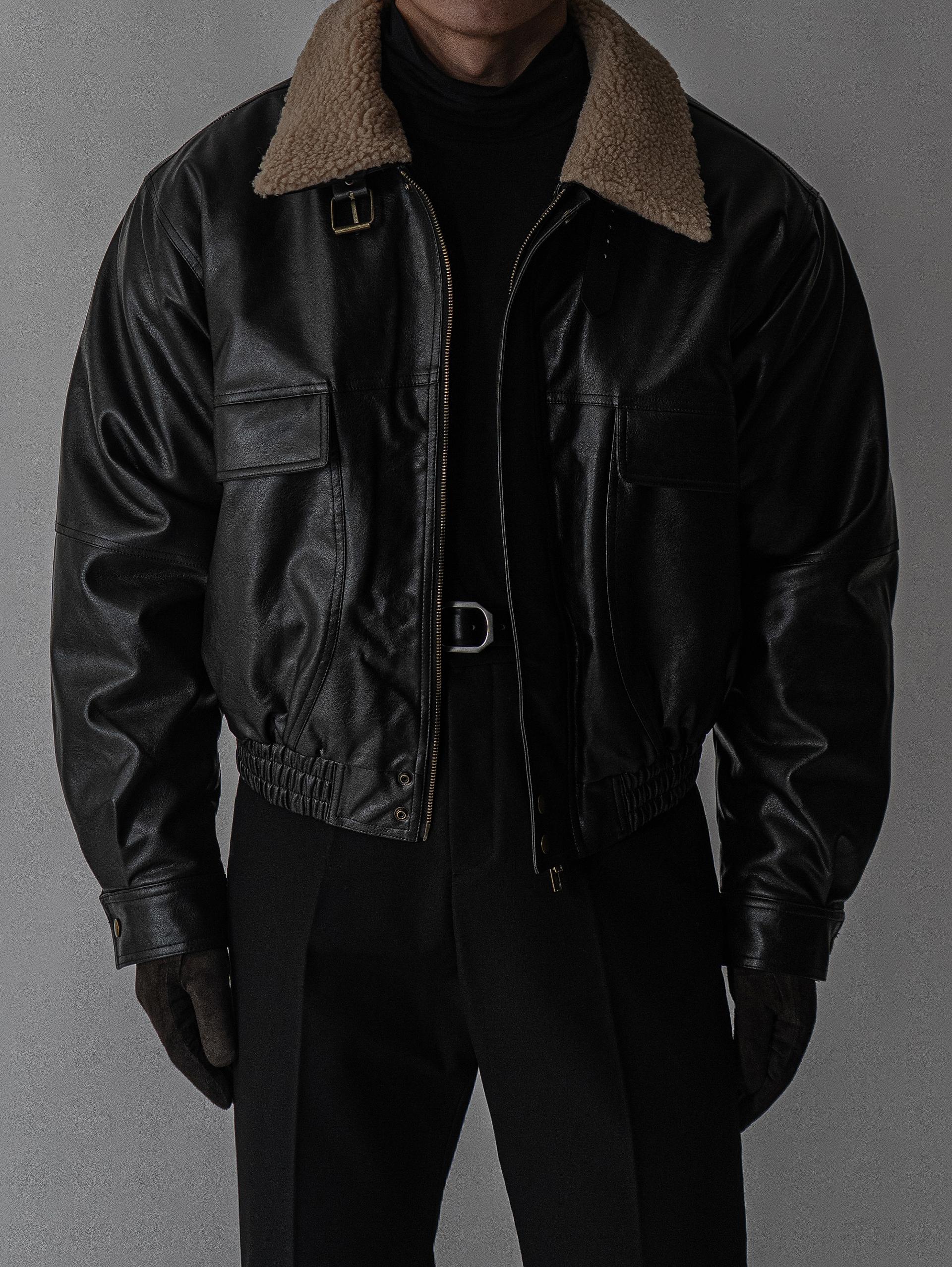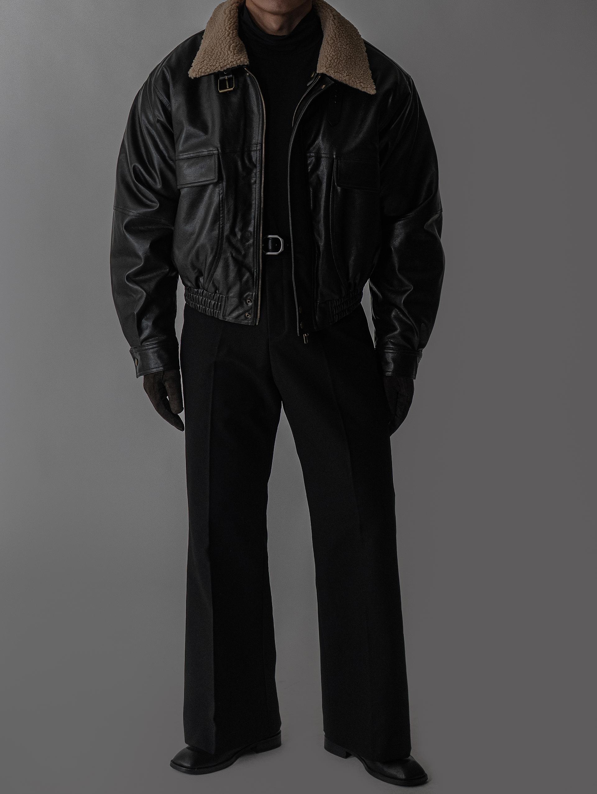 - 크롭 오버핏 에코 레더 무스탕으로 뛰어난 체형 보정 효과