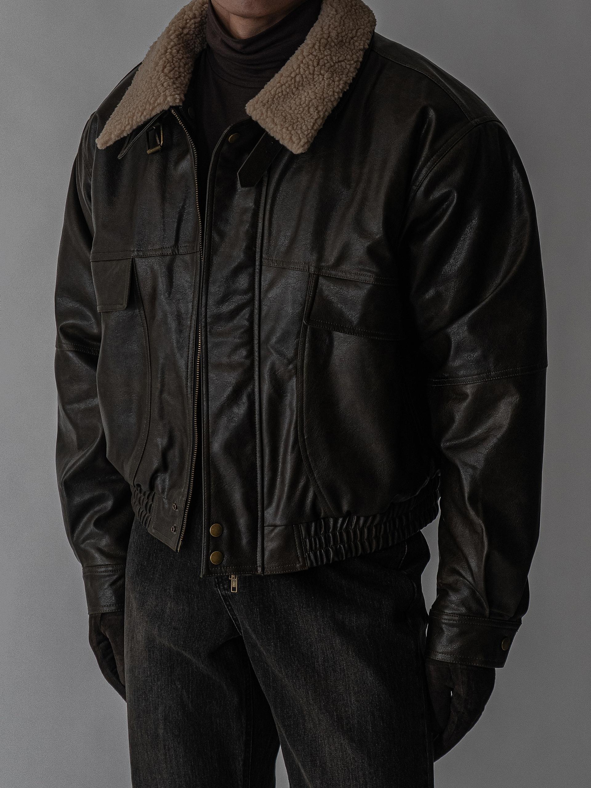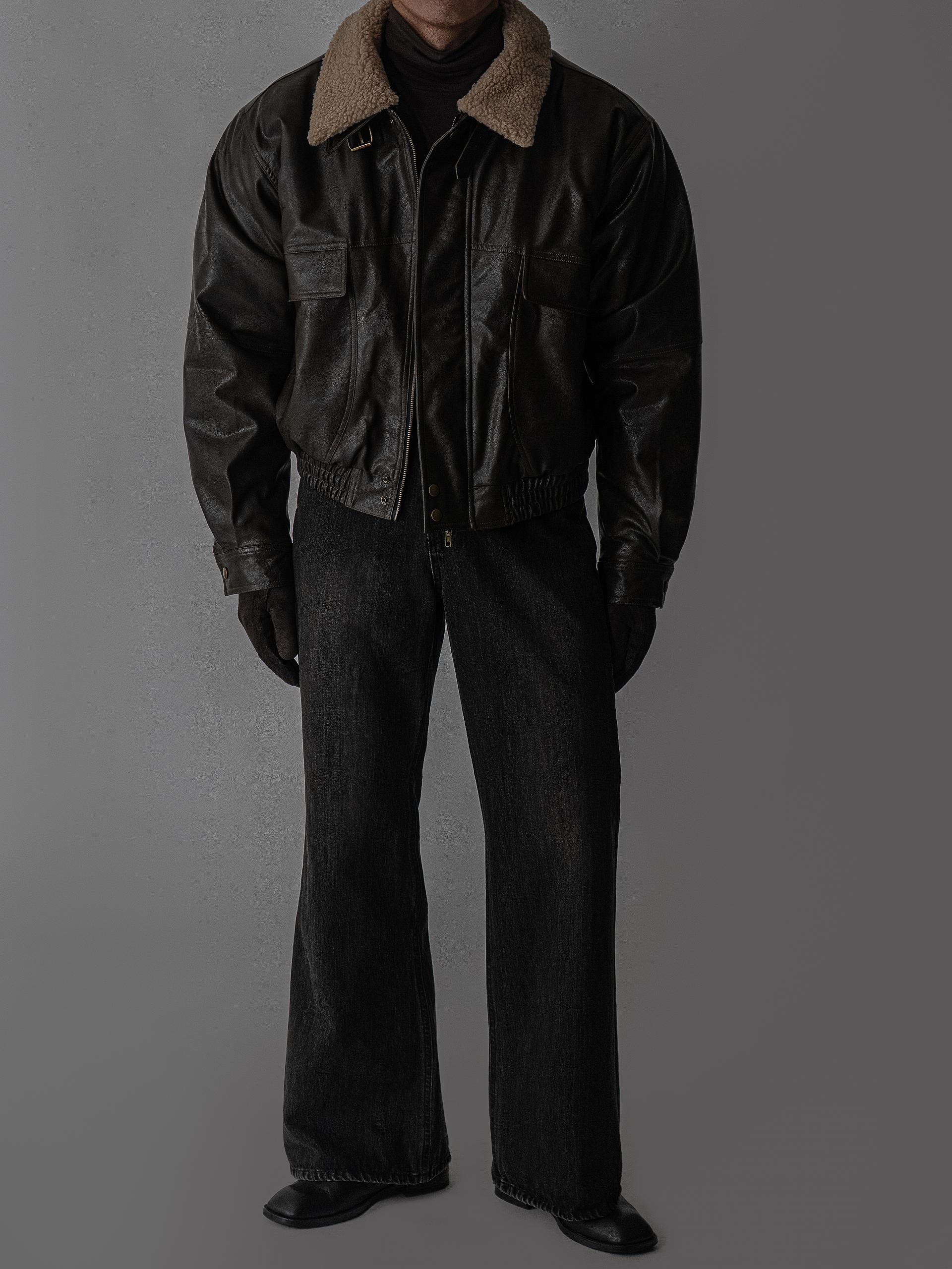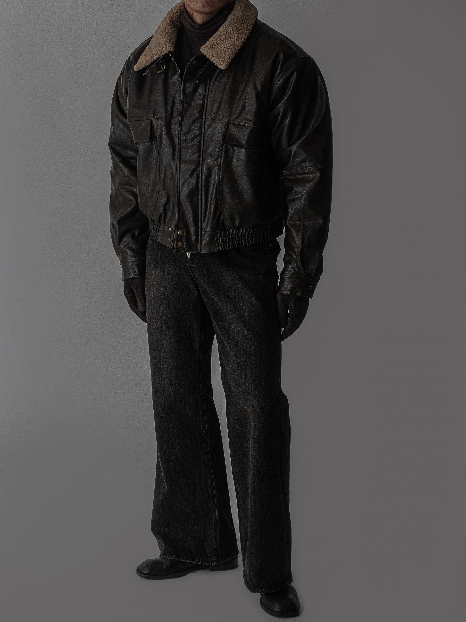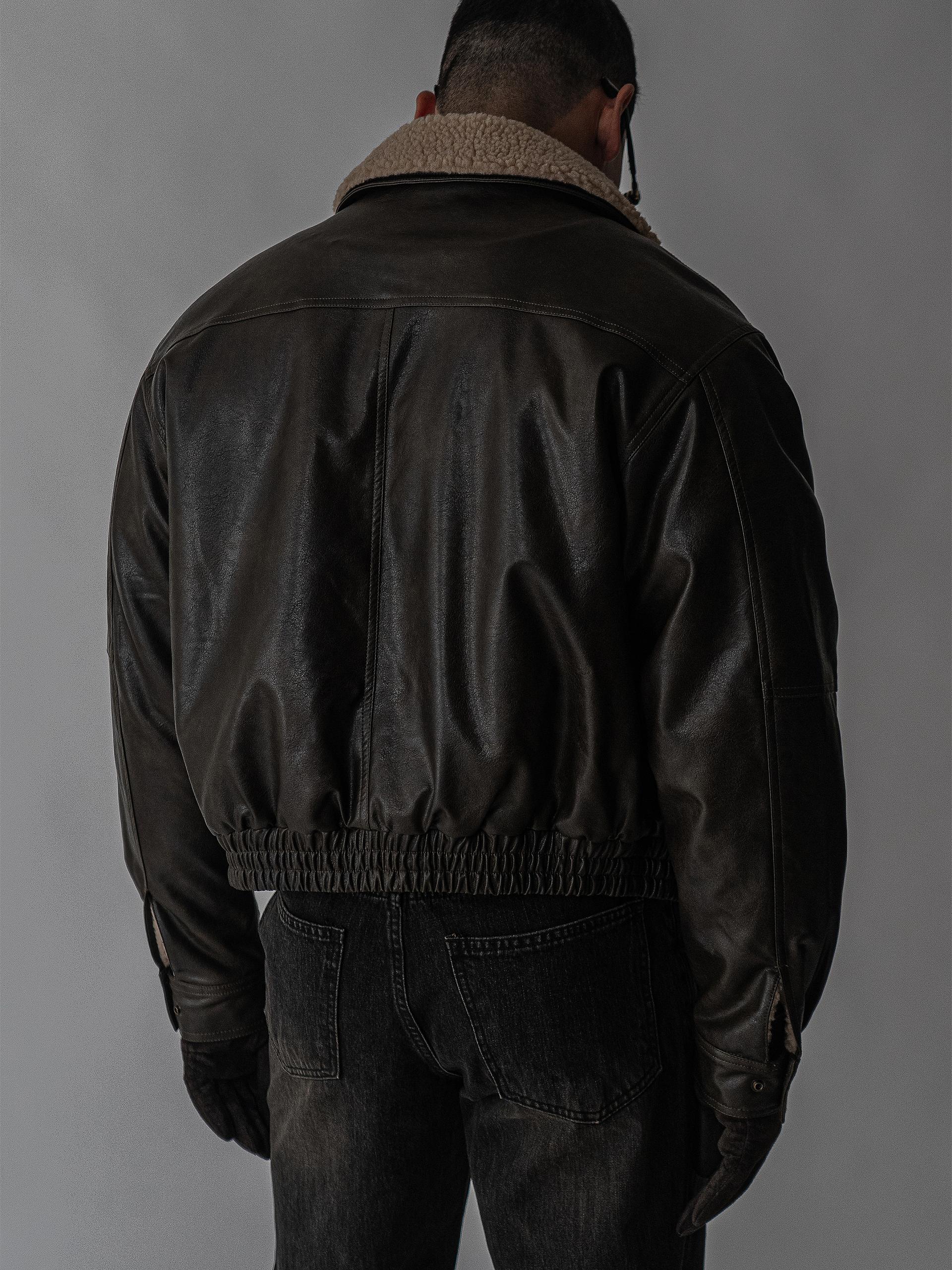 - 크롭 오버핏 에코 레더 무스탕으로 뛰어난 체형 보정 효과