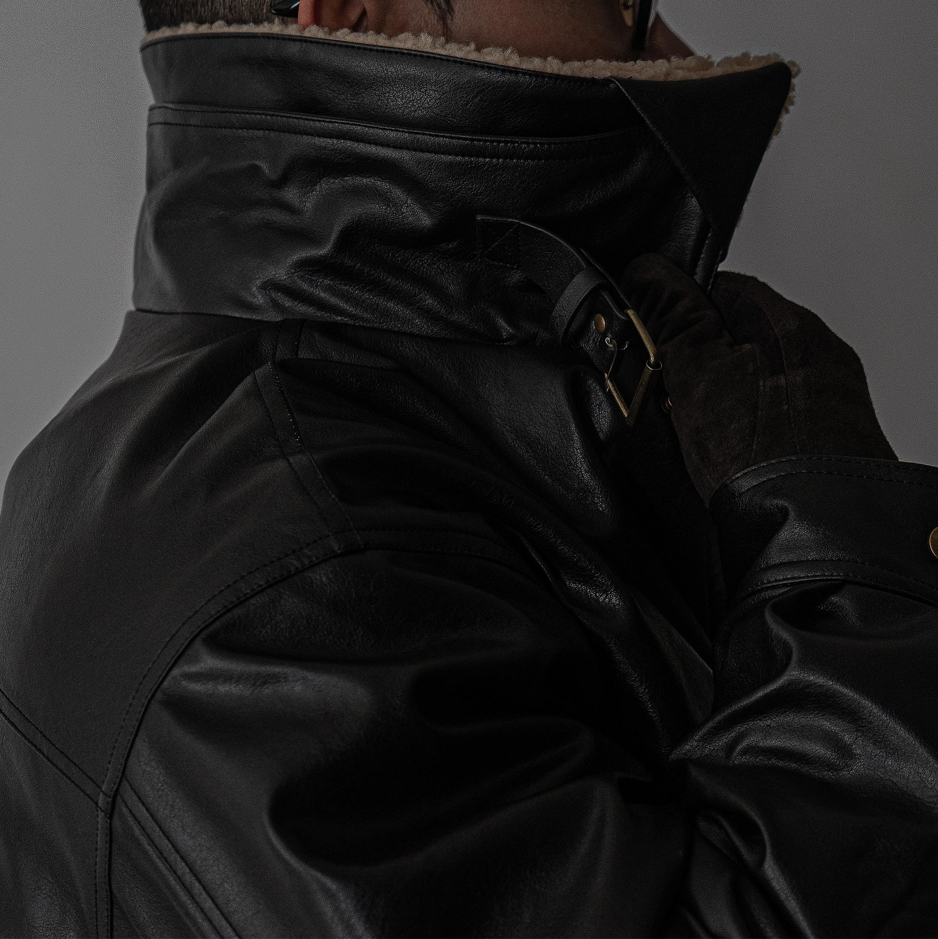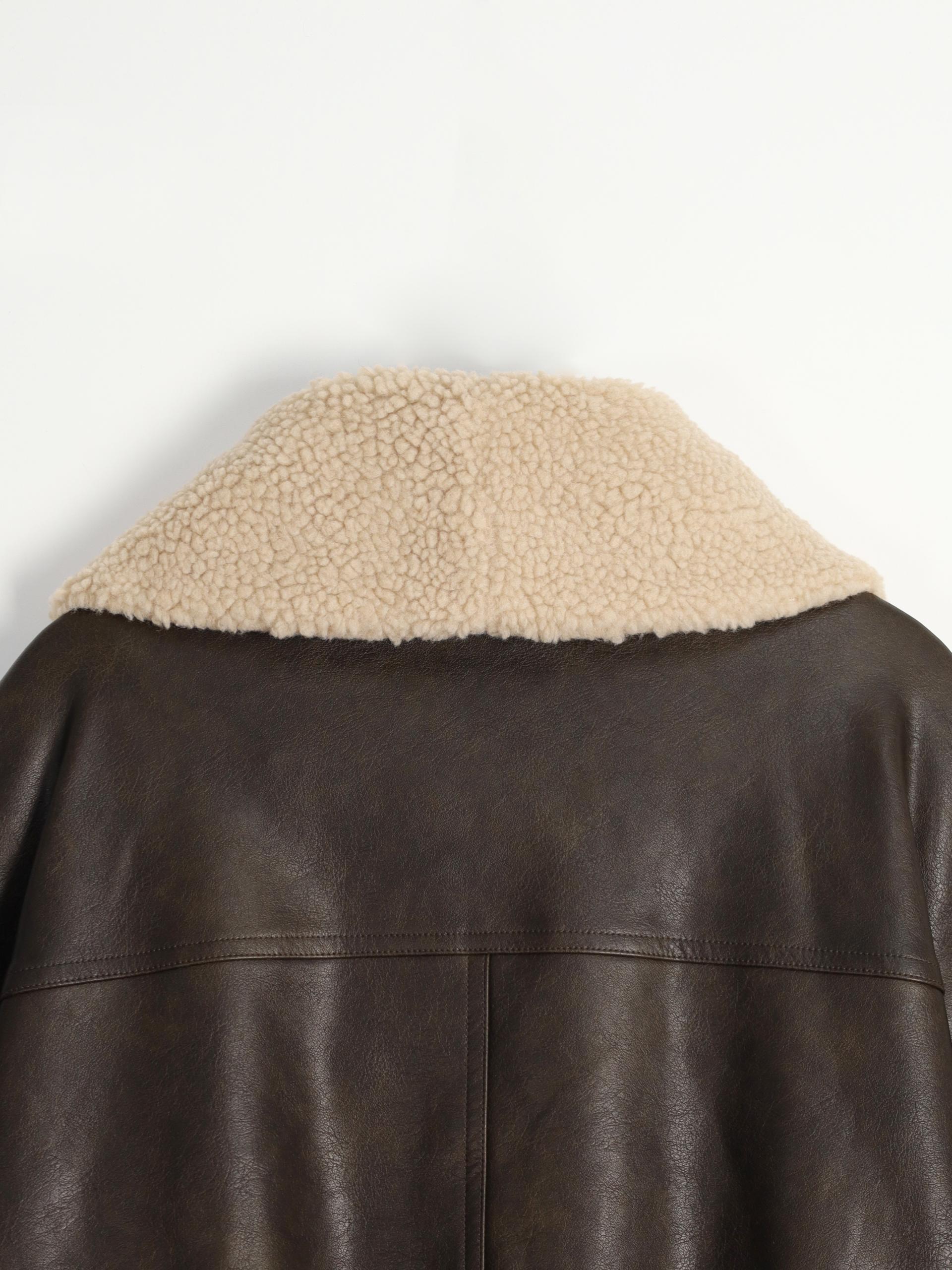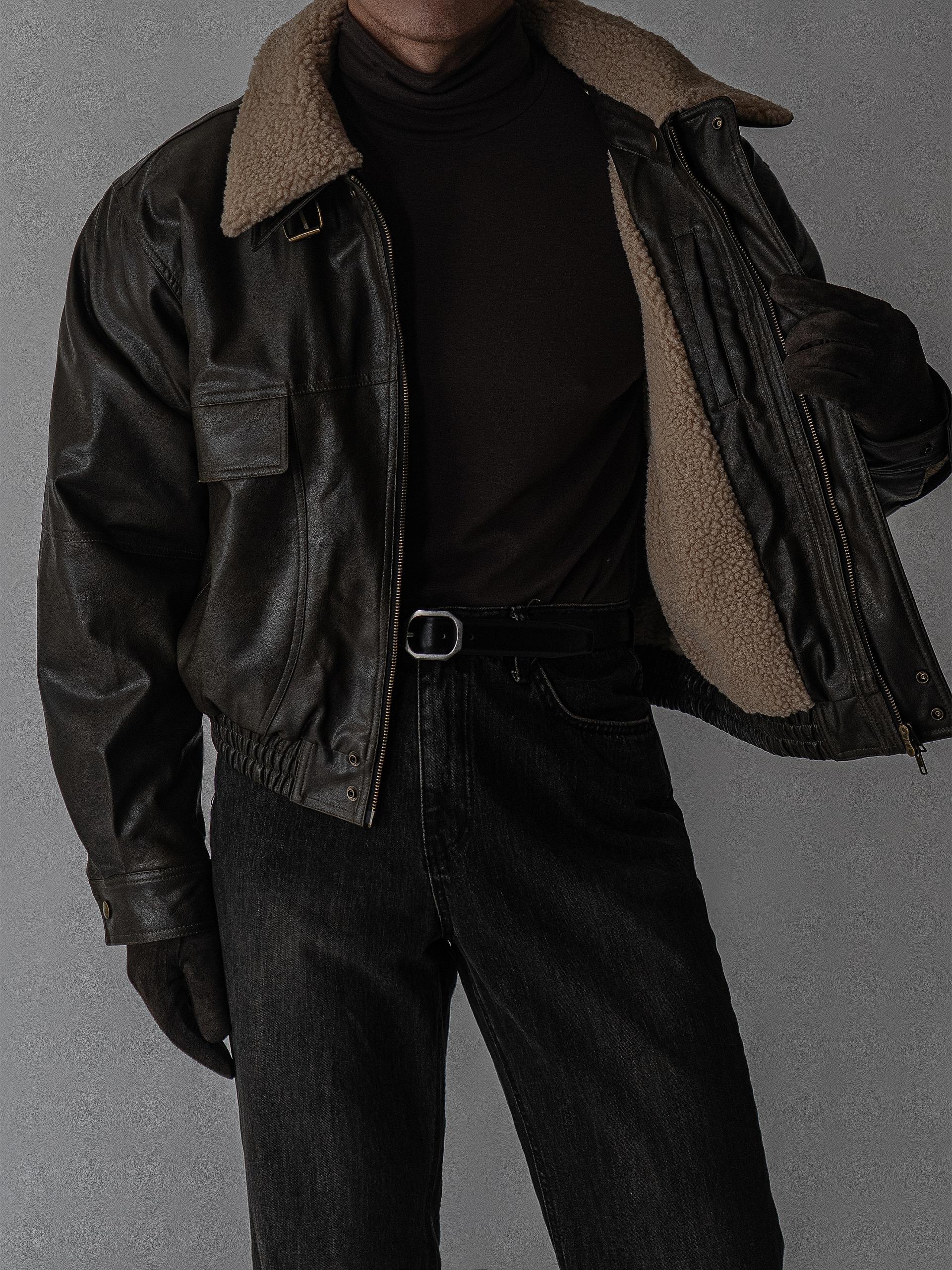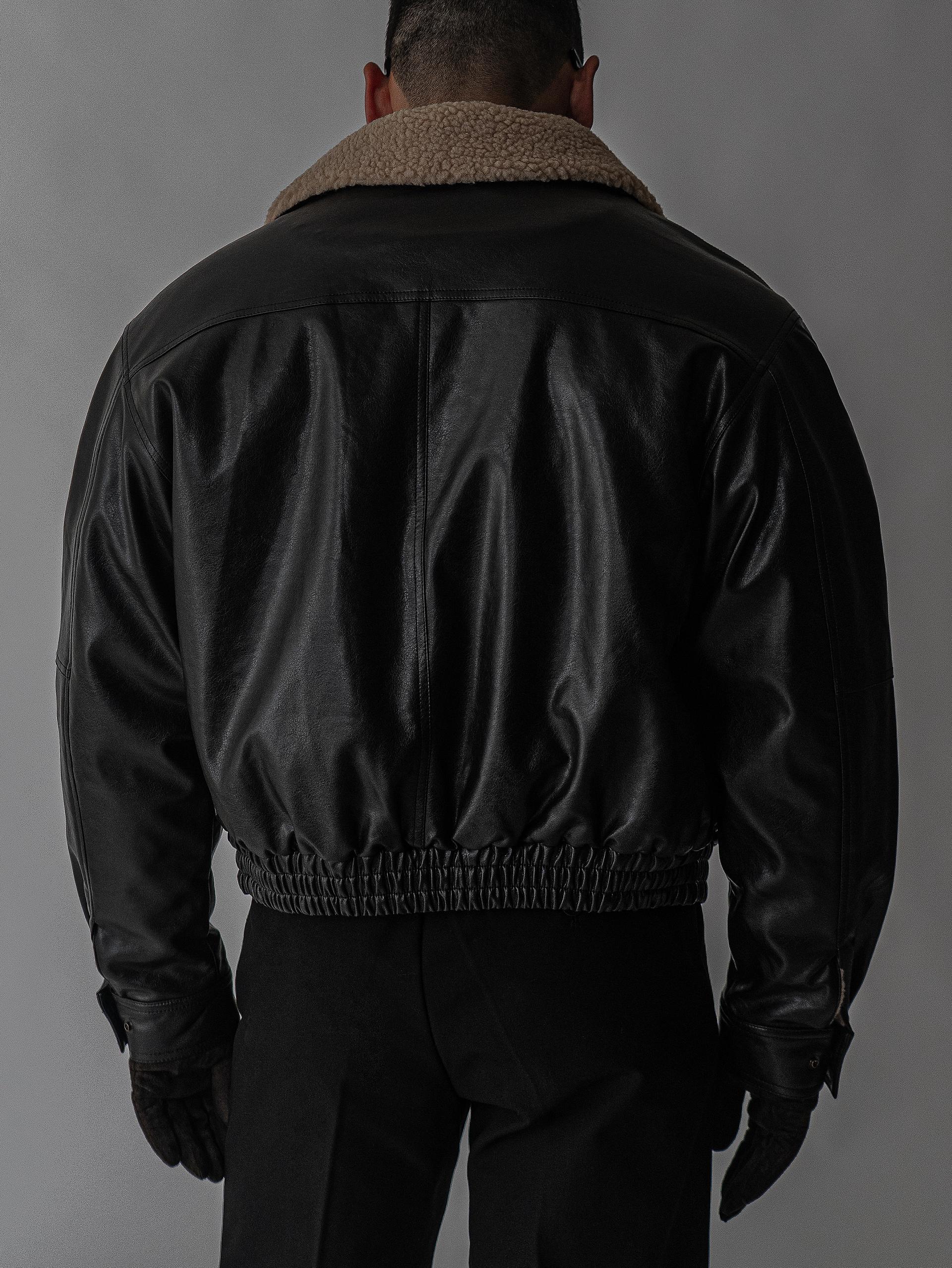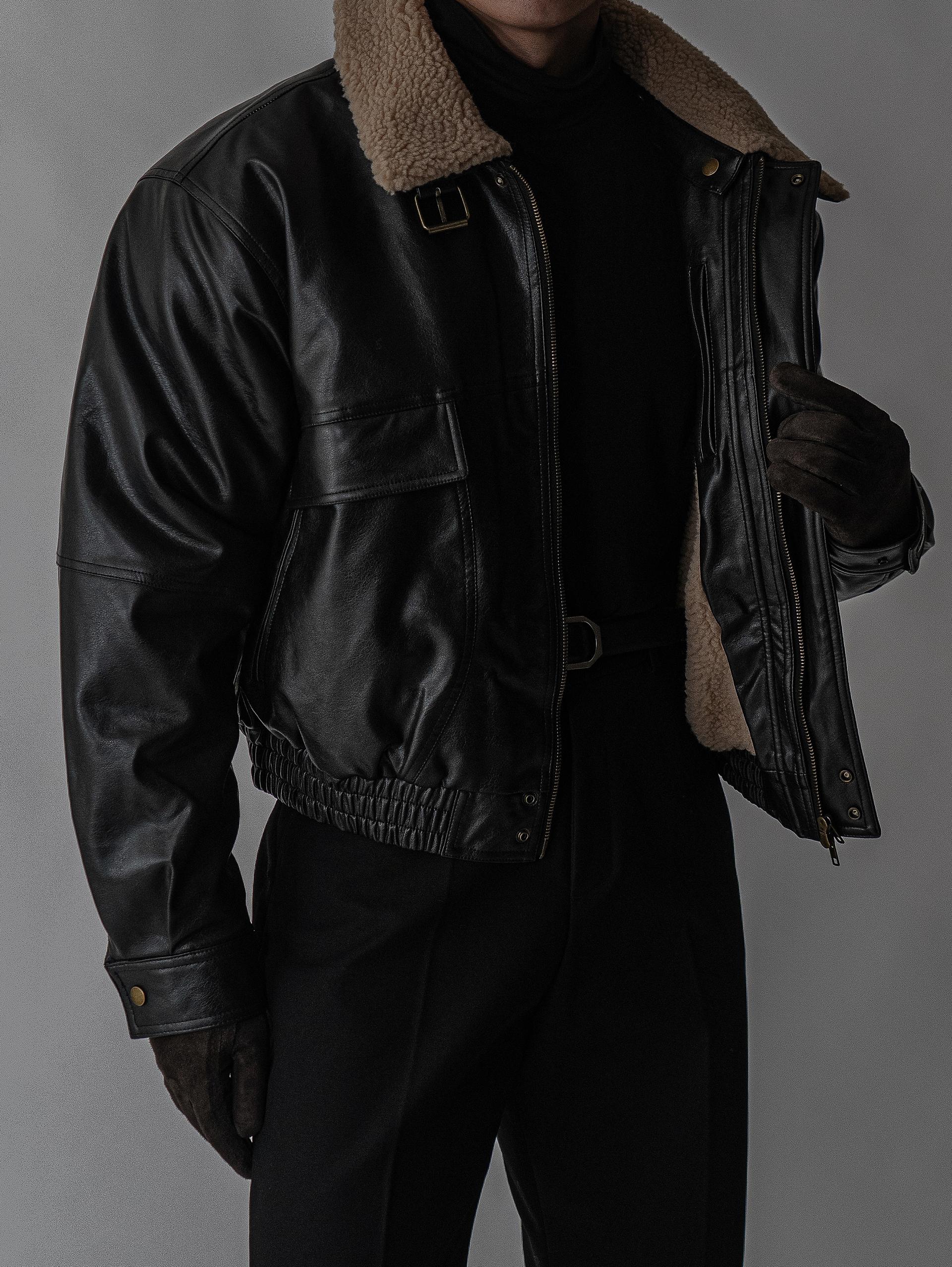 - 크롭 오버핏 에코 레더 무스탕으로 뛰어난 체형 보정 효과