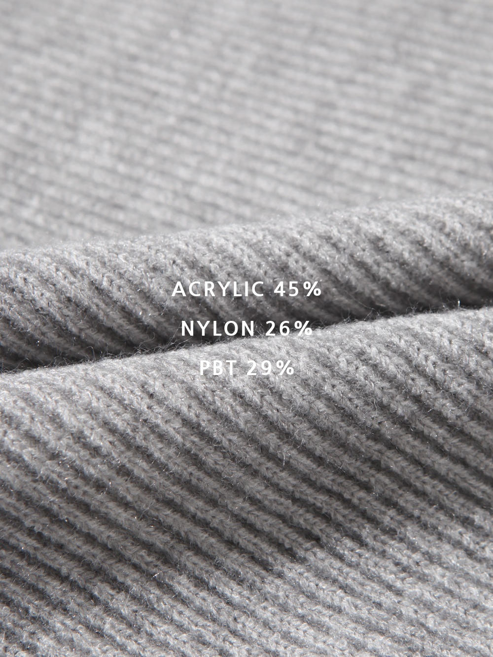 - 아크릴·나일론·PBT 혼방 소재로 탄탄한 조직감과 편안한 신축성의 니트