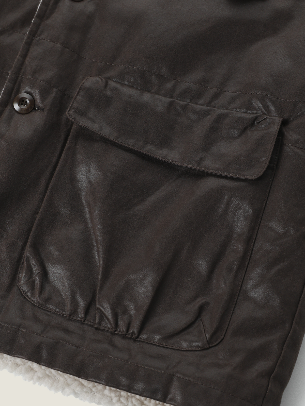 - 내부에는 가죽 패치로 마감된 안주머니 디테일