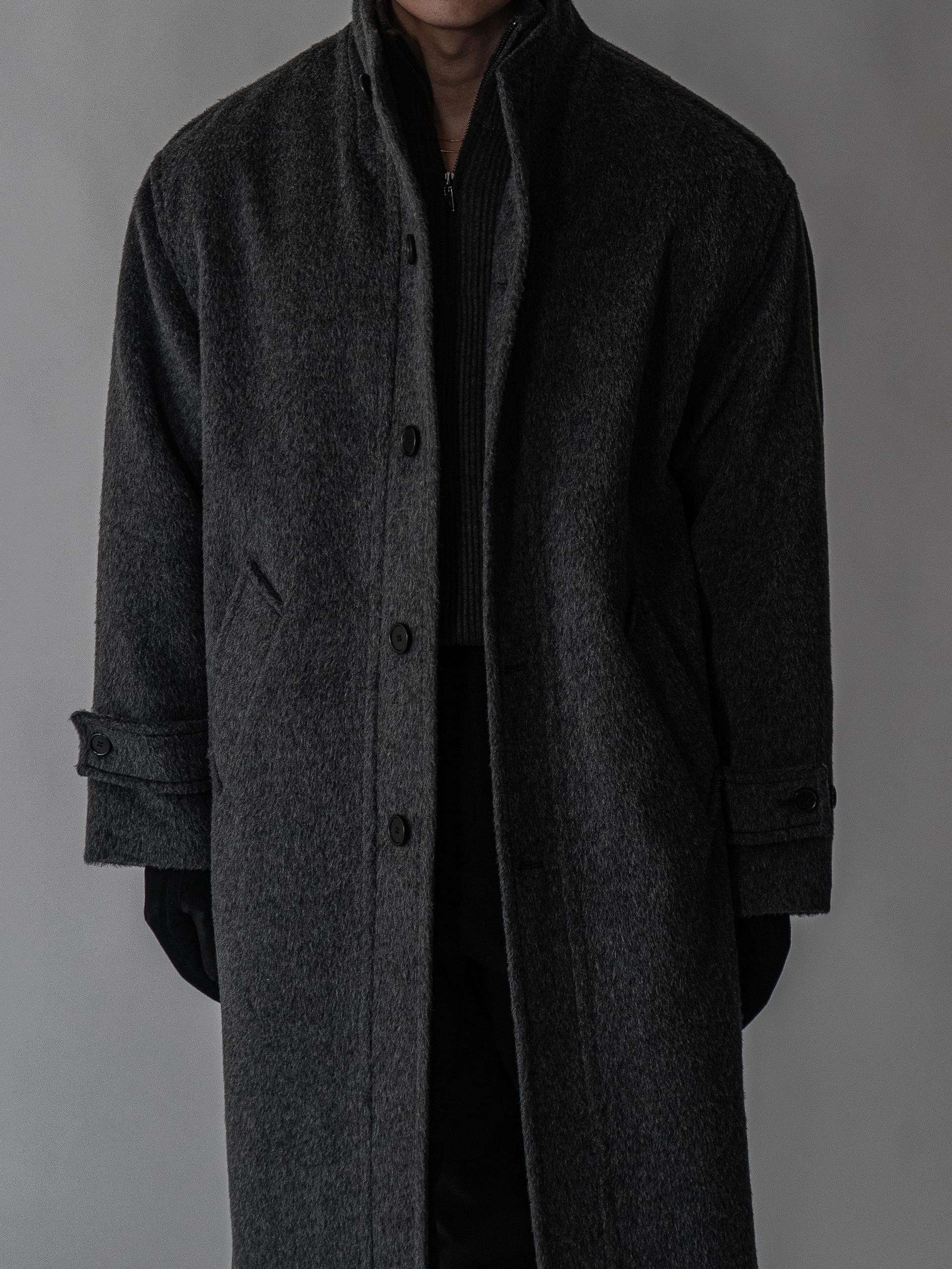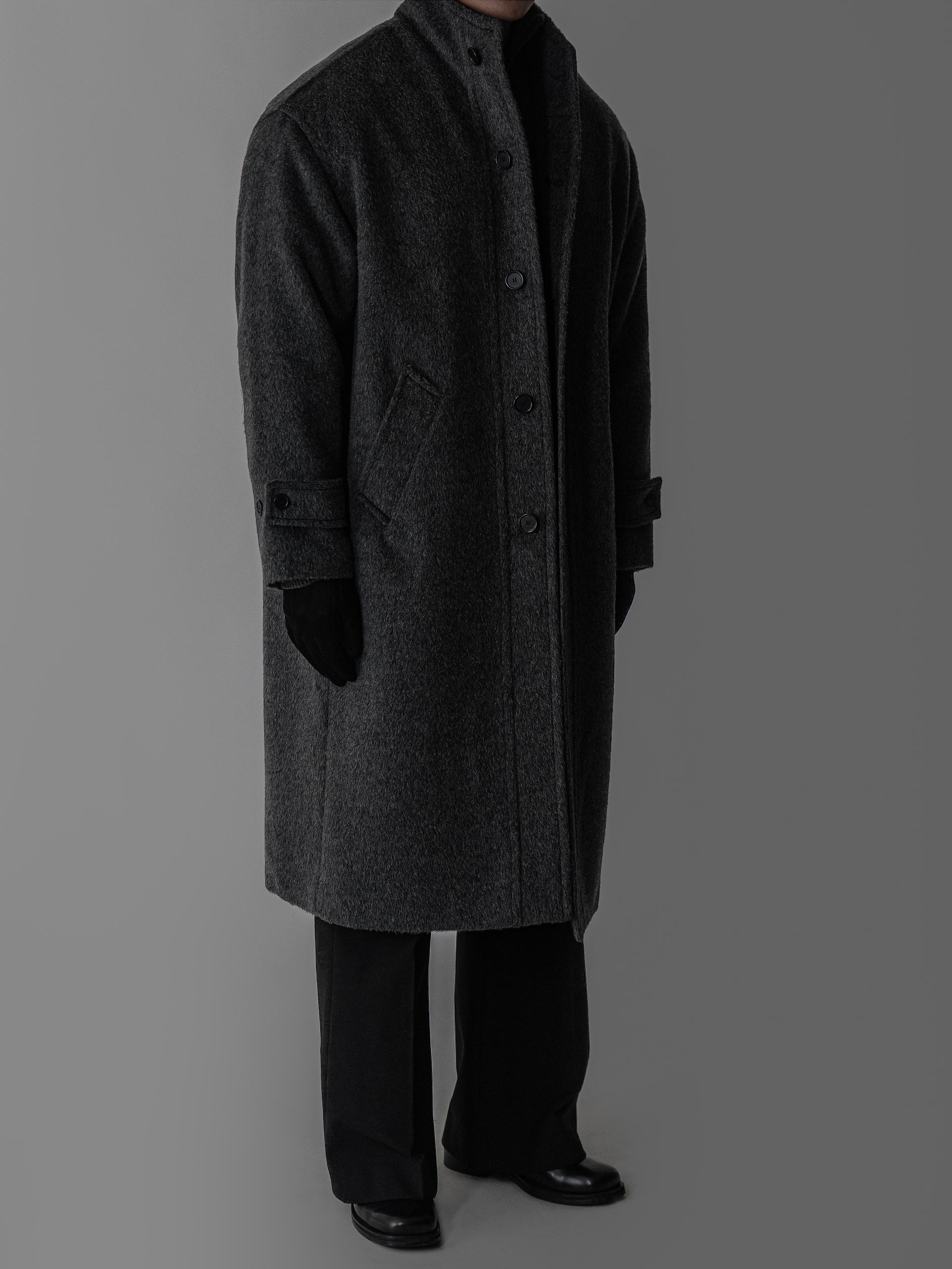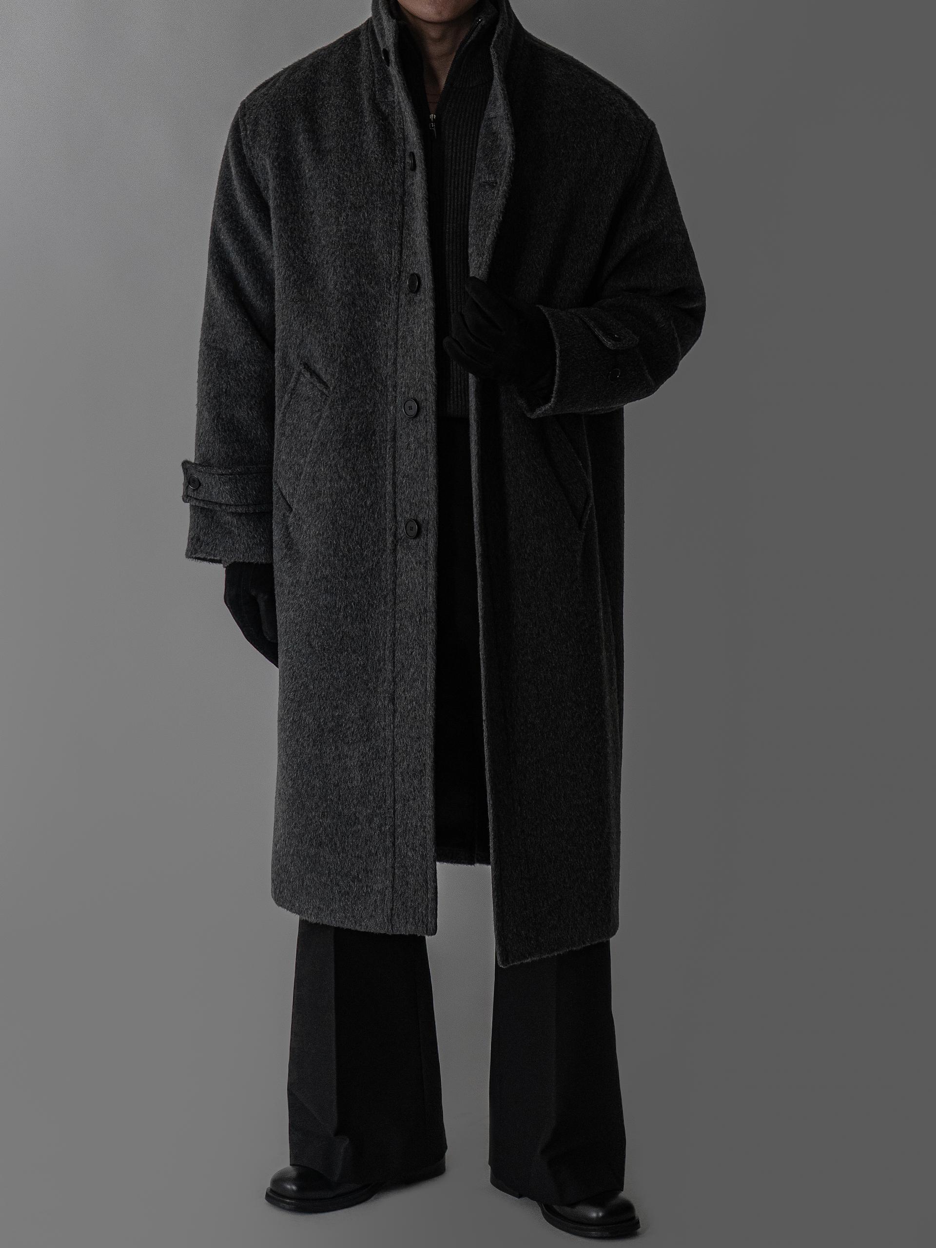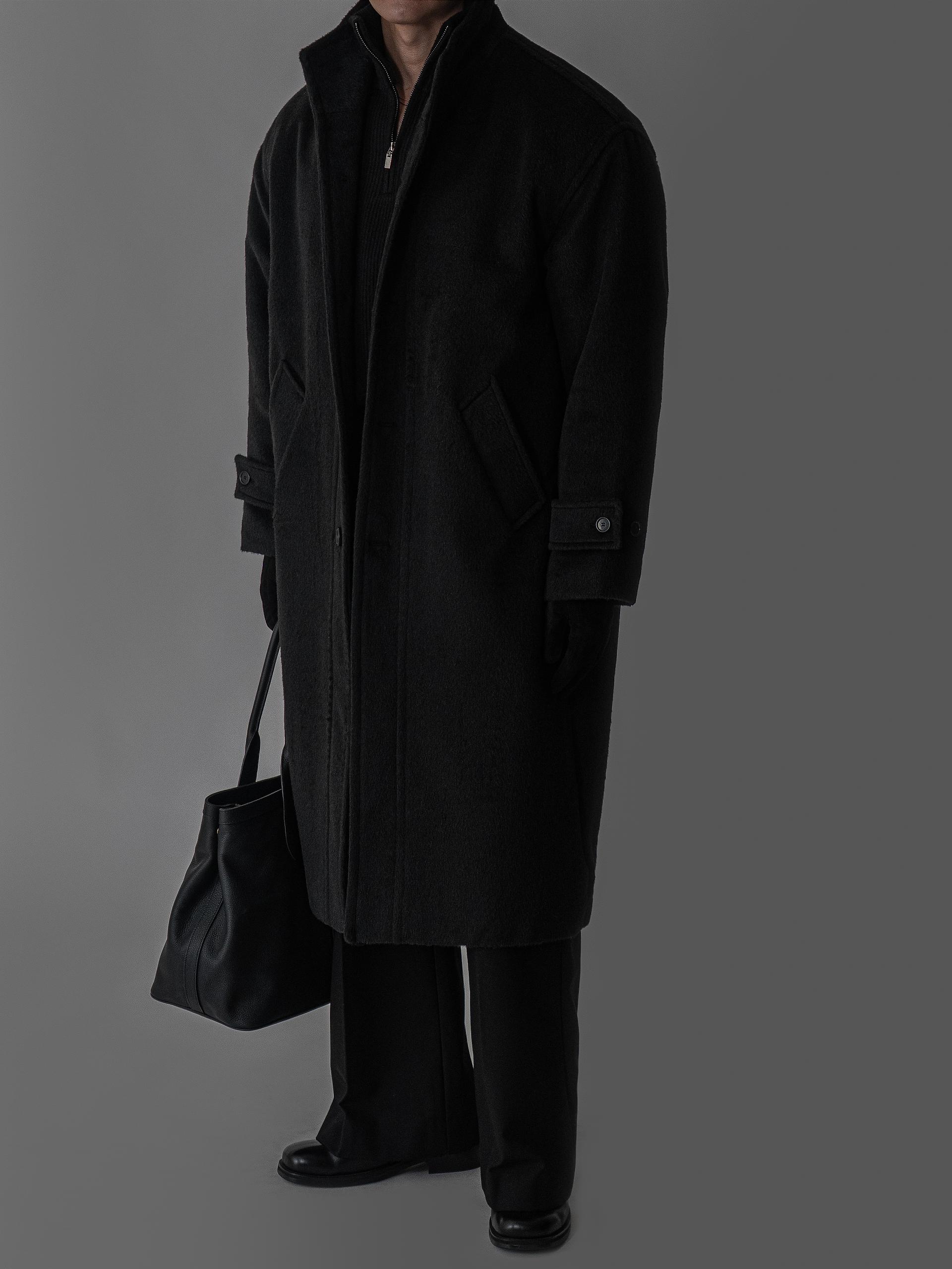 - 세련되고 여유로운 실루엣의 하이넥 디자인 울 롱 코트