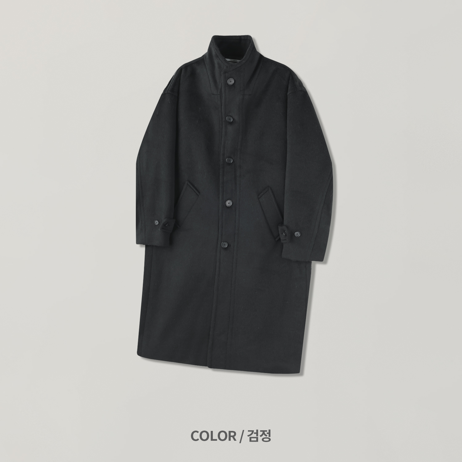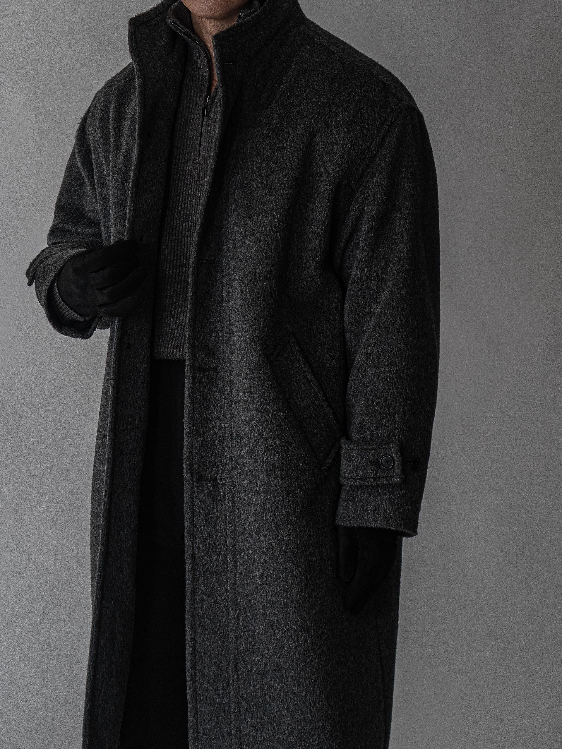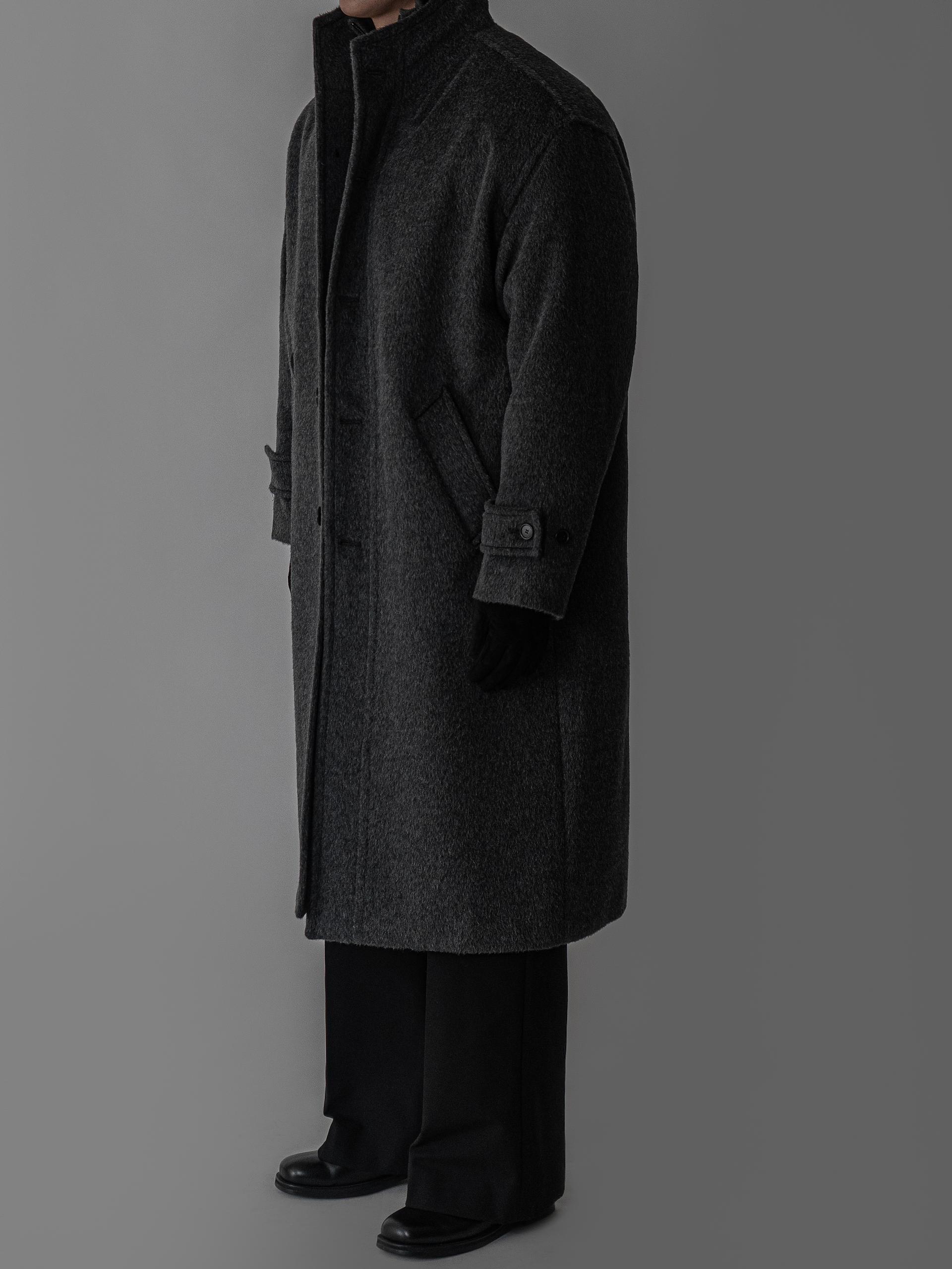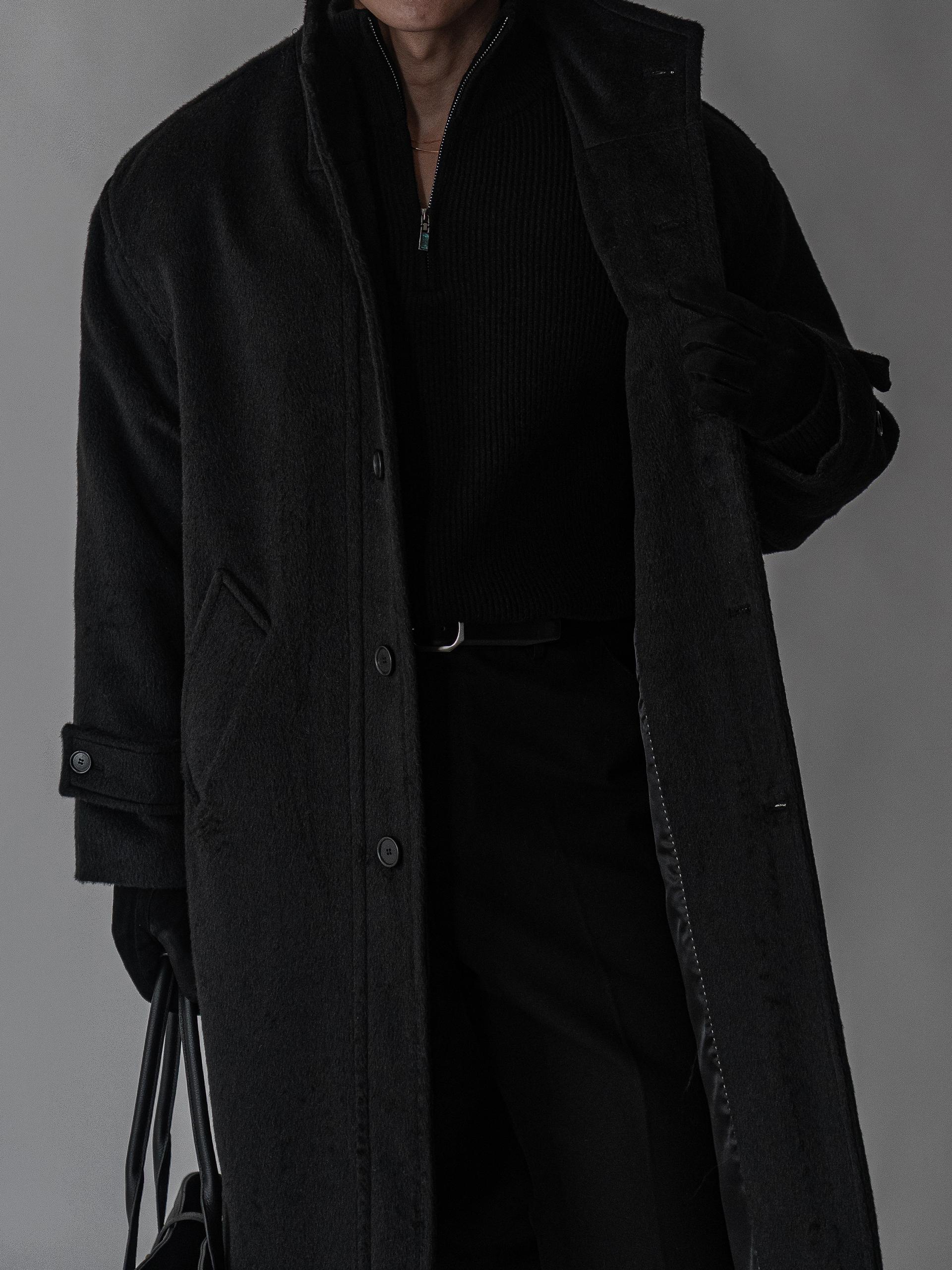 - 세련되고 여유로운 실루엣의 하이넥 디자인 울 롱 코트