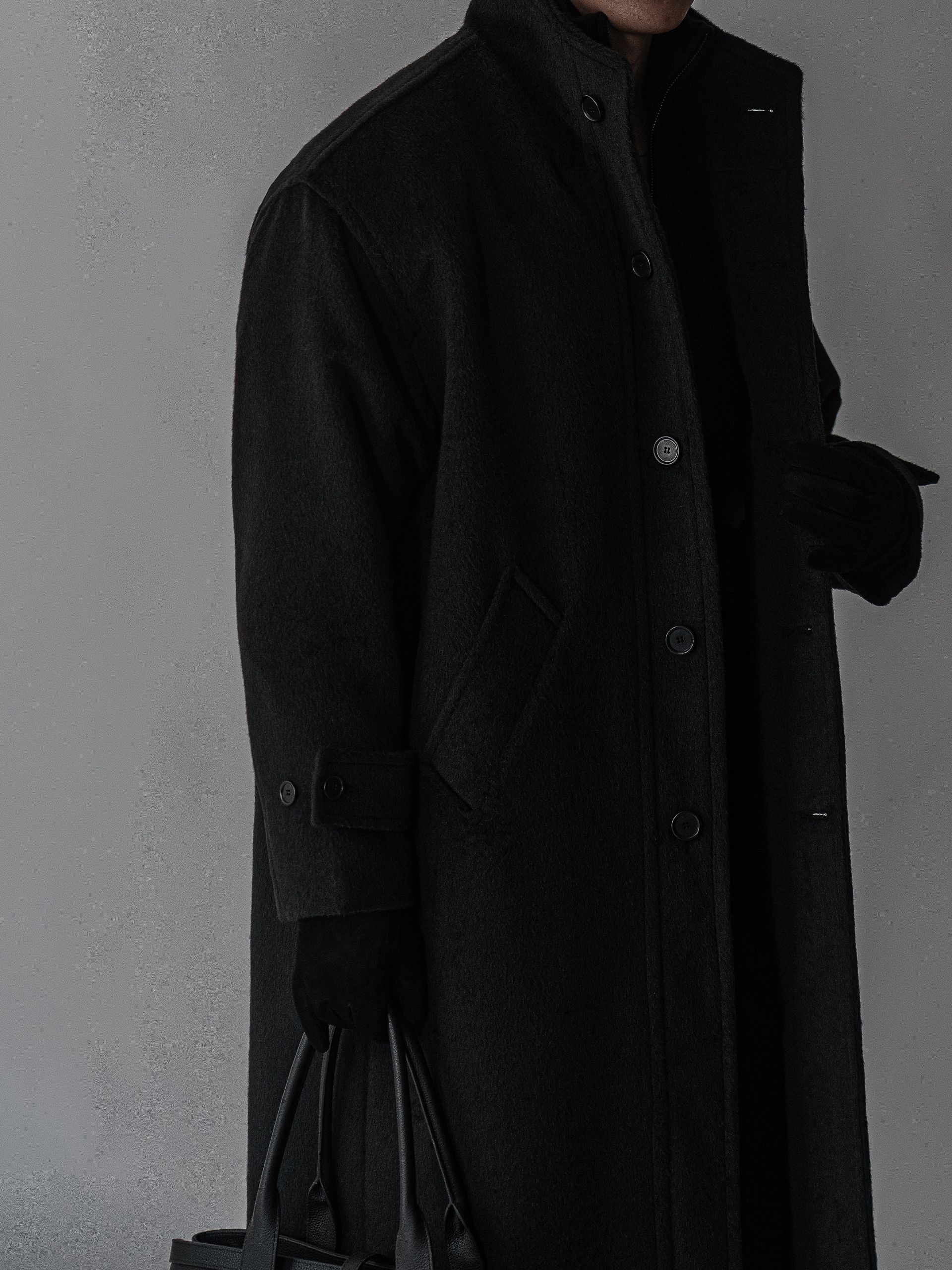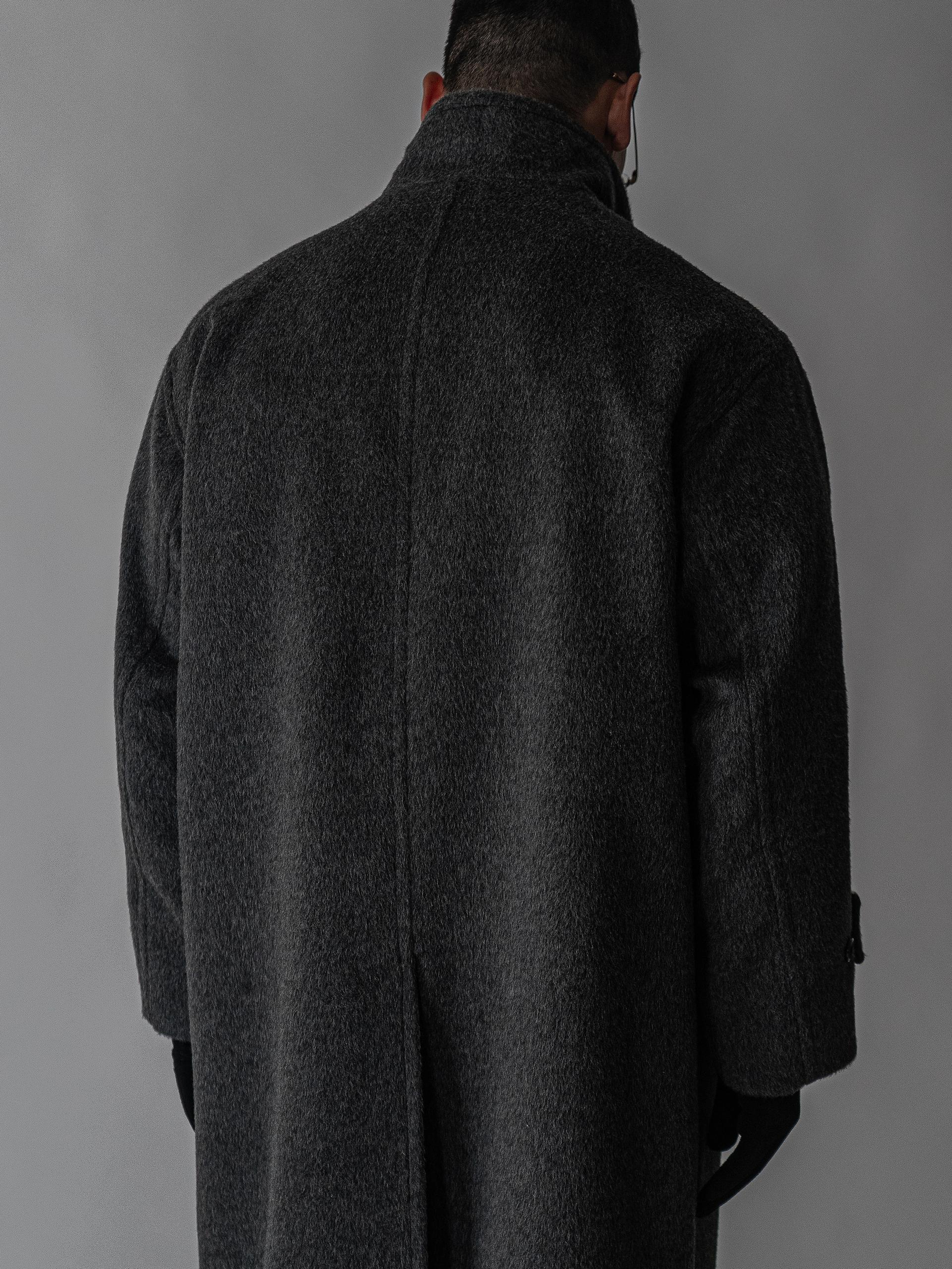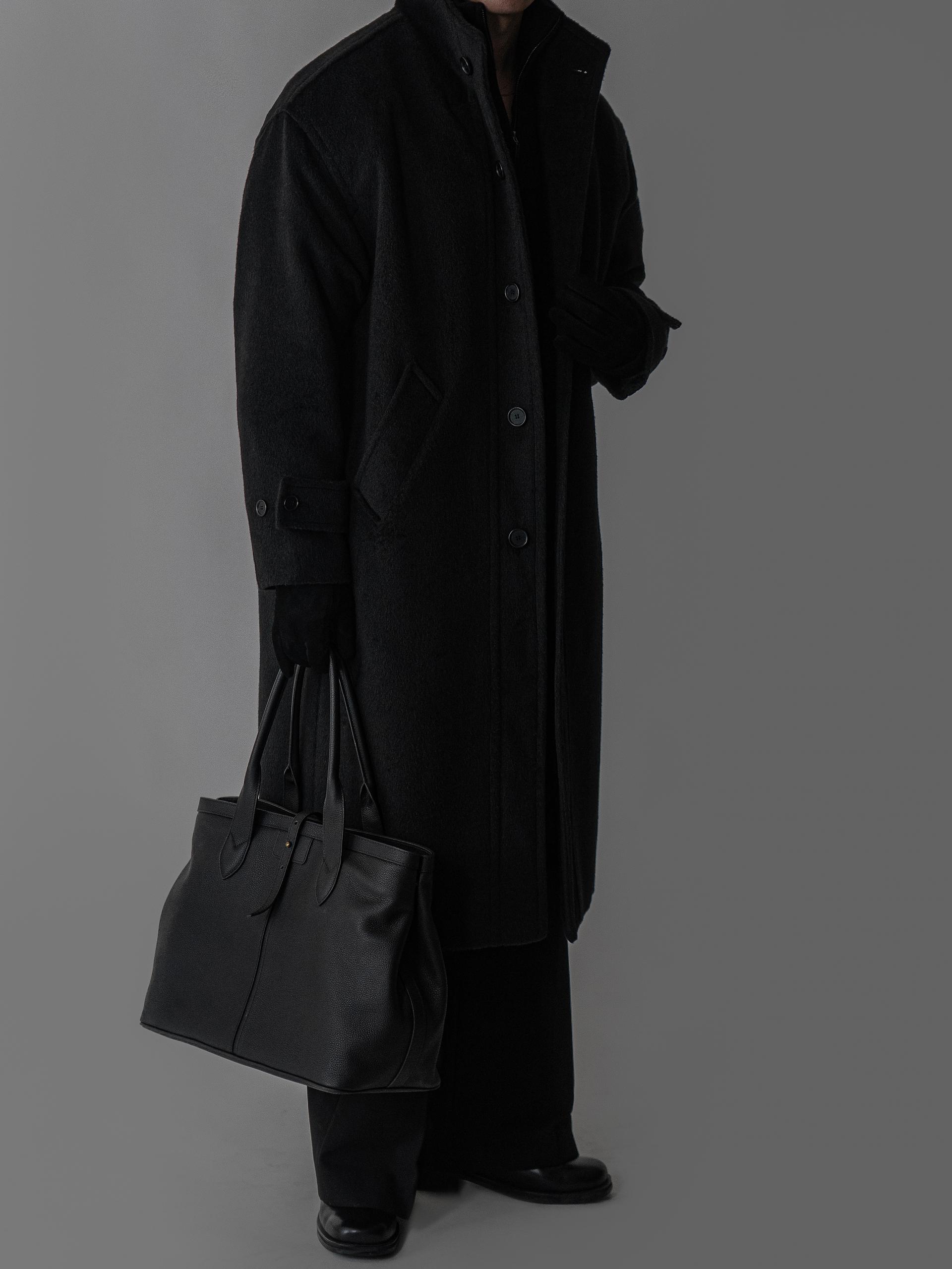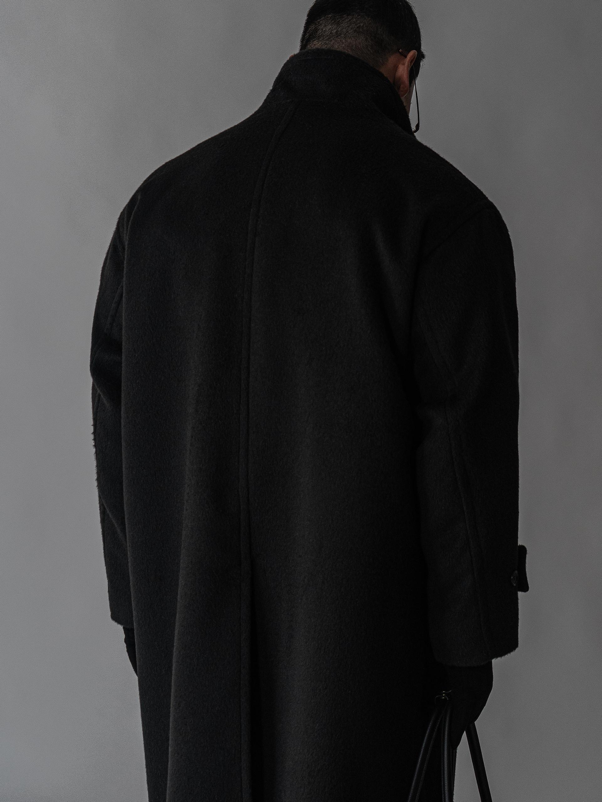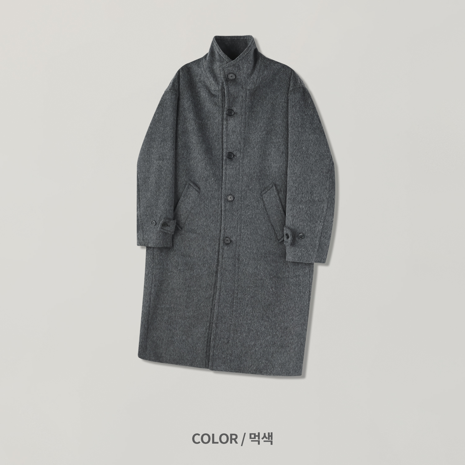 - 세련되고 여유로운 실루엣의 하이넥 디자인 울 롱 코트