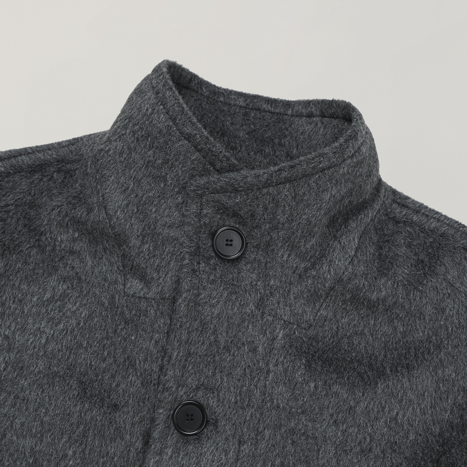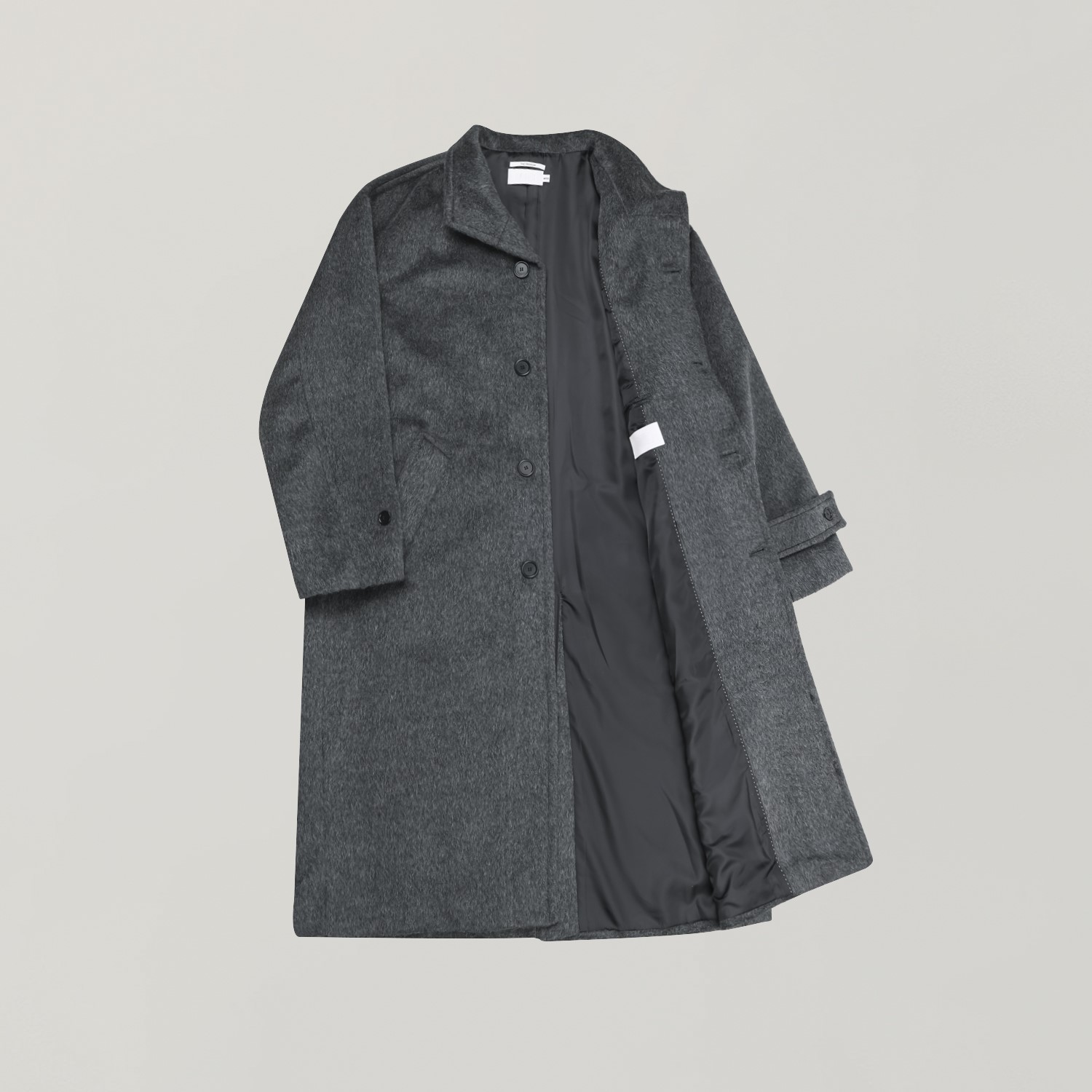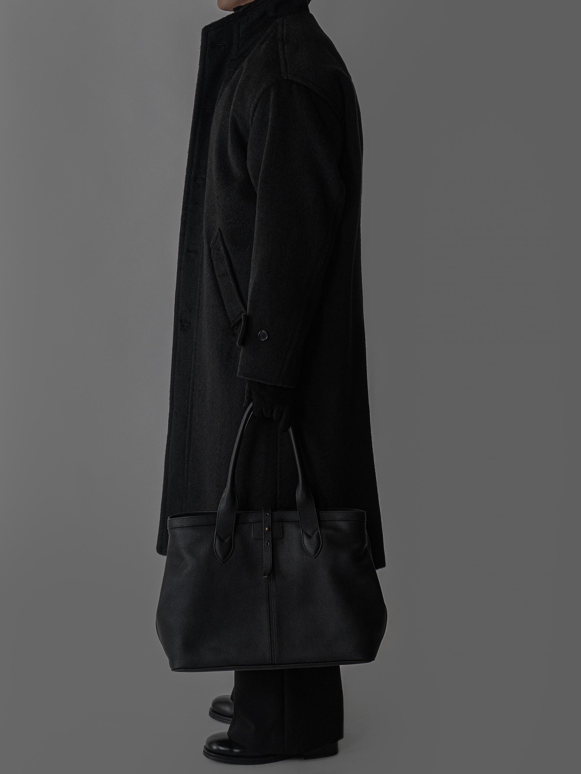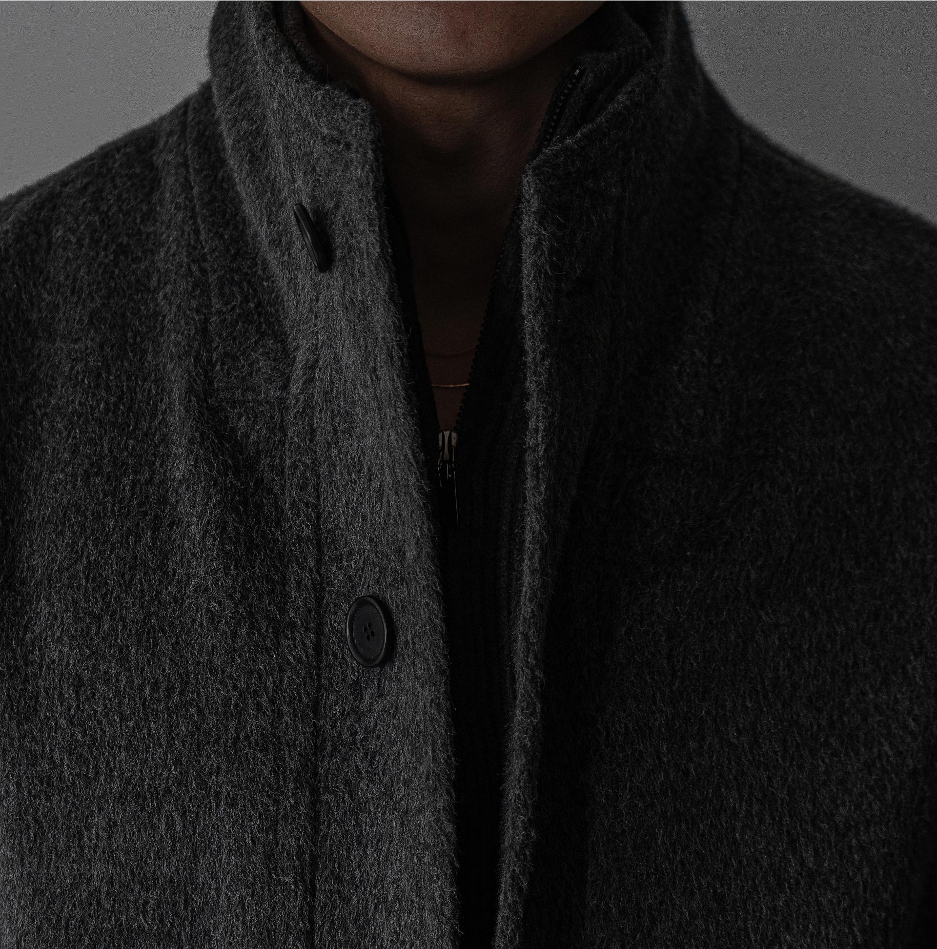 - 세련되고 여유로운 실루엣의 하이넥 디자인 울 롱 코트