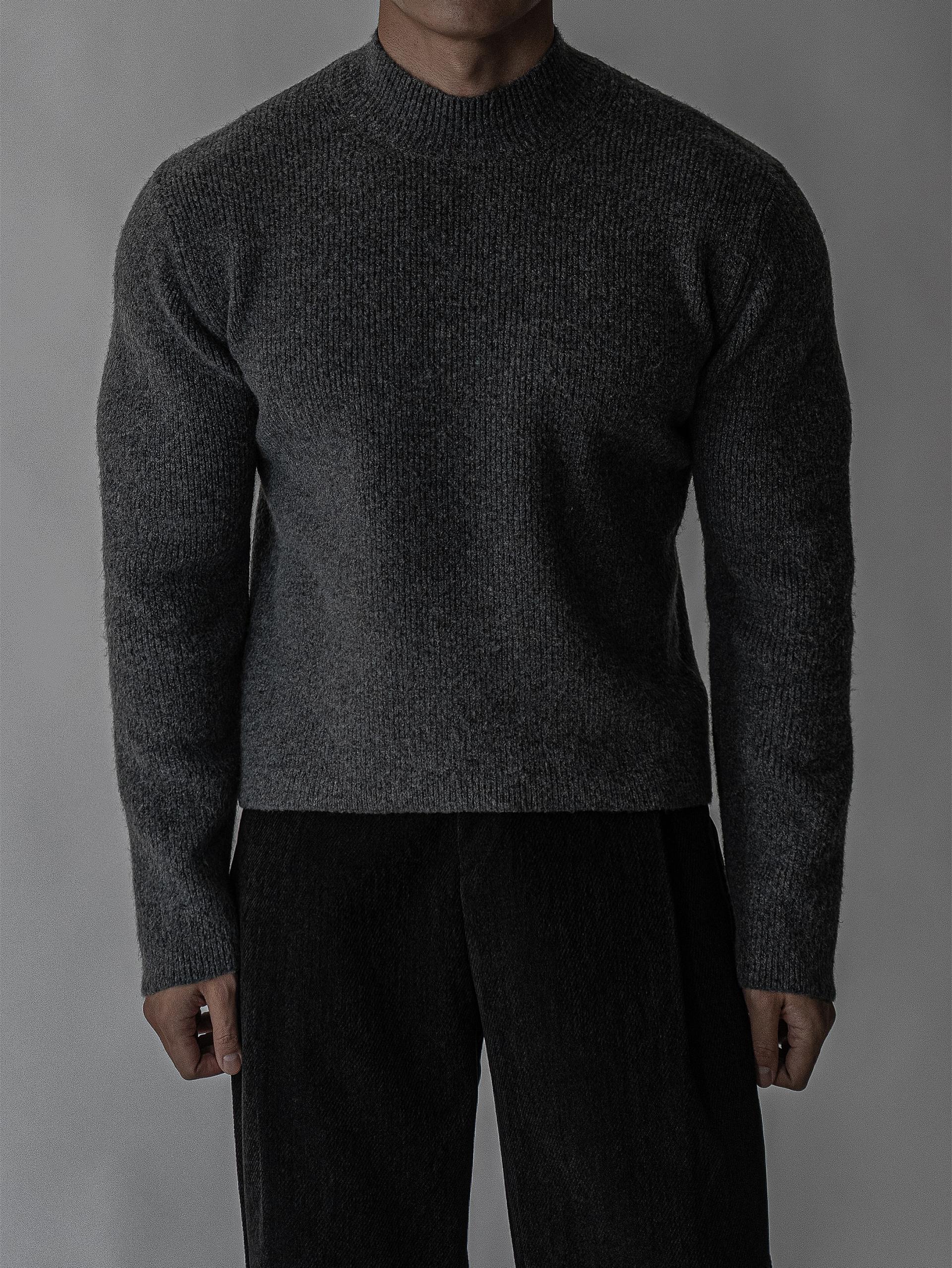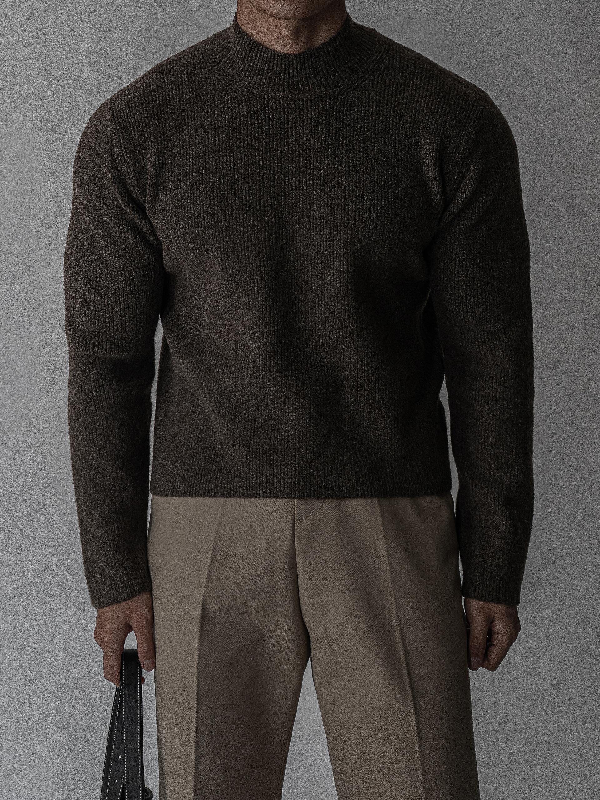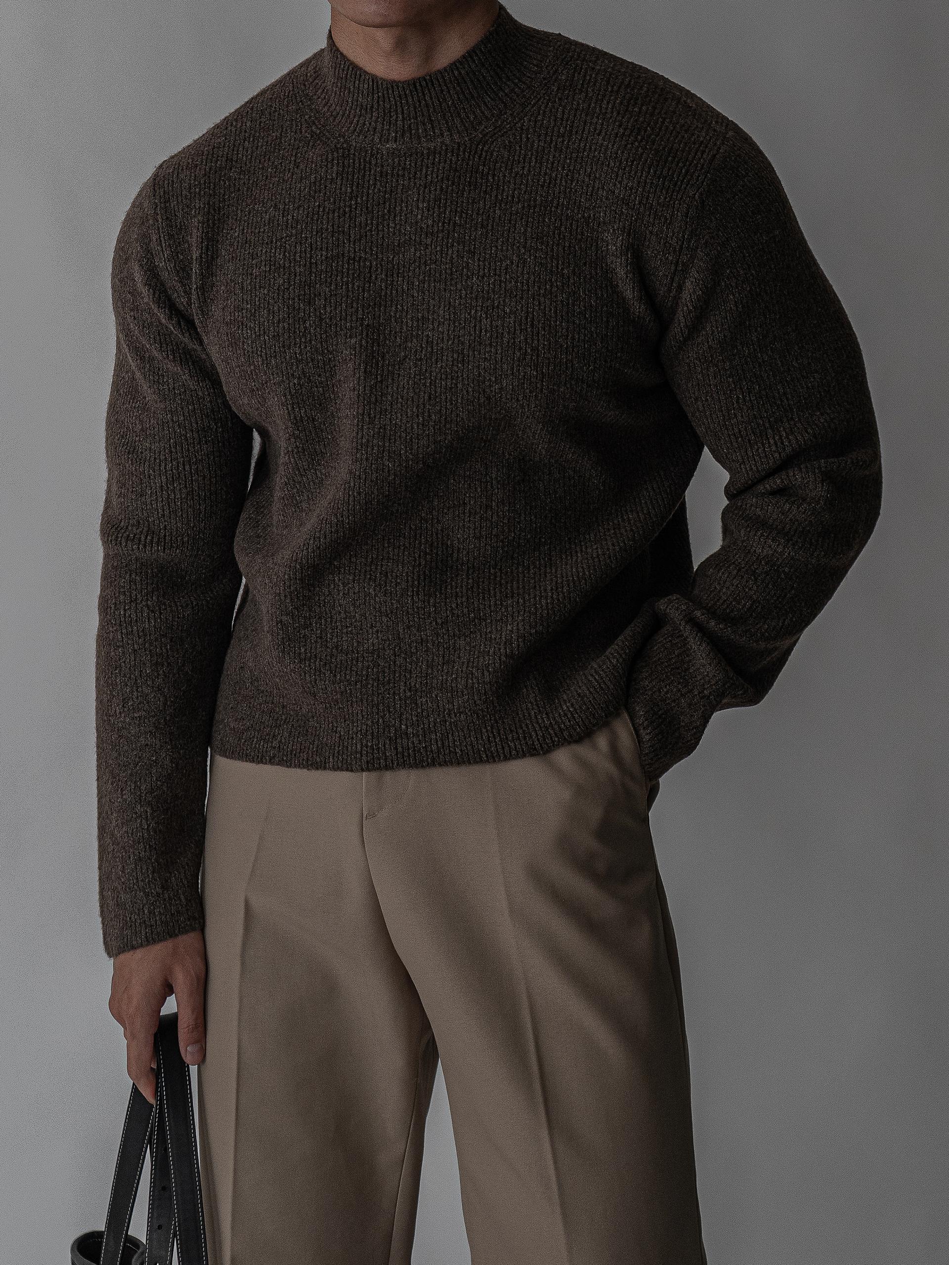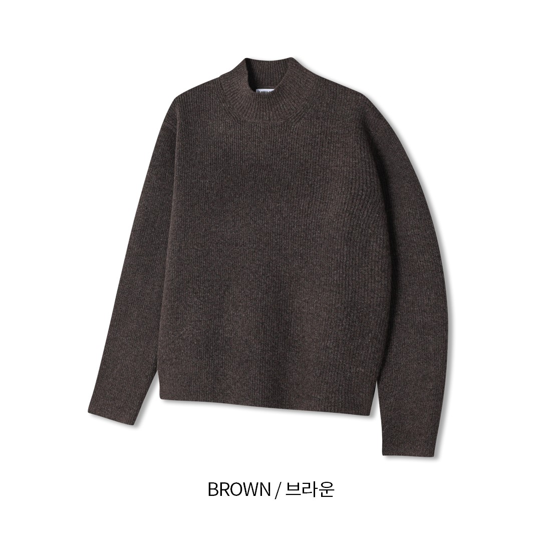 - 7게이지 플레인 조직의 자연스러운 크롭 모크넥 니트