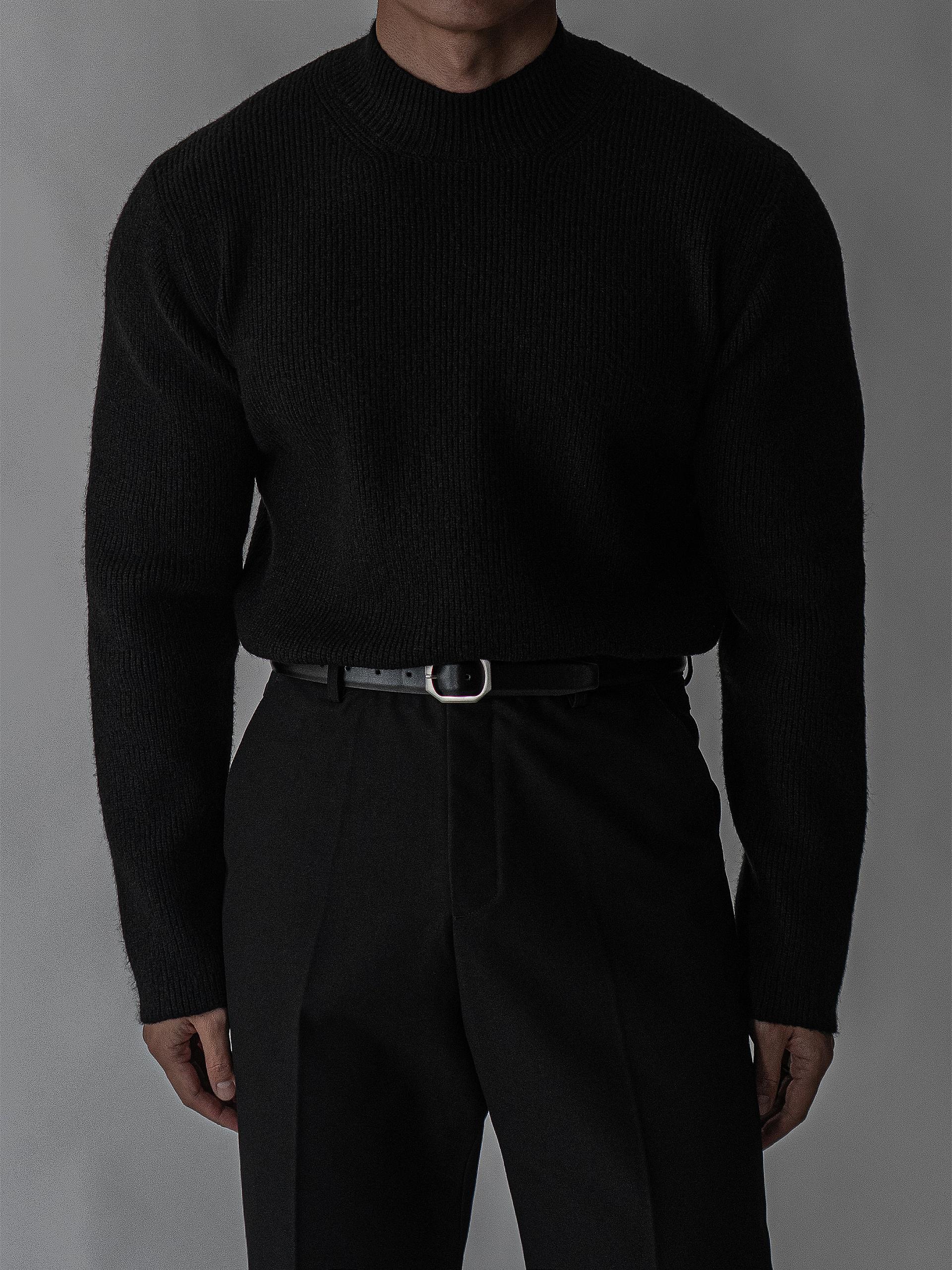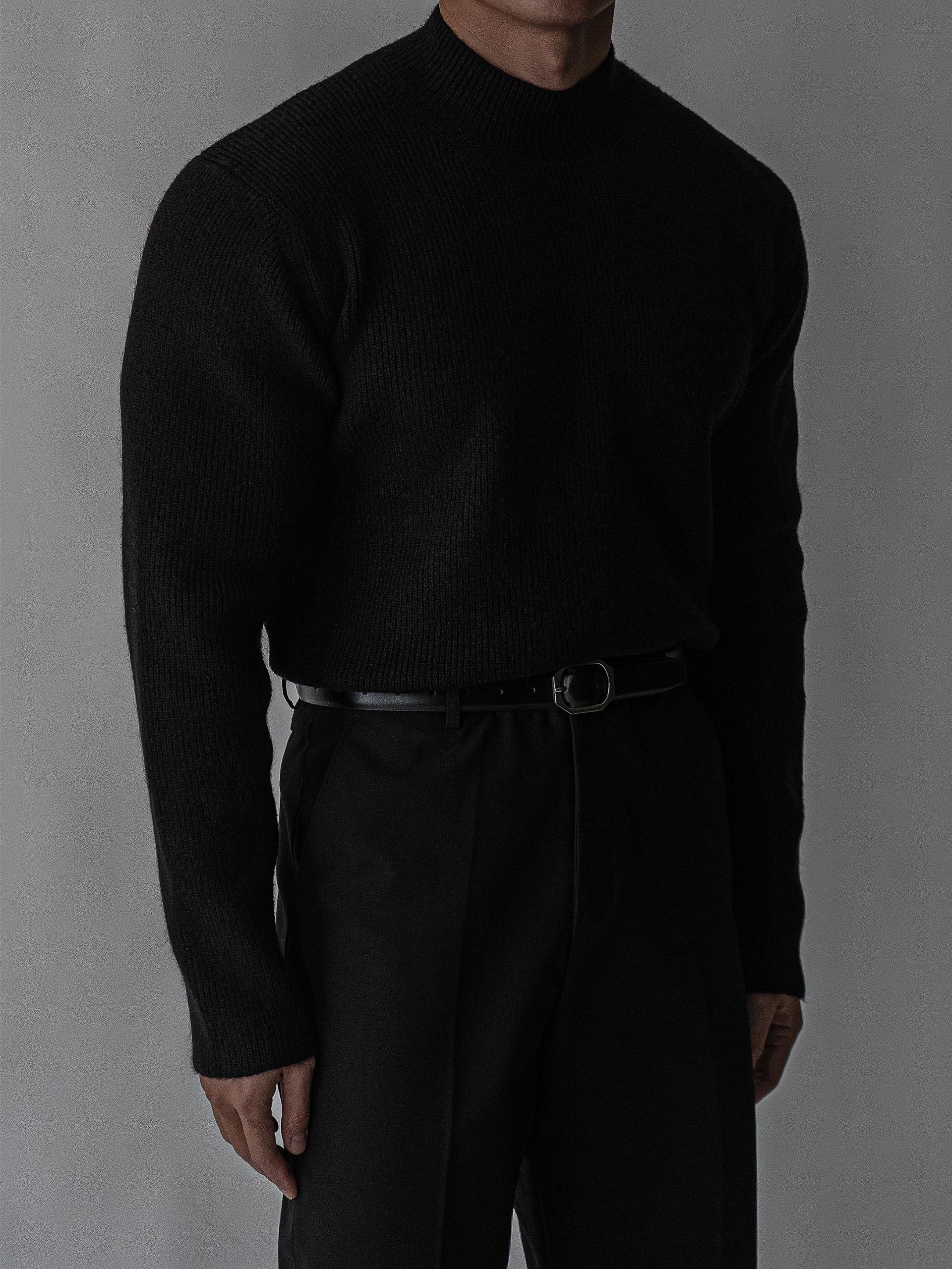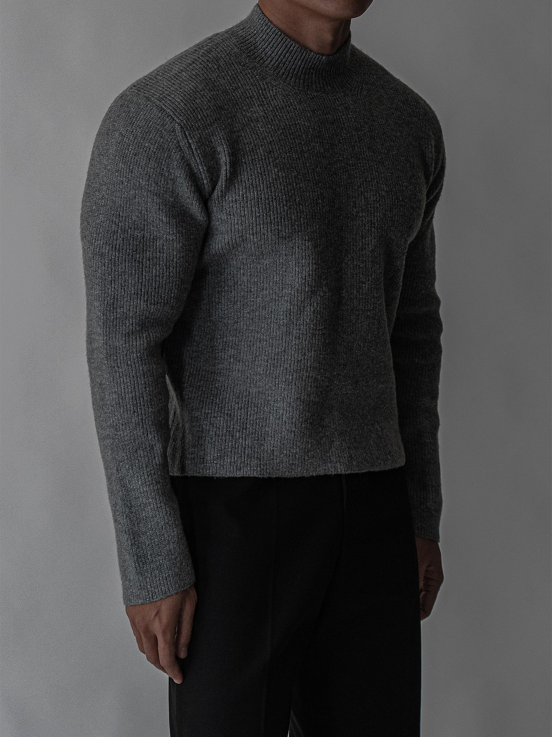 - 7게이지 플레인 조직의 자연스러운 크롭 모크넥 니트