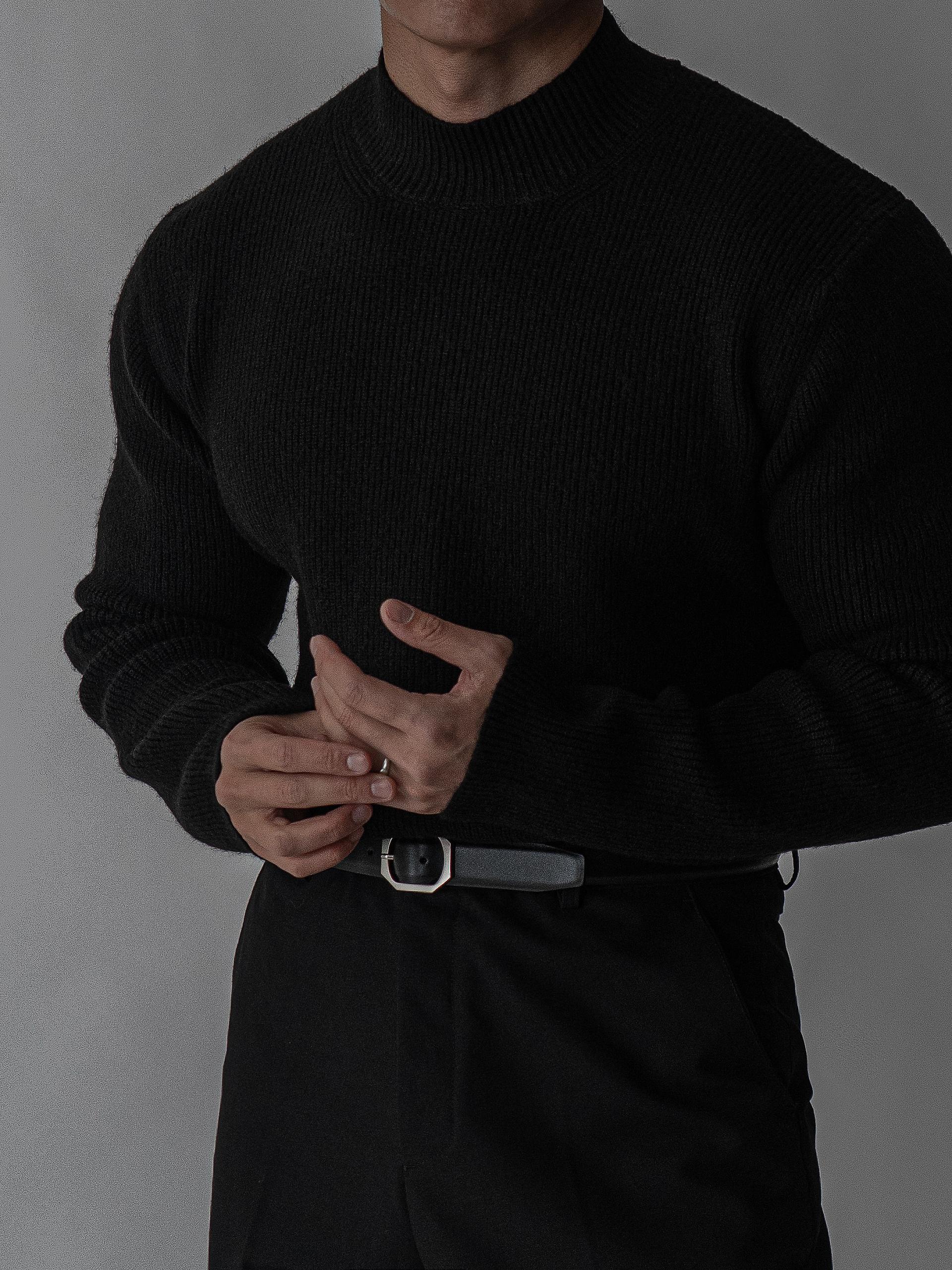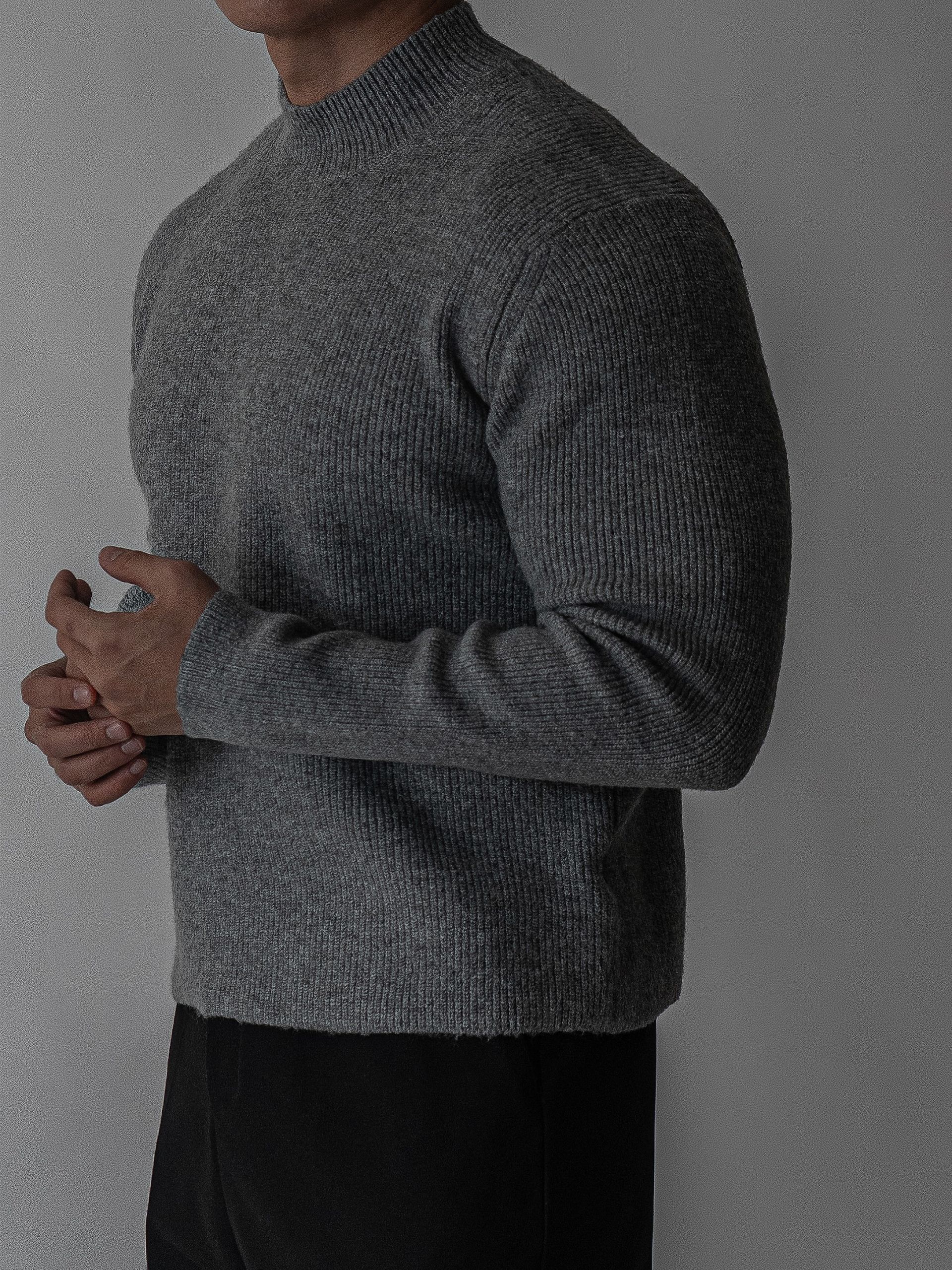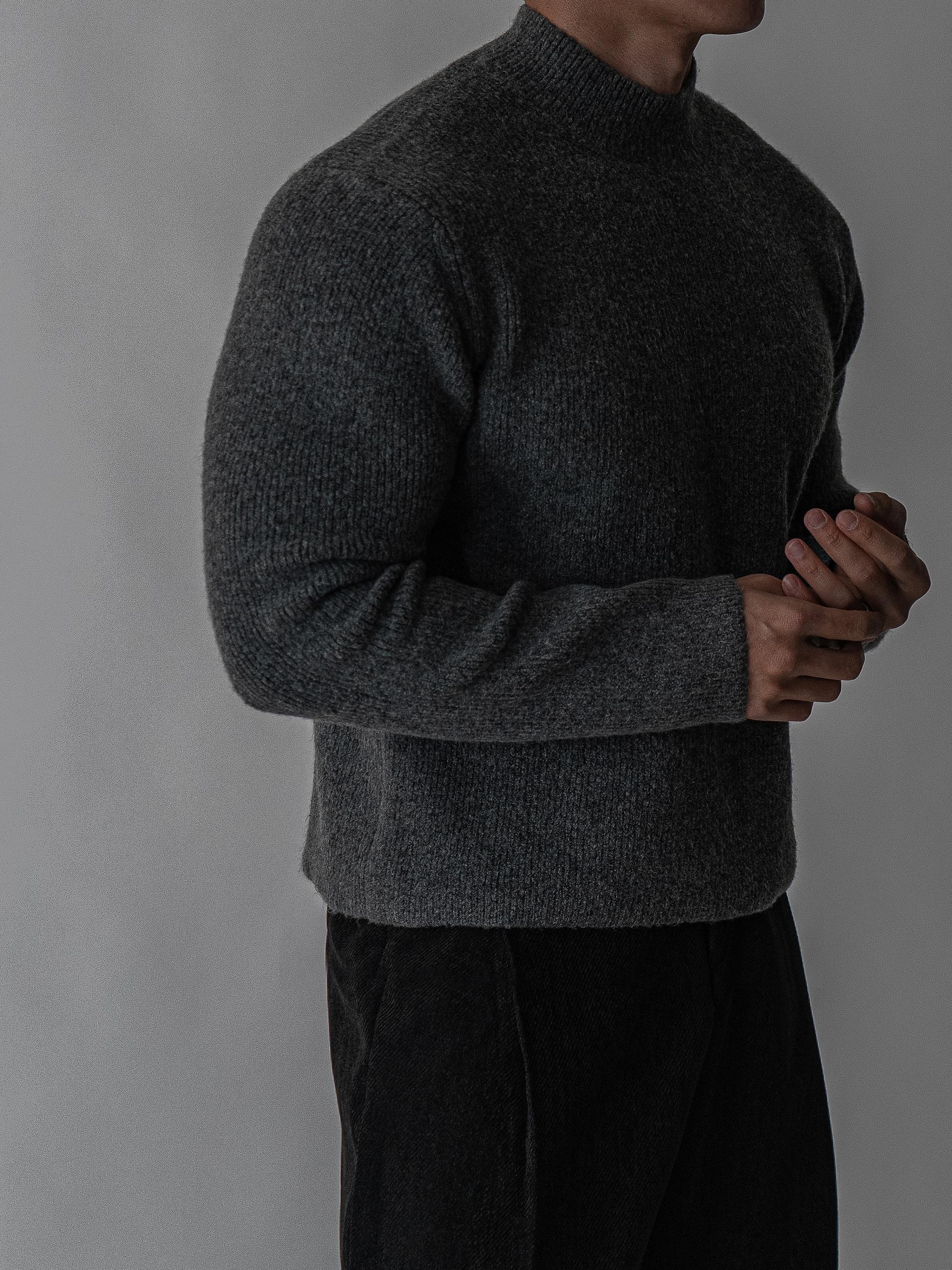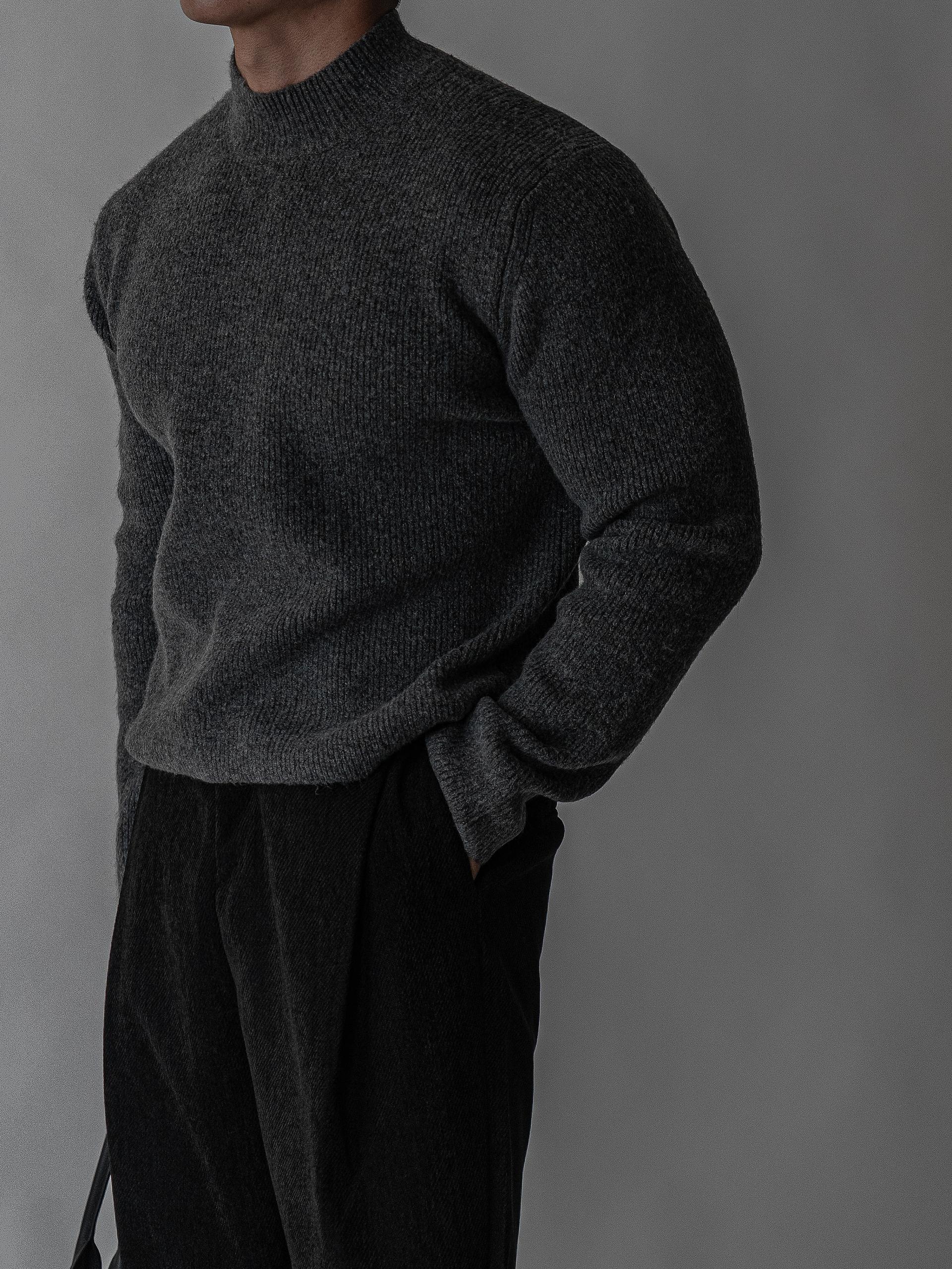 - 7게이지 플레인 조직의 자연스러운 크롭 모크넥 니트