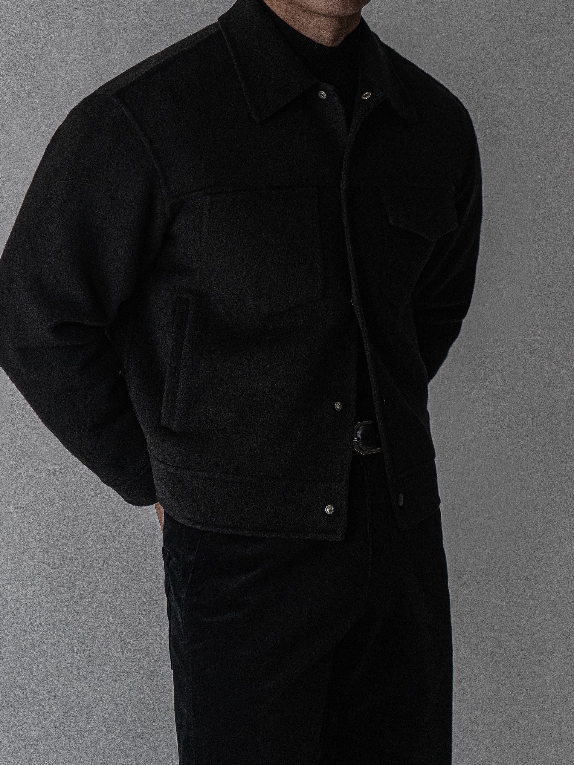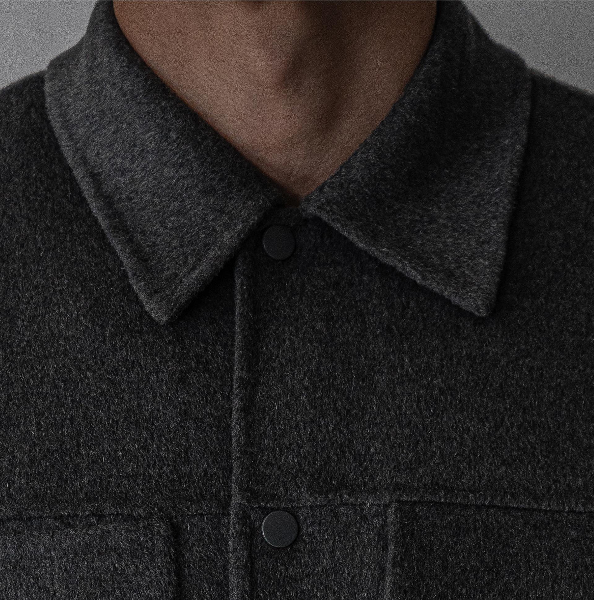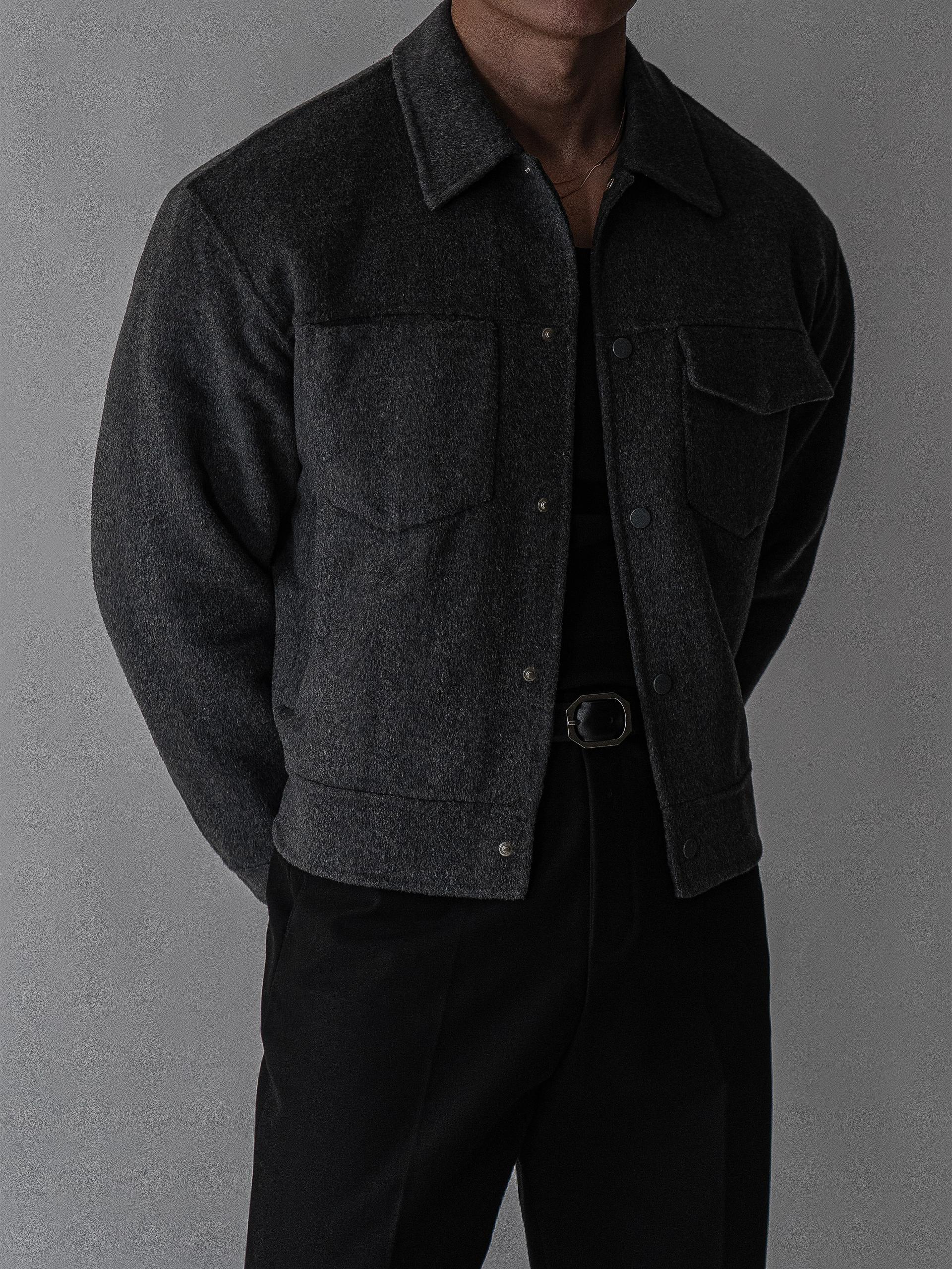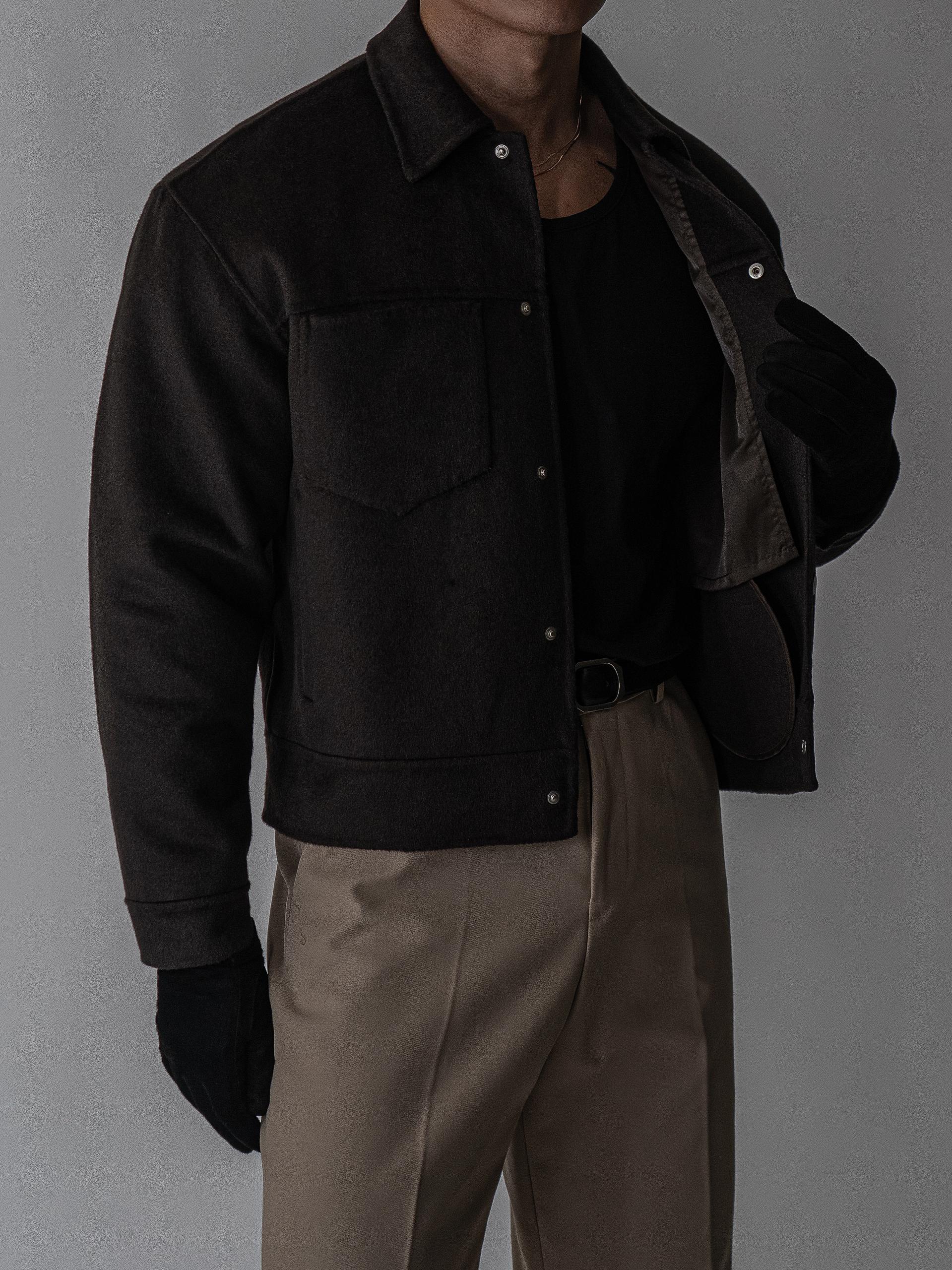 - 플랩 포켓과 미니멀한 버튼 디테일로 세련되면서도 실용적인 디자인