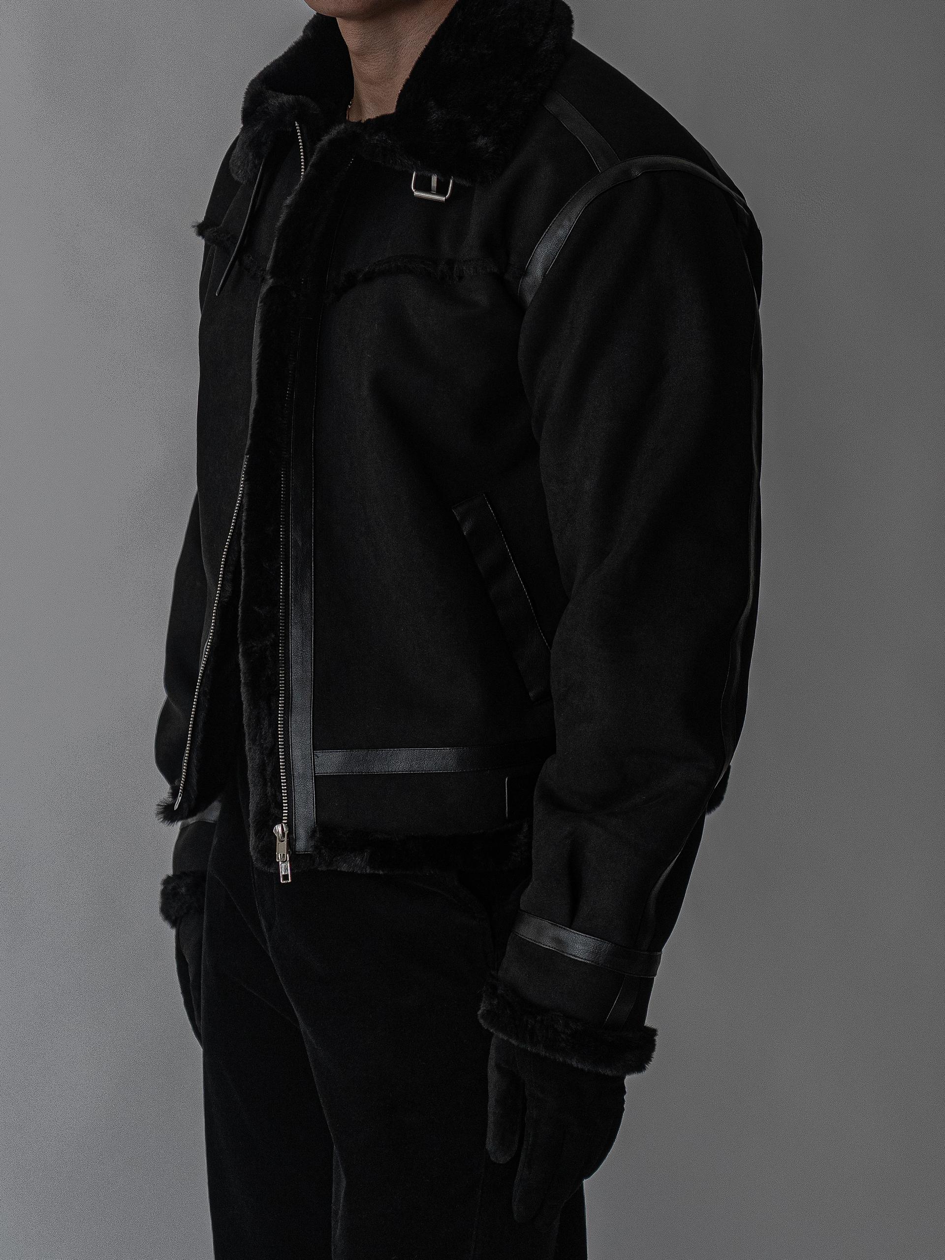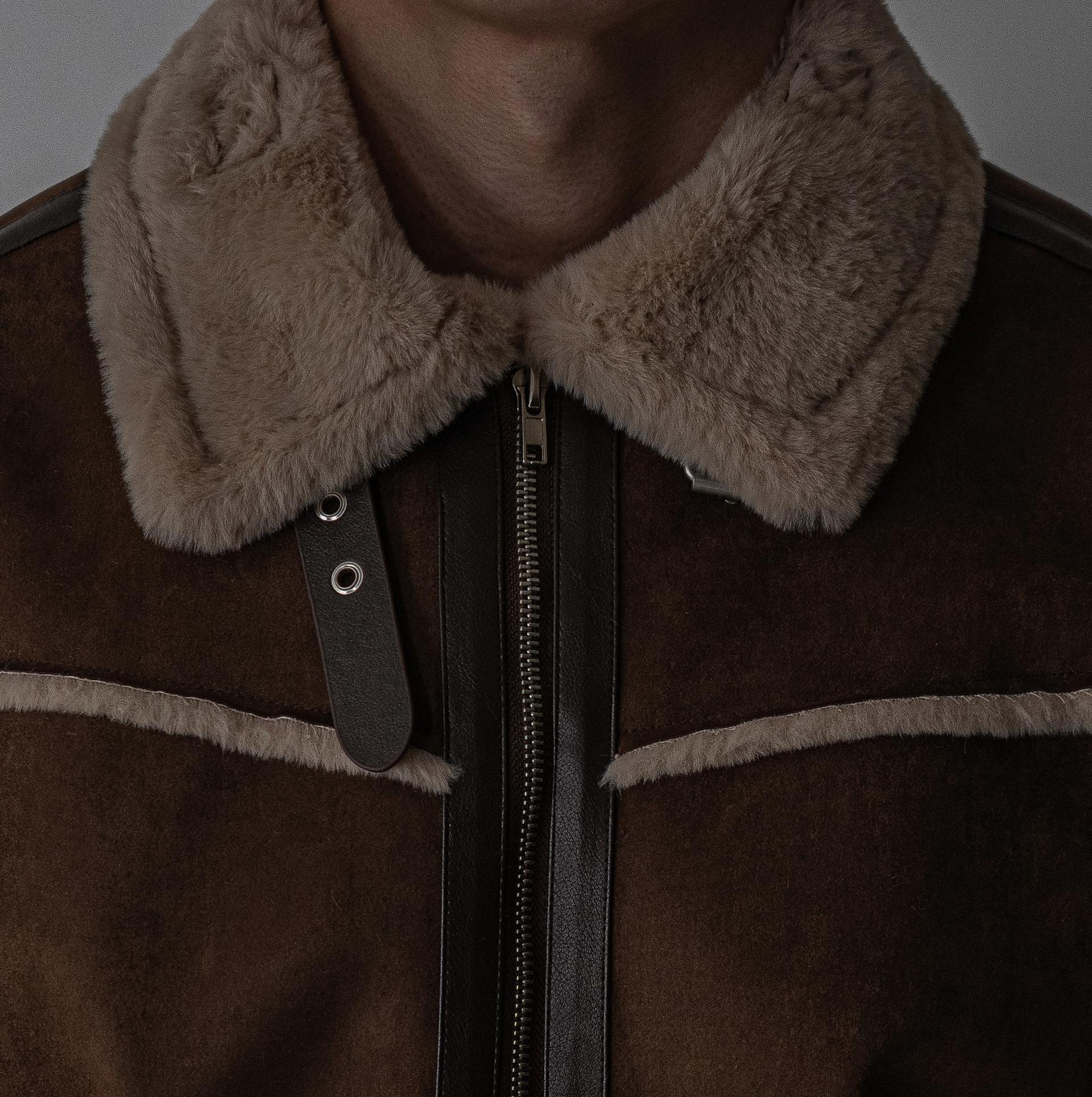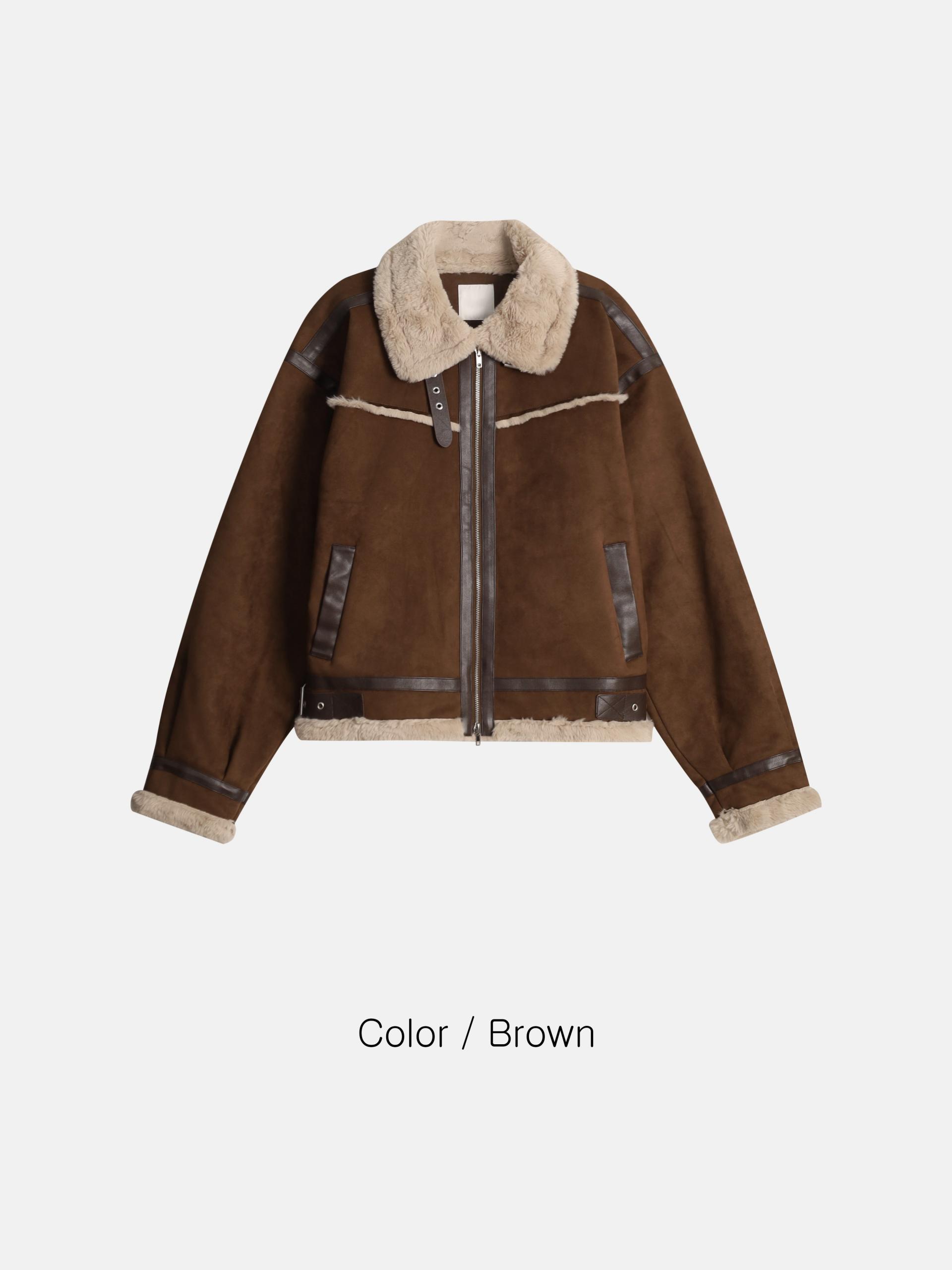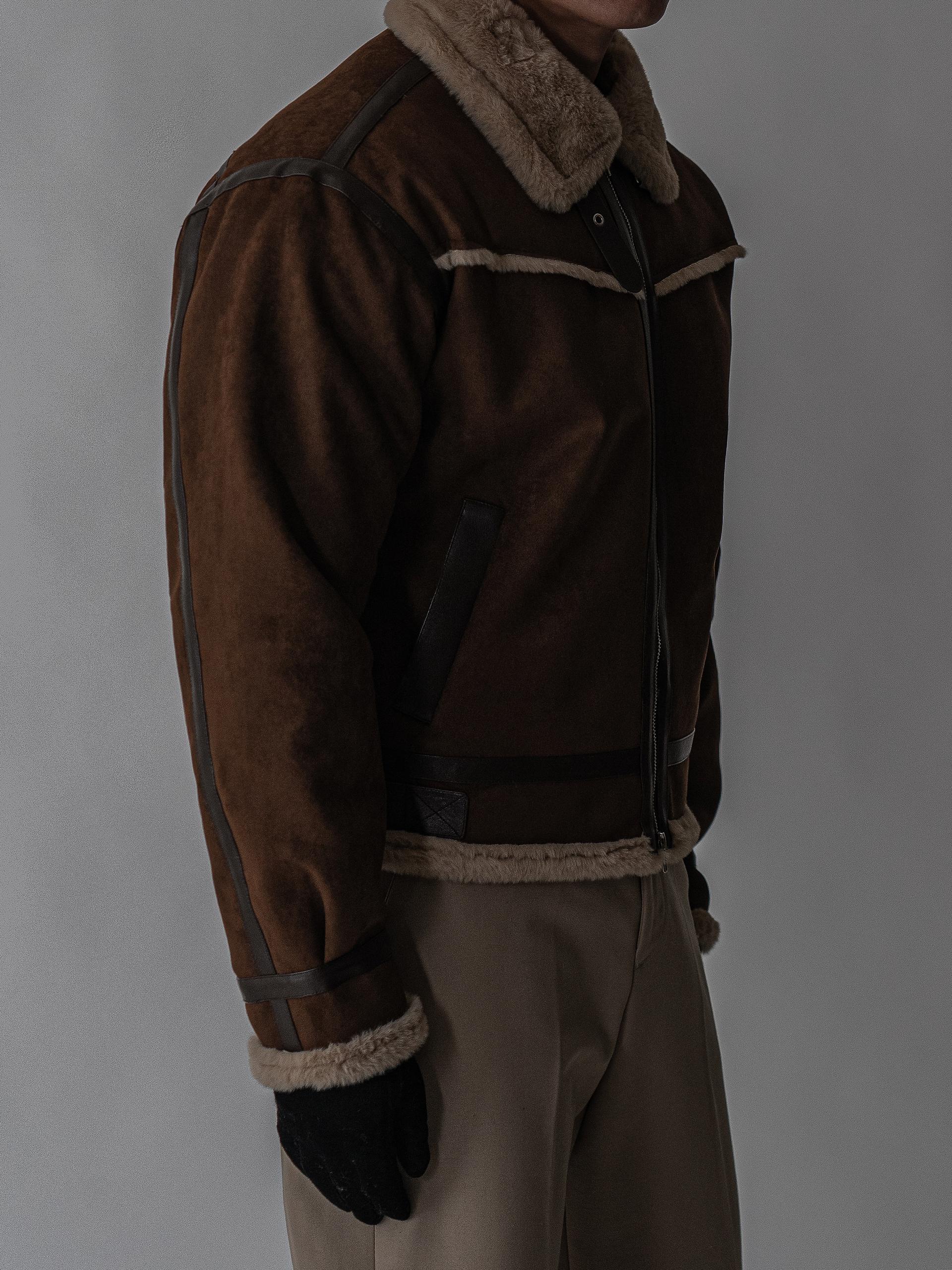 - 에코 스웨이드 웨스턴 라인의 크롭 무스탕 자켓