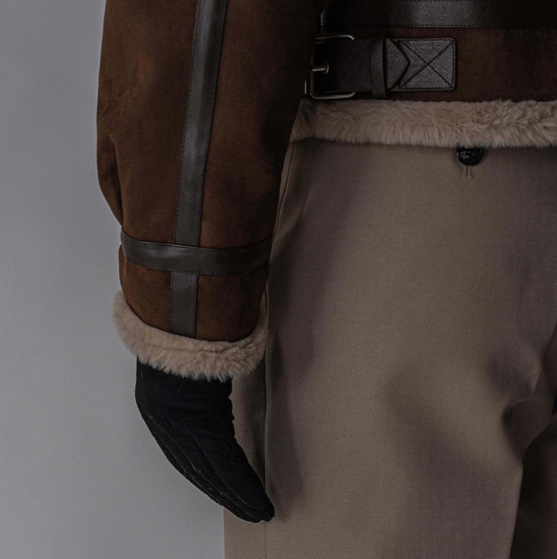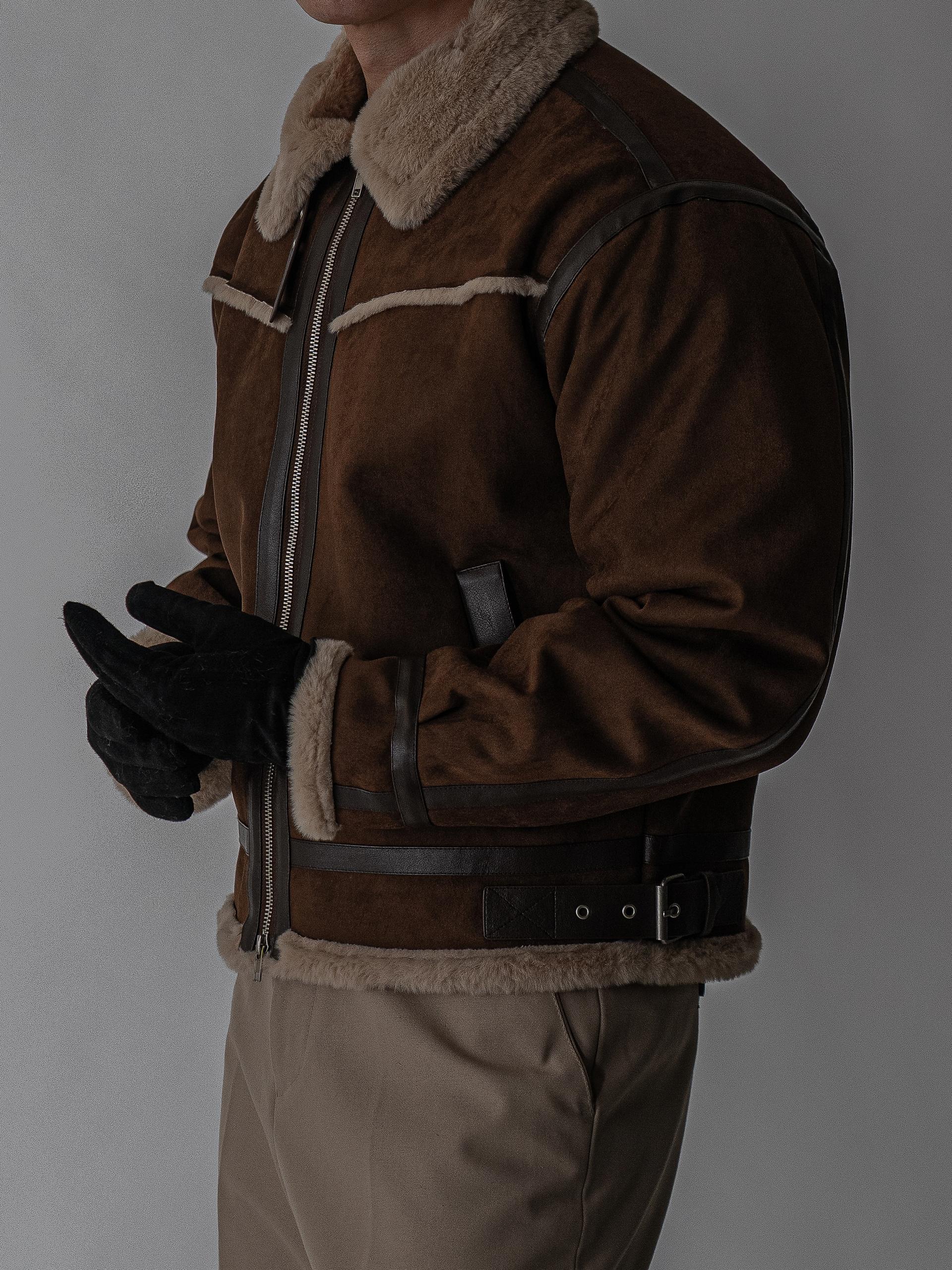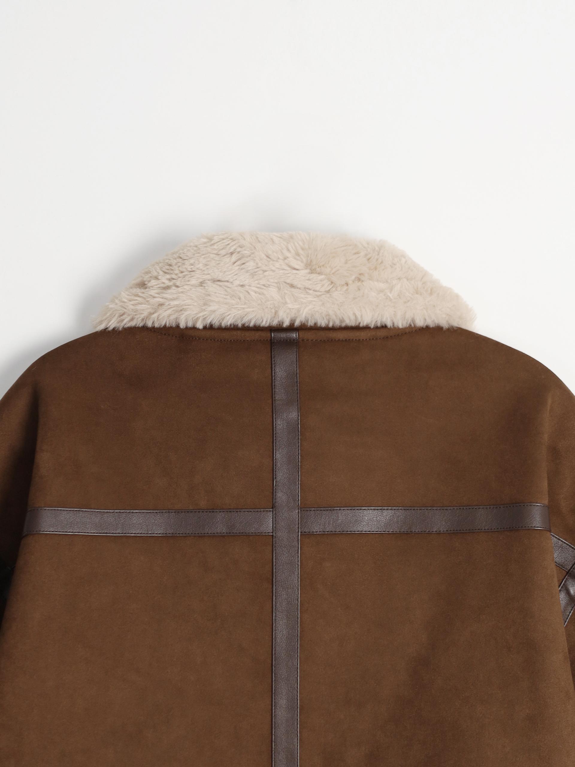 - 에코 스웨이드 웨스턴 라인의 크롭 무스탕 자켓