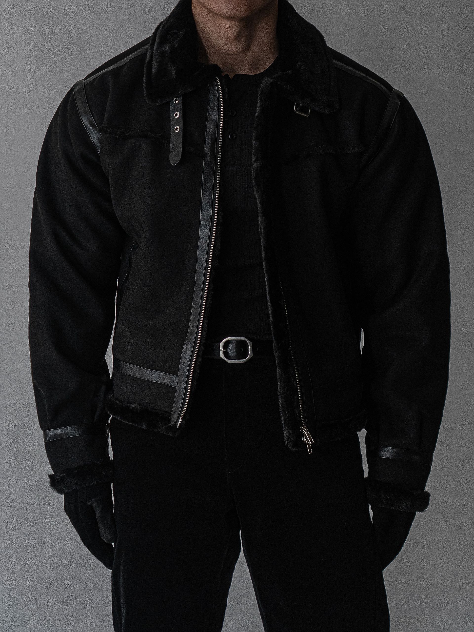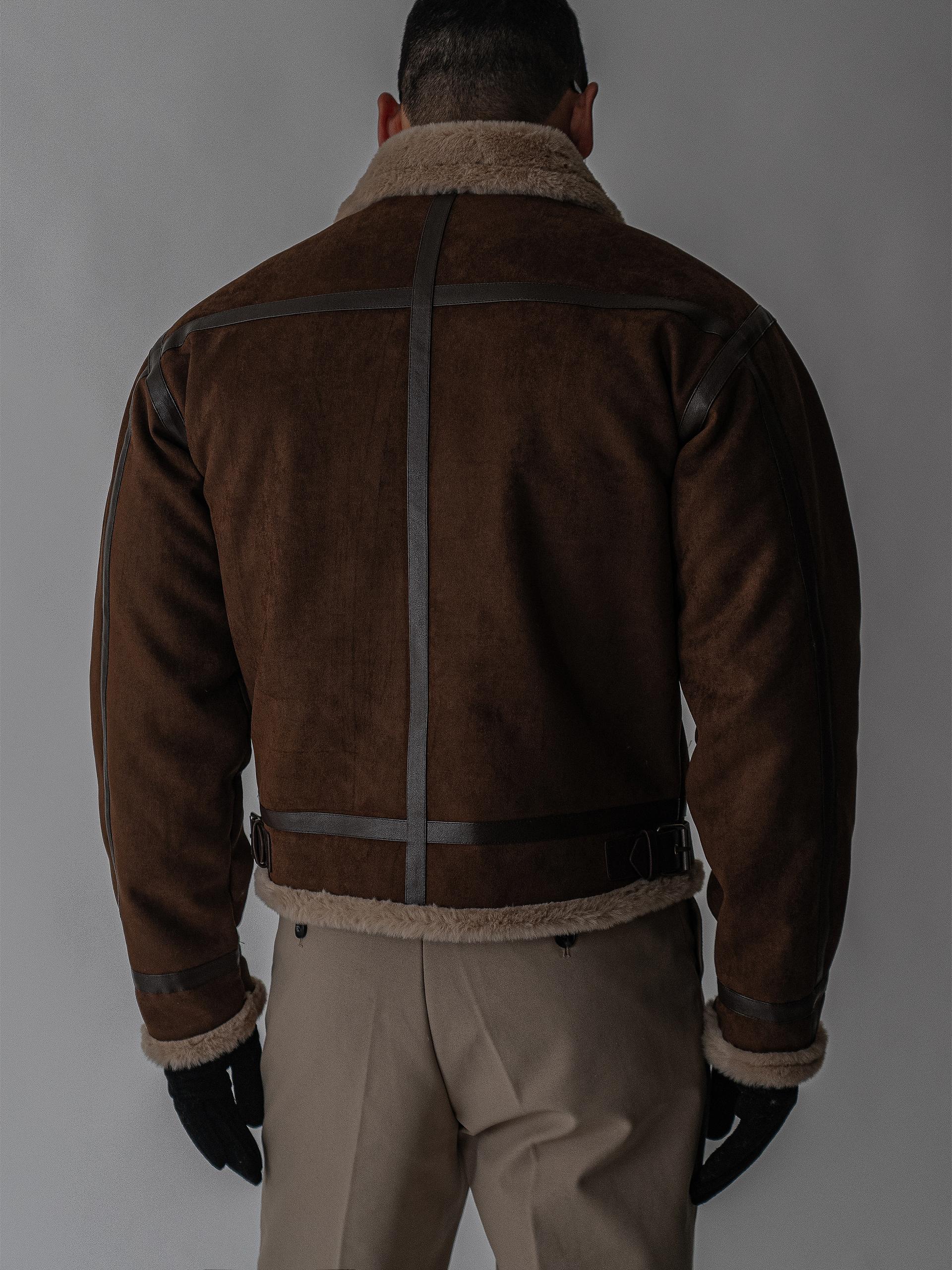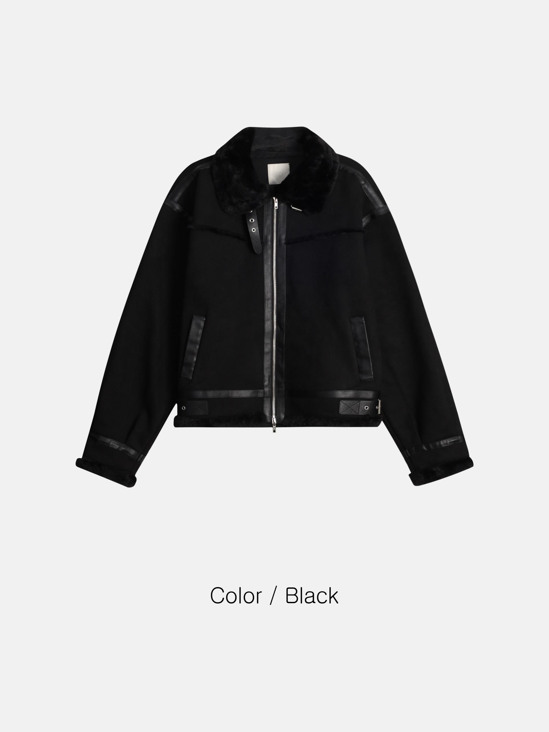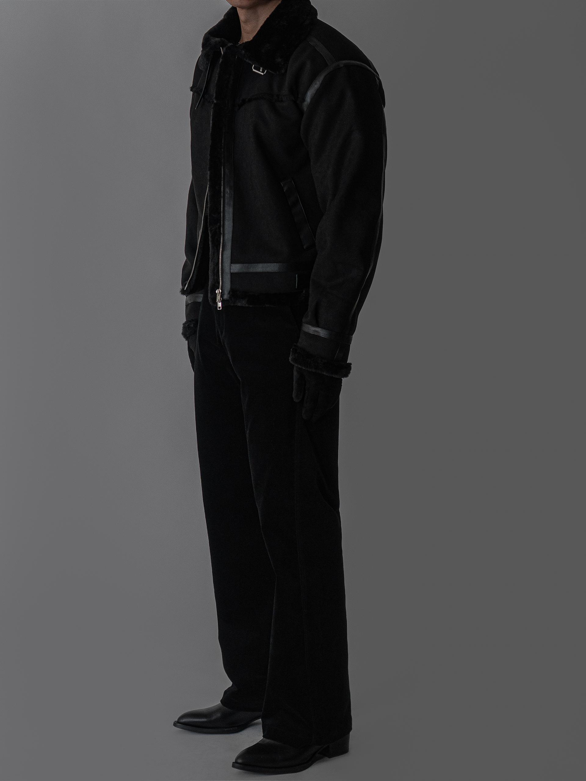 - 에코 스웨이드 웨스턴 라인의 크롭 무스탕 자켓
