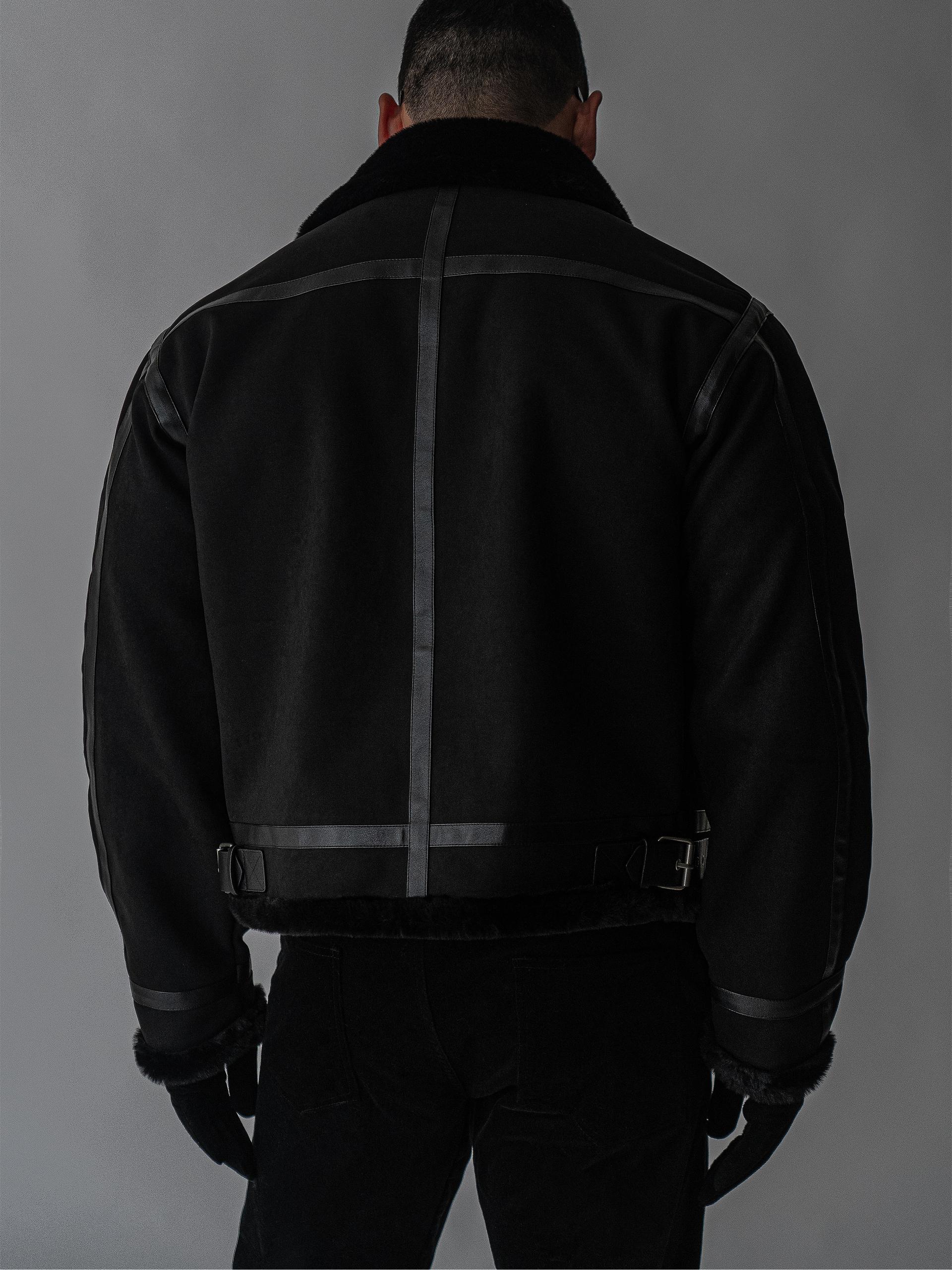 - 어깨 라인을 따라 더해진 가죽 트리밍으로 상체 윤곽을 선명하게 강조