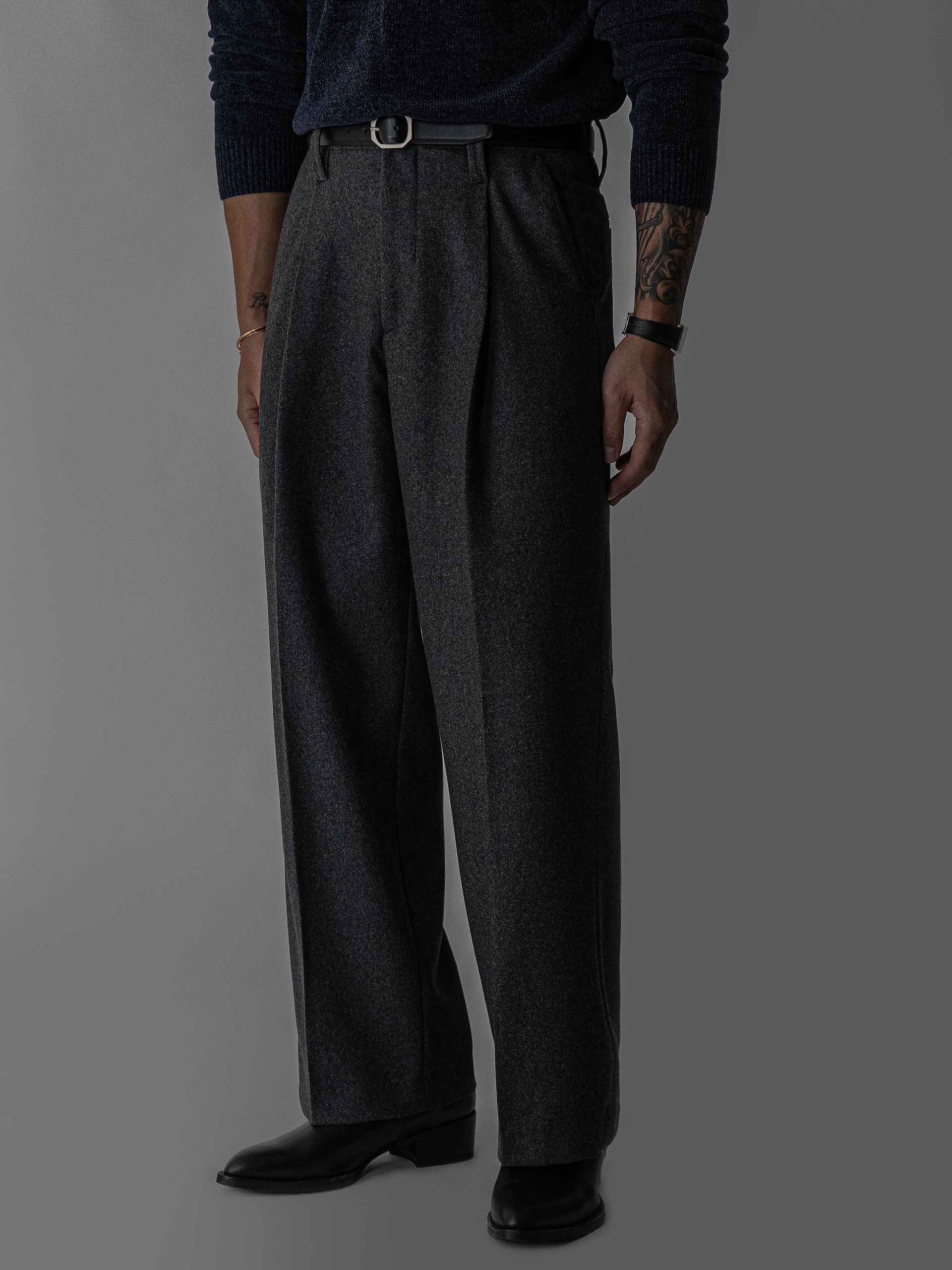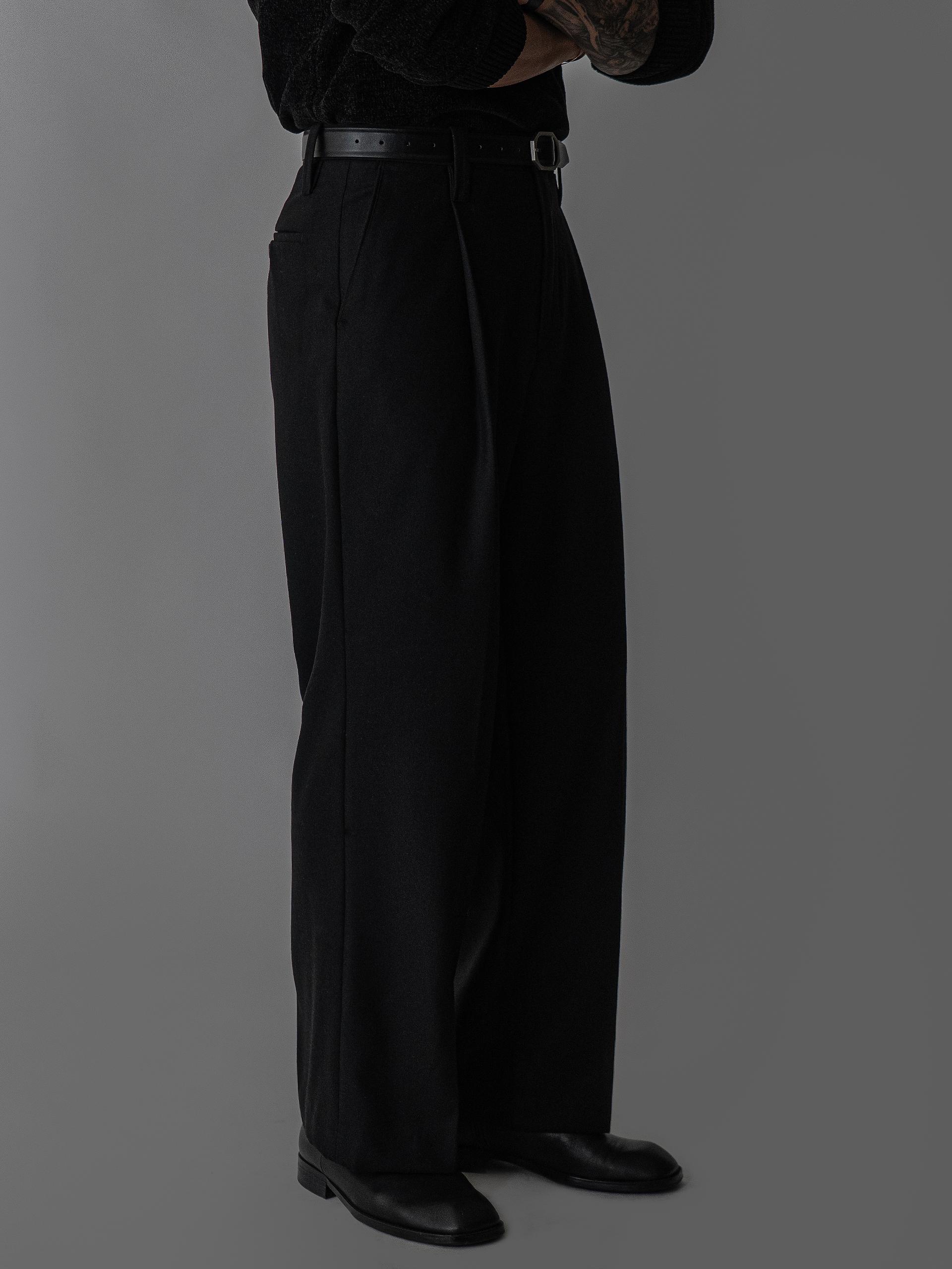- 프론트 원턱 디테일로 허벅지 라인은 여유롭고, 전체 비율은 단정하게 정리