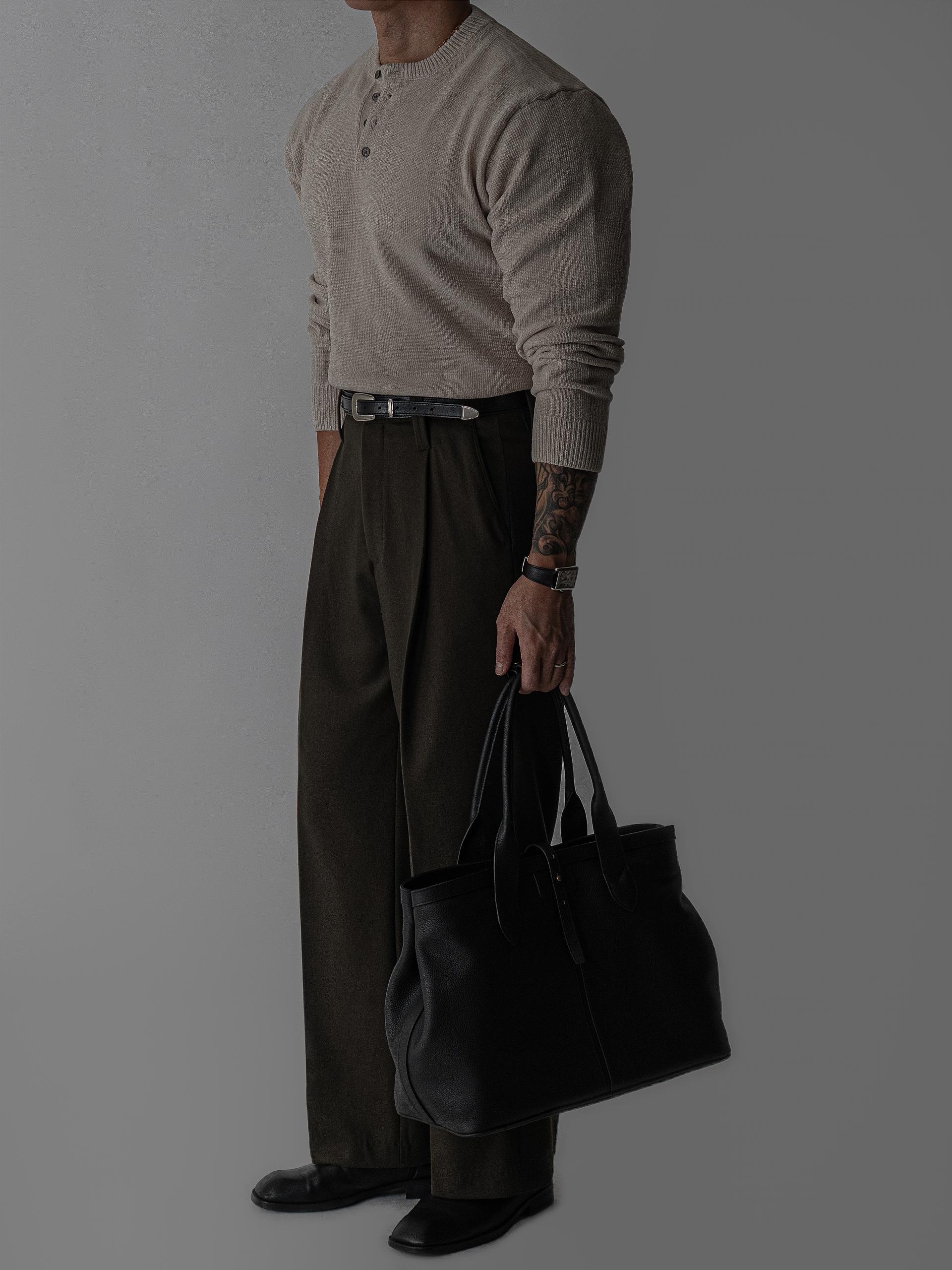 - 매트하고 밀도감 있는 텍스처로 고급스러운 무드와 안정적인 실루엣 연출