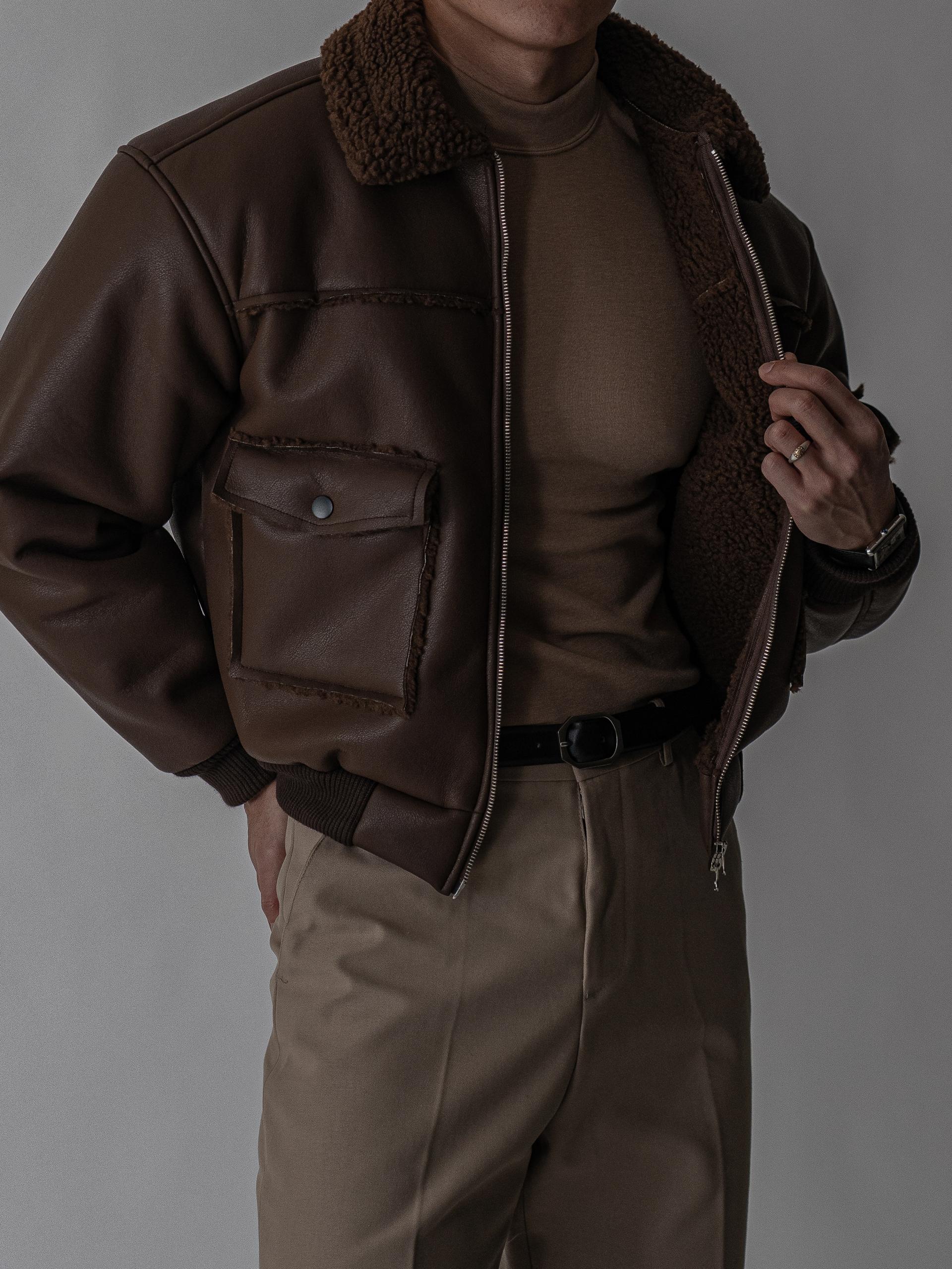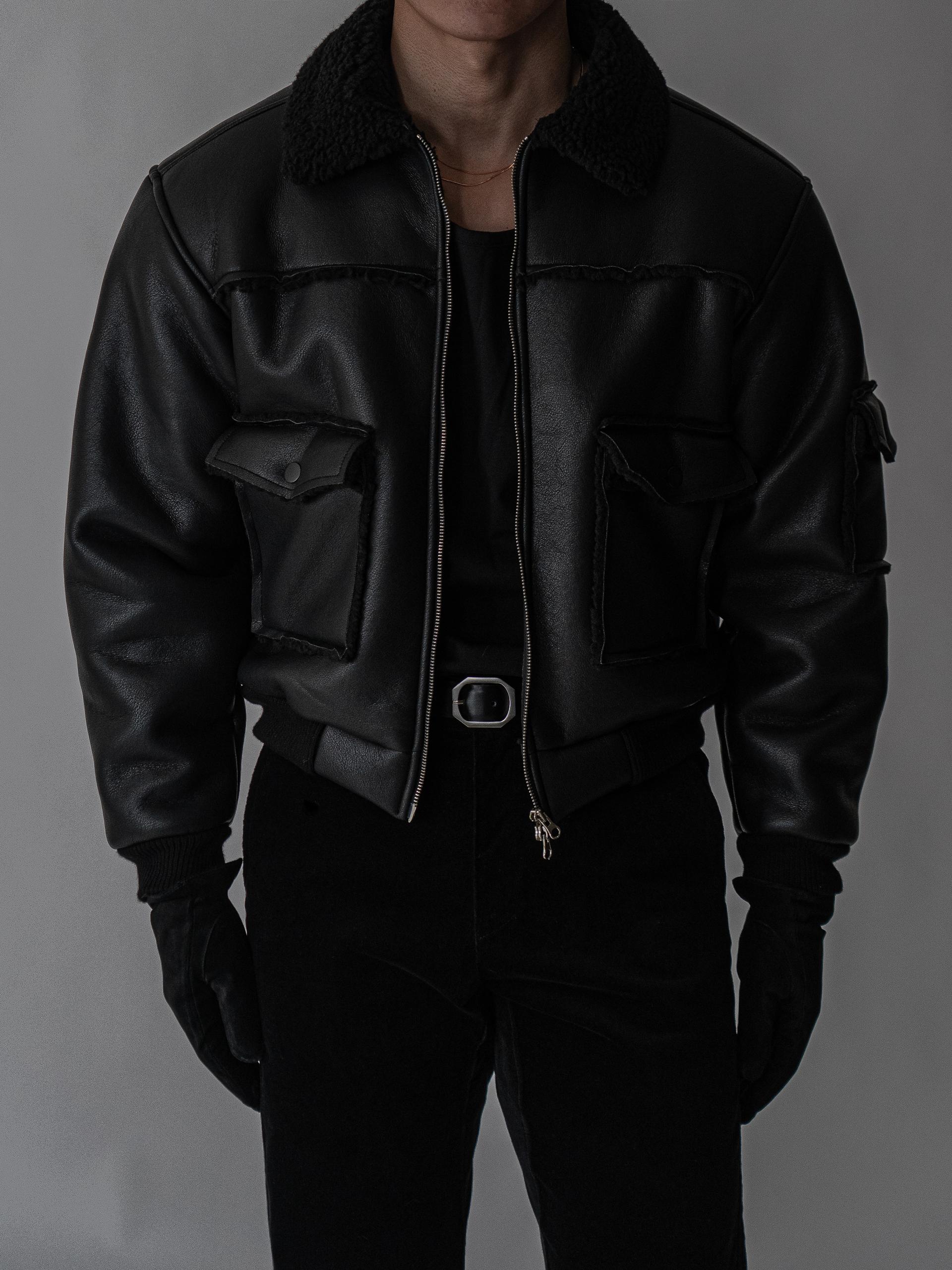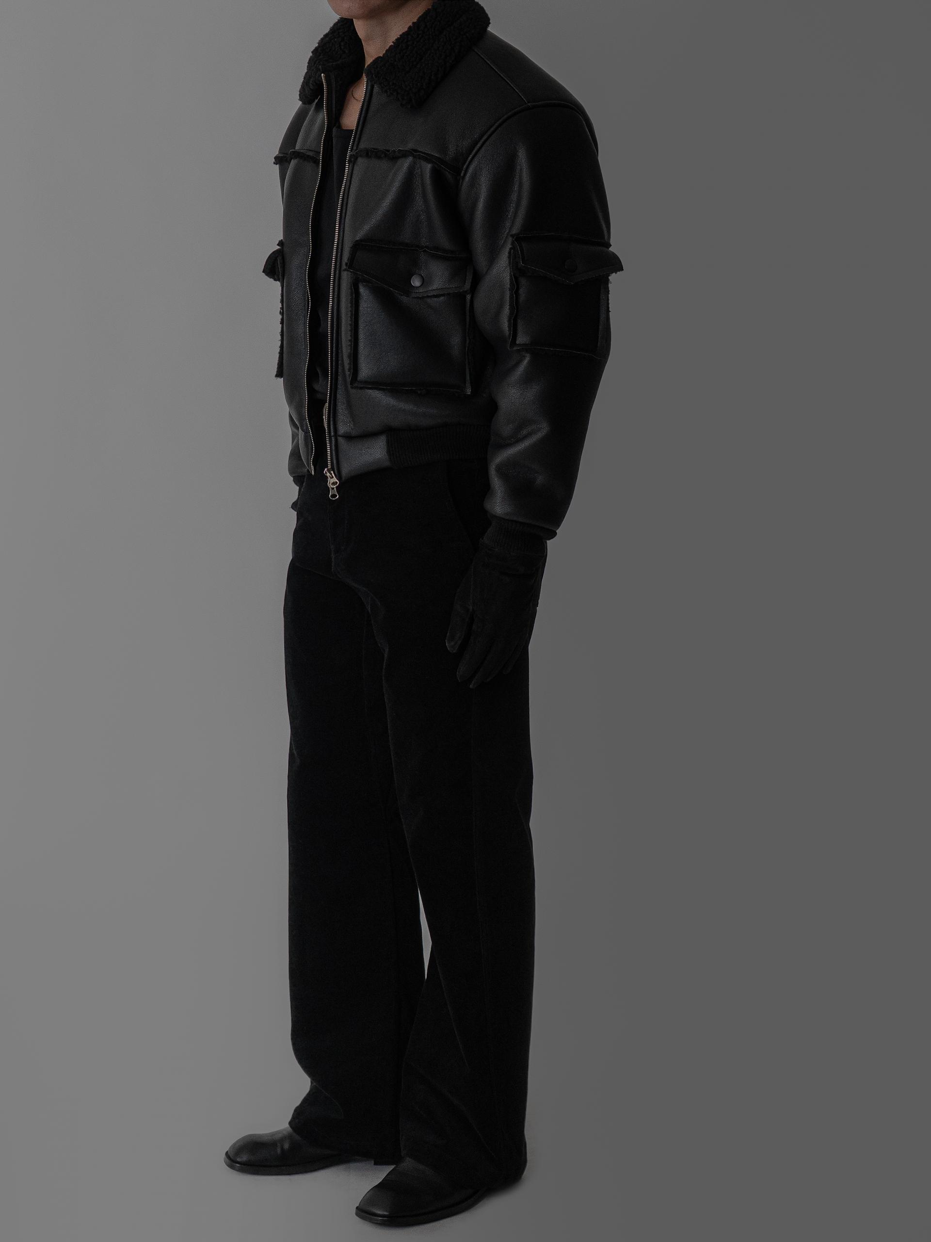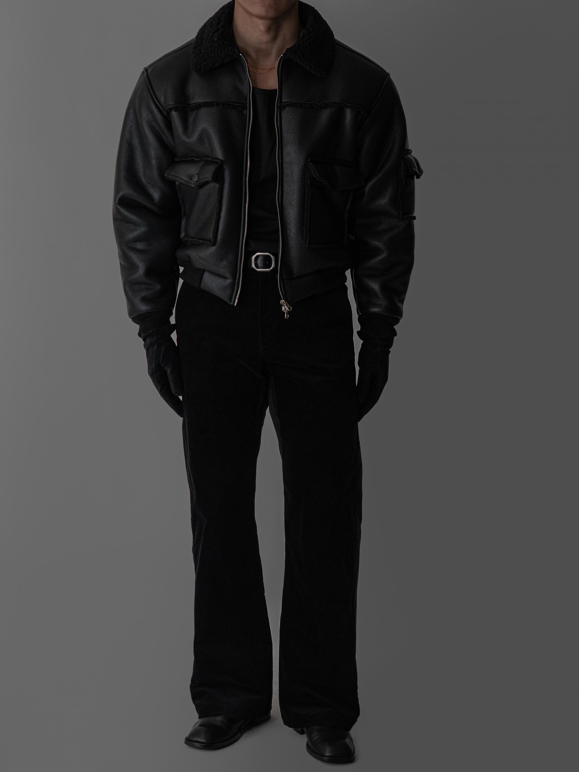 - 크롭 기장의 구조적인 실루엣으로 남성적인 라인을 강조한 아우터