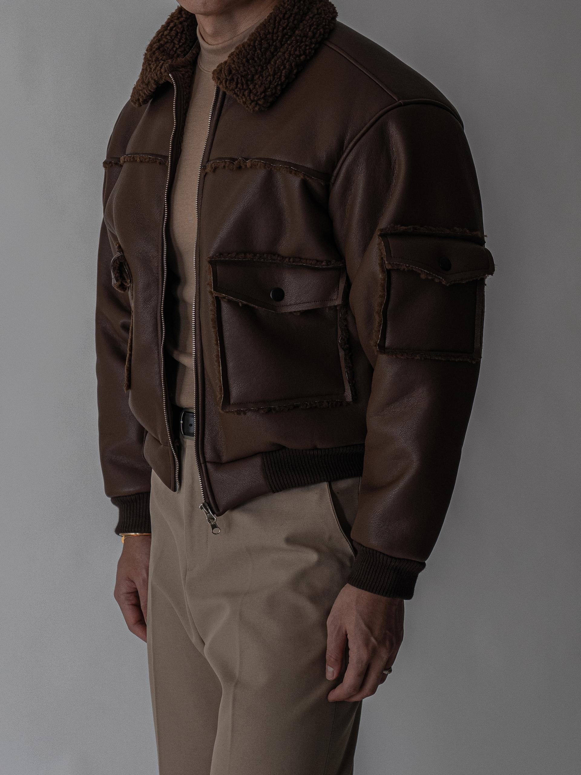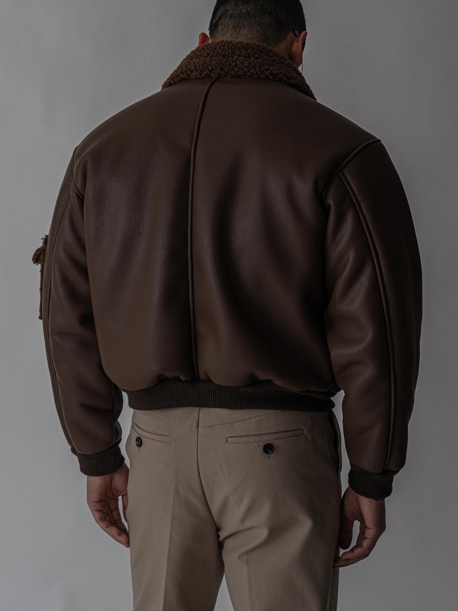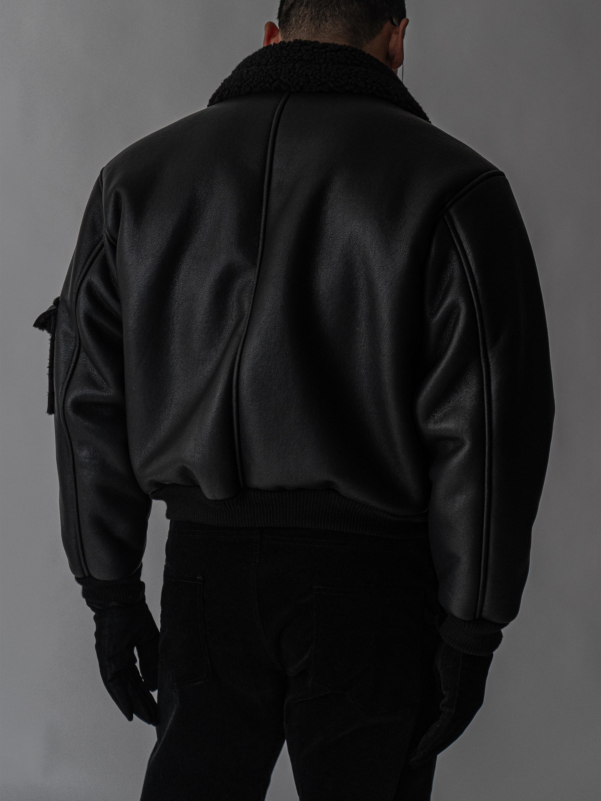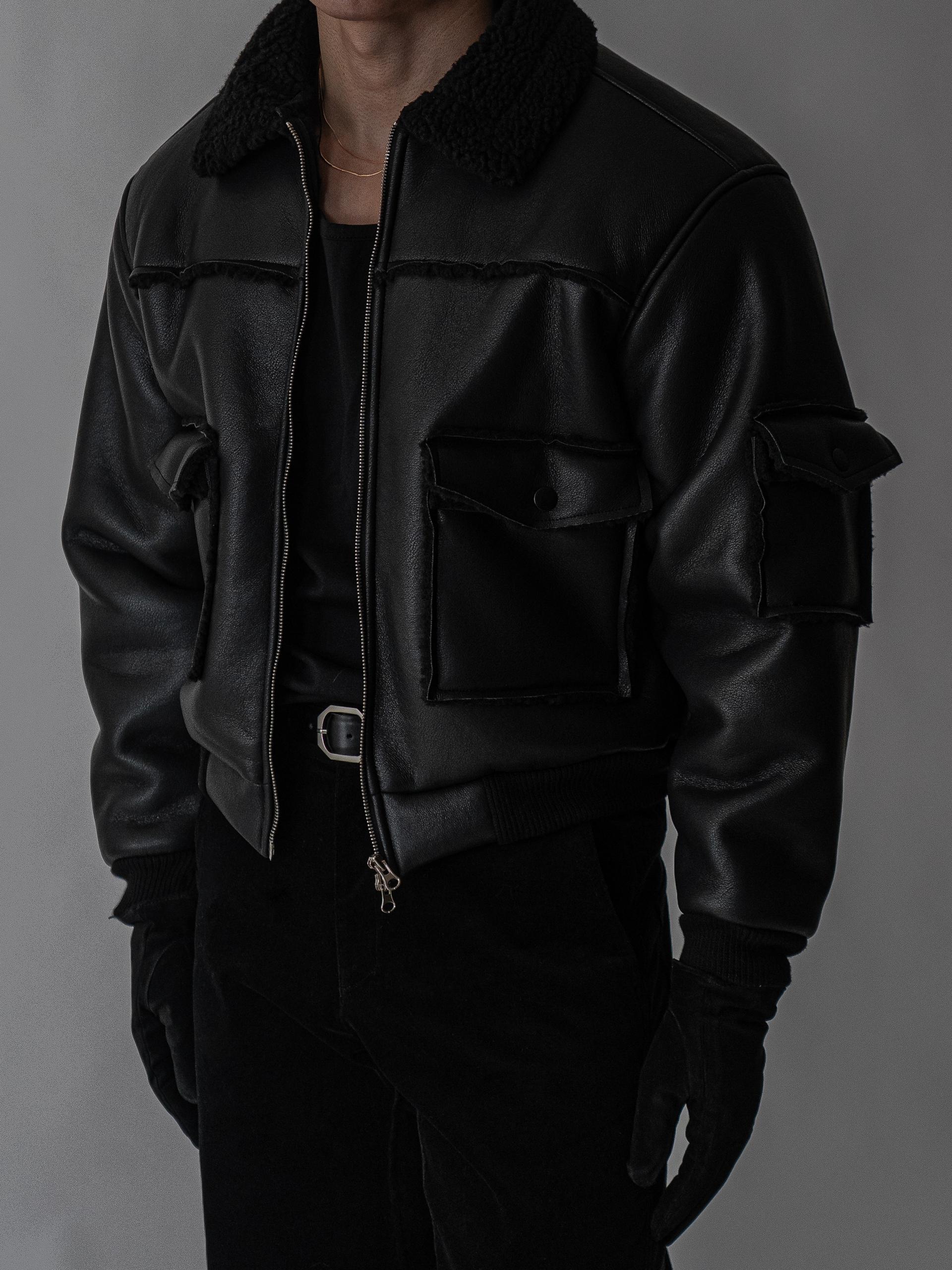 - 크롭 기장의 구조적인 실루엣으로 남성적인 라인을 강조한 아우터