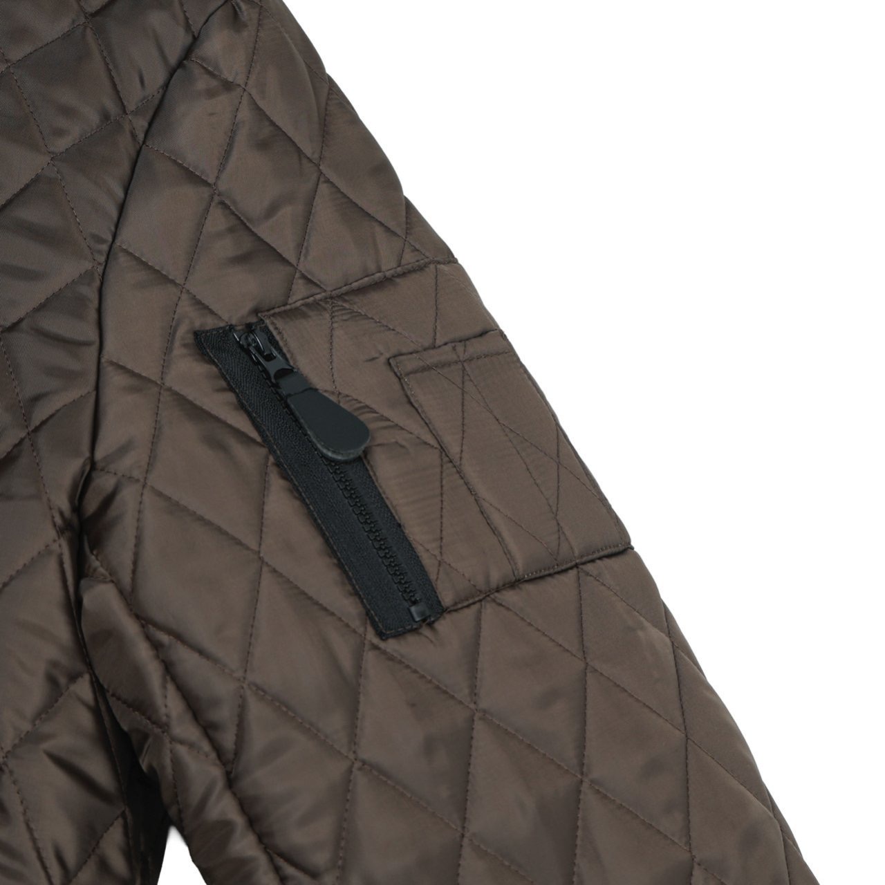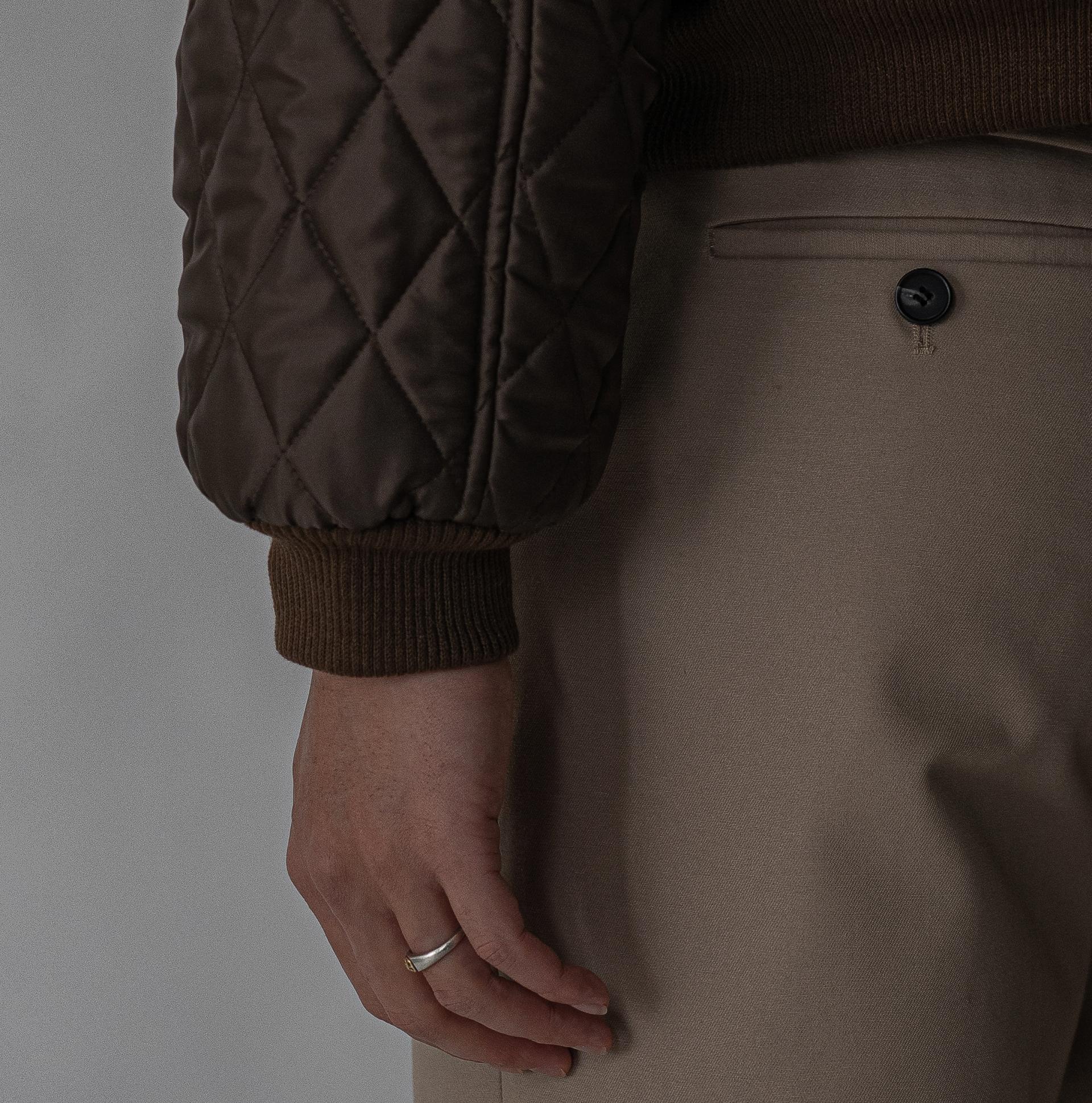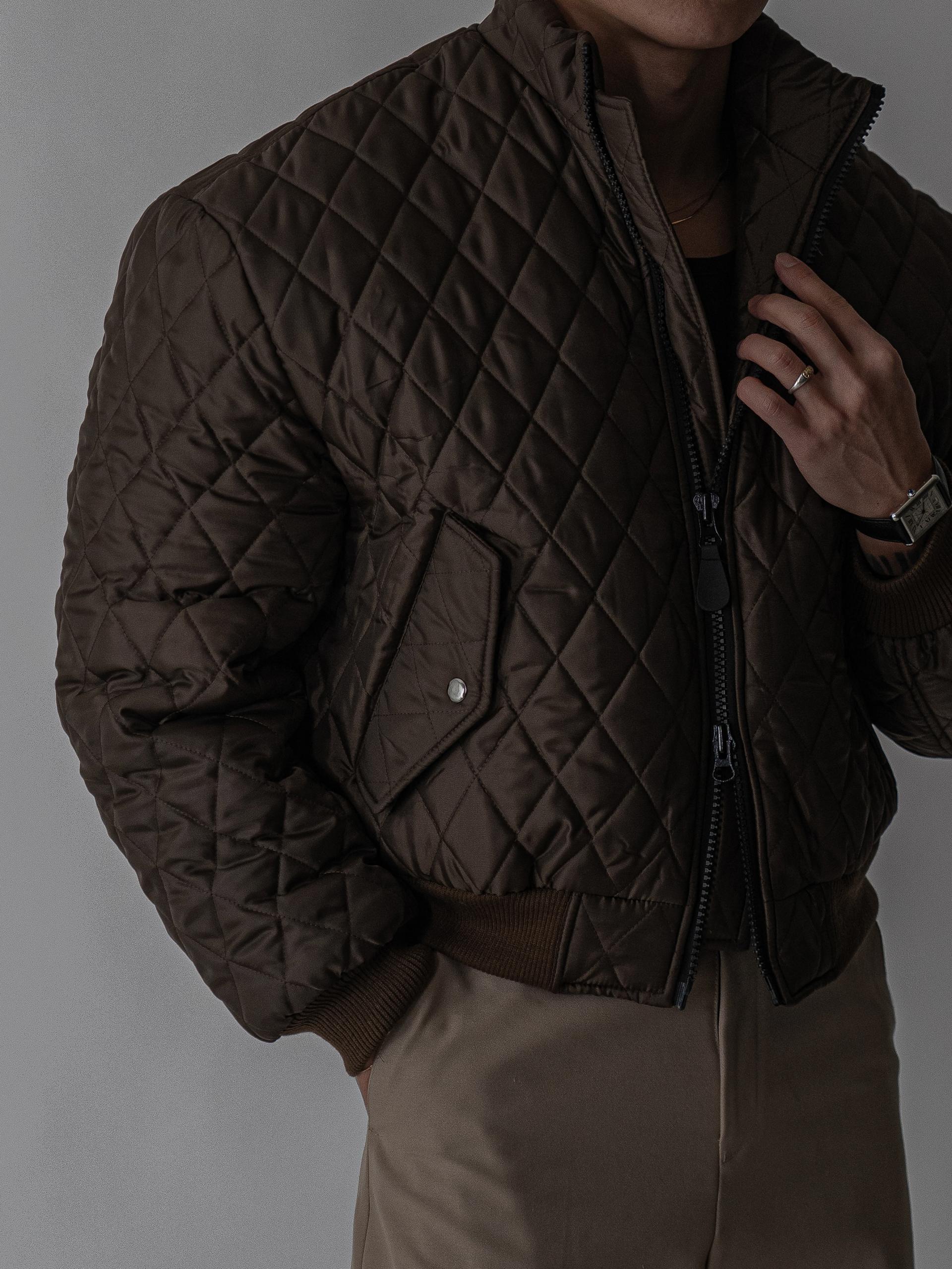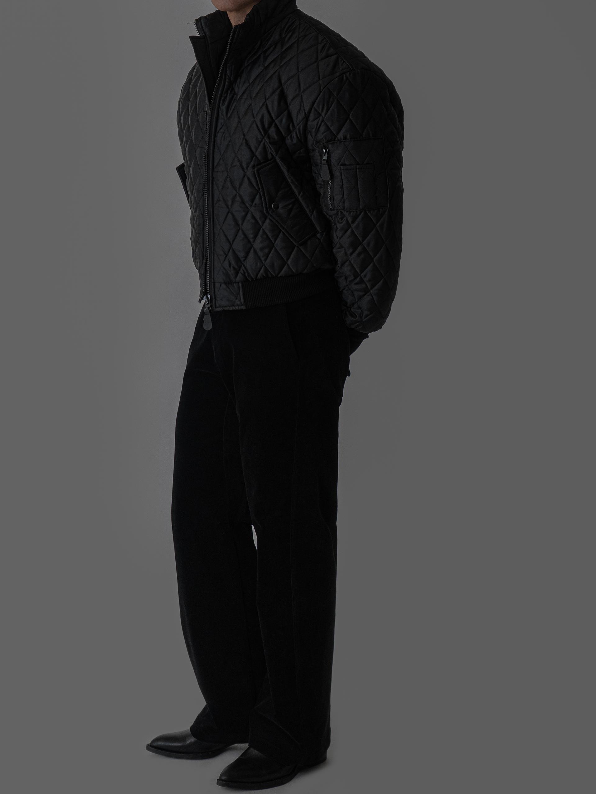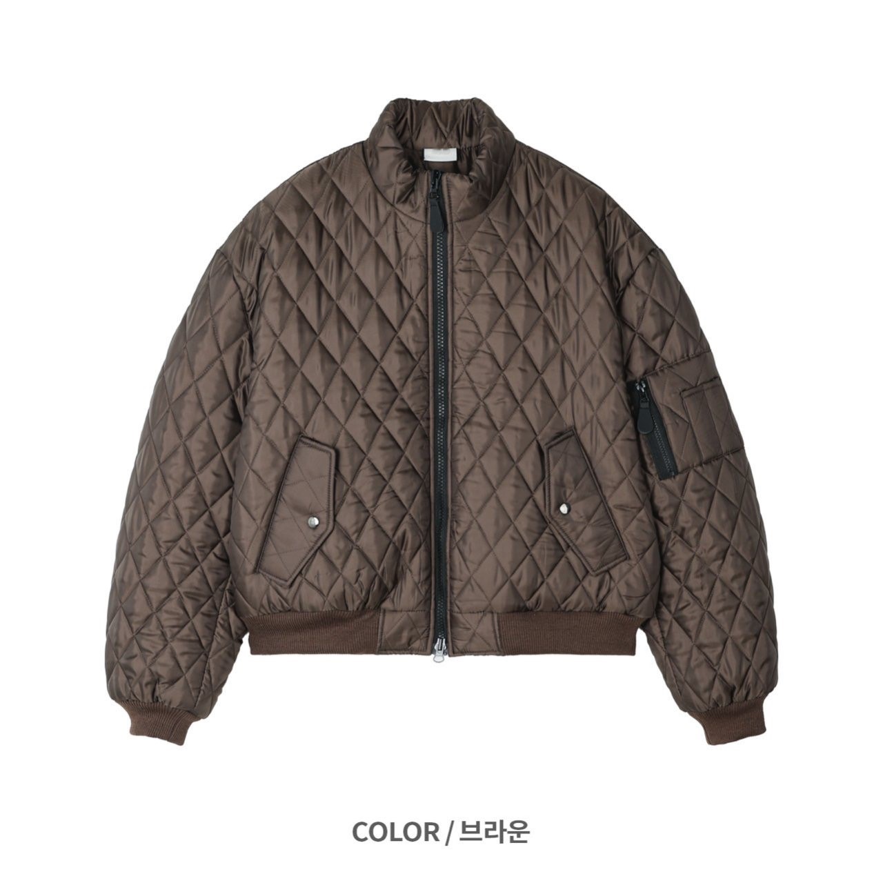 - 정방 퀄팅 자수 디테일로 볼륨감은 살리고 전체 실루엣은 정돈된 디자인