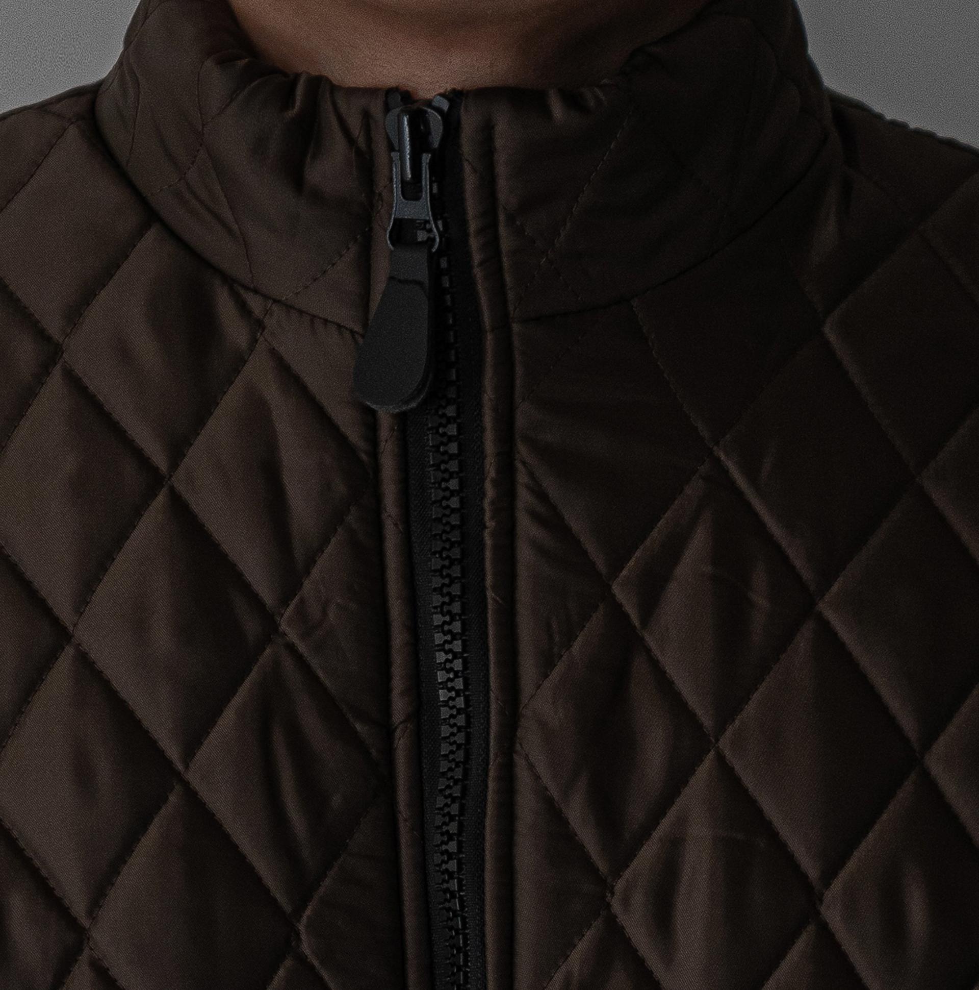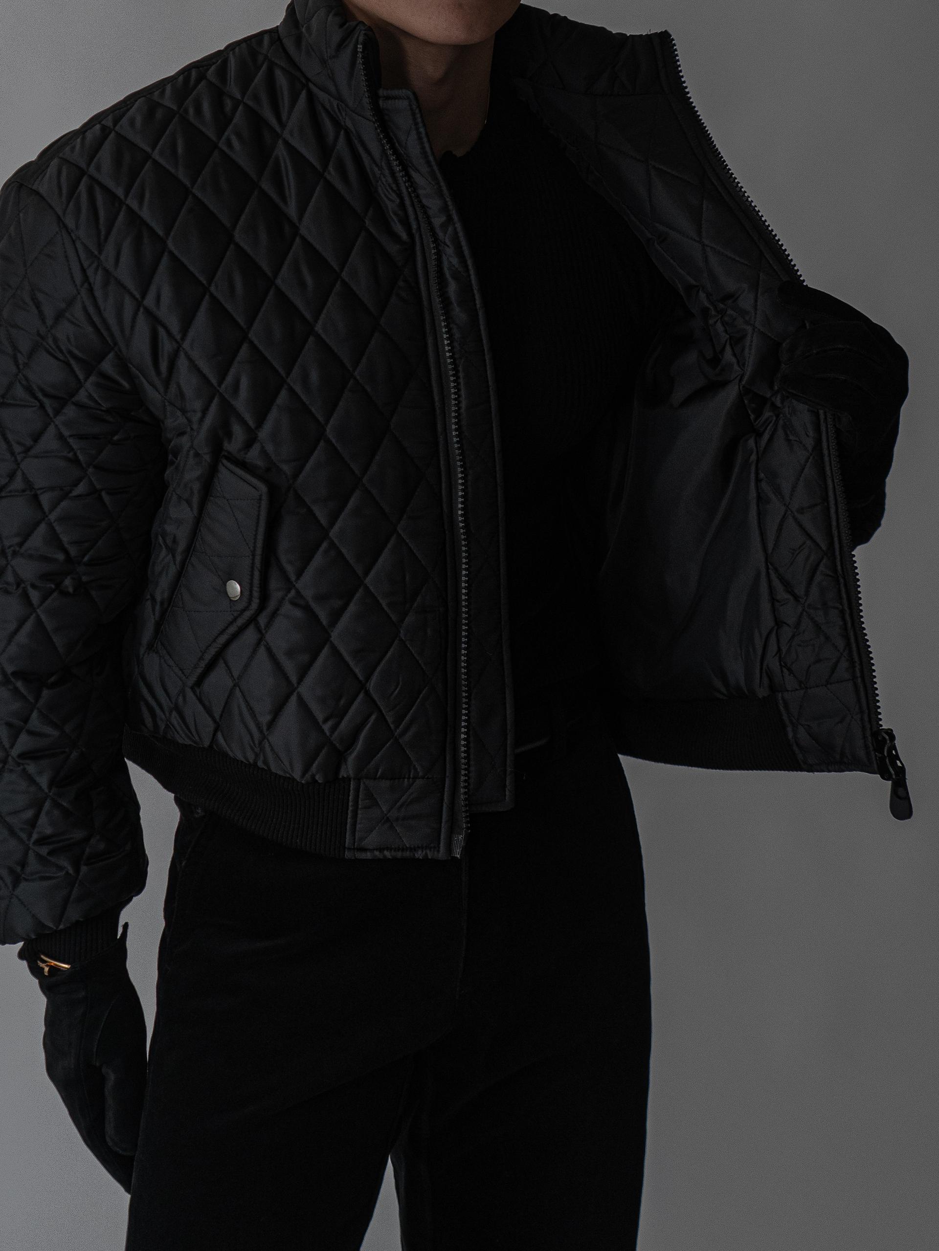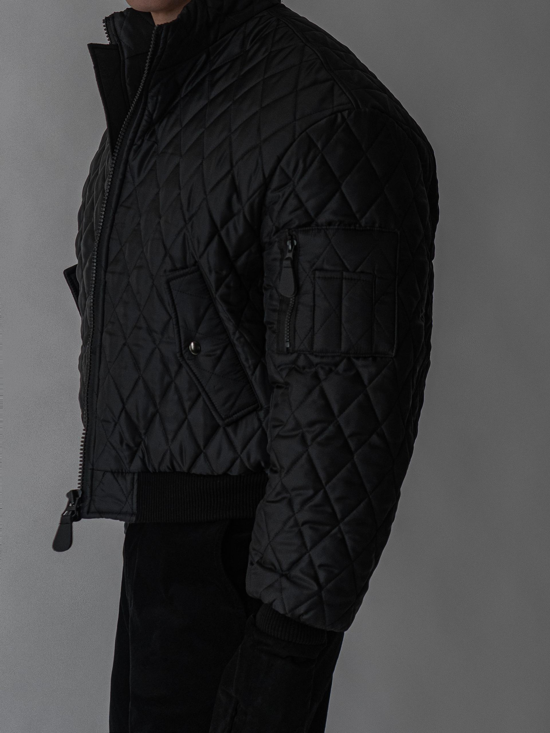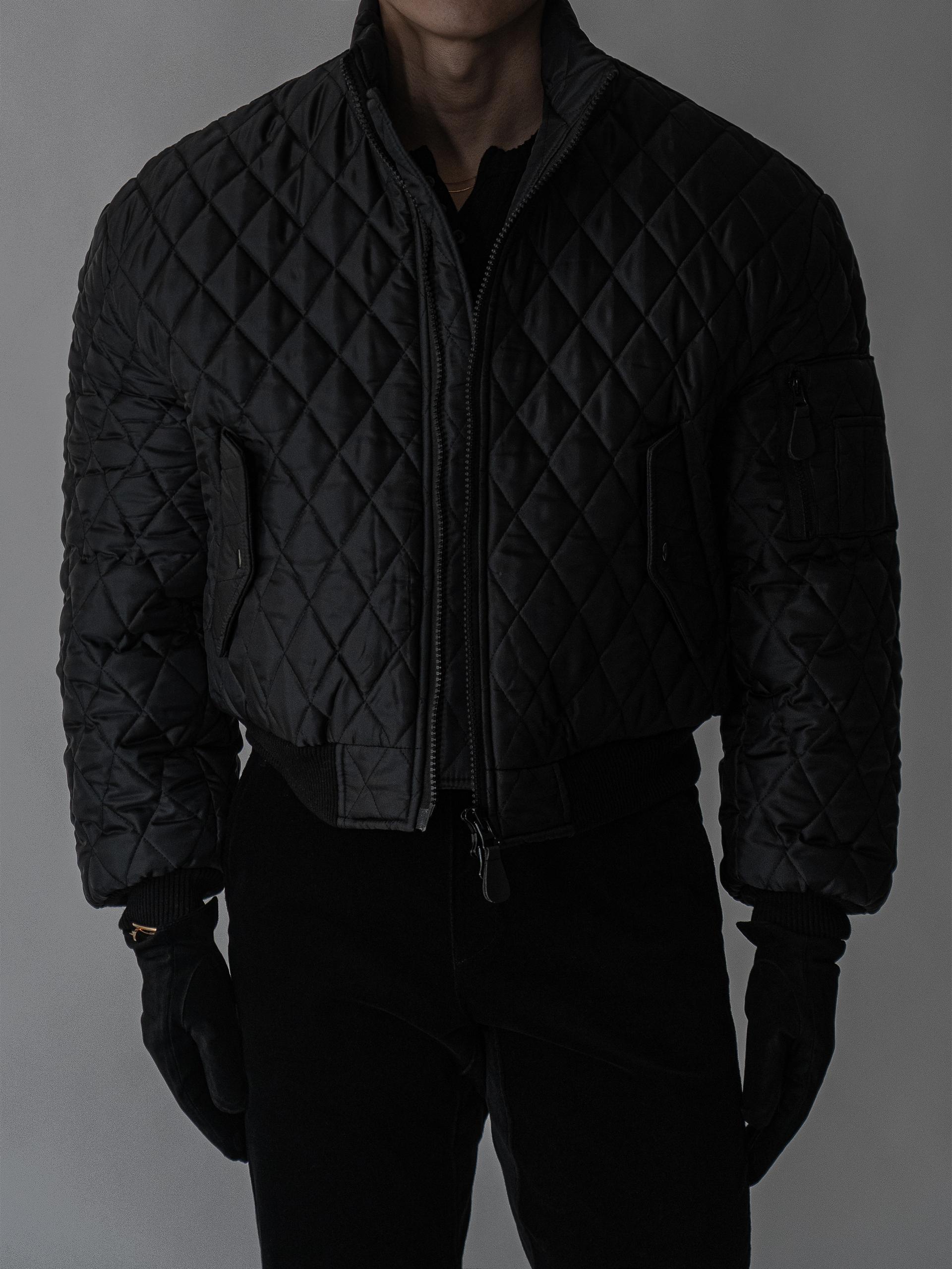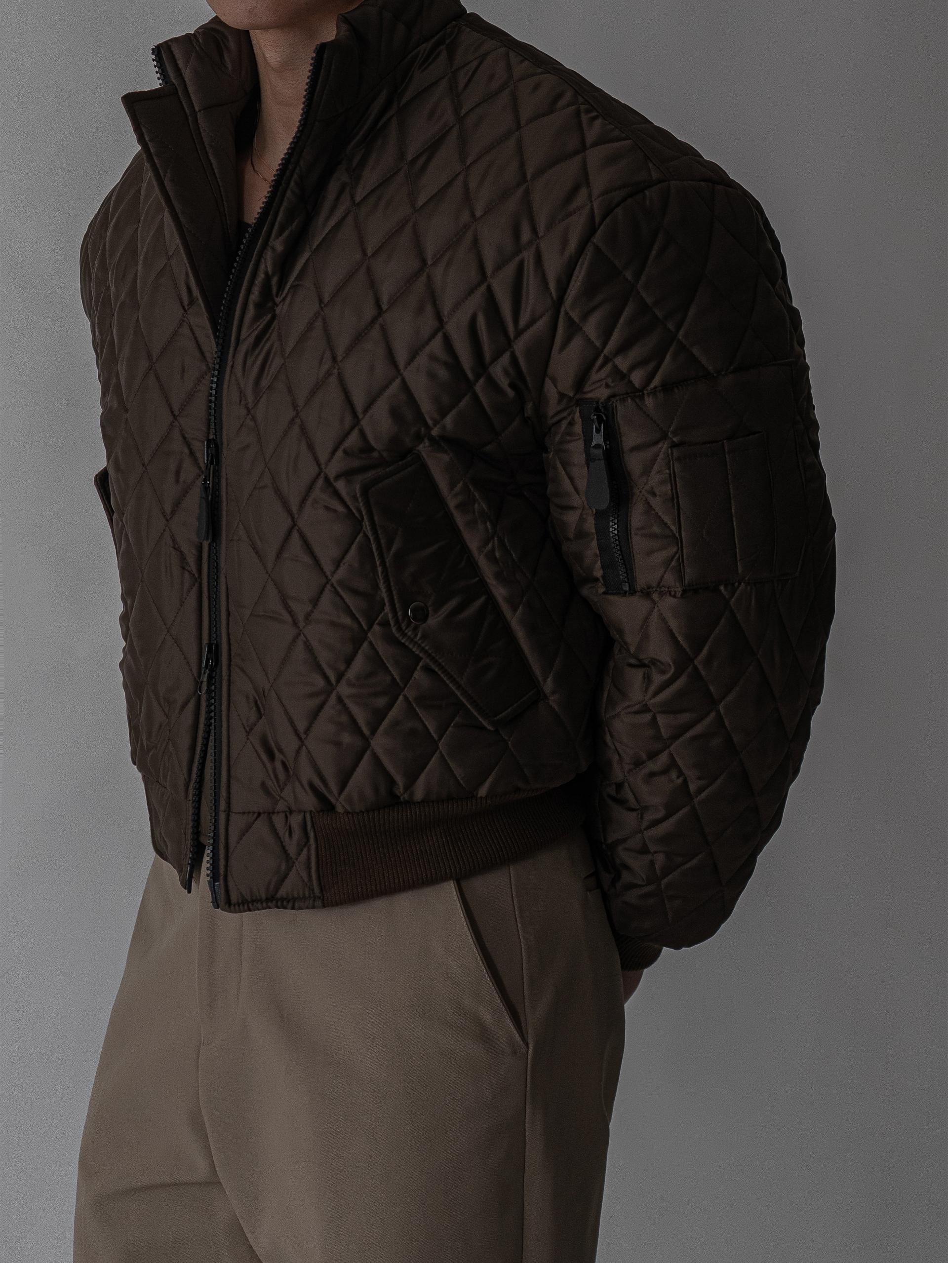 - 정방 퀄팅 자수 디테일로 볼륨감은 살리고 전체 실루엣은 정돈된 디자인