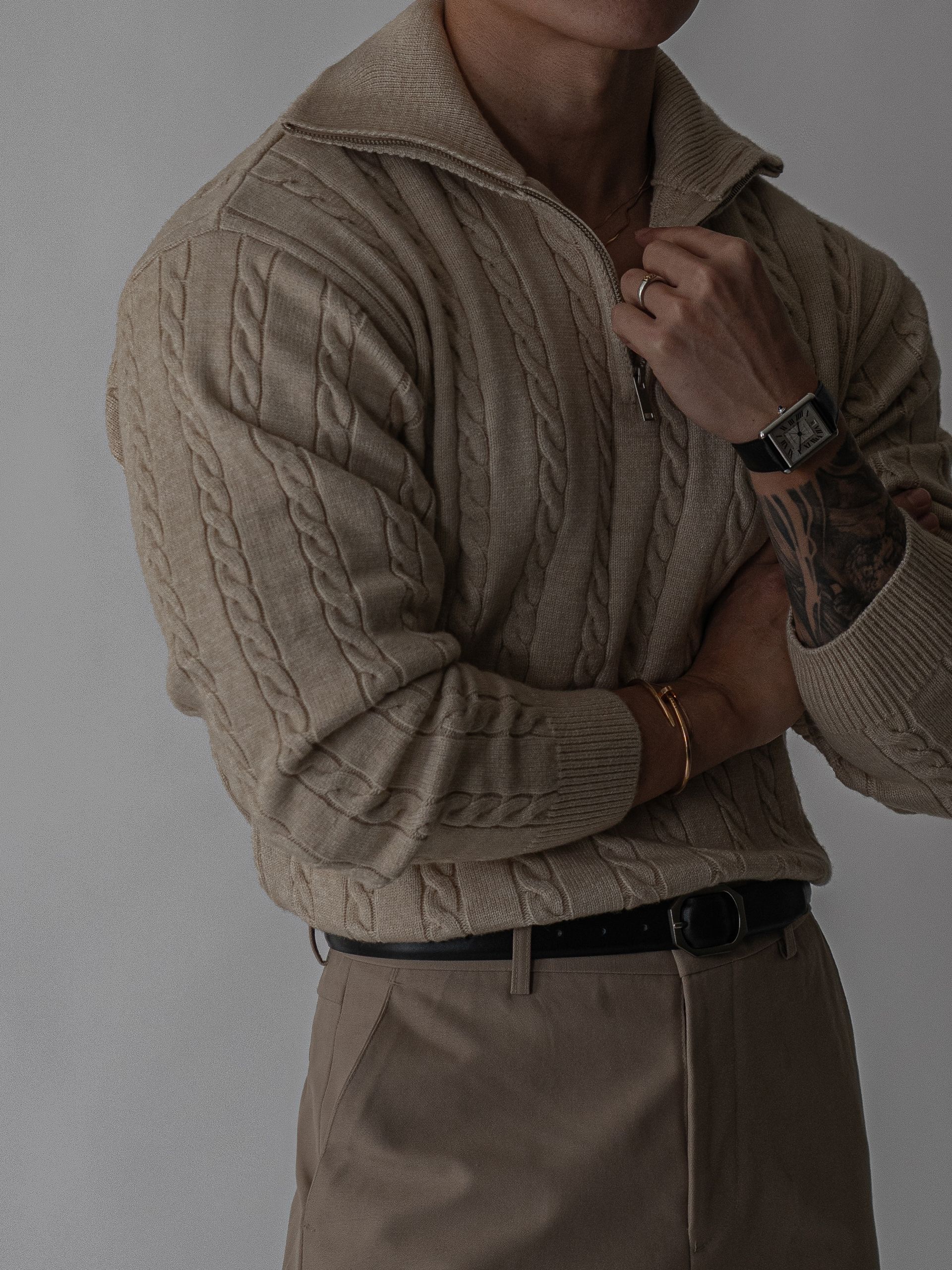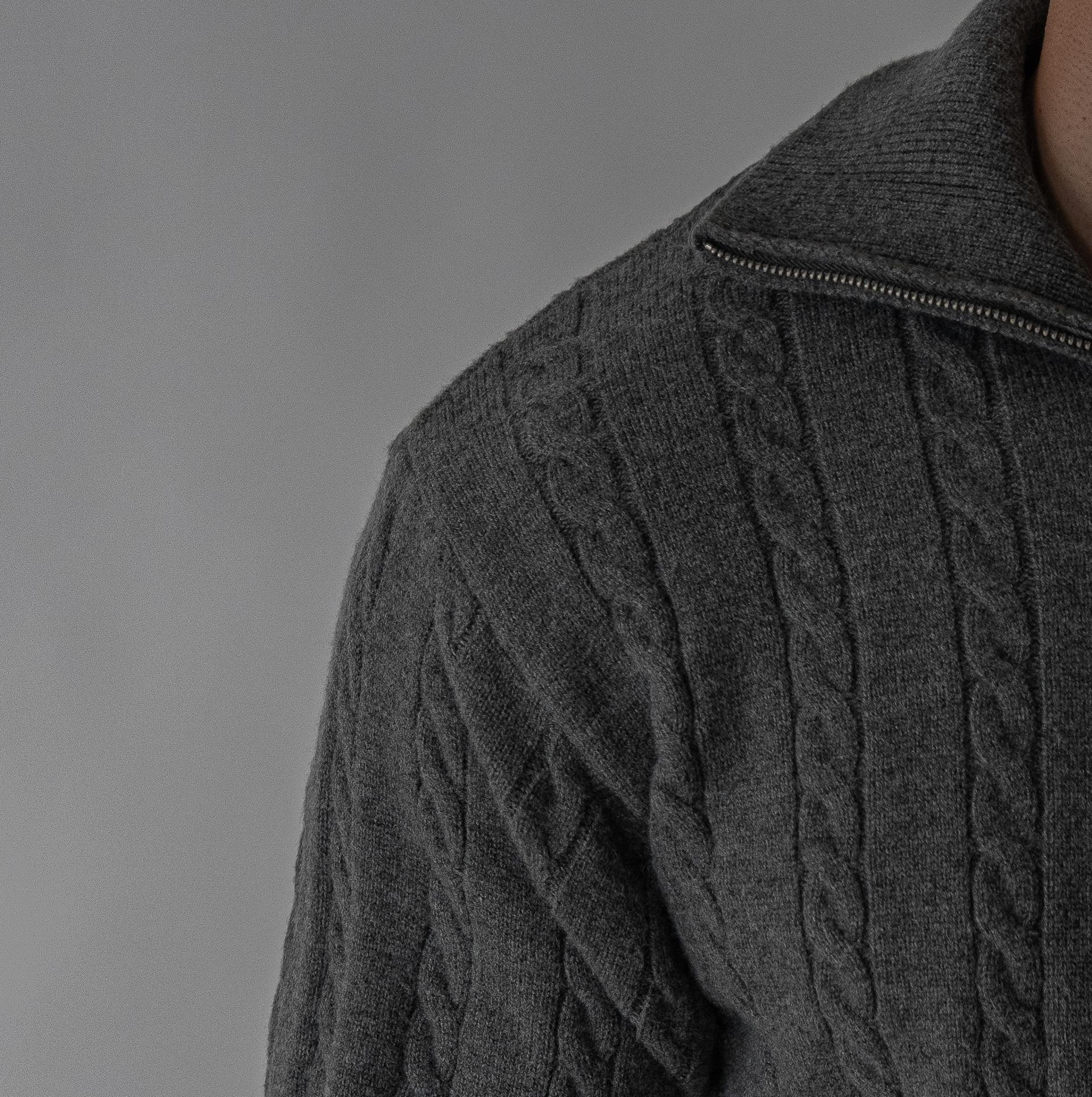 - 울, 폴리에스터, 아크릴 혼방 원사로 부드러움과 내구성을 균형 있게 갖춘 니트