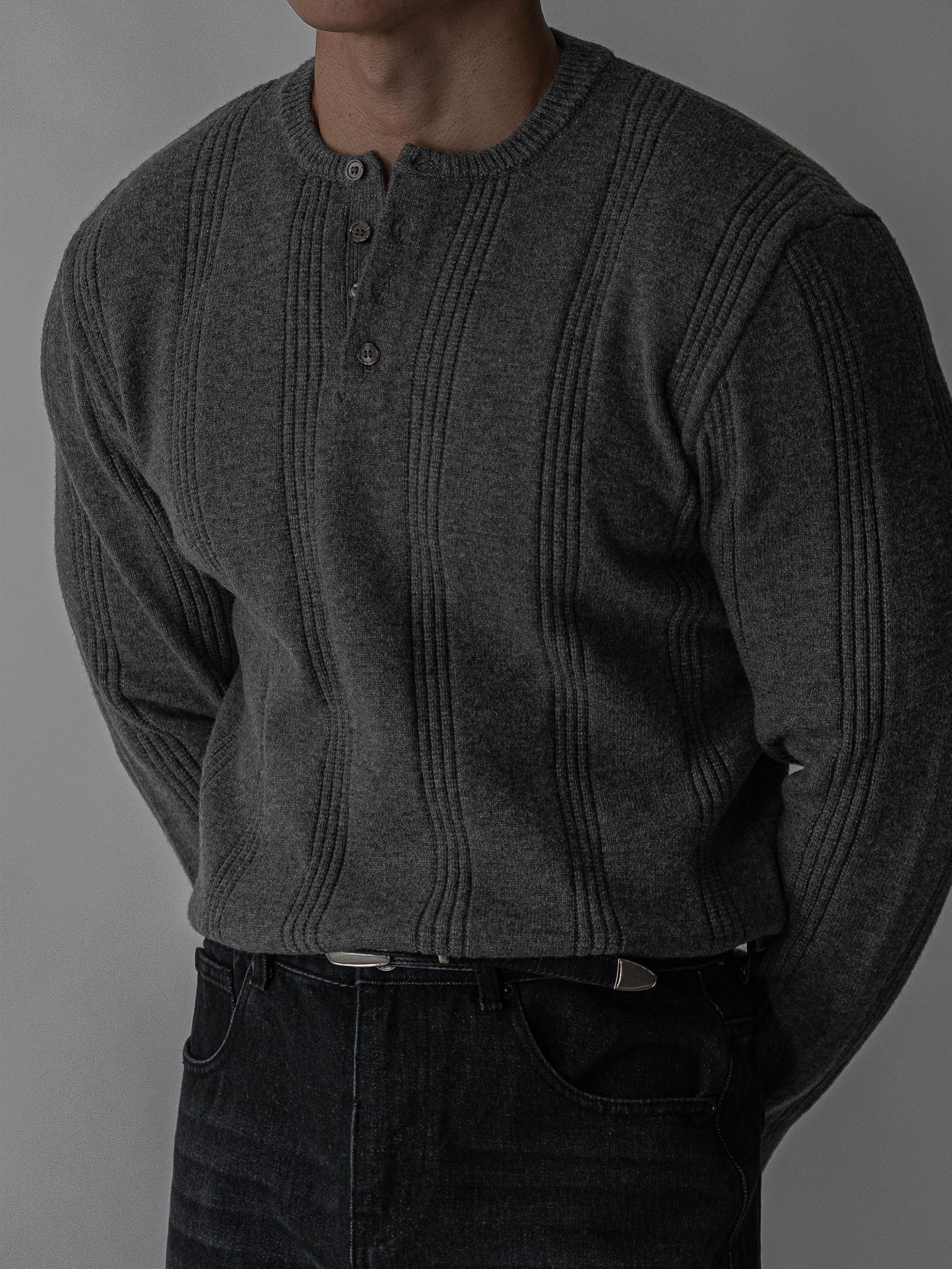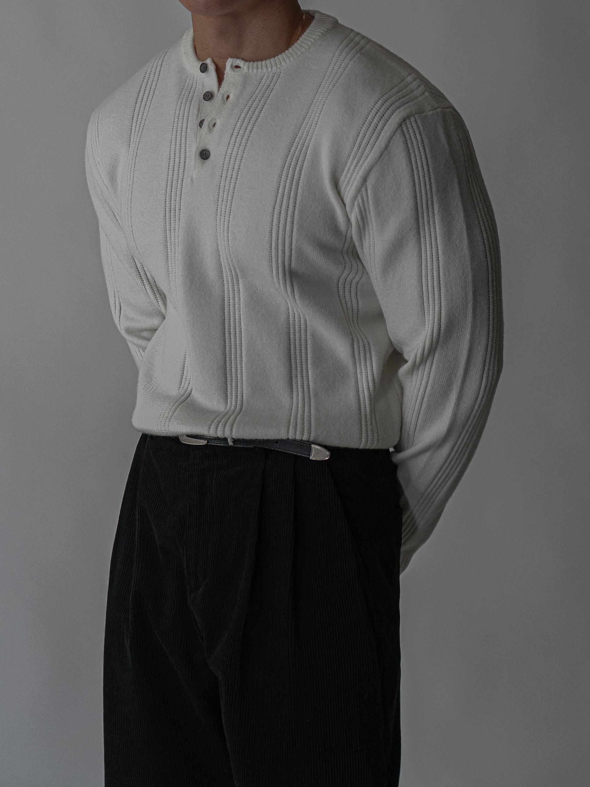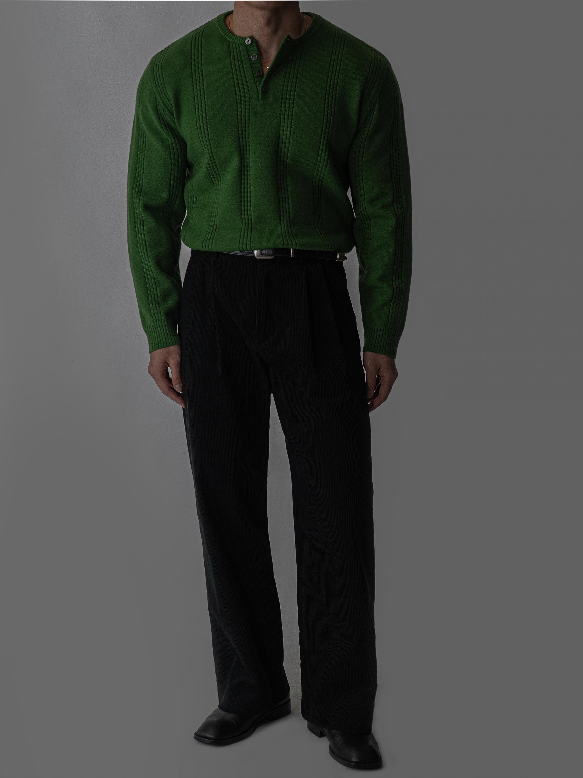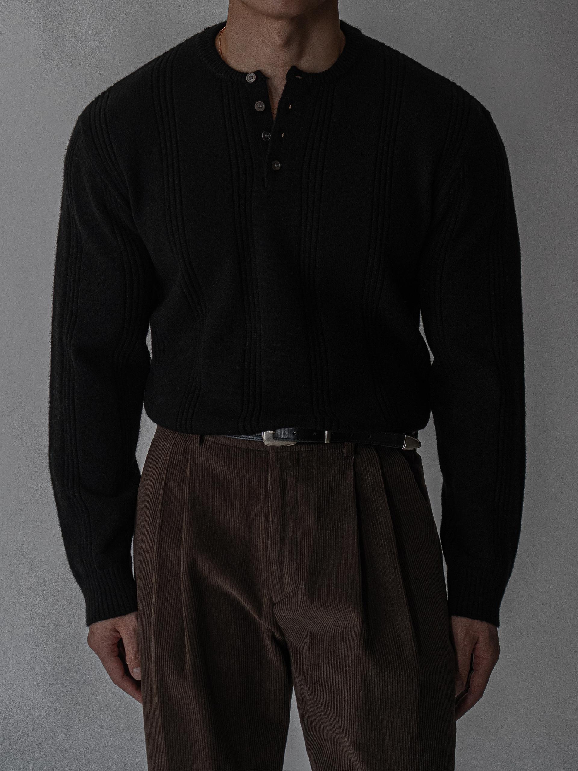 - 헨리넥 포버튼 디테일로 단정하면서도 남성적인 무드를 연출