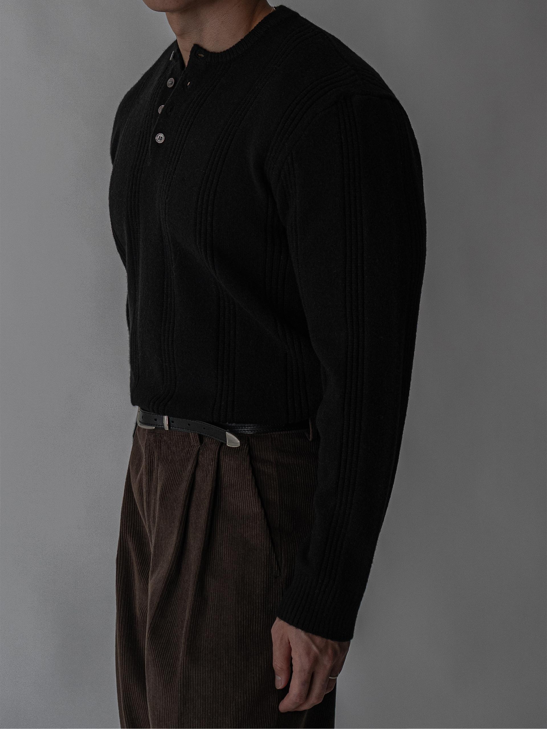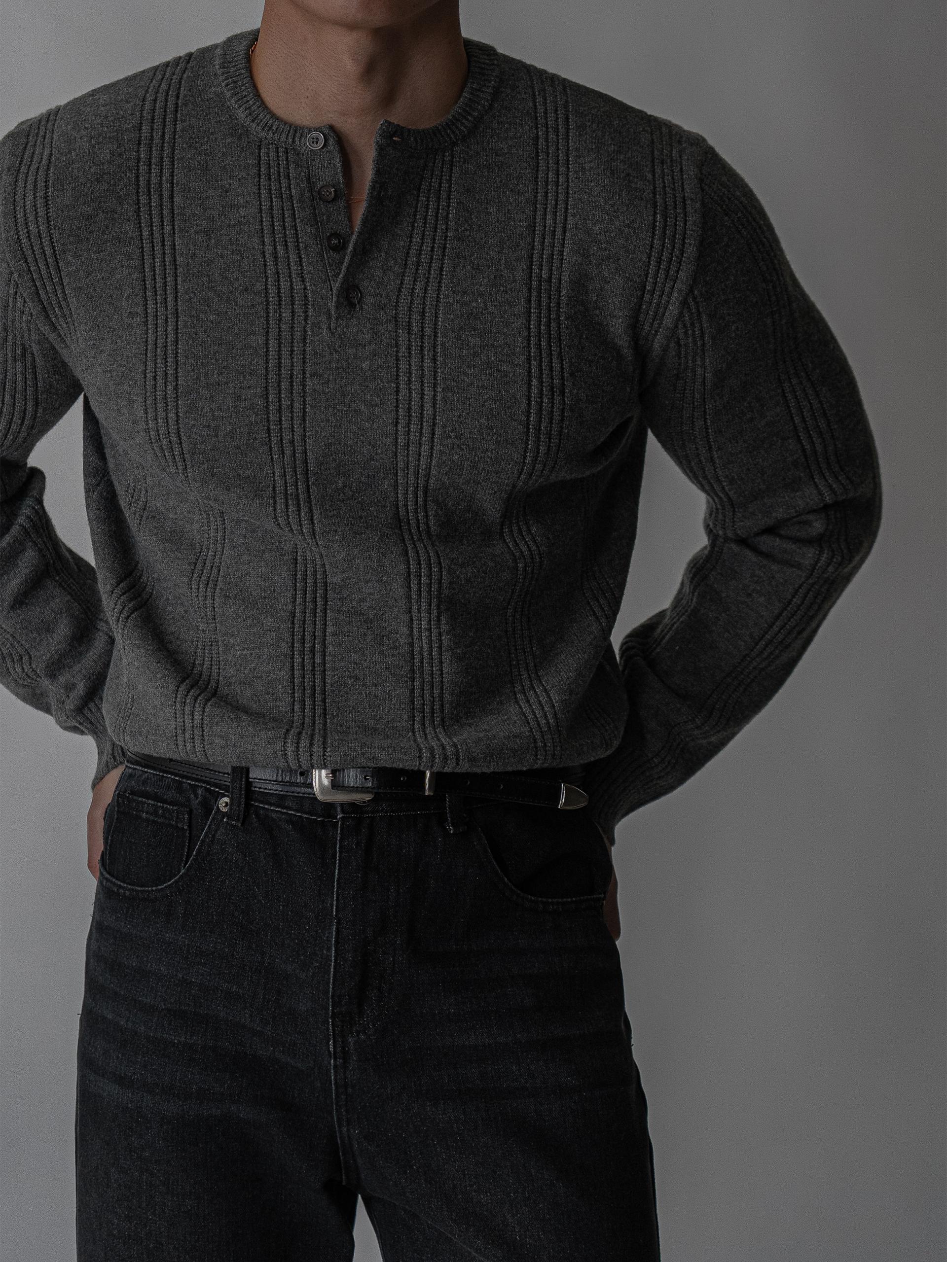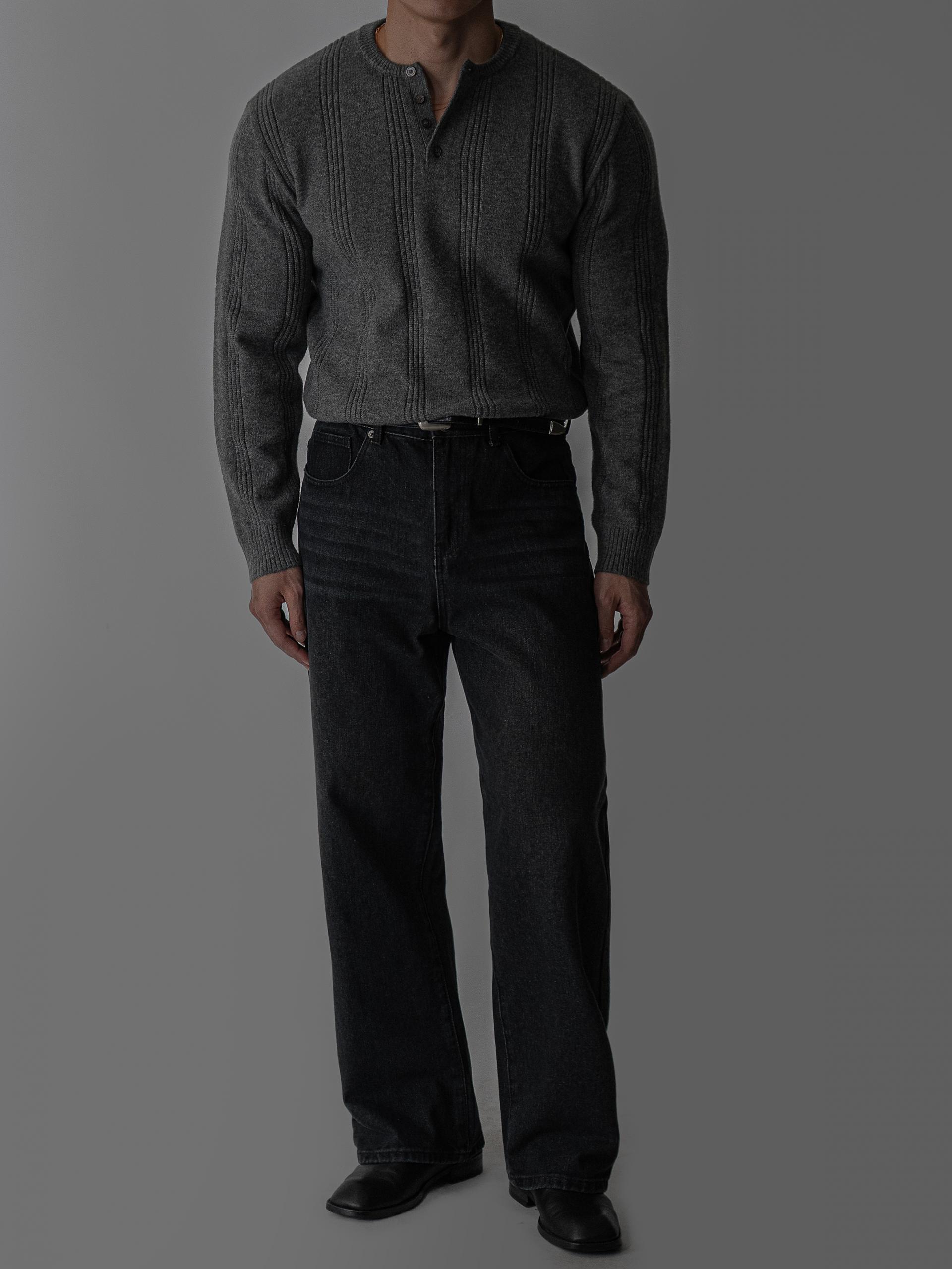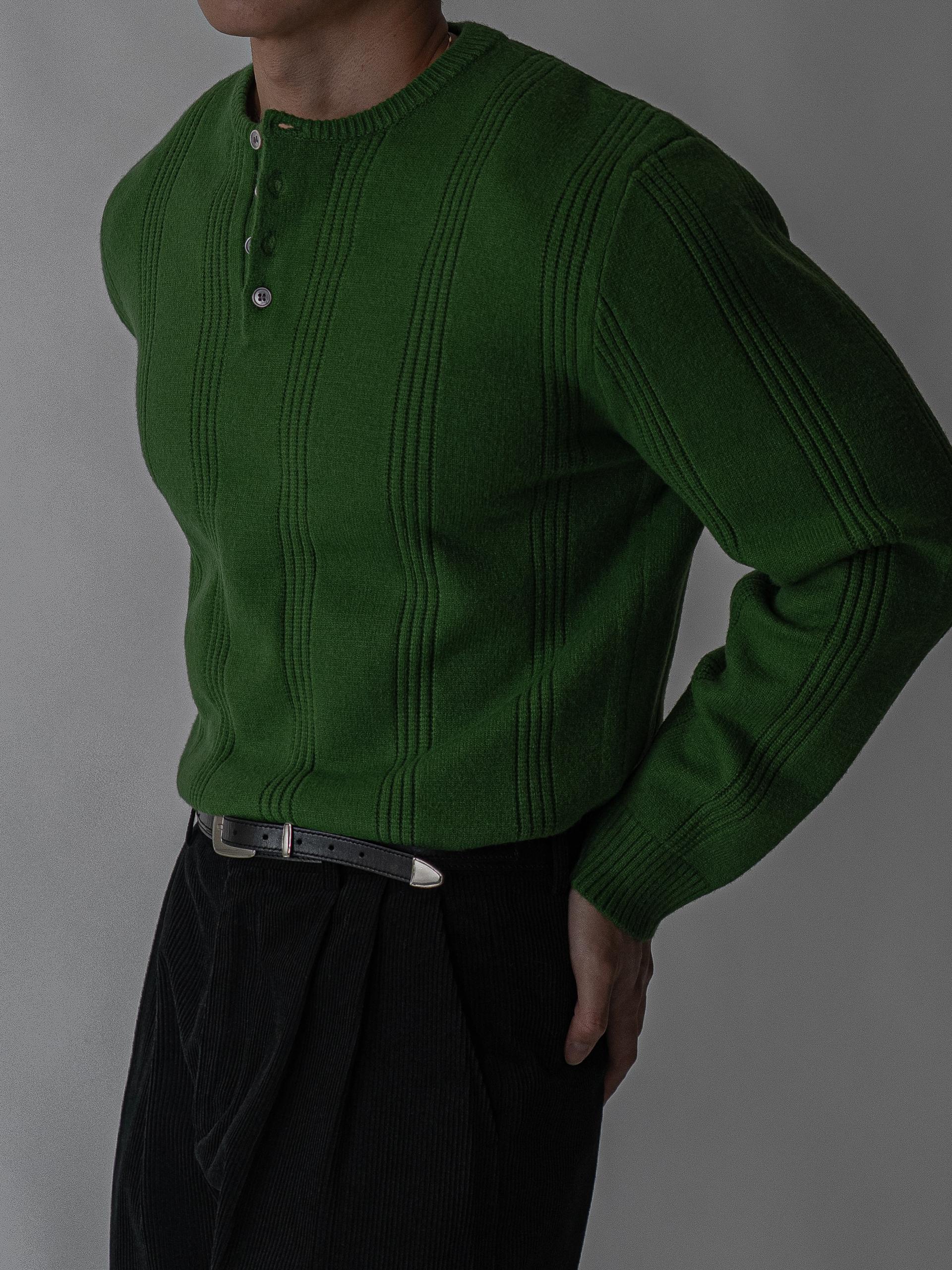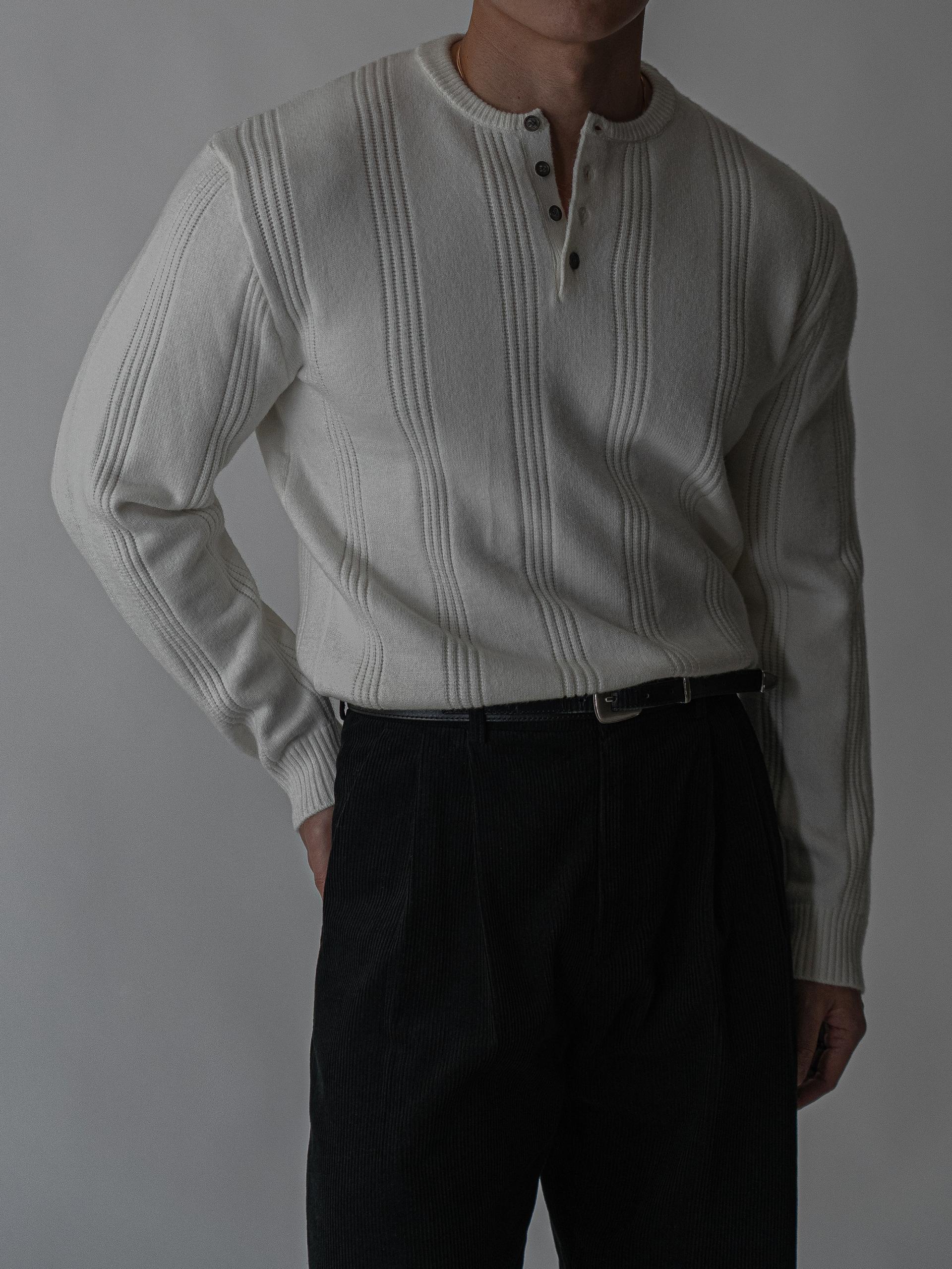 - 헨리넥 포버튼 디테일로 단정하면서도 남성적인 무드를 연출