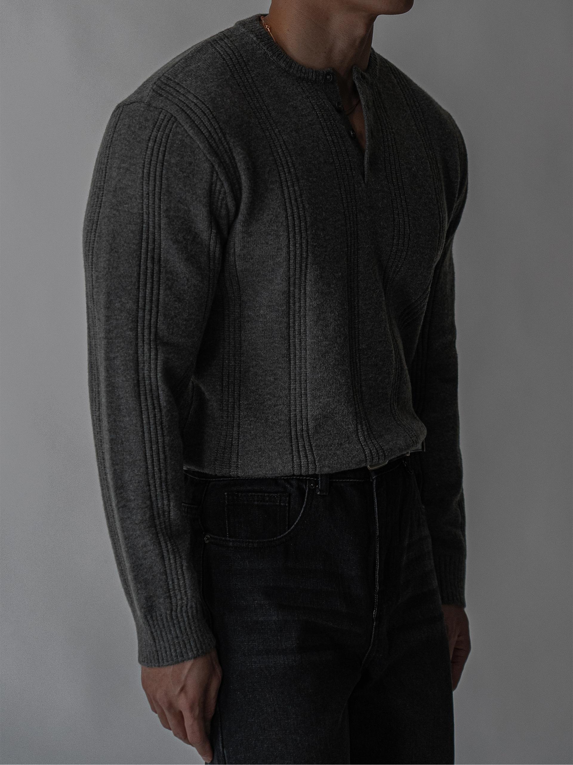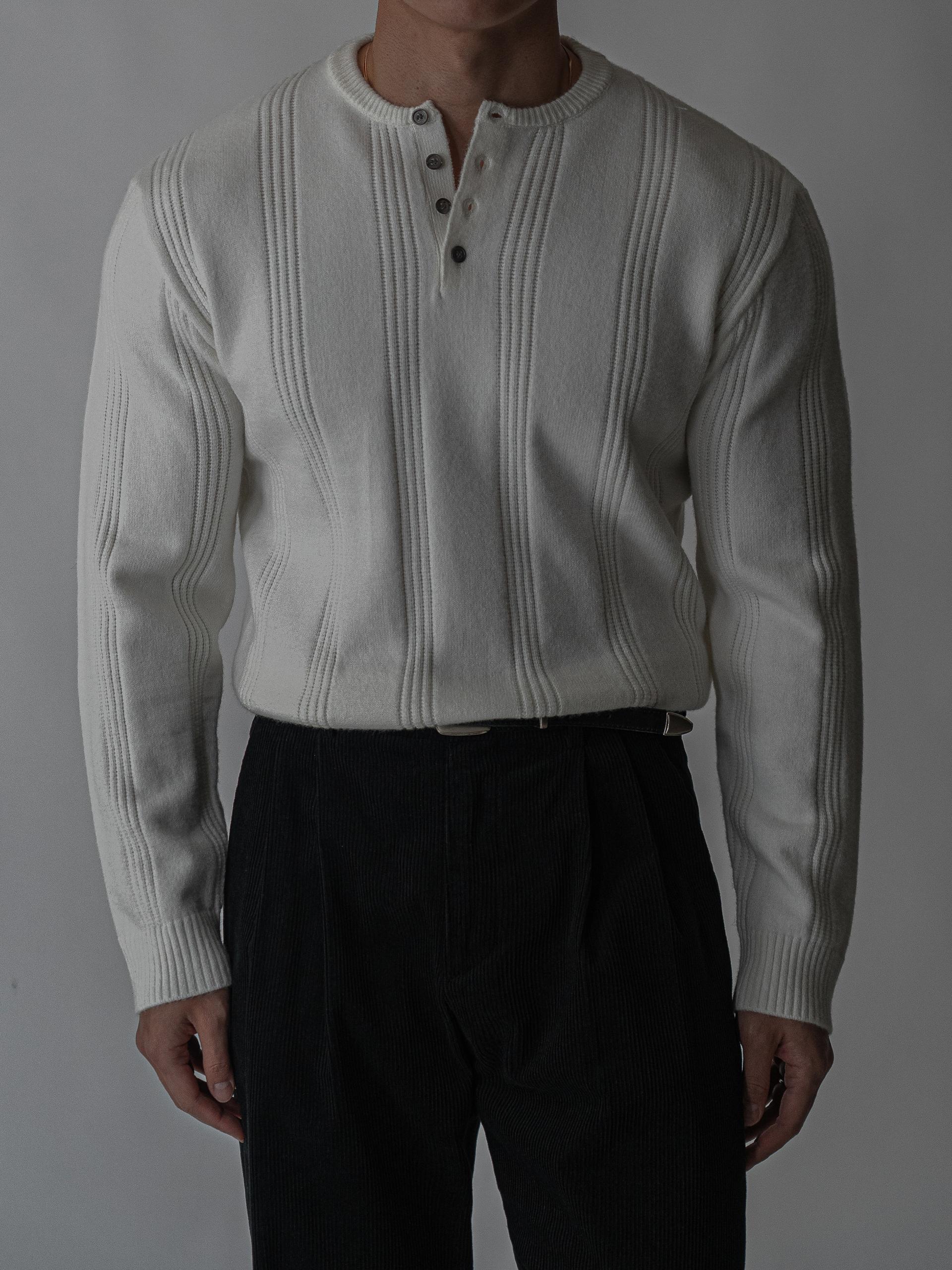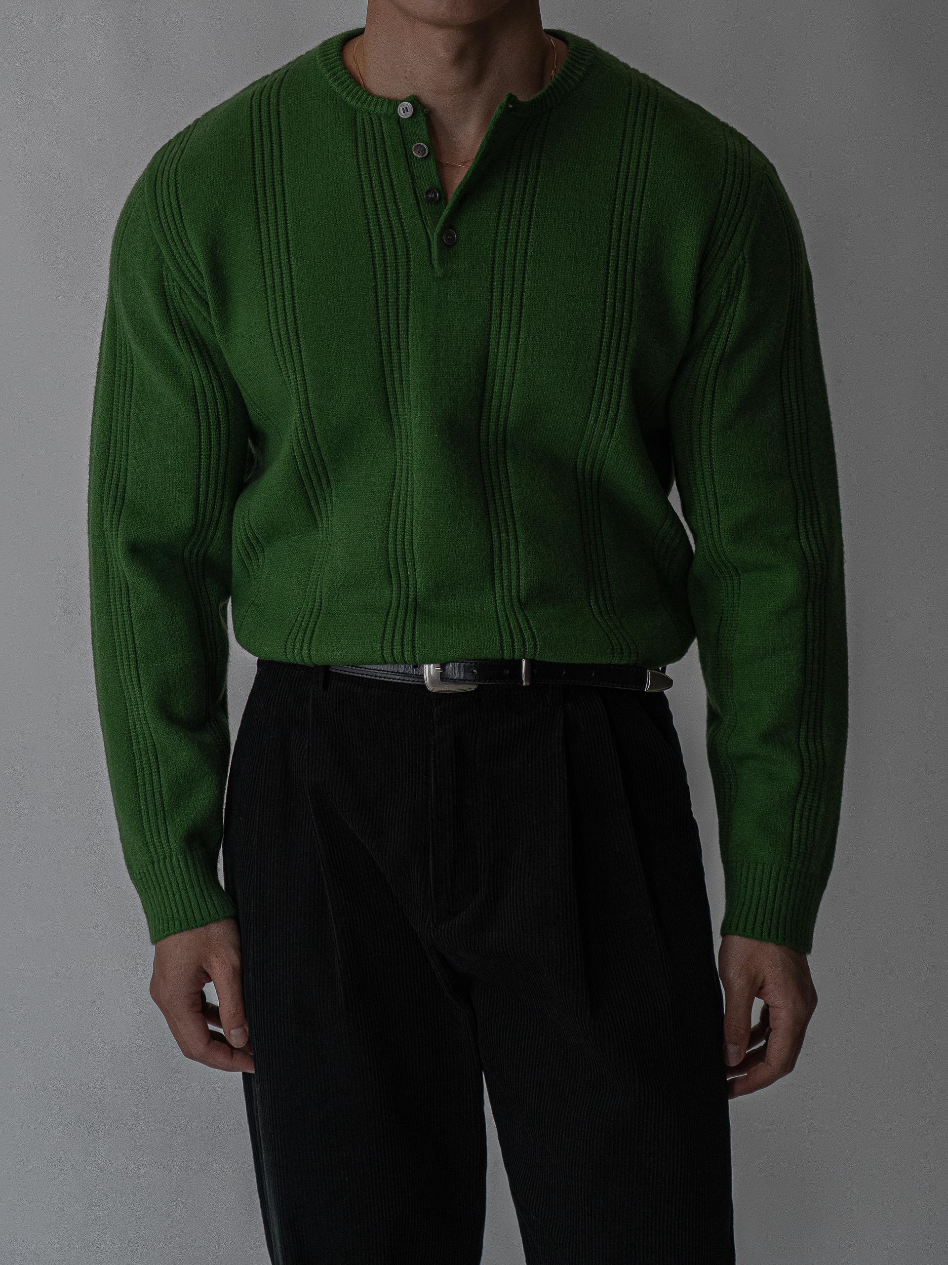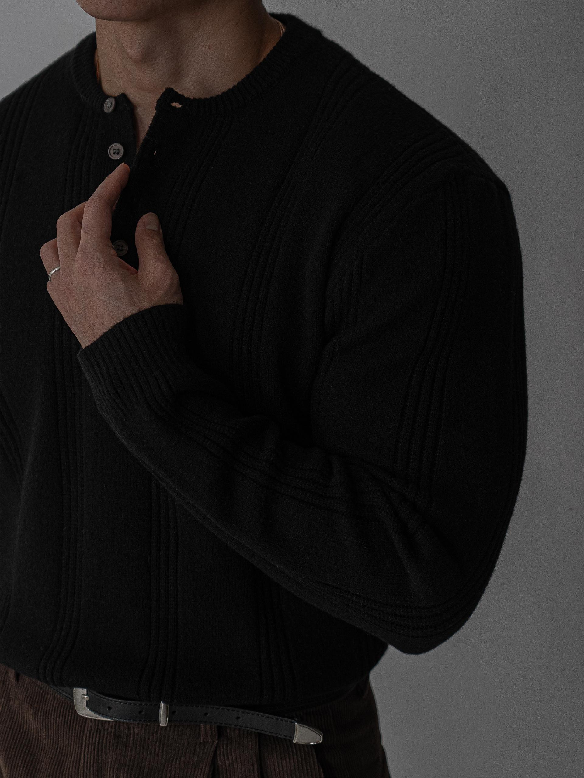 - 헨리넥 포버튼 디테일로 단정하면서도 남성적인 무드를 연출