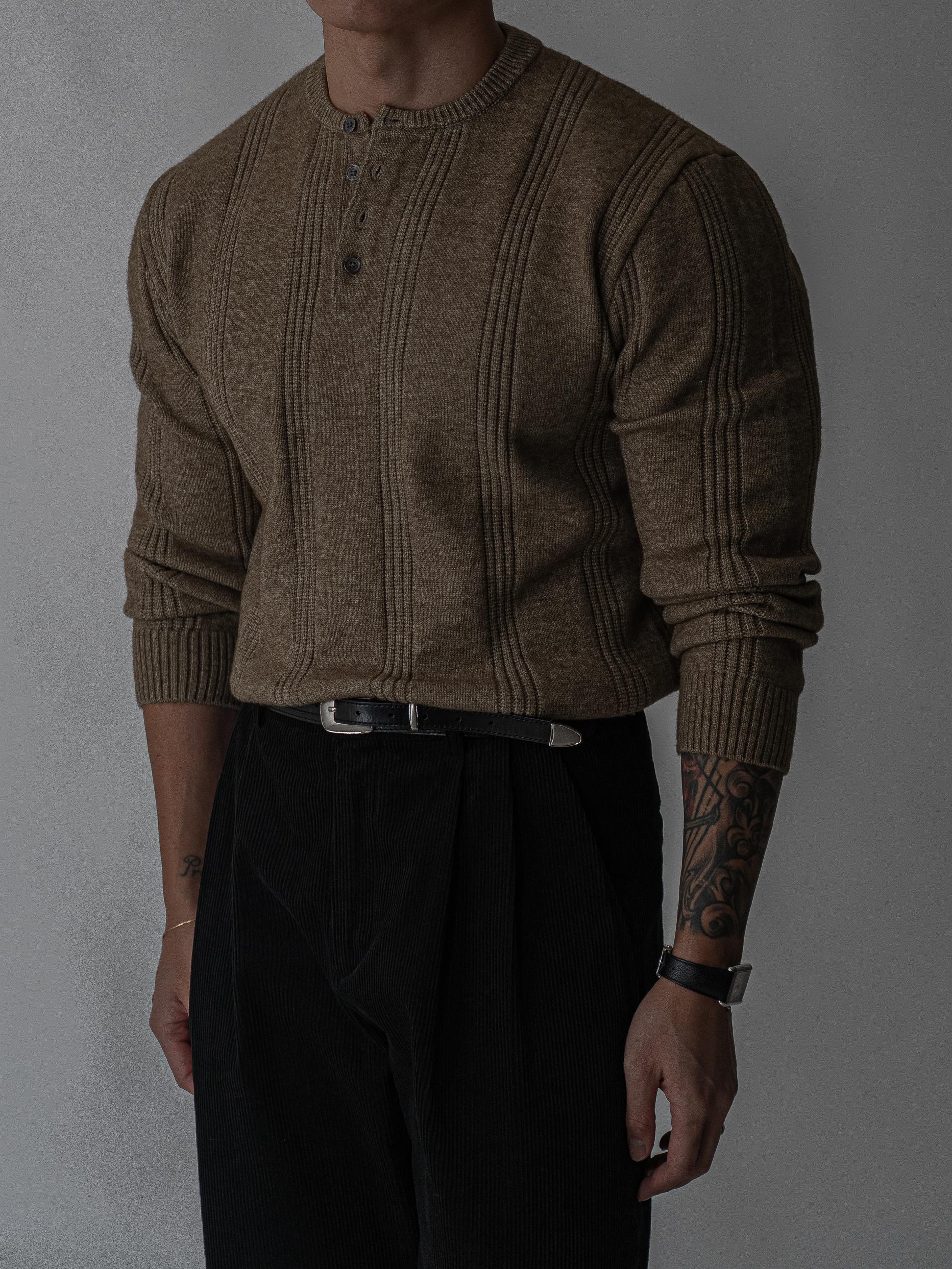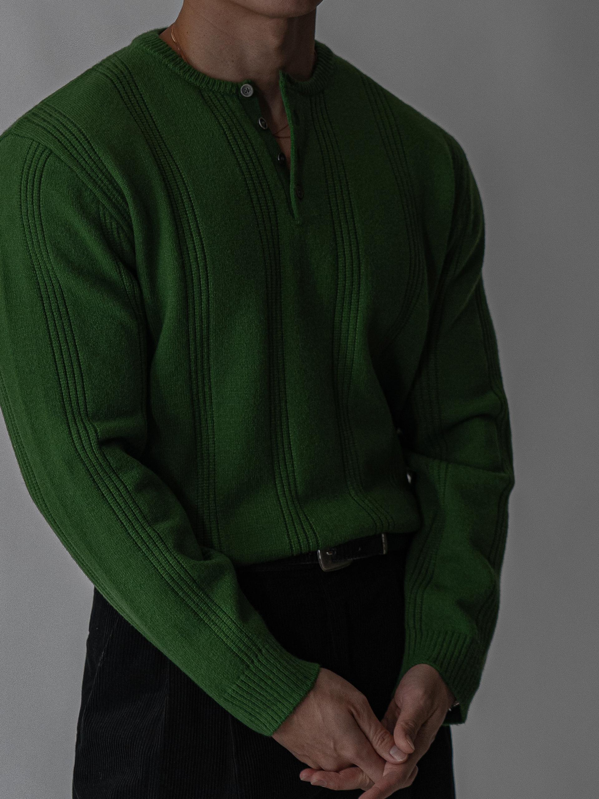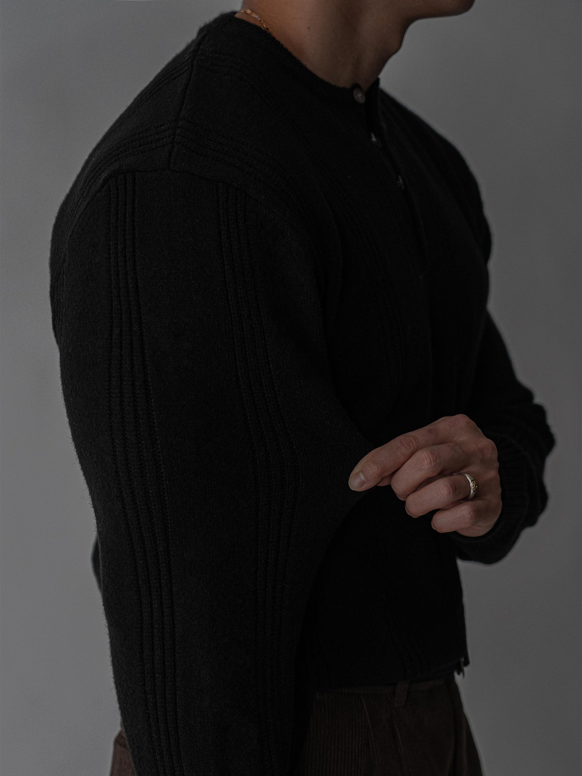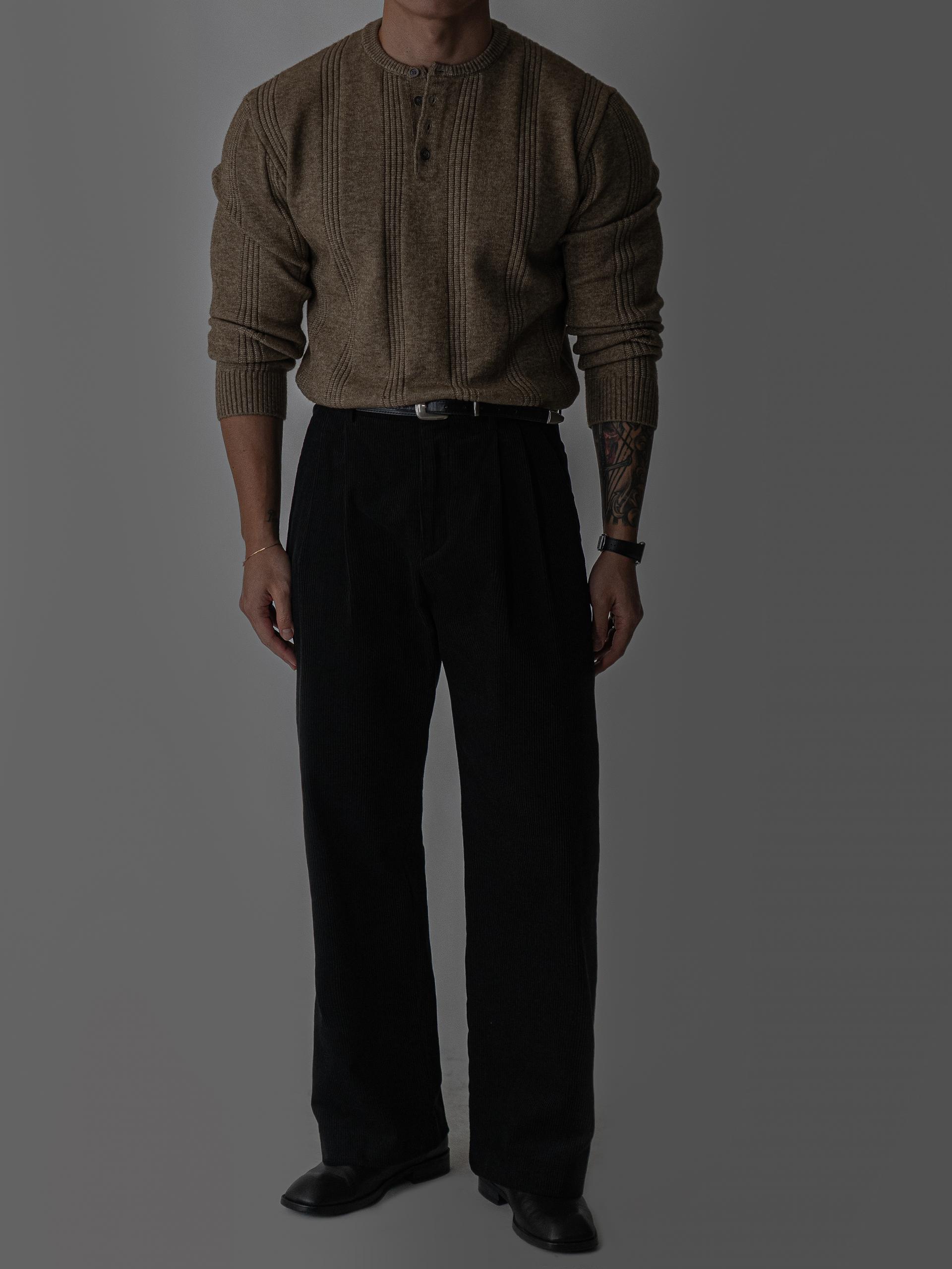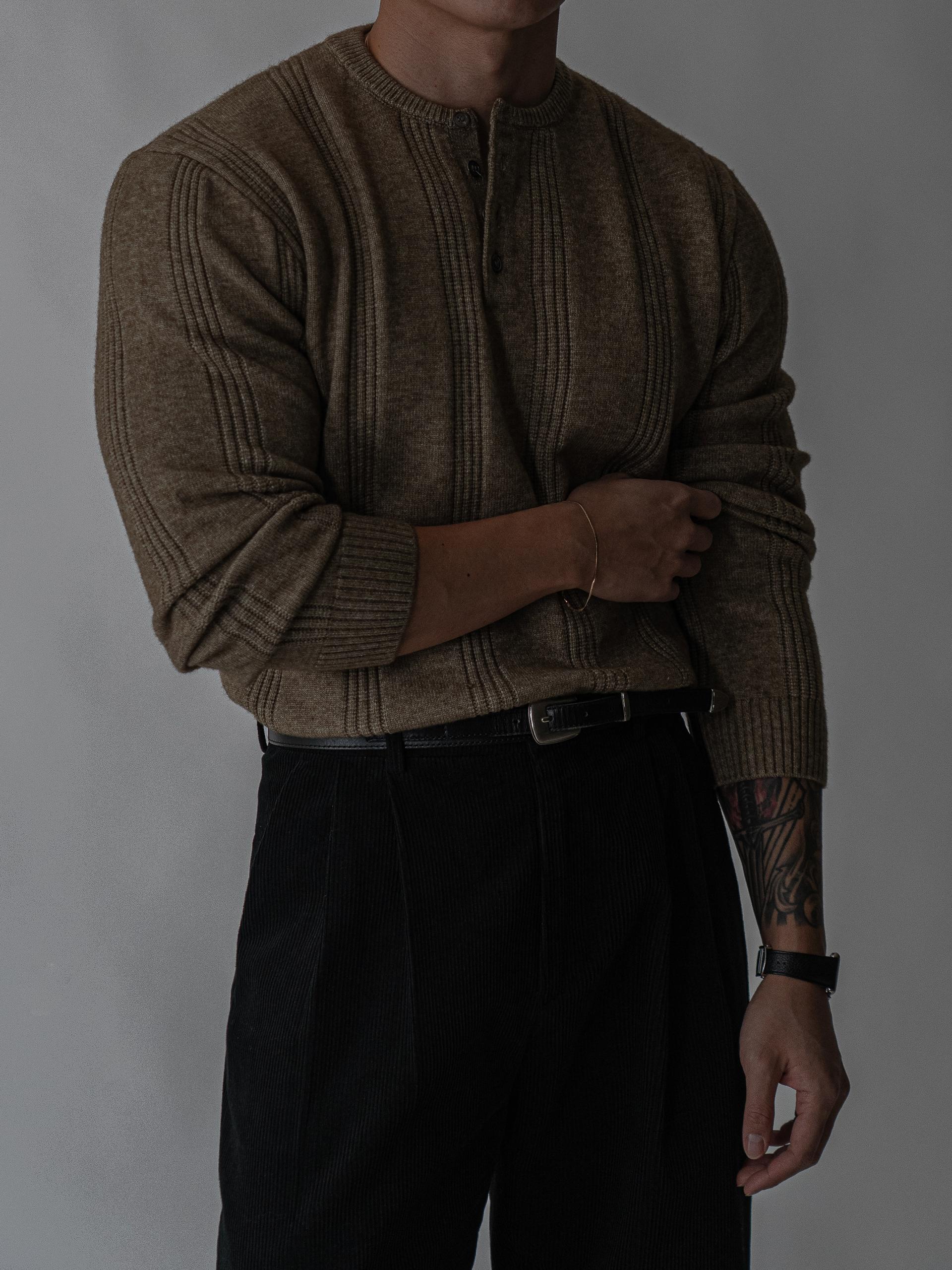 - 헨리넥 포버튼 디테일로 단정하면서도 남성적인 무드를 연출