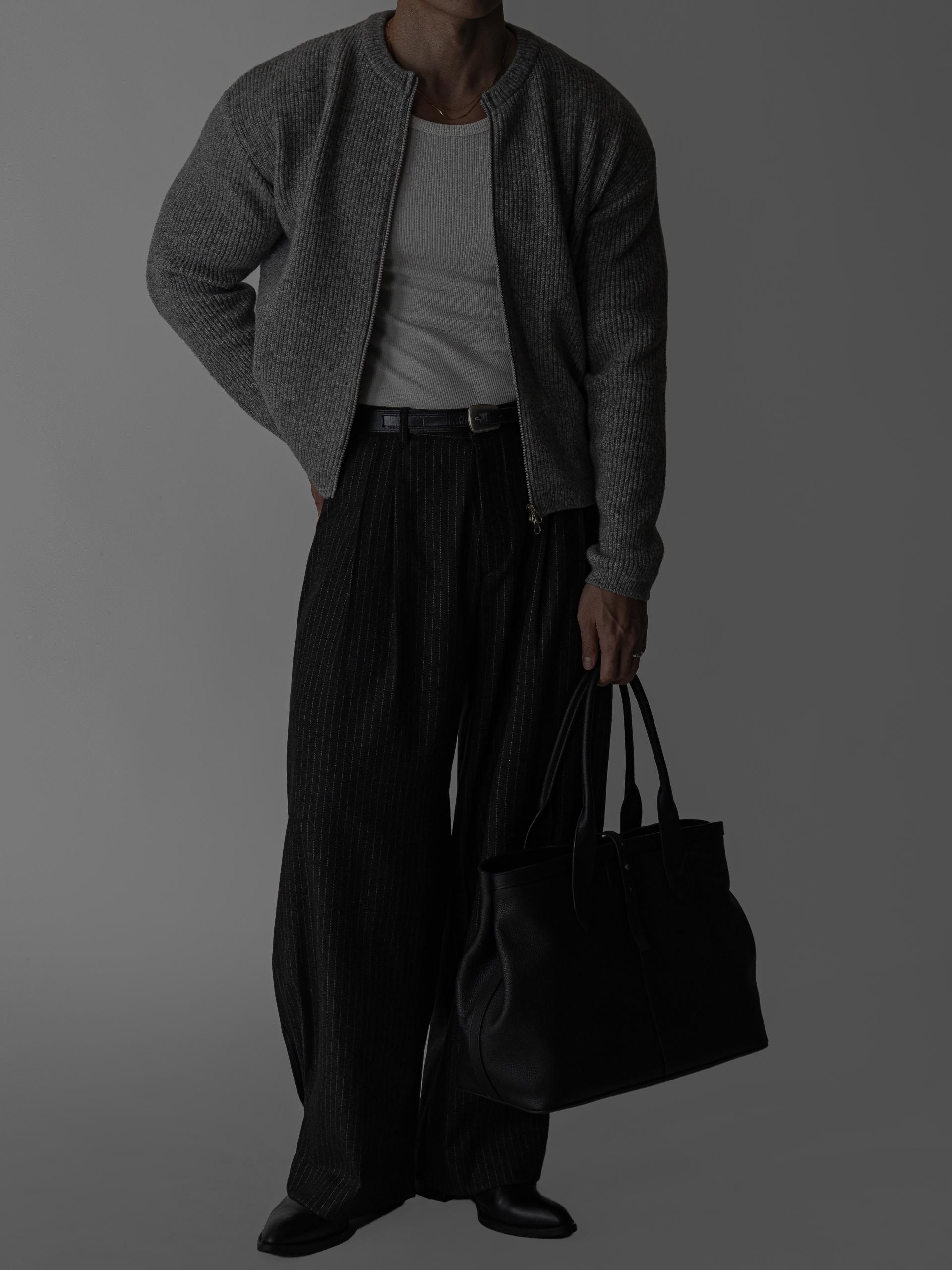 - 세로 골지 조직으로 바디 라인이 정돈되어 슬림하고 입체적인 인상