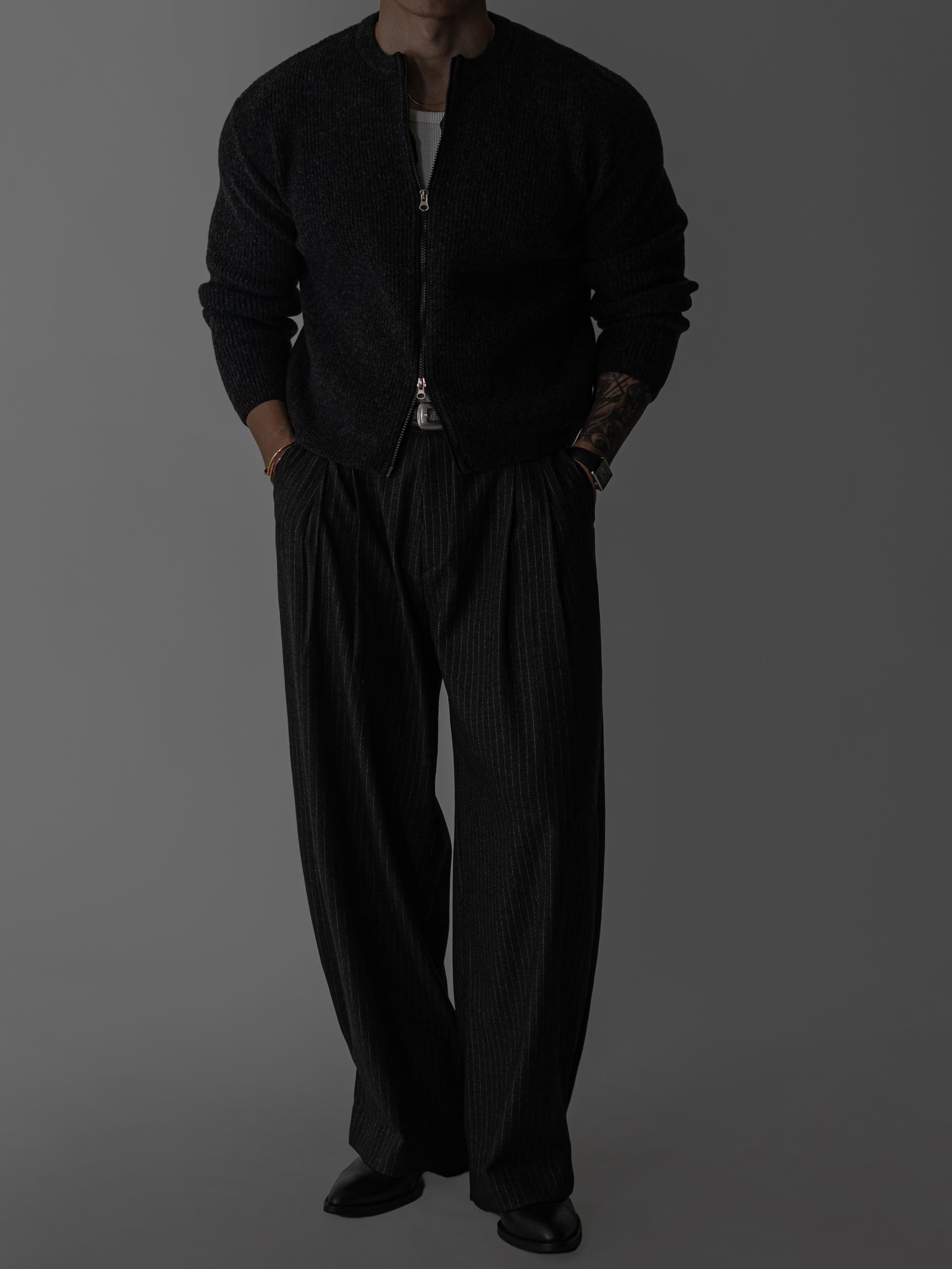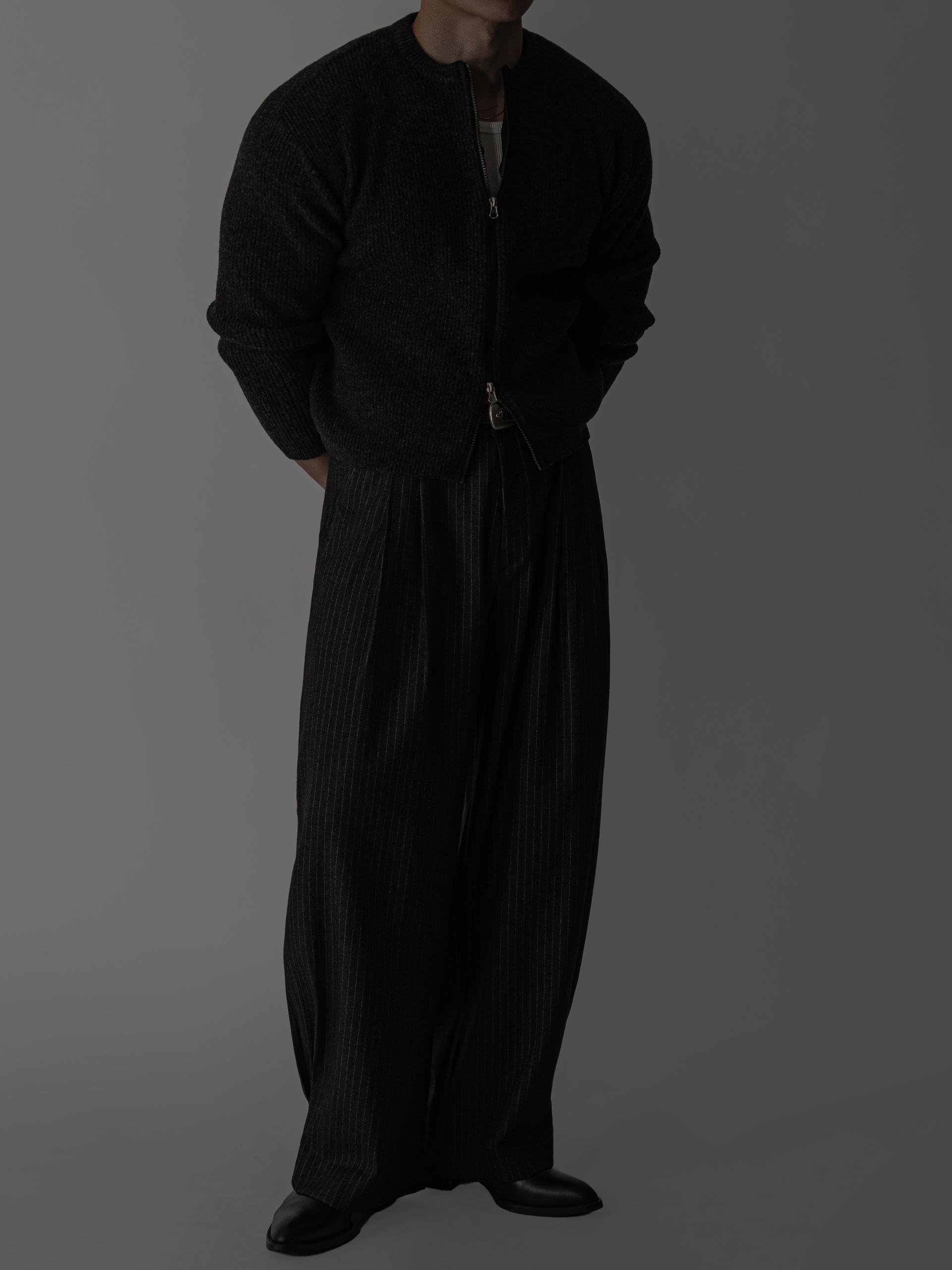 하의 - 로우 턱 울 스트라이프 팬츠