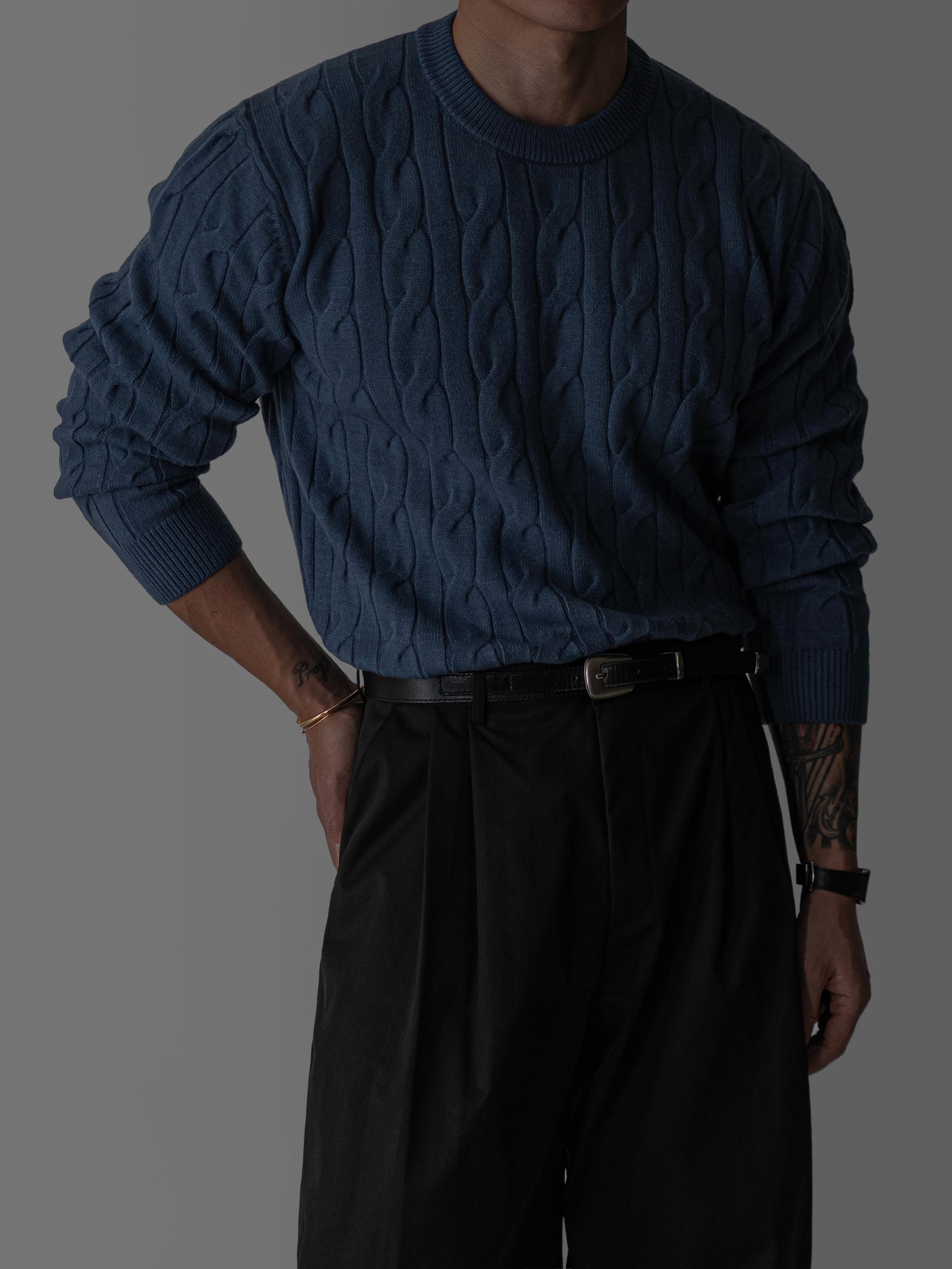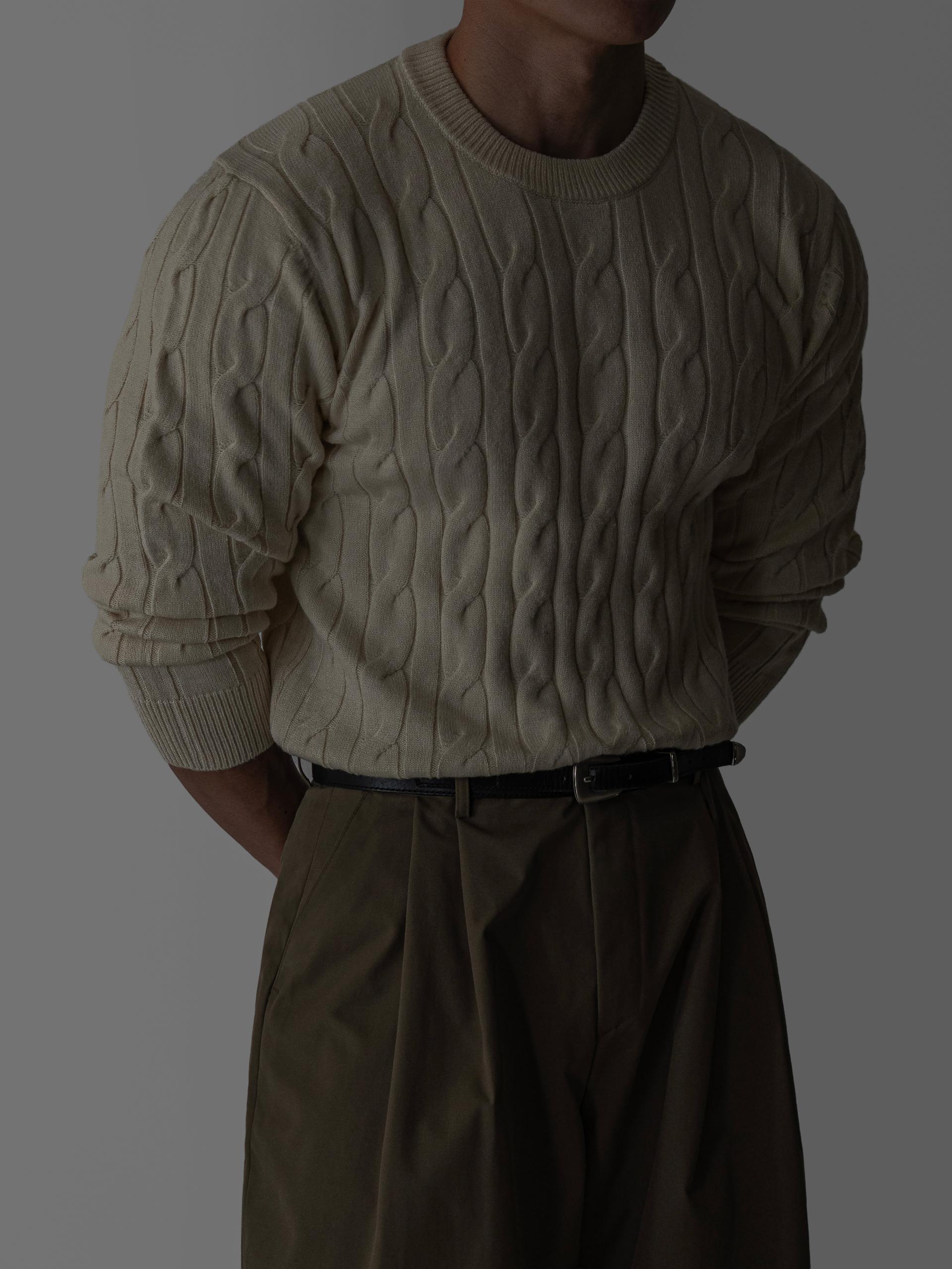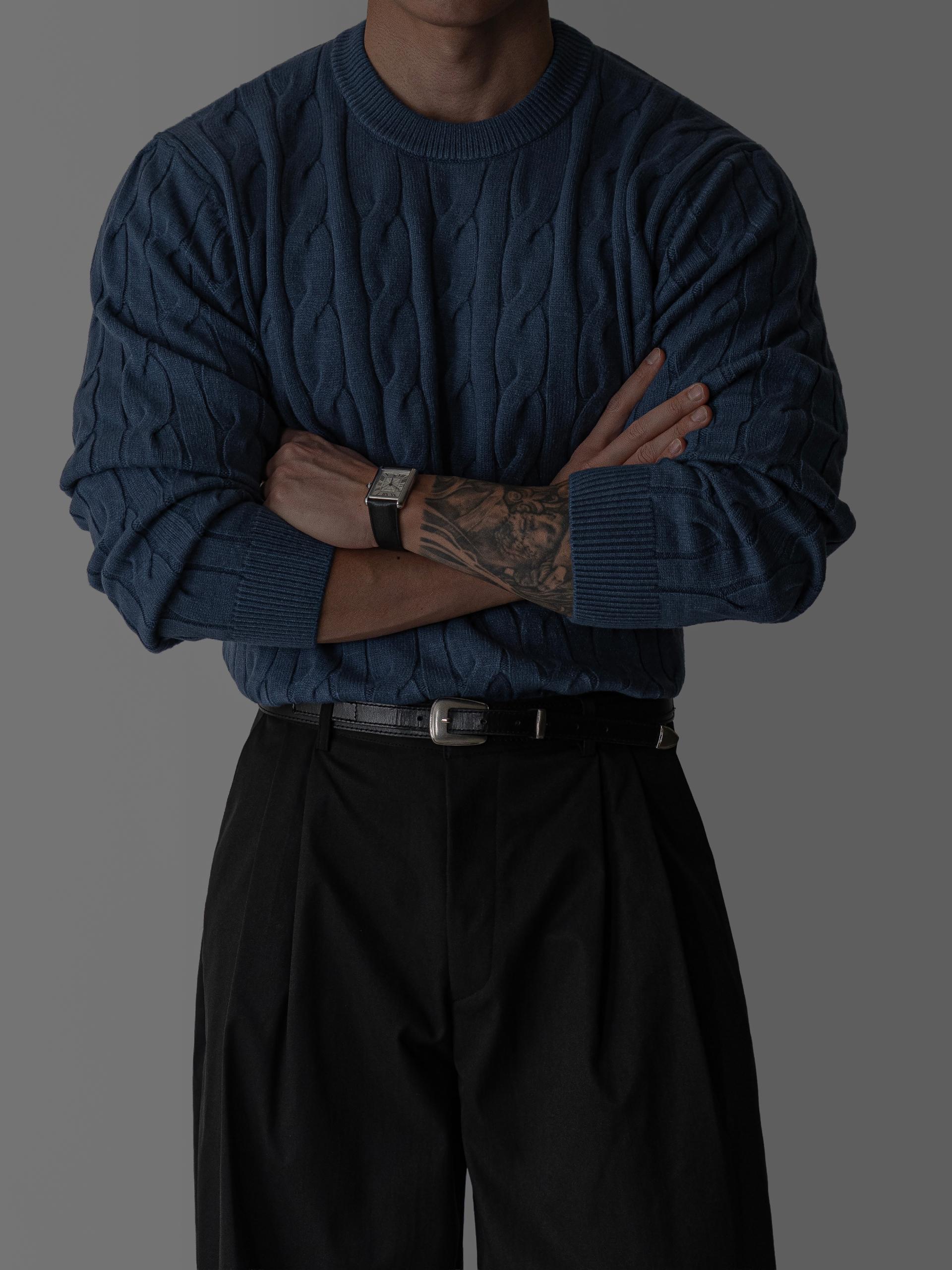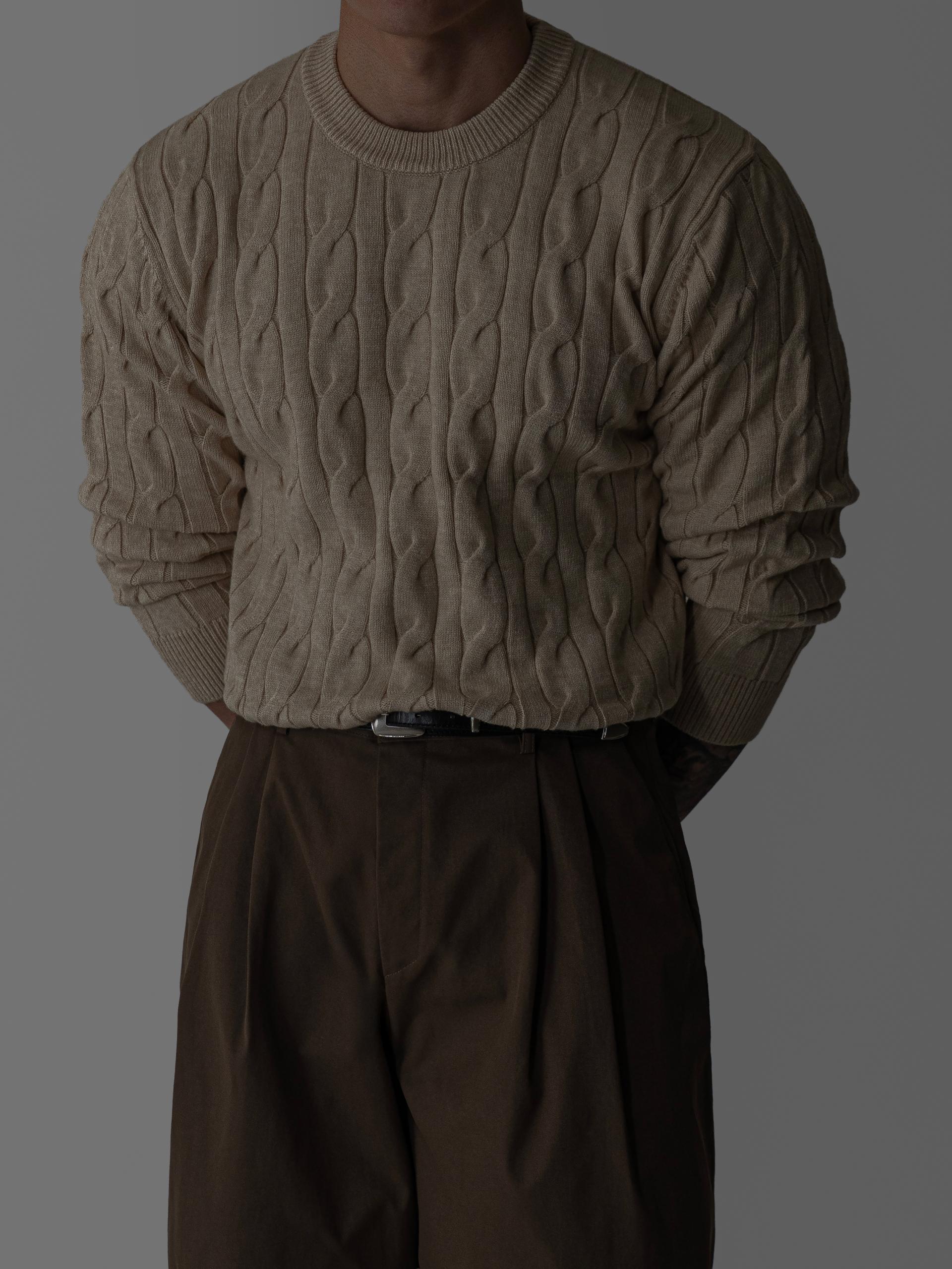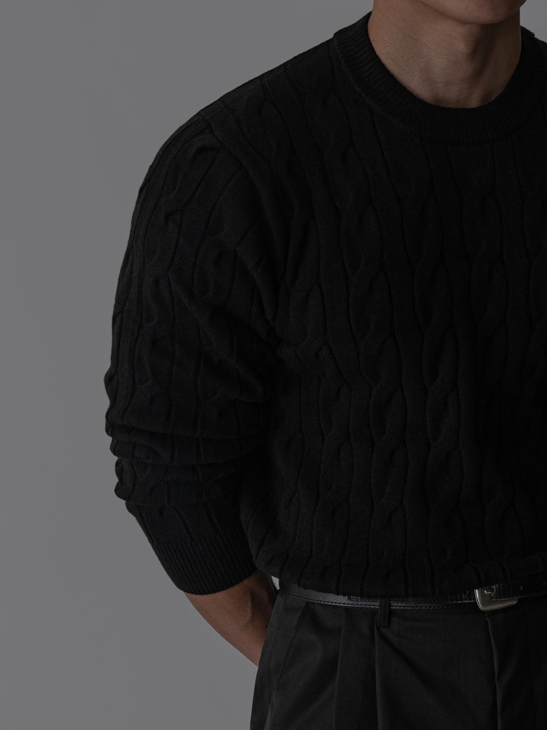 - 이중 골지 조직으로 짜여져 일반 케이블 니트보다 더 탄탄하고 고급스러운 텍스처