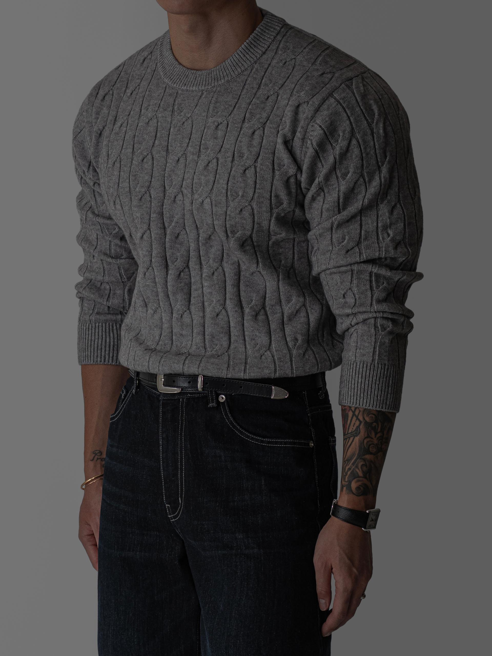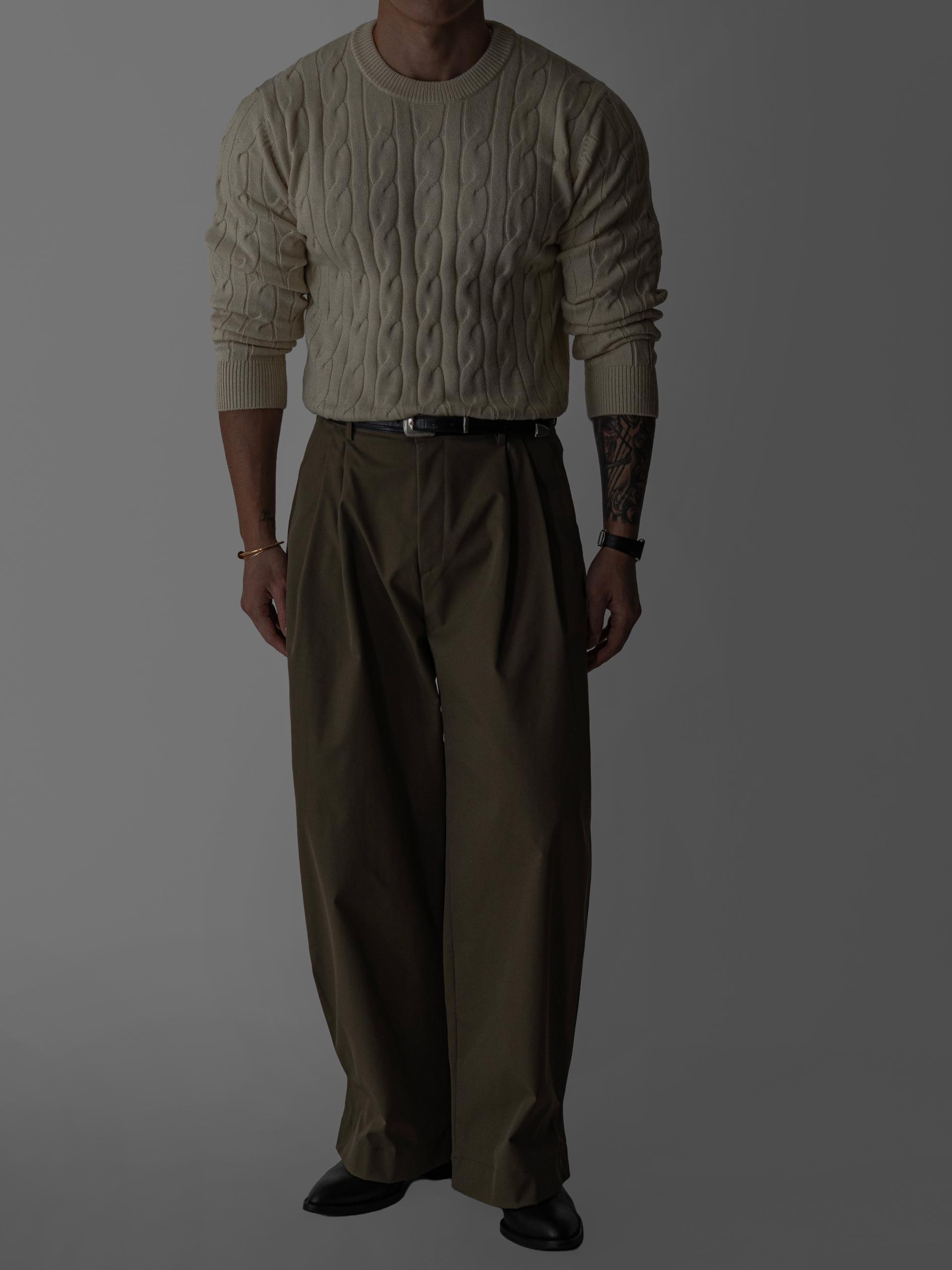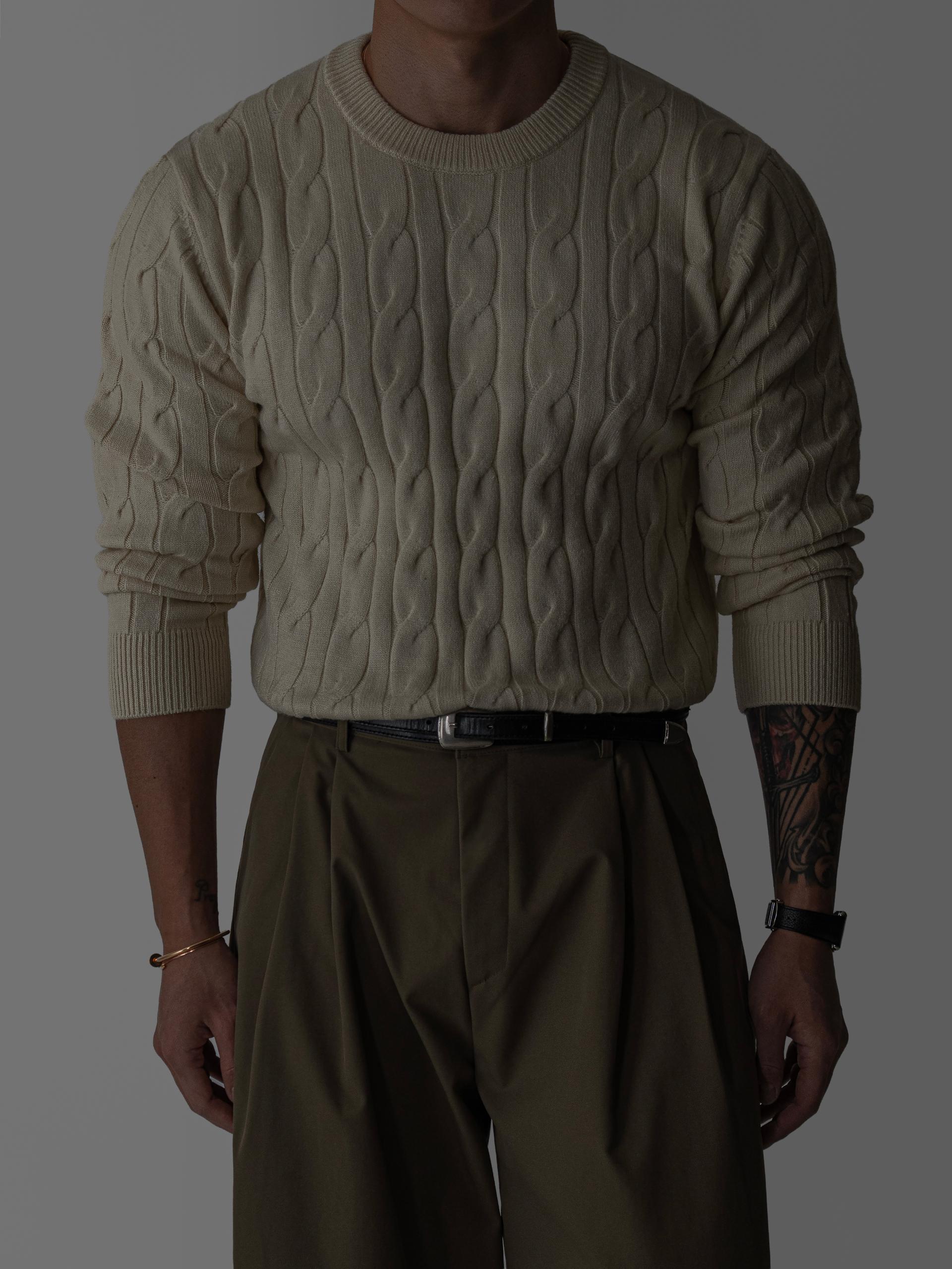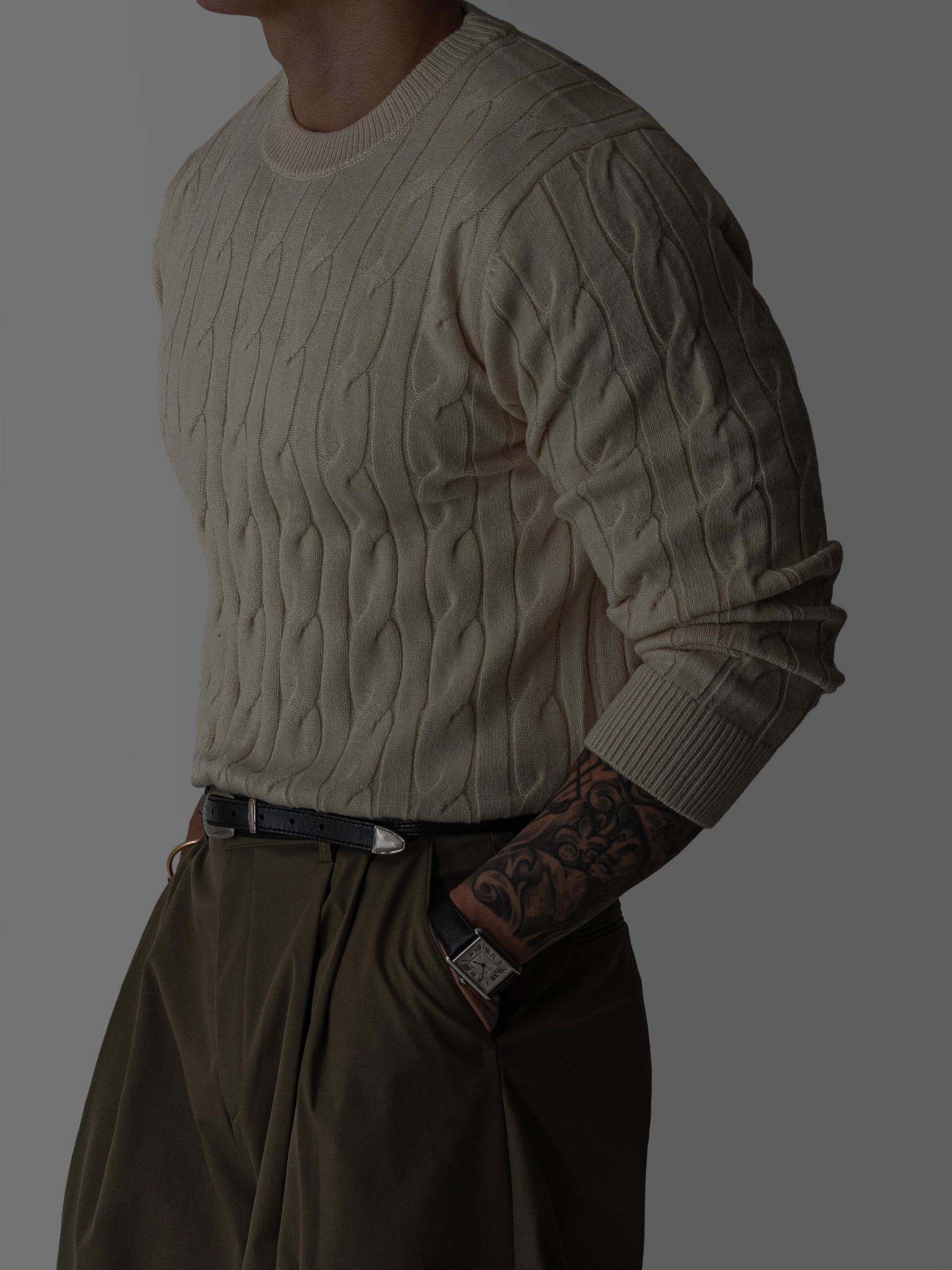 - 이중 골지 조직으로 짜여져 일반 케이블 니트보다 더 탄탄하고 고급스러운 텍스처