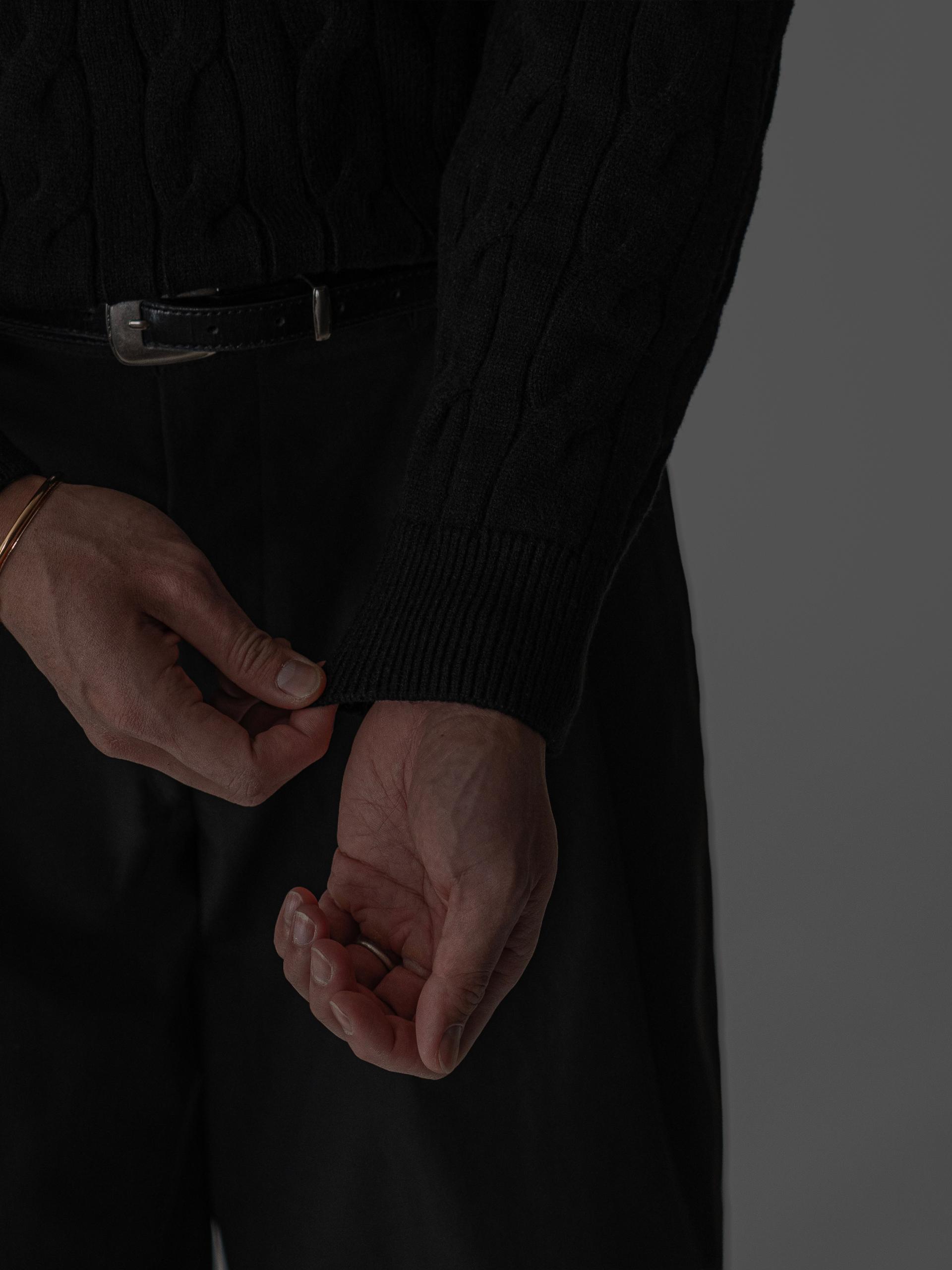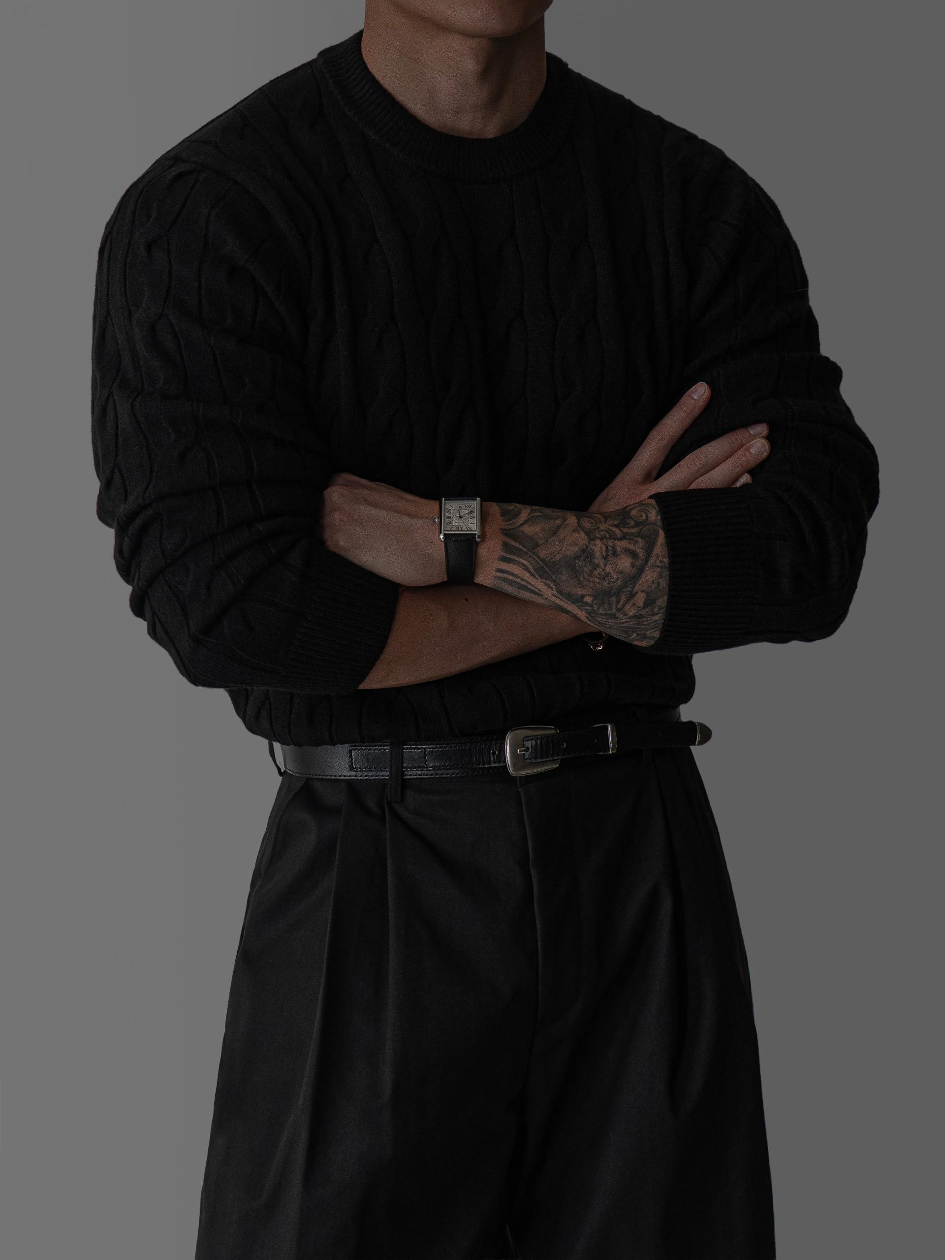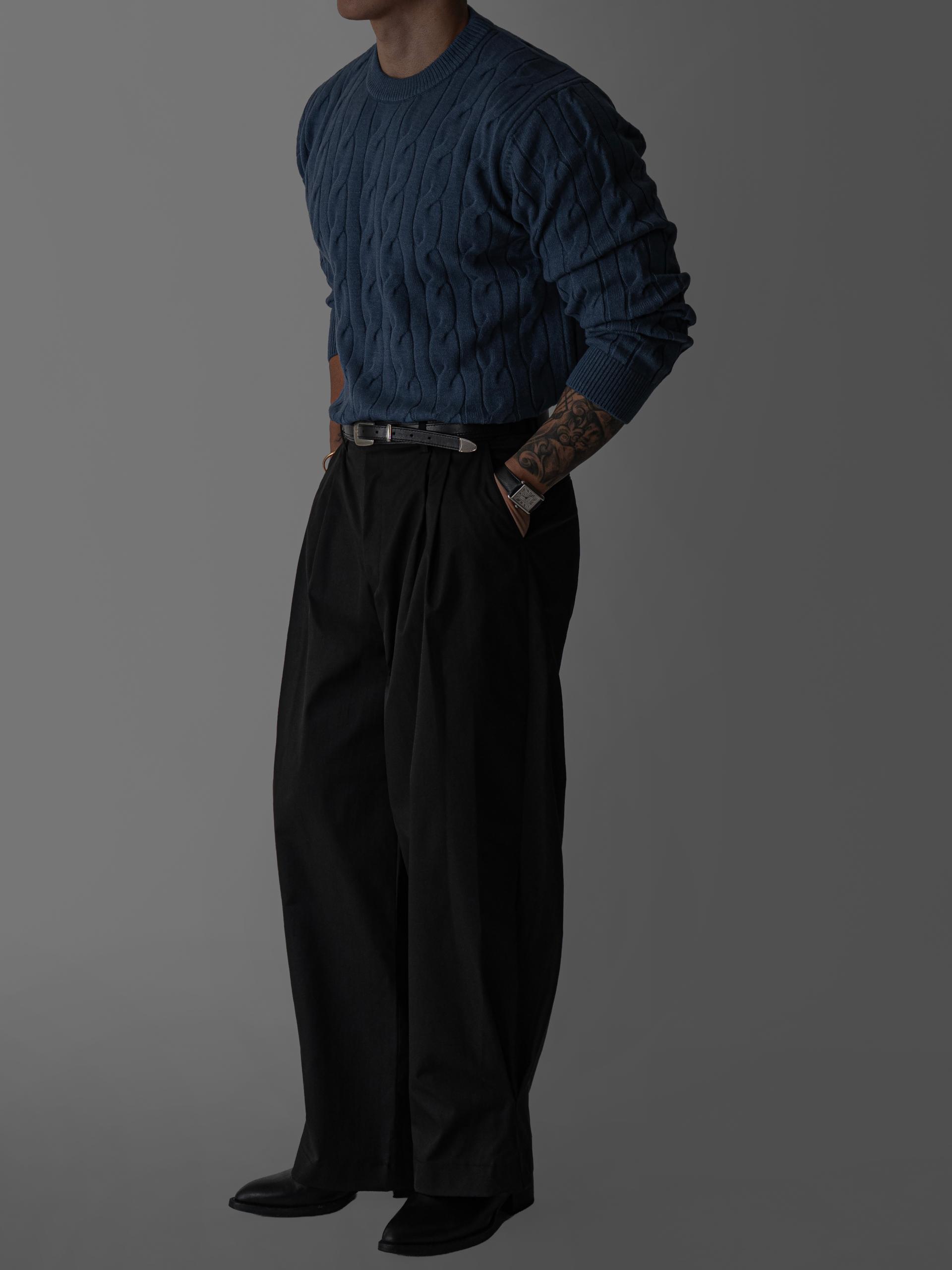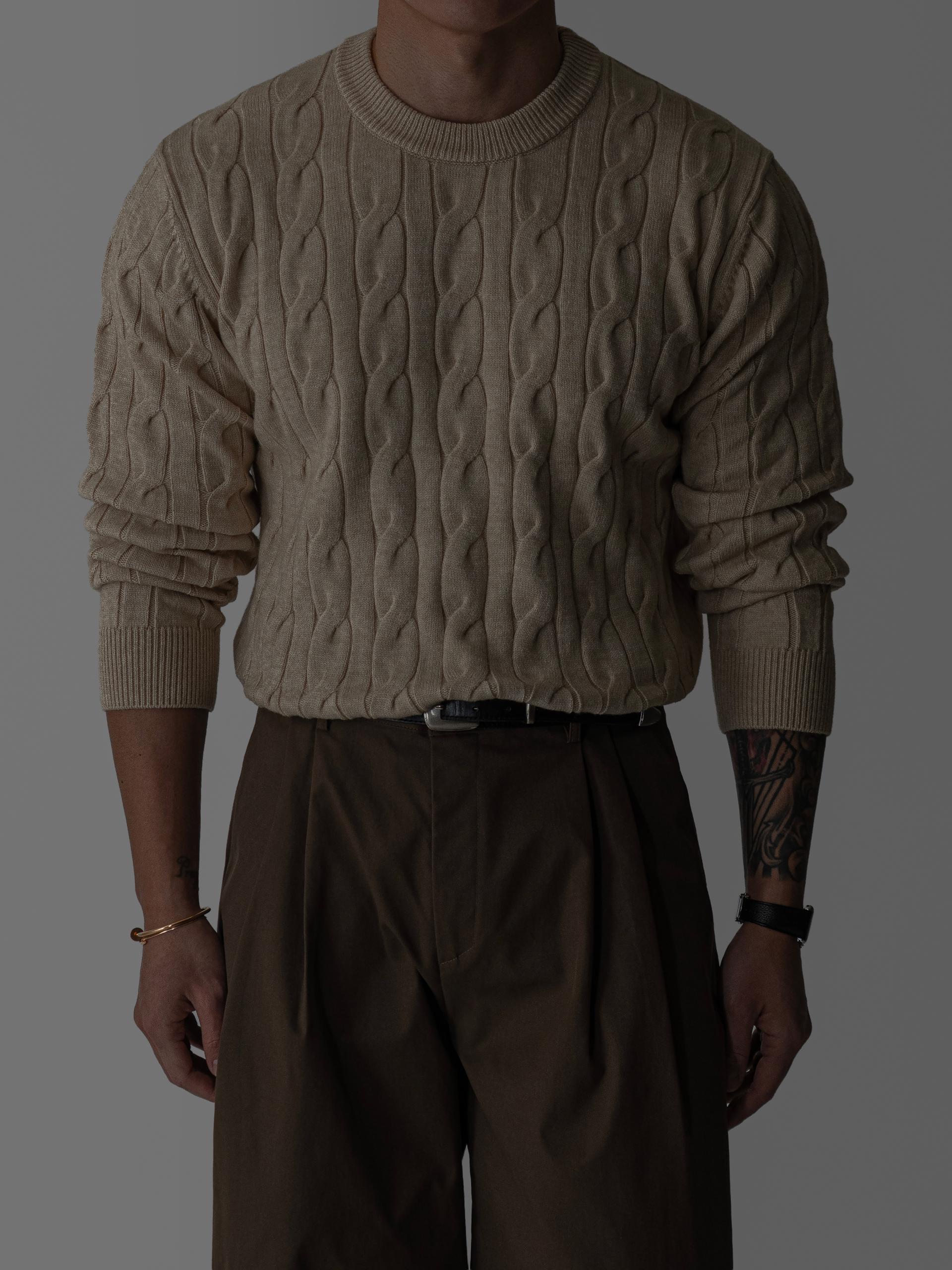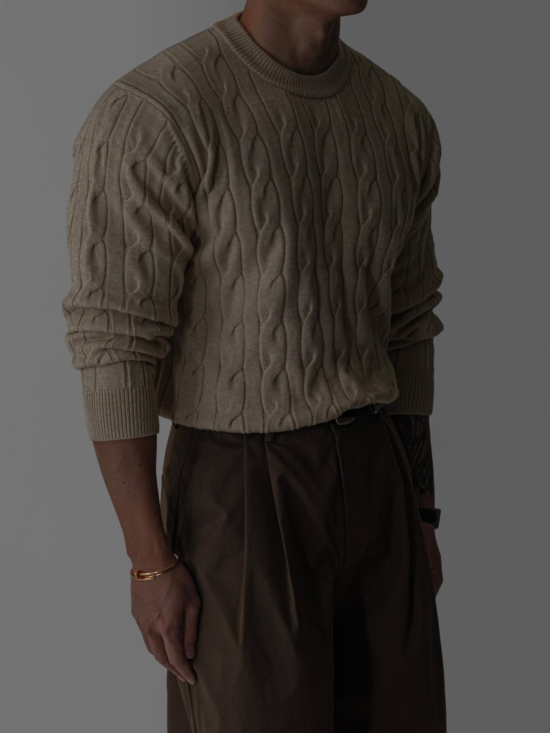 - 이중 골지 조직으로 짜여져 일반 케이블 니트보다 더 탄탄하고 고급스러운 텍스처
