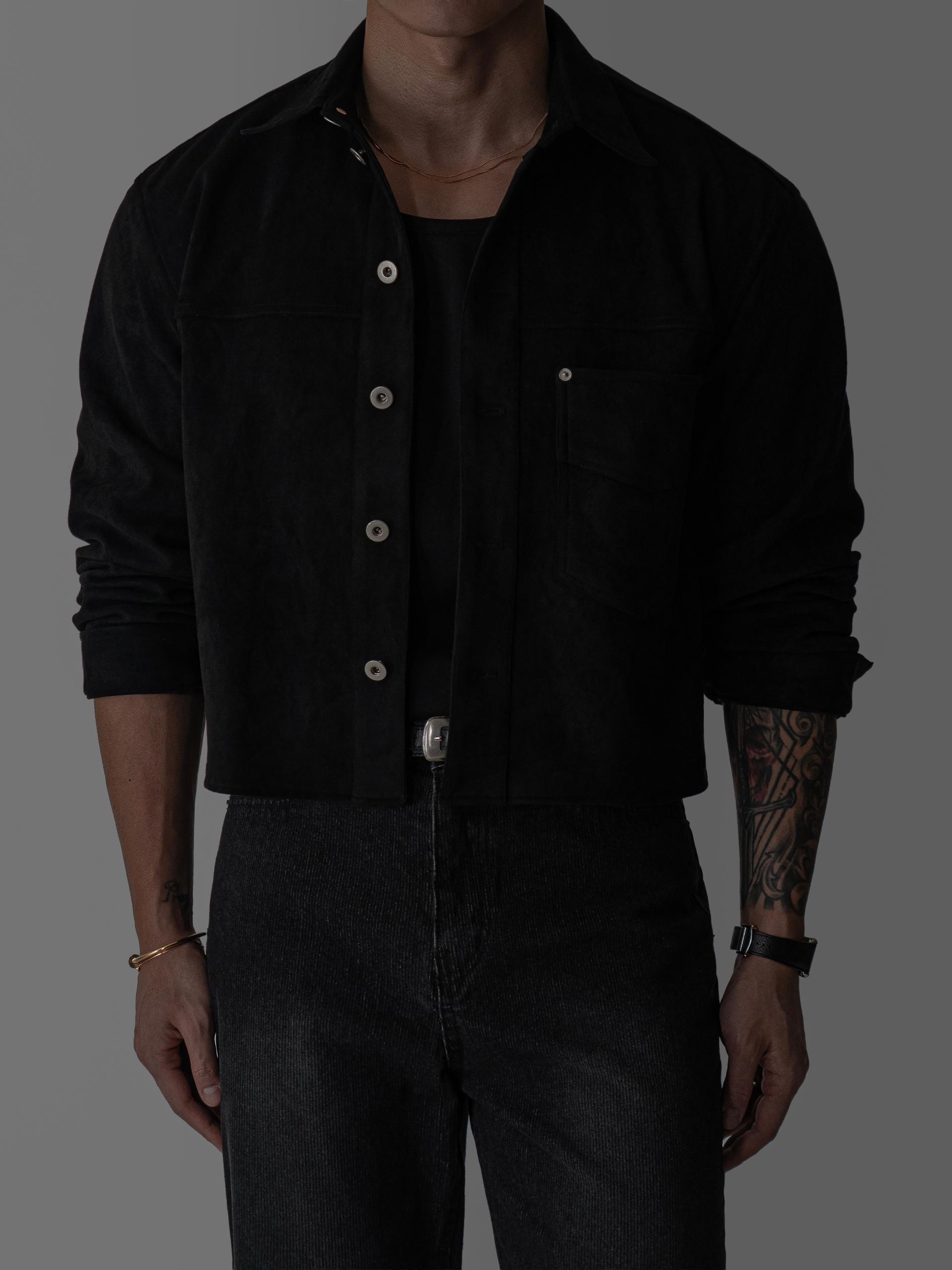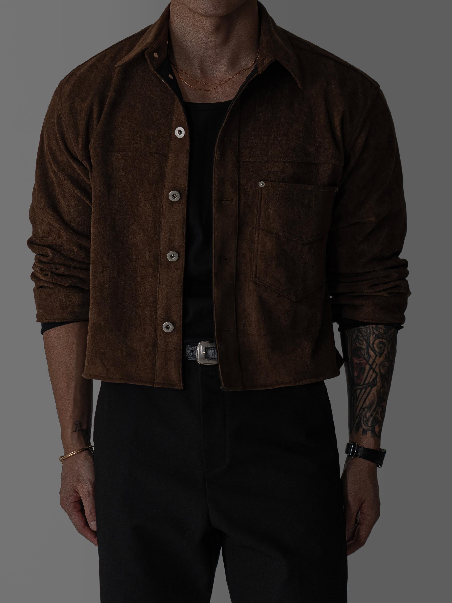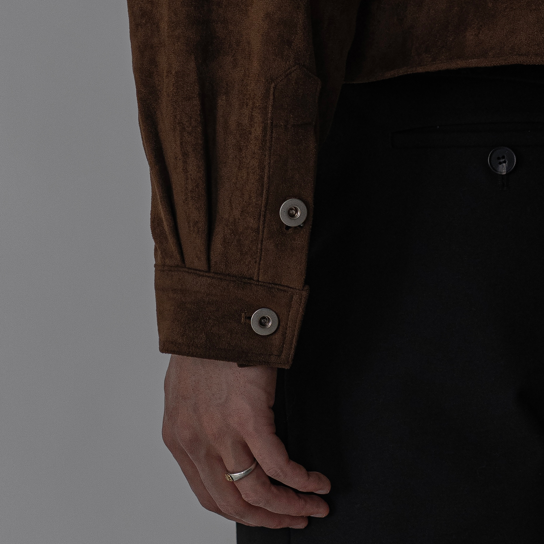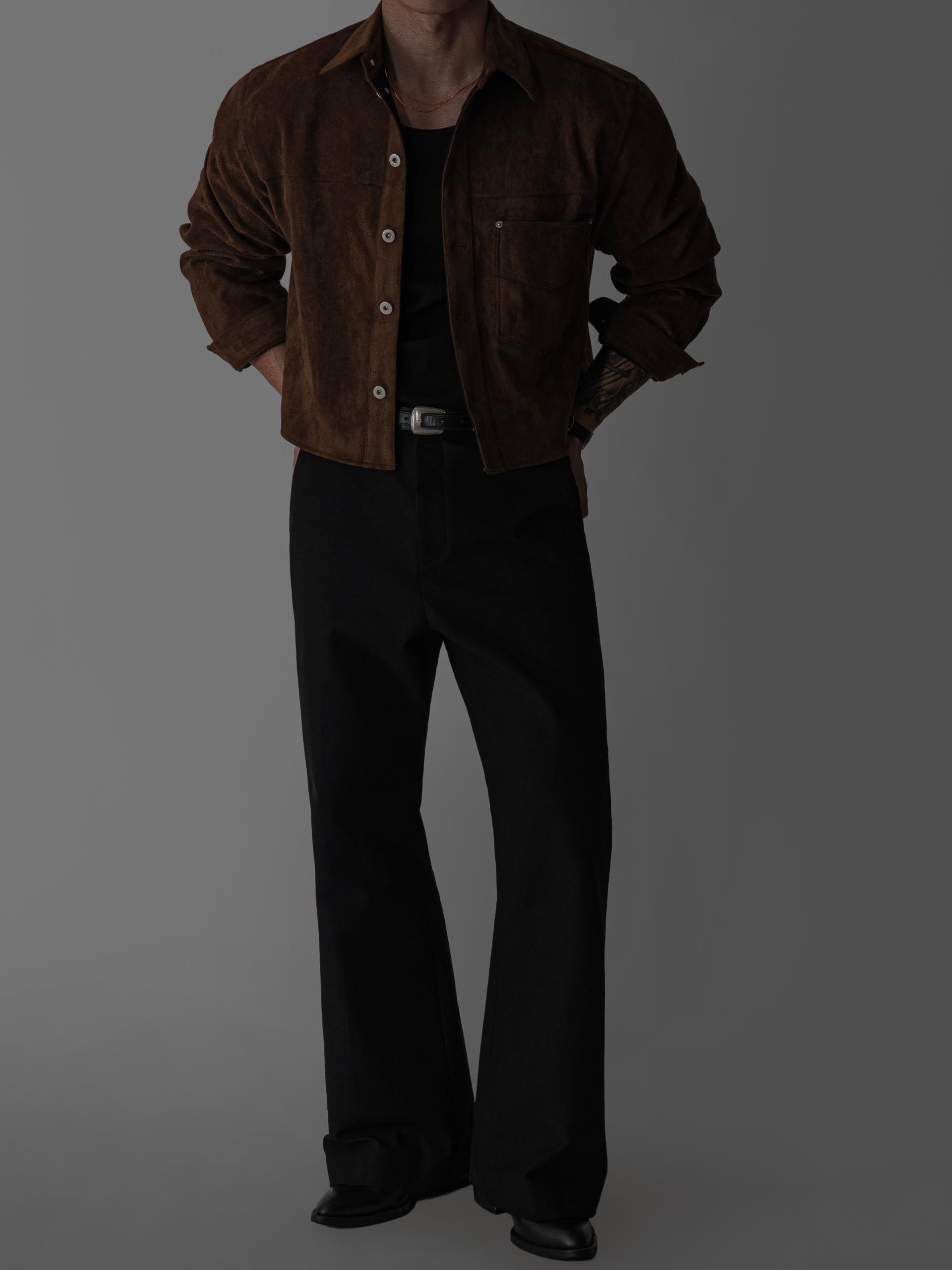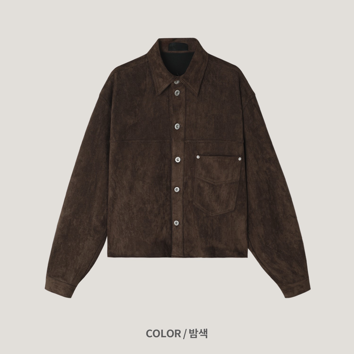 - 셔츠 디자인에 크롭 기장을 적용해 자켓처럼 안정적인 실루엣 연출