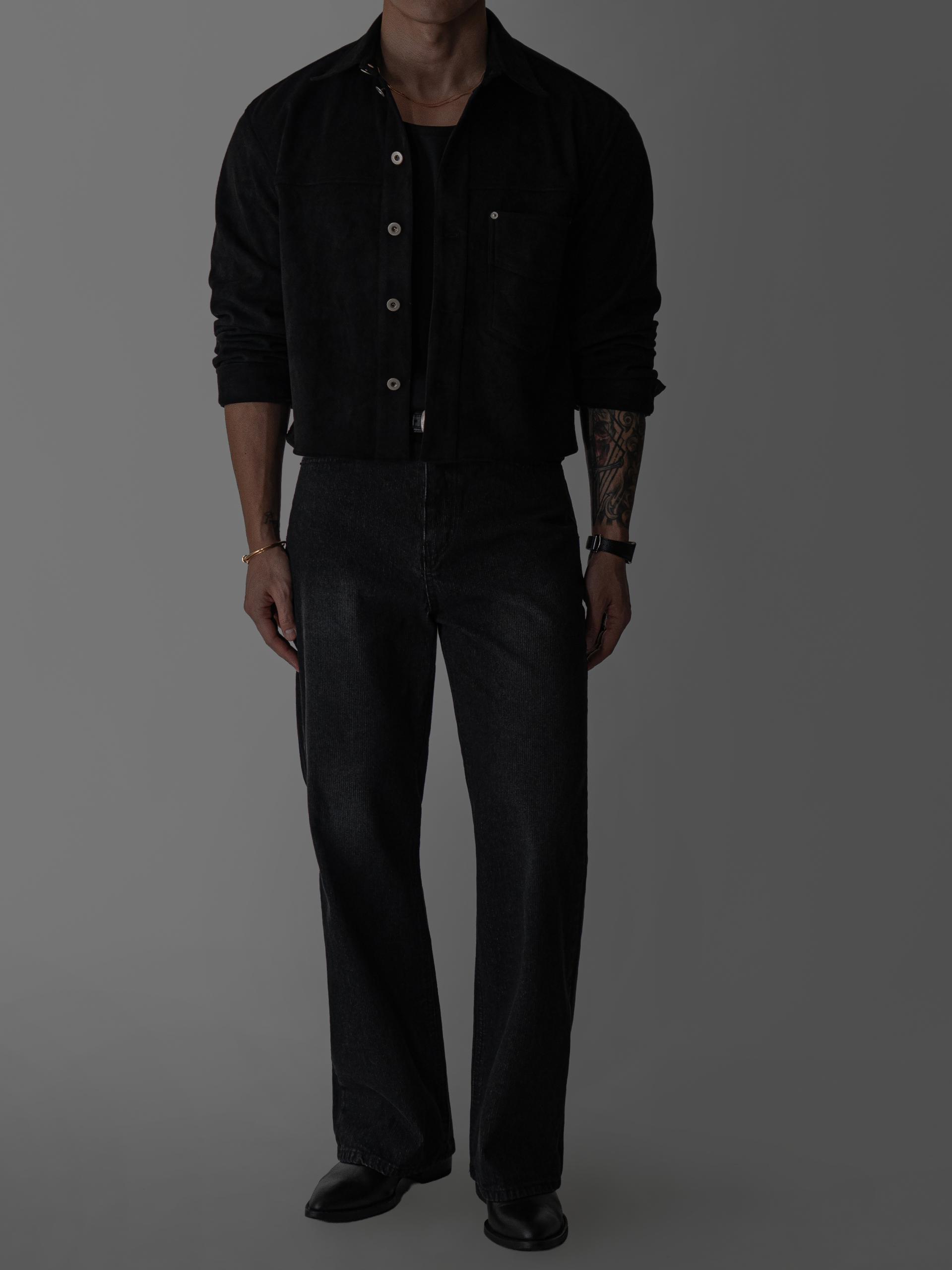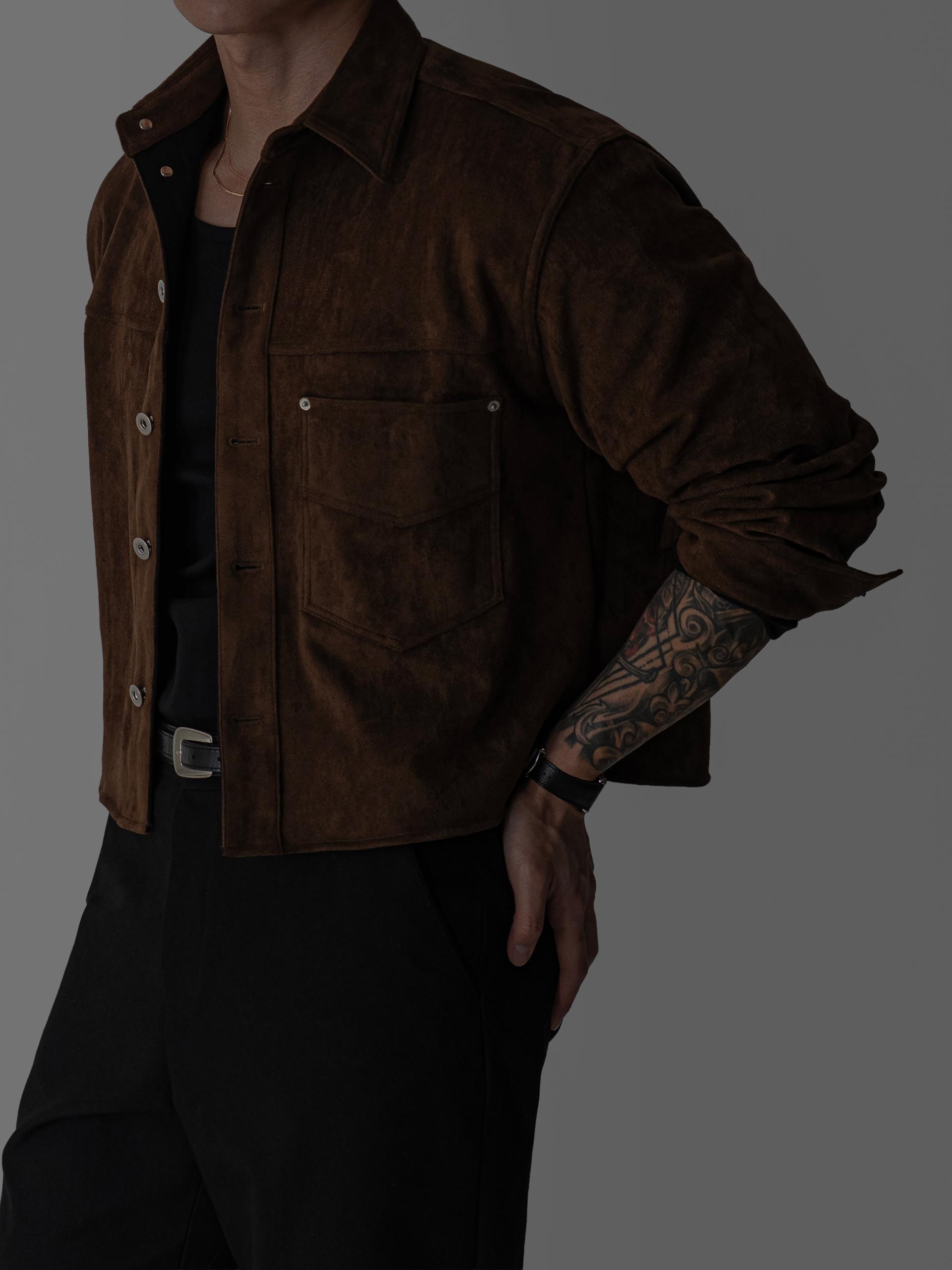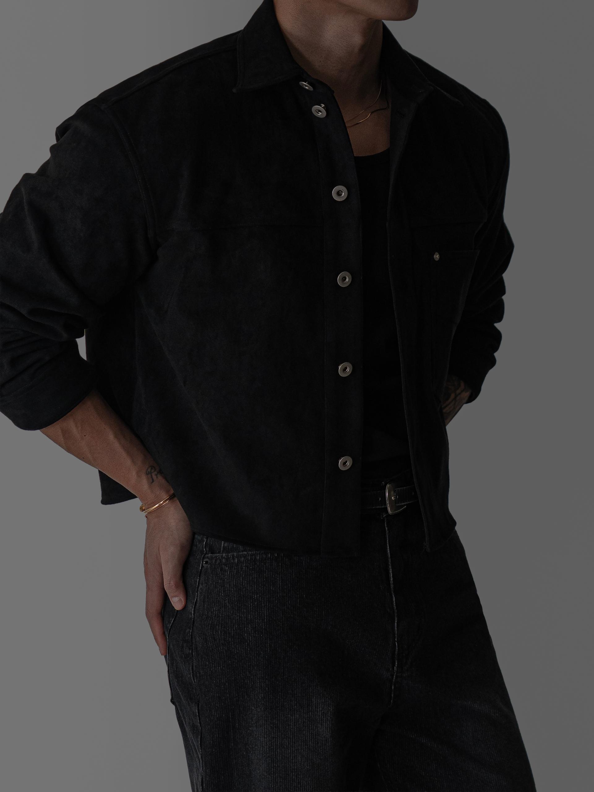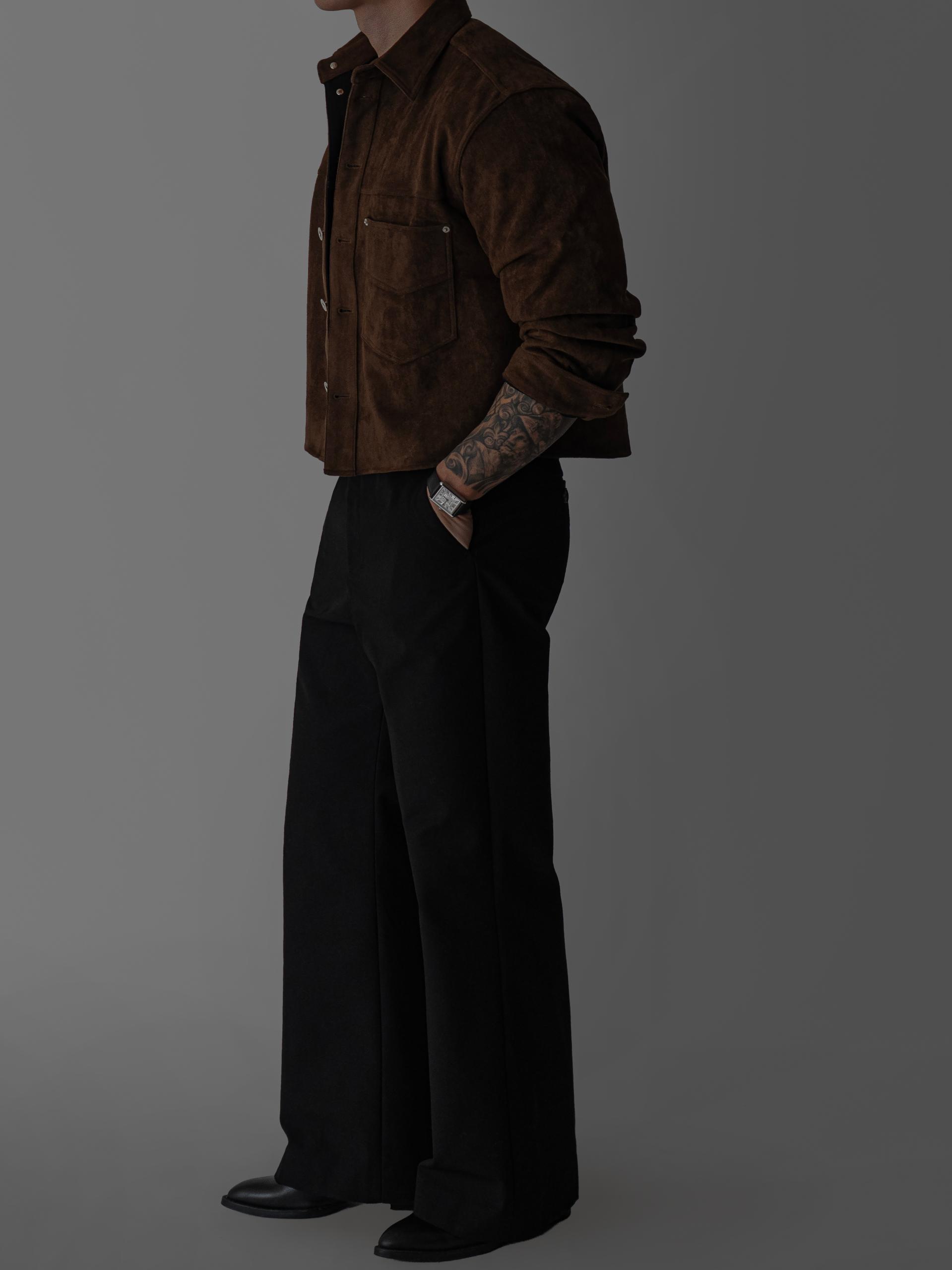 - 셔츠 디자인에 크롭 기장을 적용해 자켓처럼 안정적인 실루엣 연출