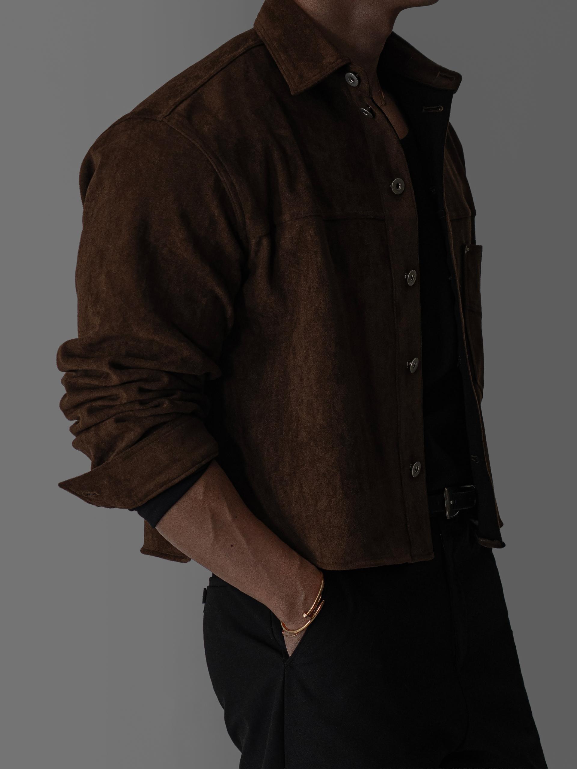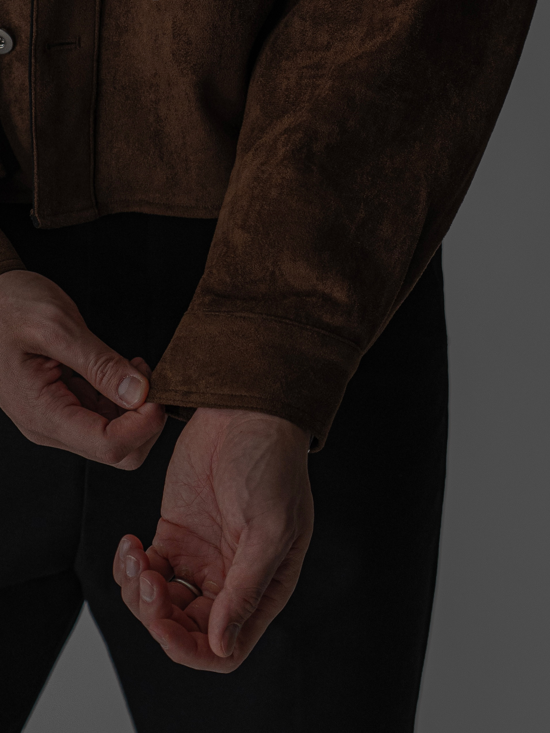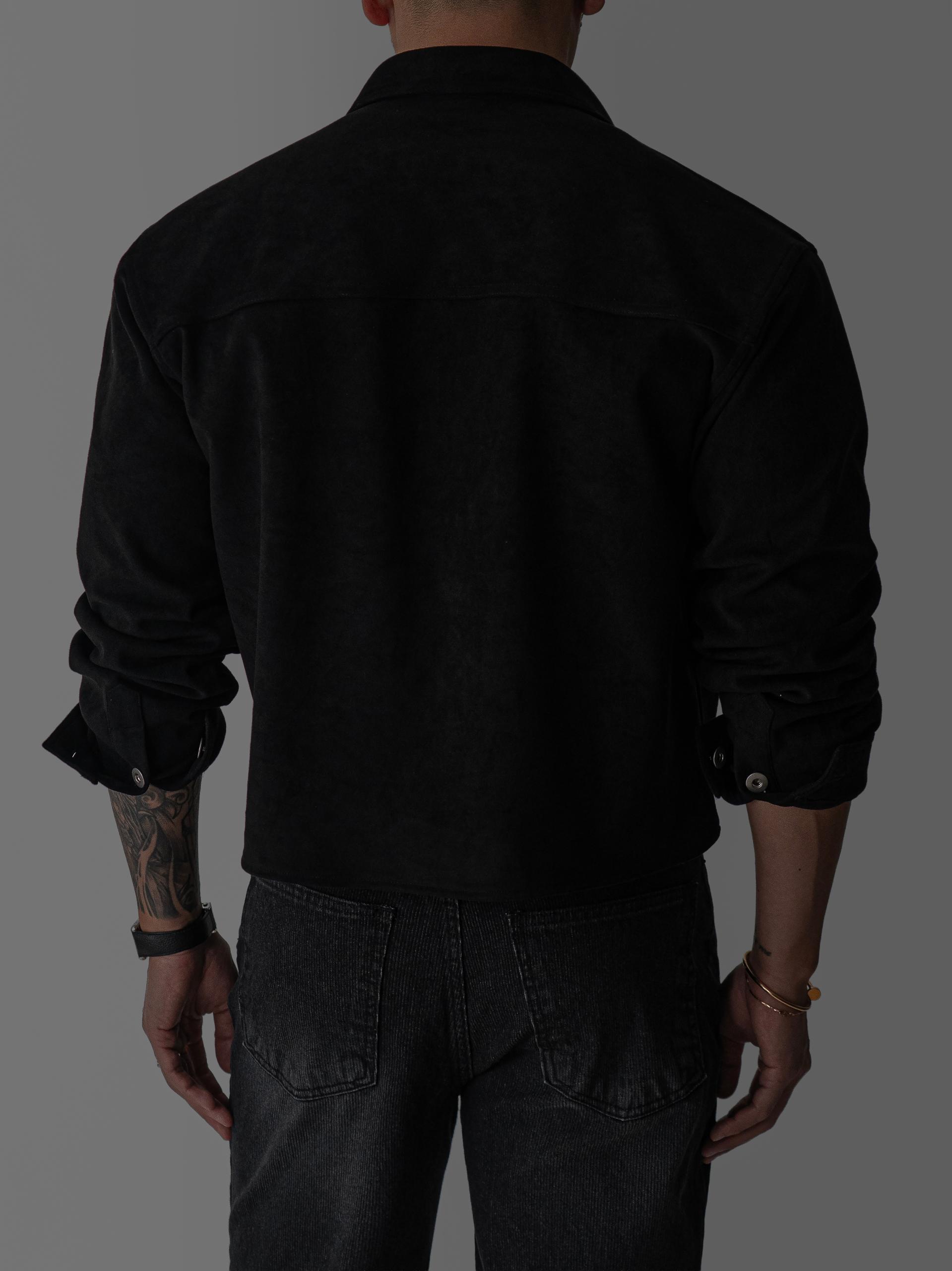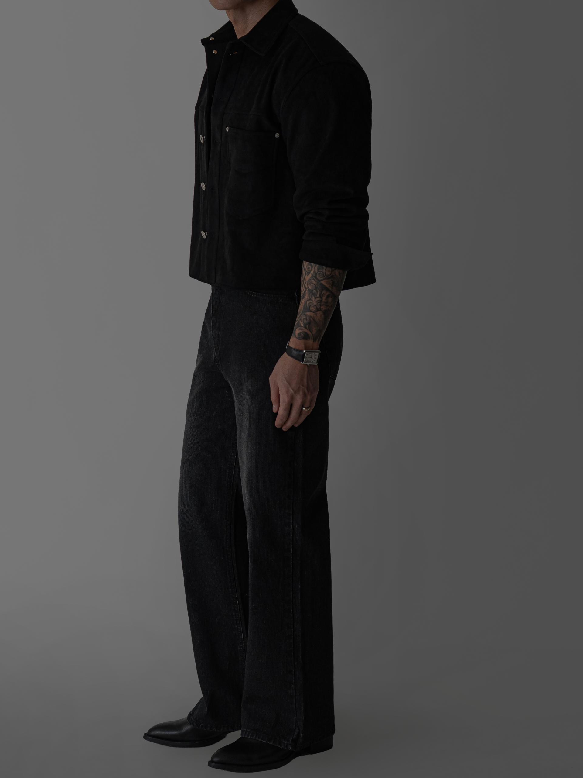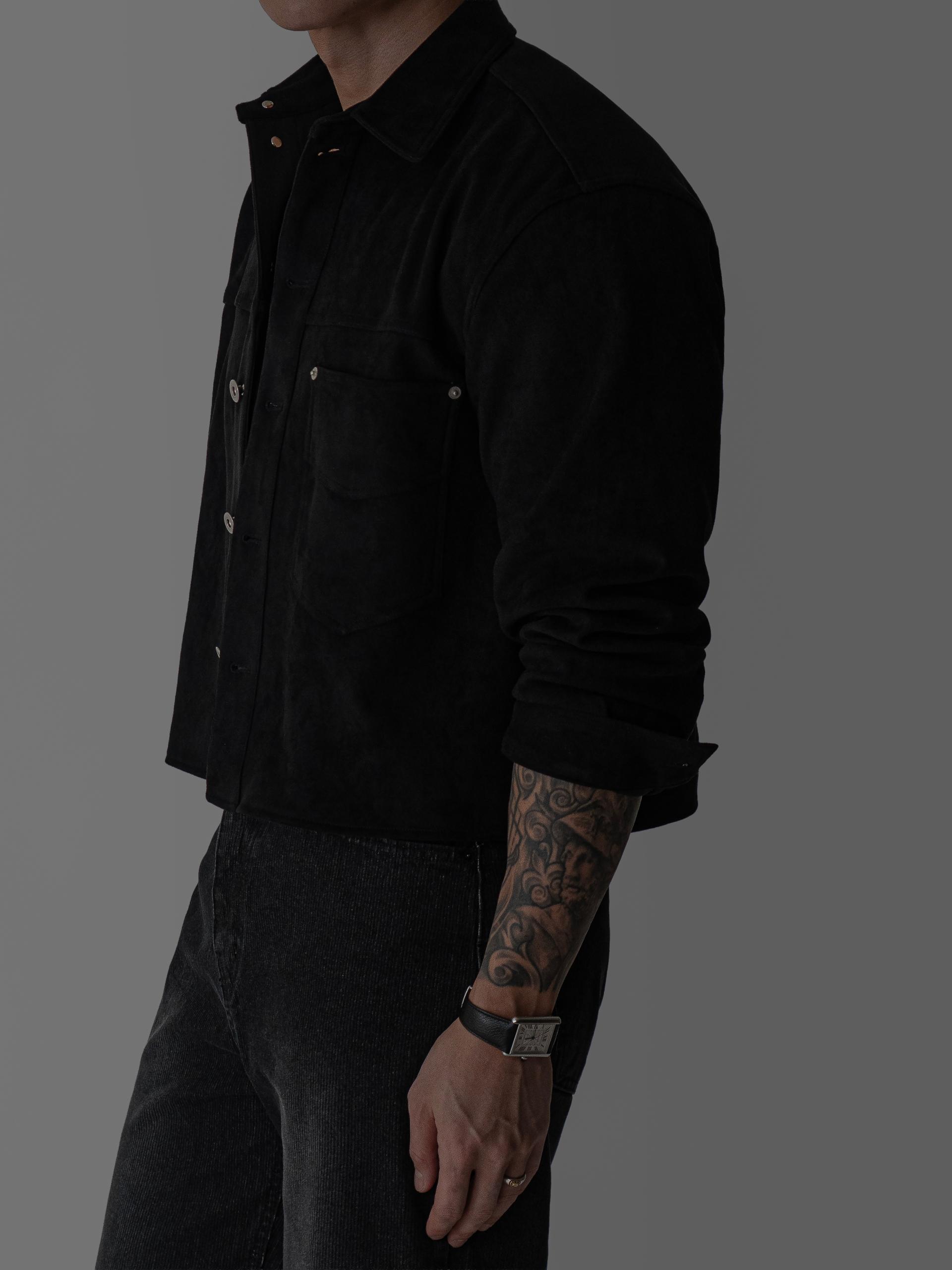 - 셔츠 디자인에 크롭 기장을 적용해 자켓처럼 안정적인 실루엣 연출