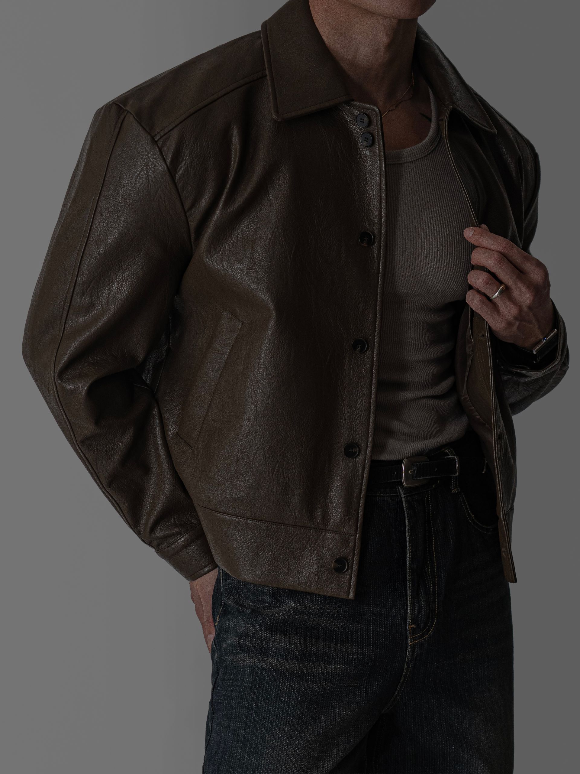 - 리얼 레더에 가까운 텍스처의 고급스러운 레더 자켓