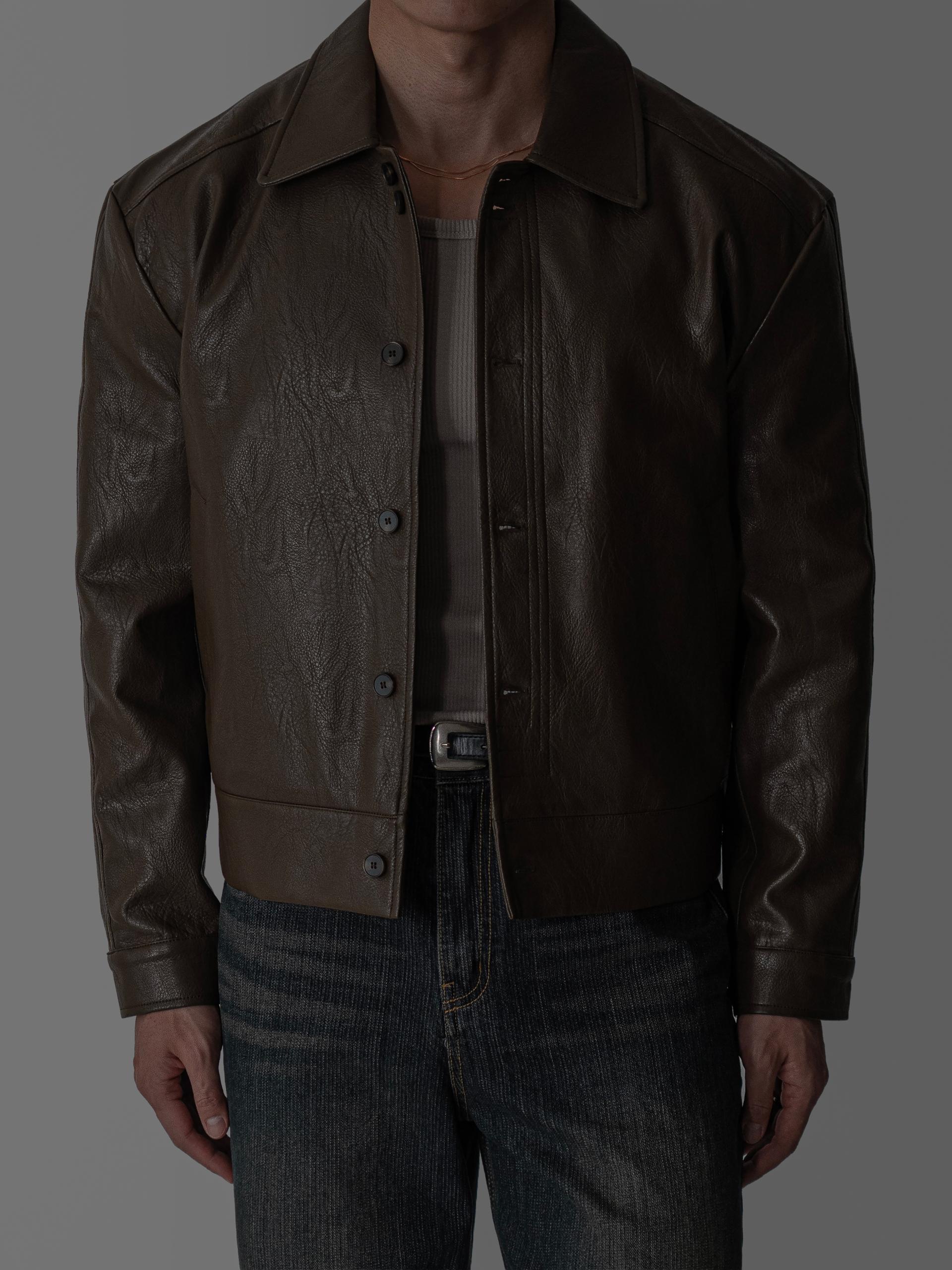 프레임 크롭 레더 자켓 (2color)