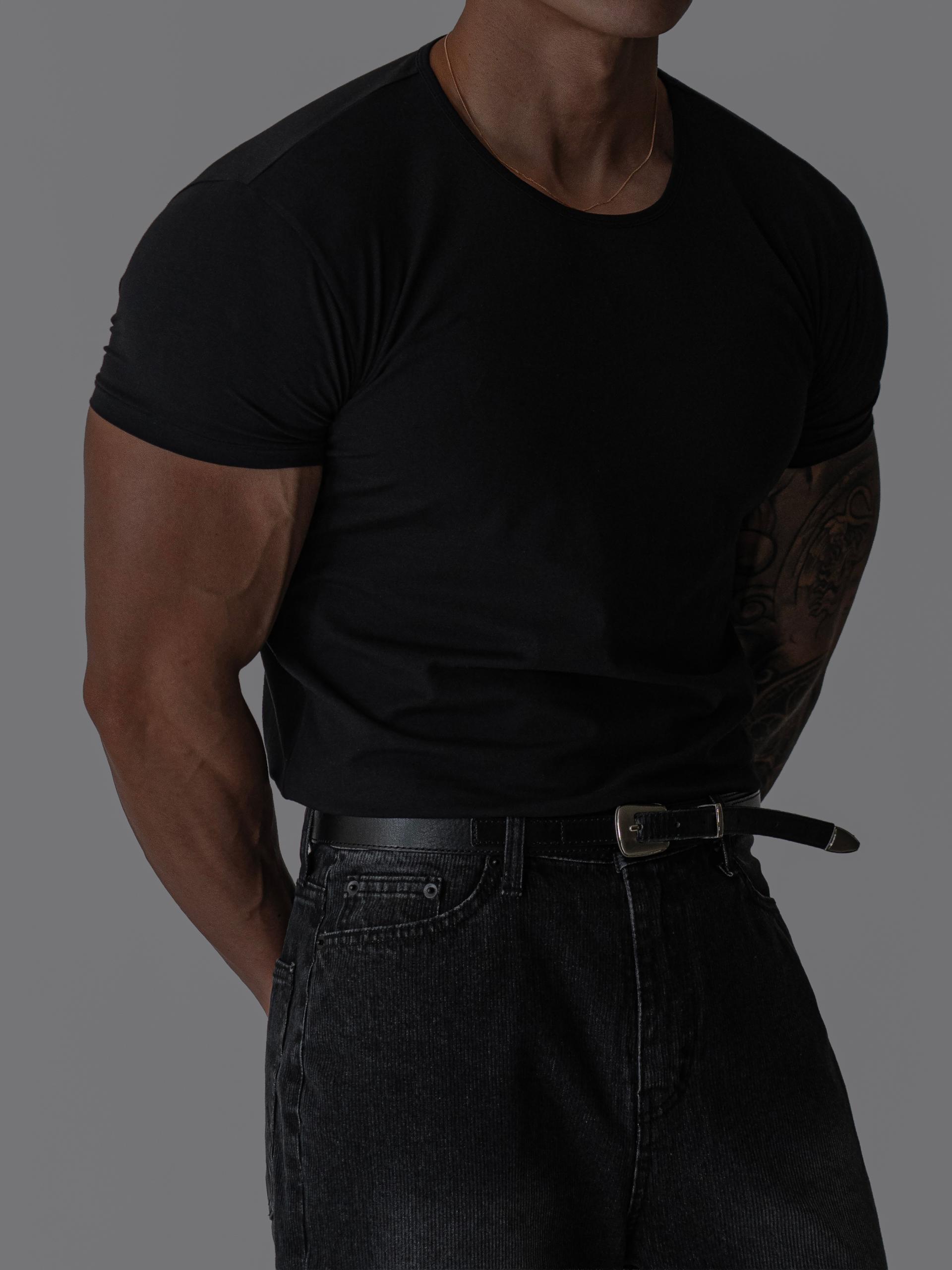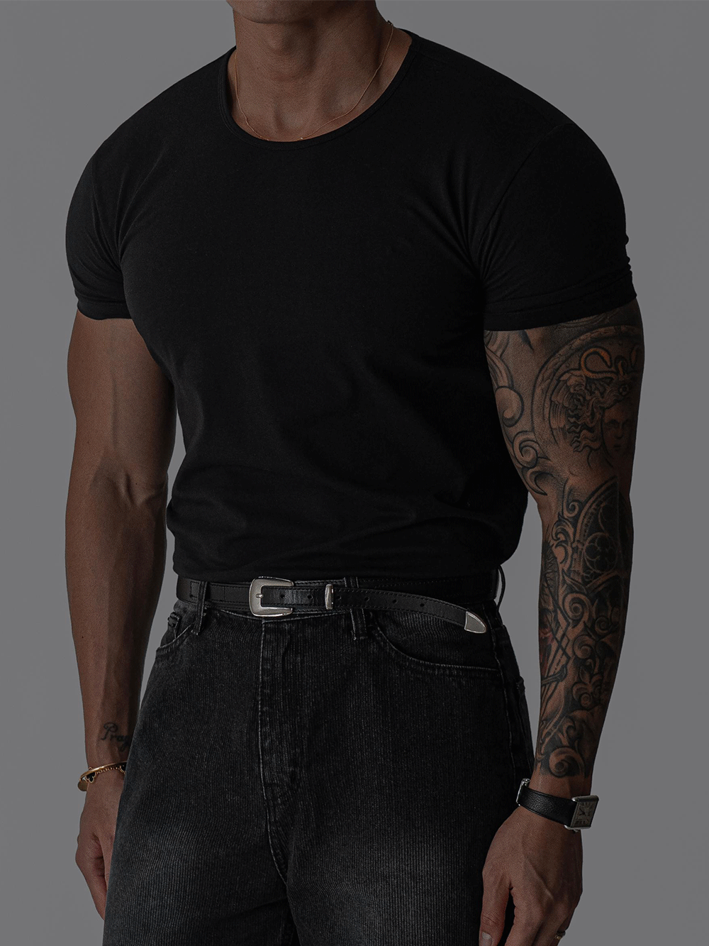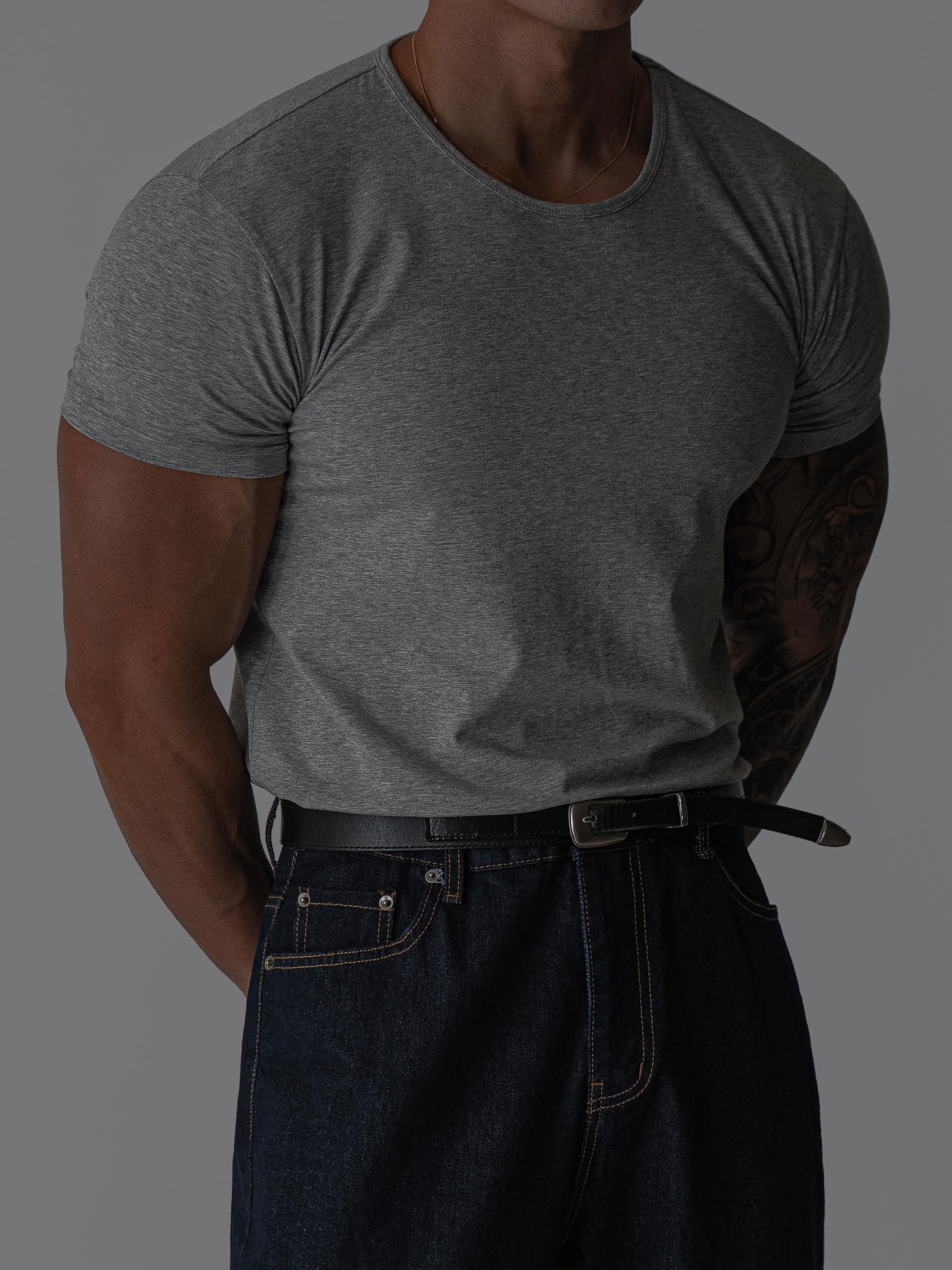 (특가기획) 로언 머슬핏 스판 유넥 반팔 티셔츠 (4color)