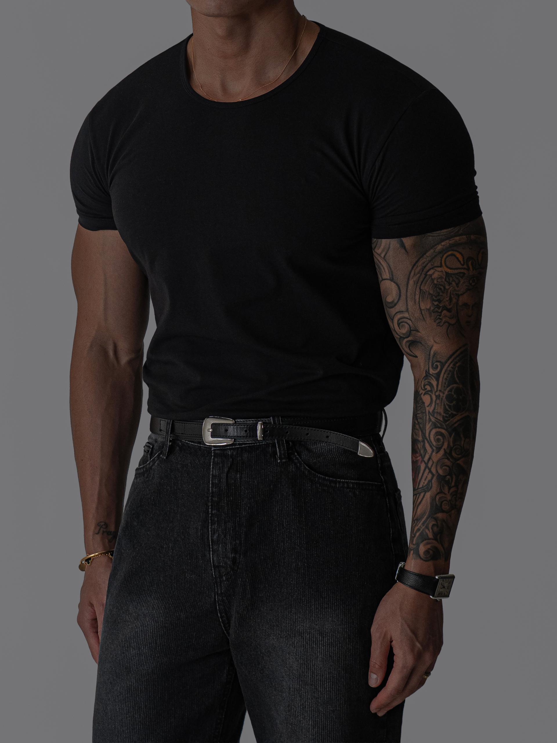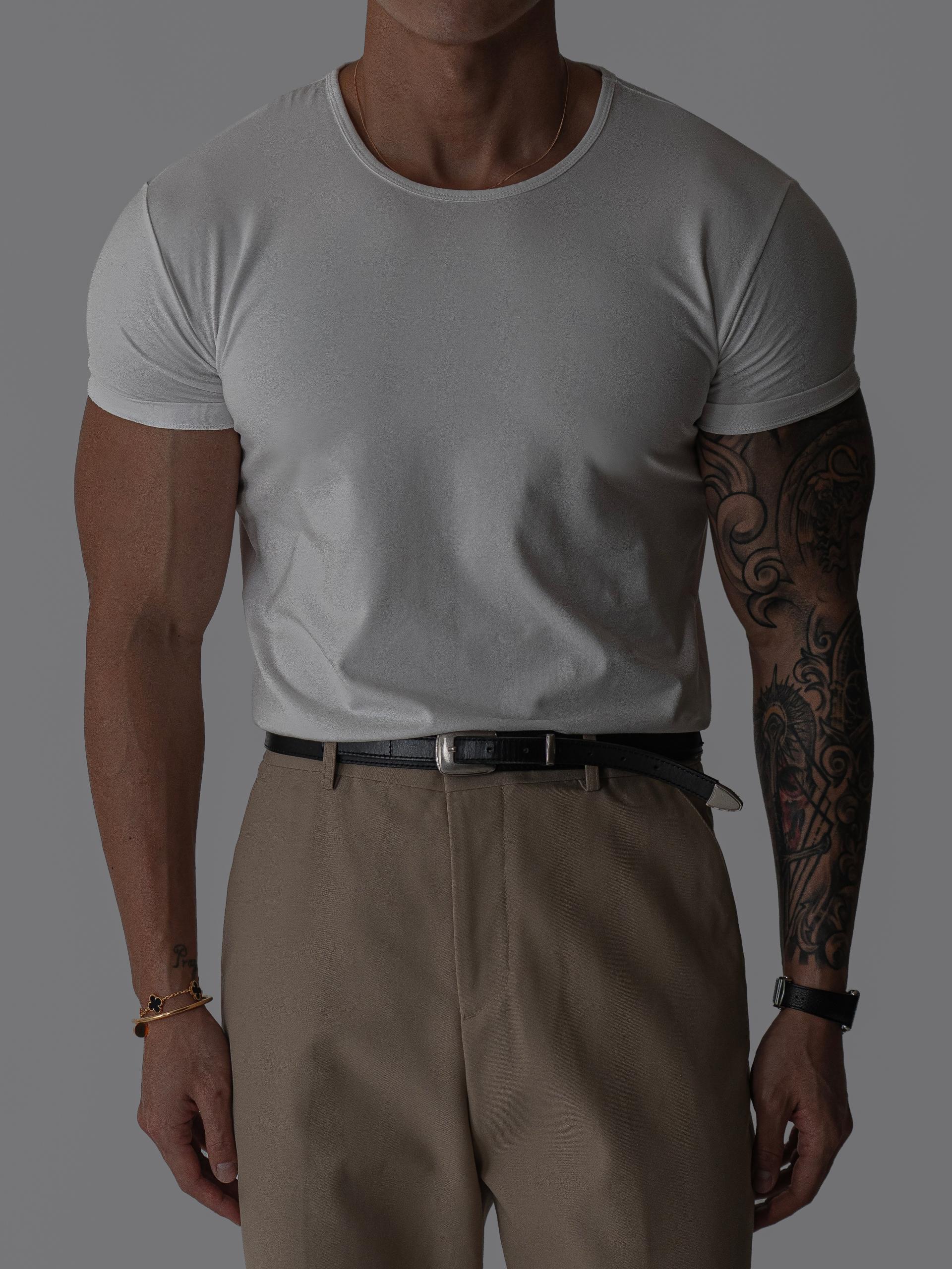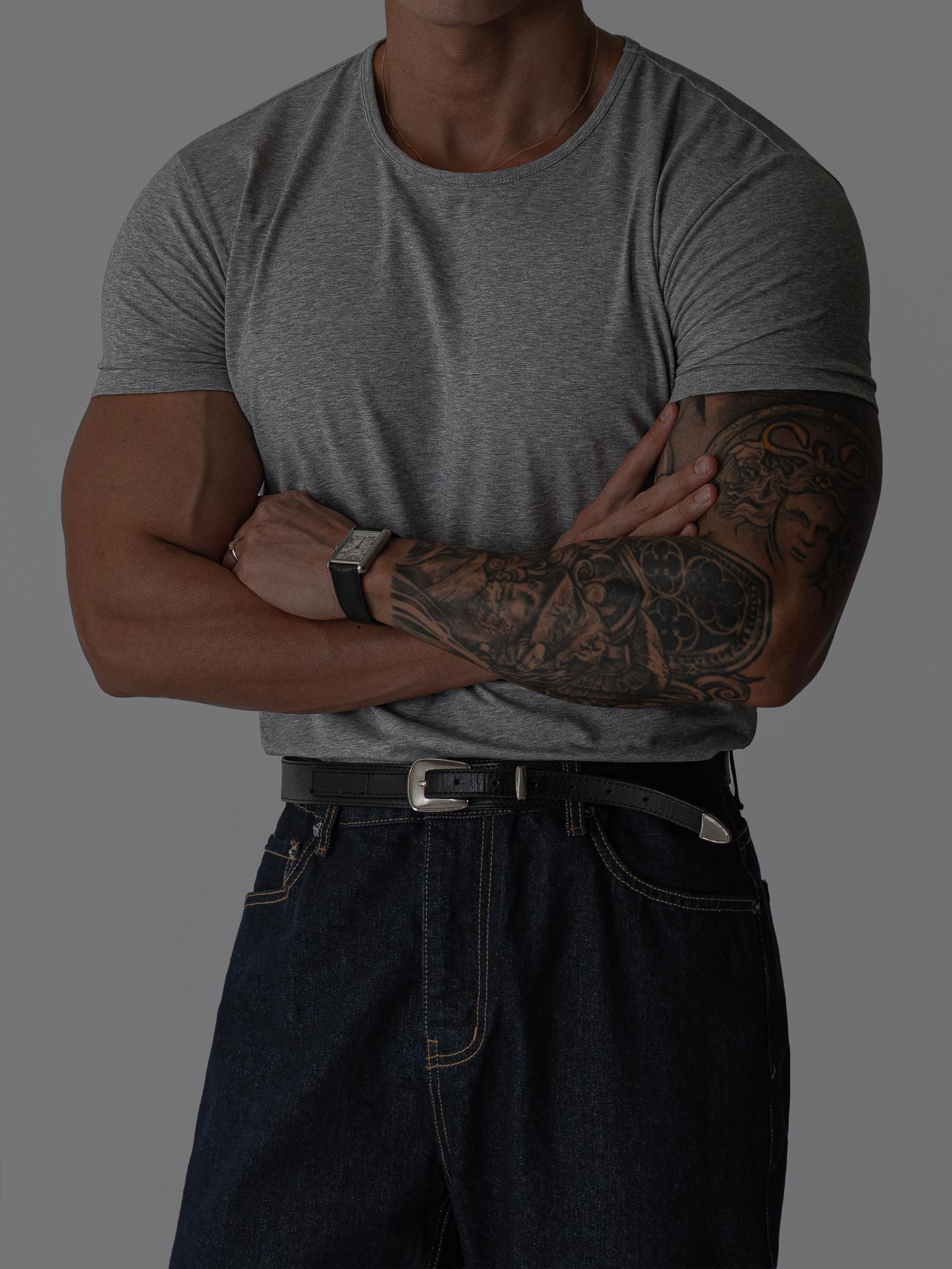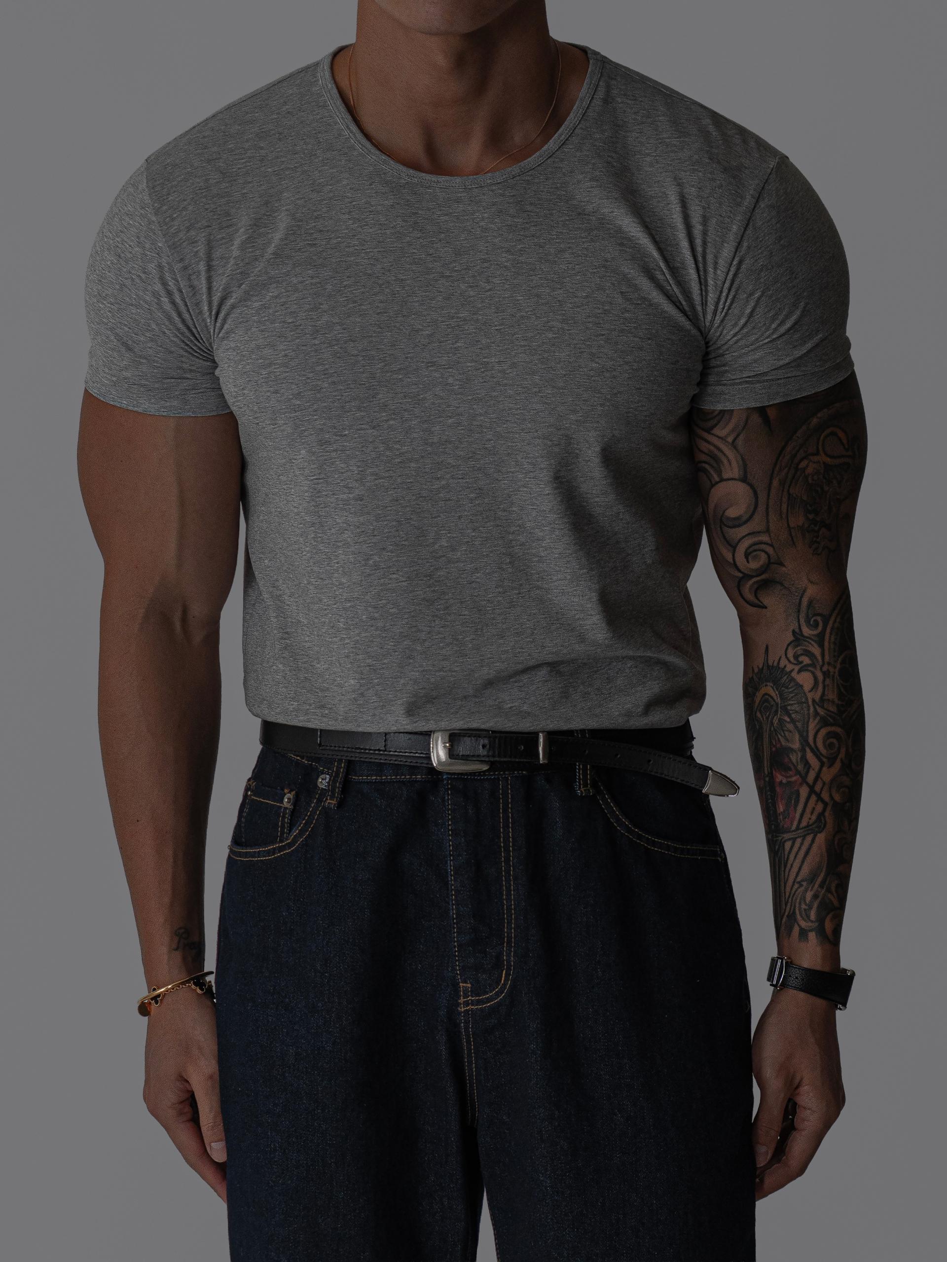 (특가기획) 로언 머슬핏 스판 유넥 반팔 티셔츠 (4color)