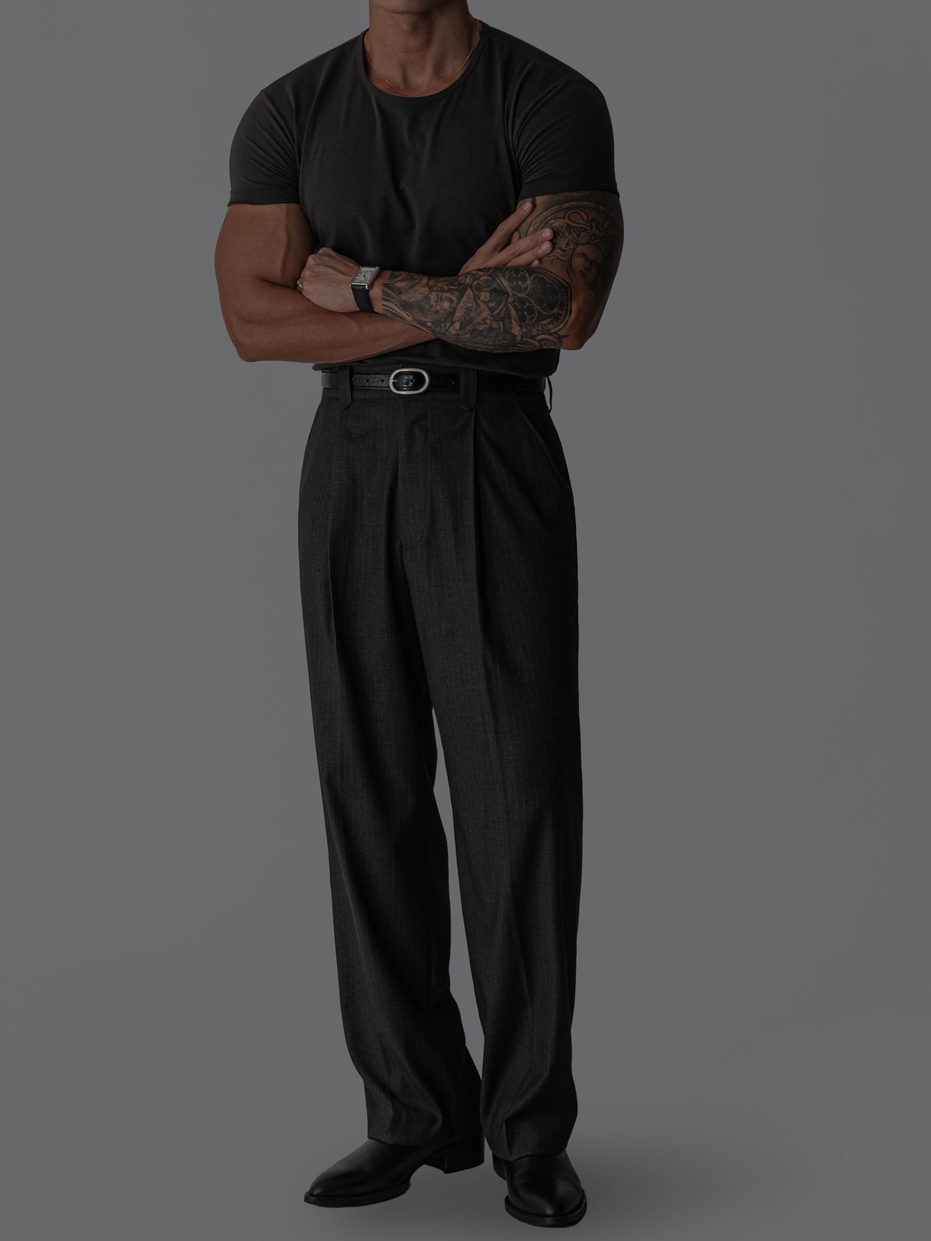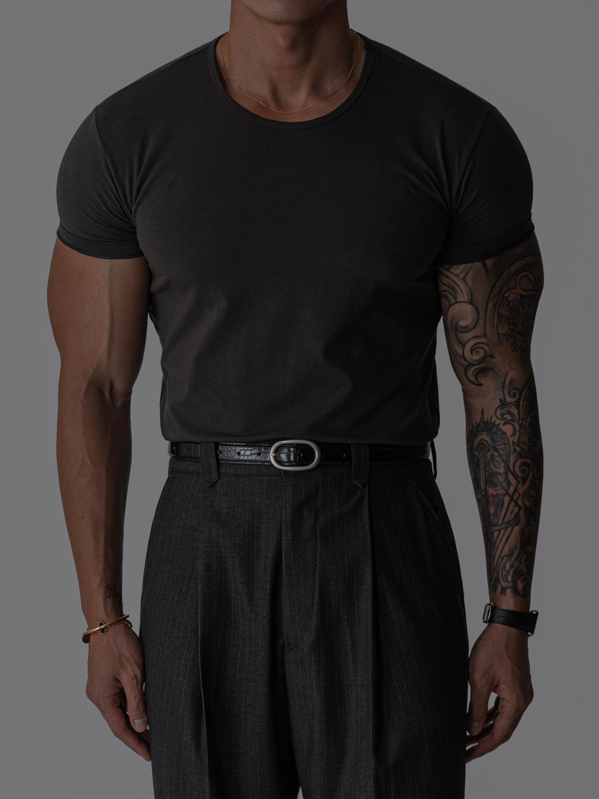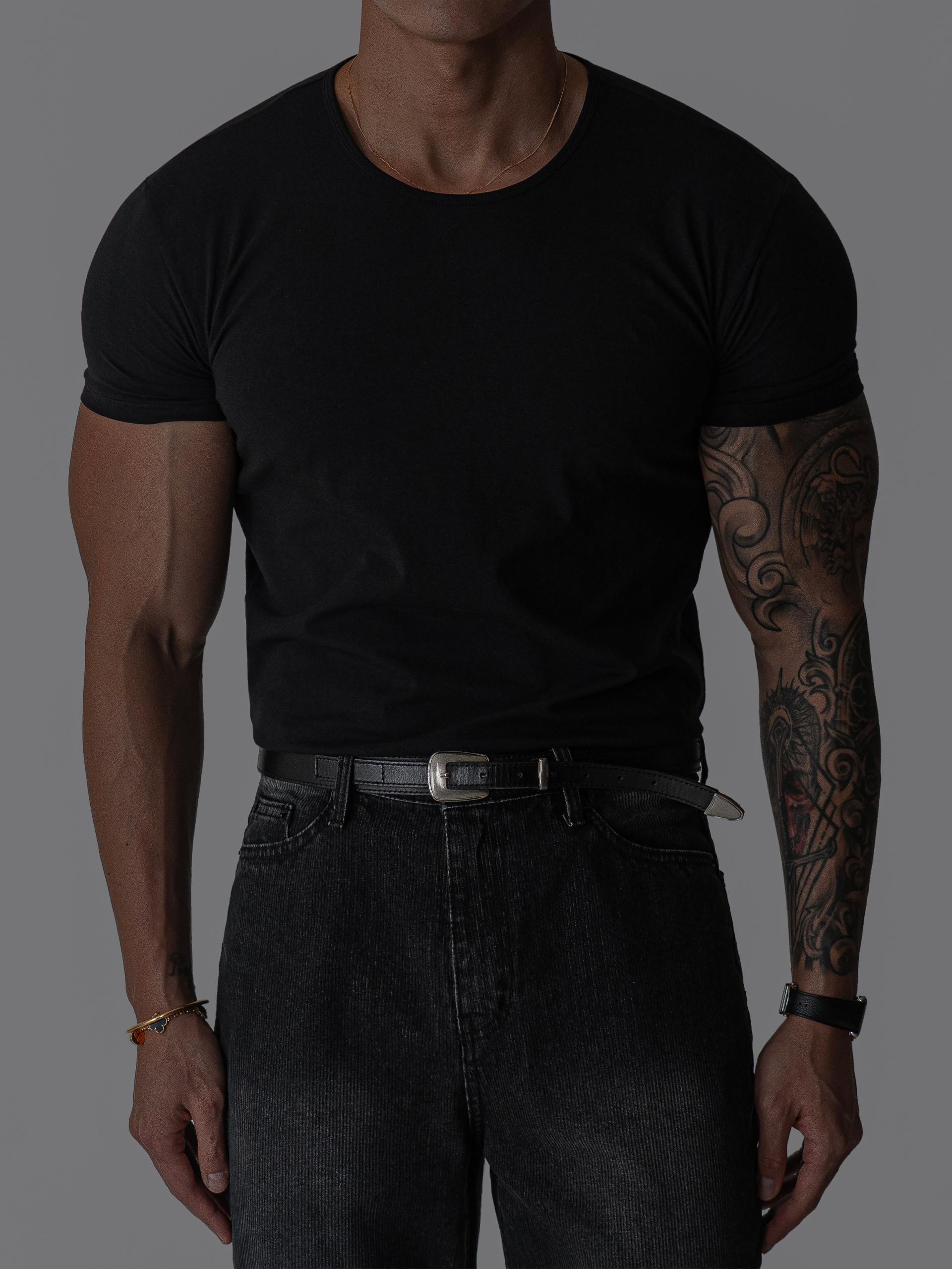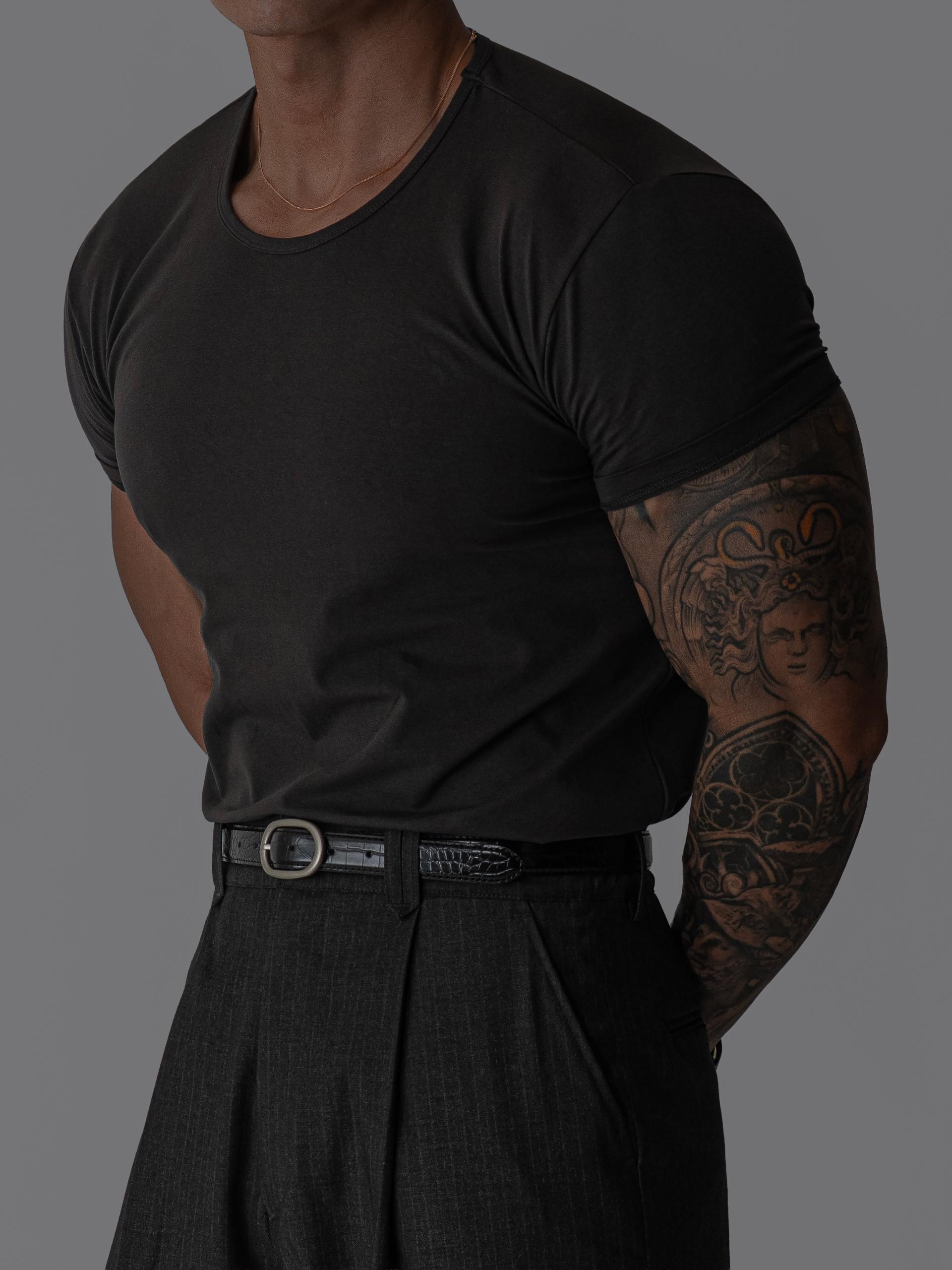 - 입체 패턴 설계로 자연스럽게 떨어지는 머슬핏 실루엣 연출