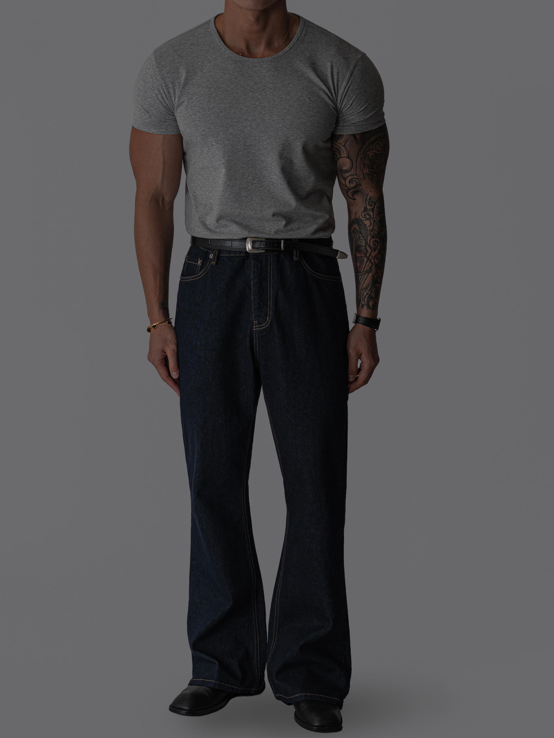 하의 - ikkei PRODUCT 프리미엄 워싱 플레어 골지 데님 팬츠