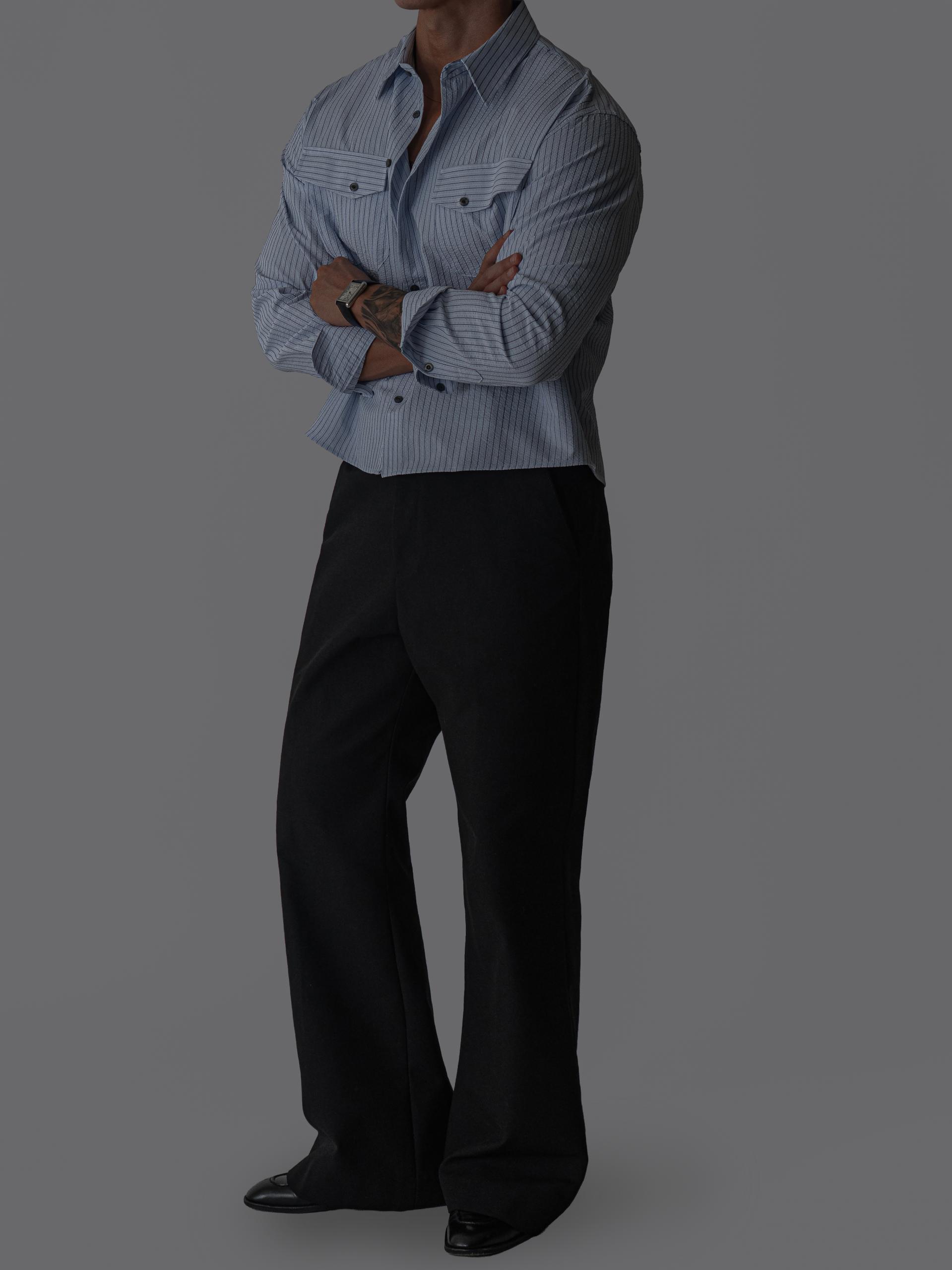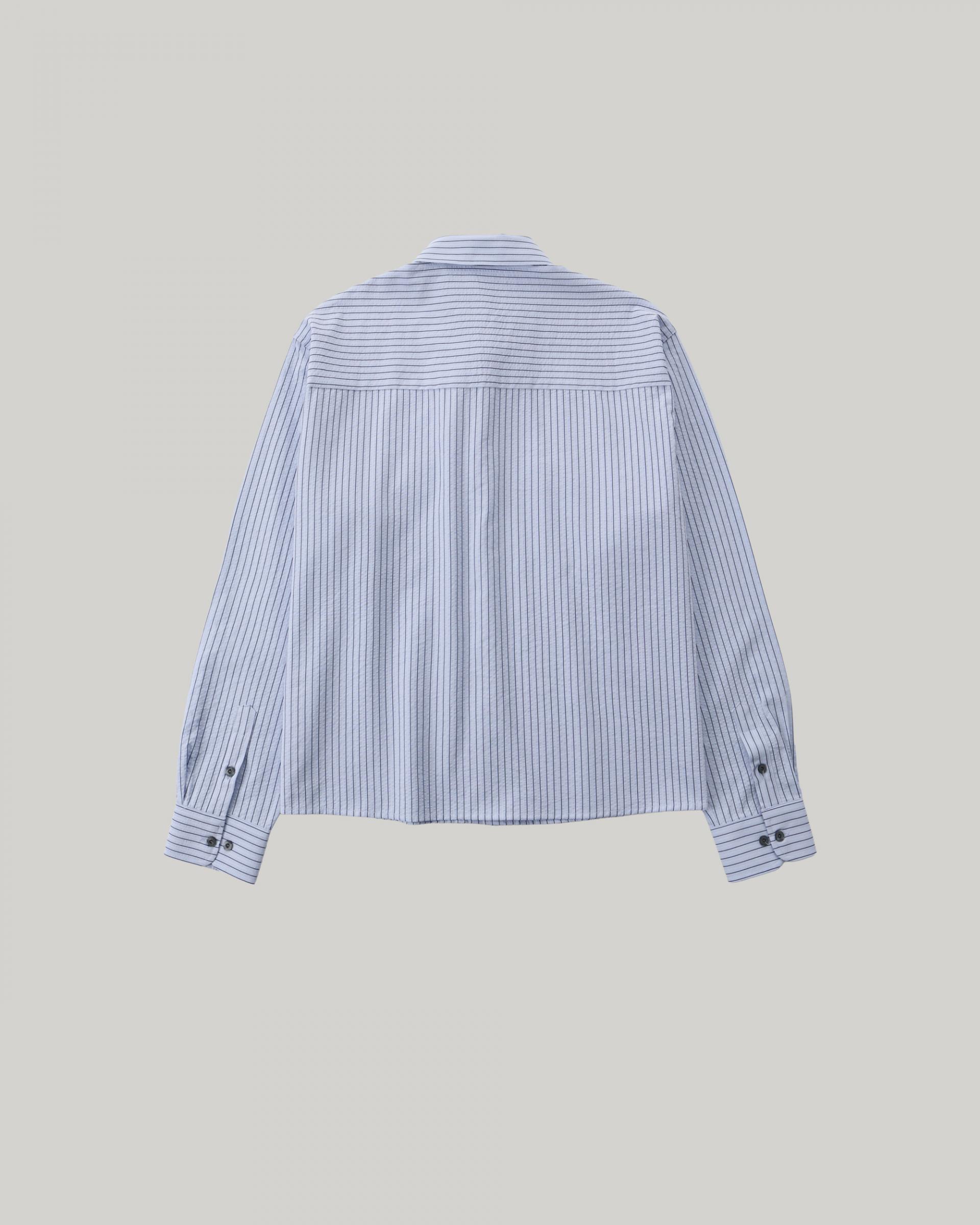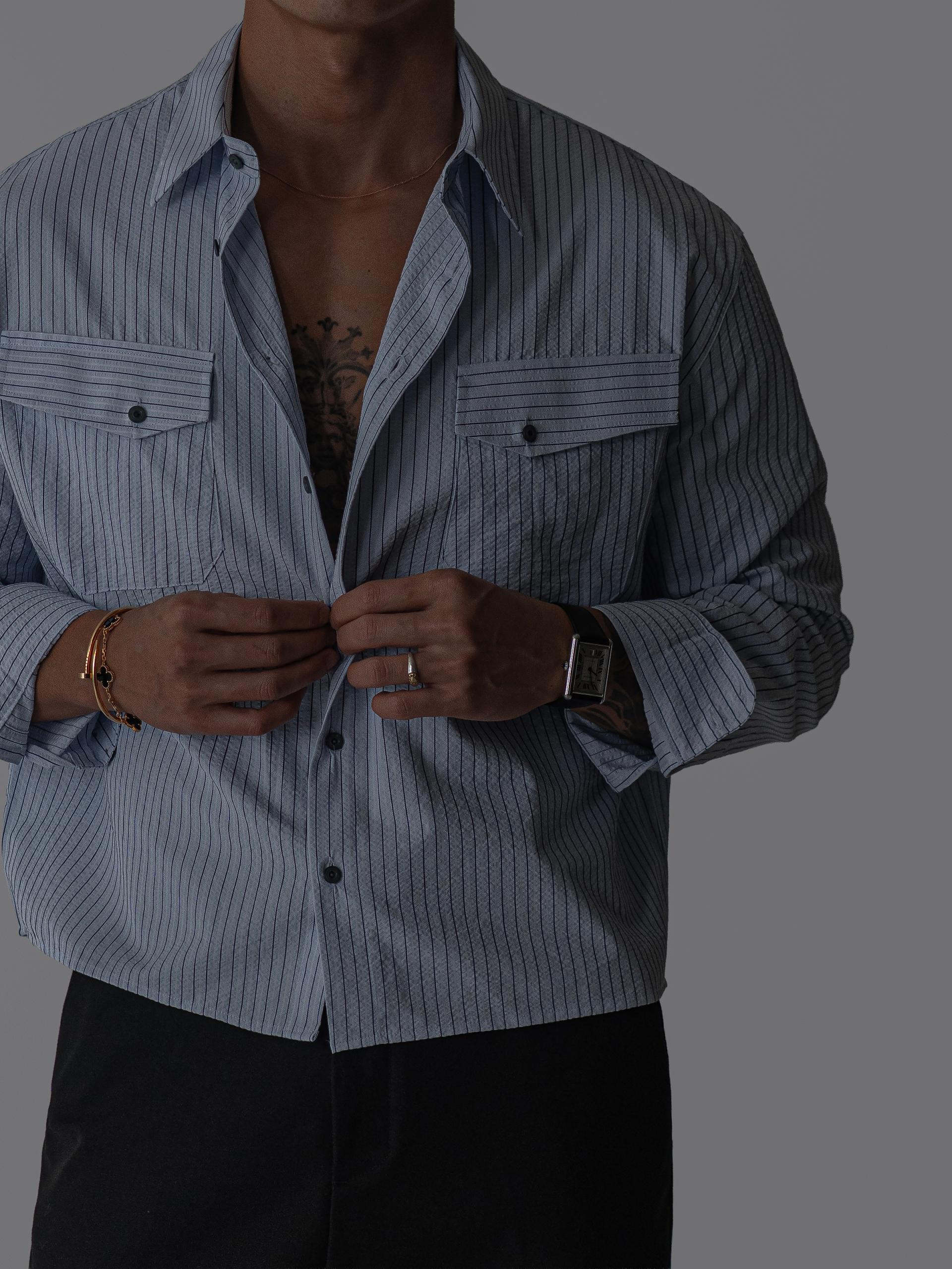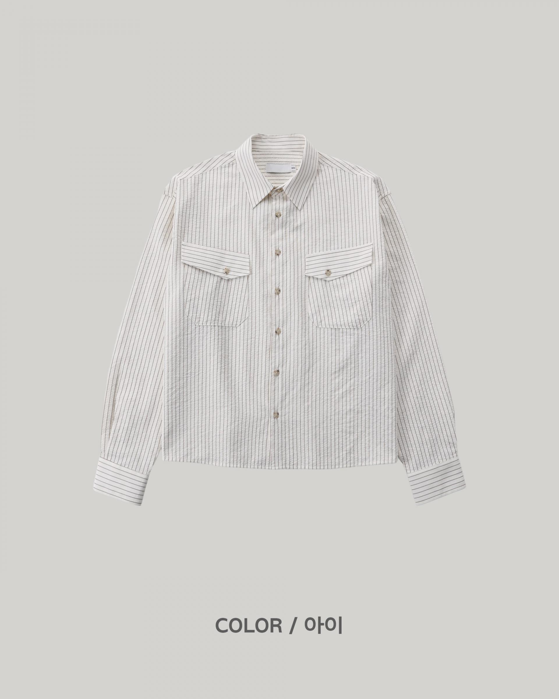 (당일발송) 데니 스트라이프 투 포켓 크롭 셔츠 (2color)